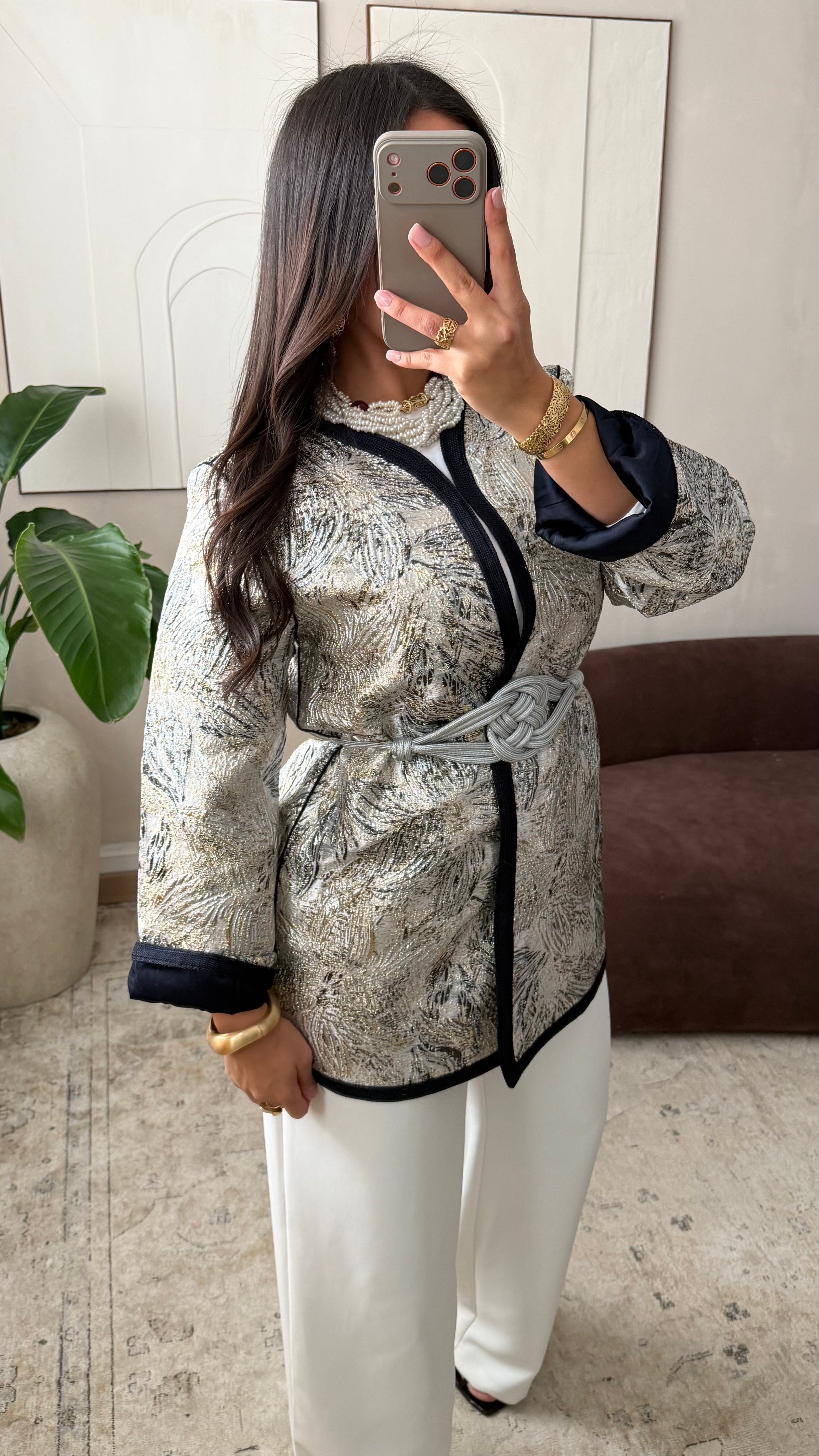 [ CRÉATION ARTISANALE 🇲🇦 ] Kimono en brocard et fils de soie I Bleu marine