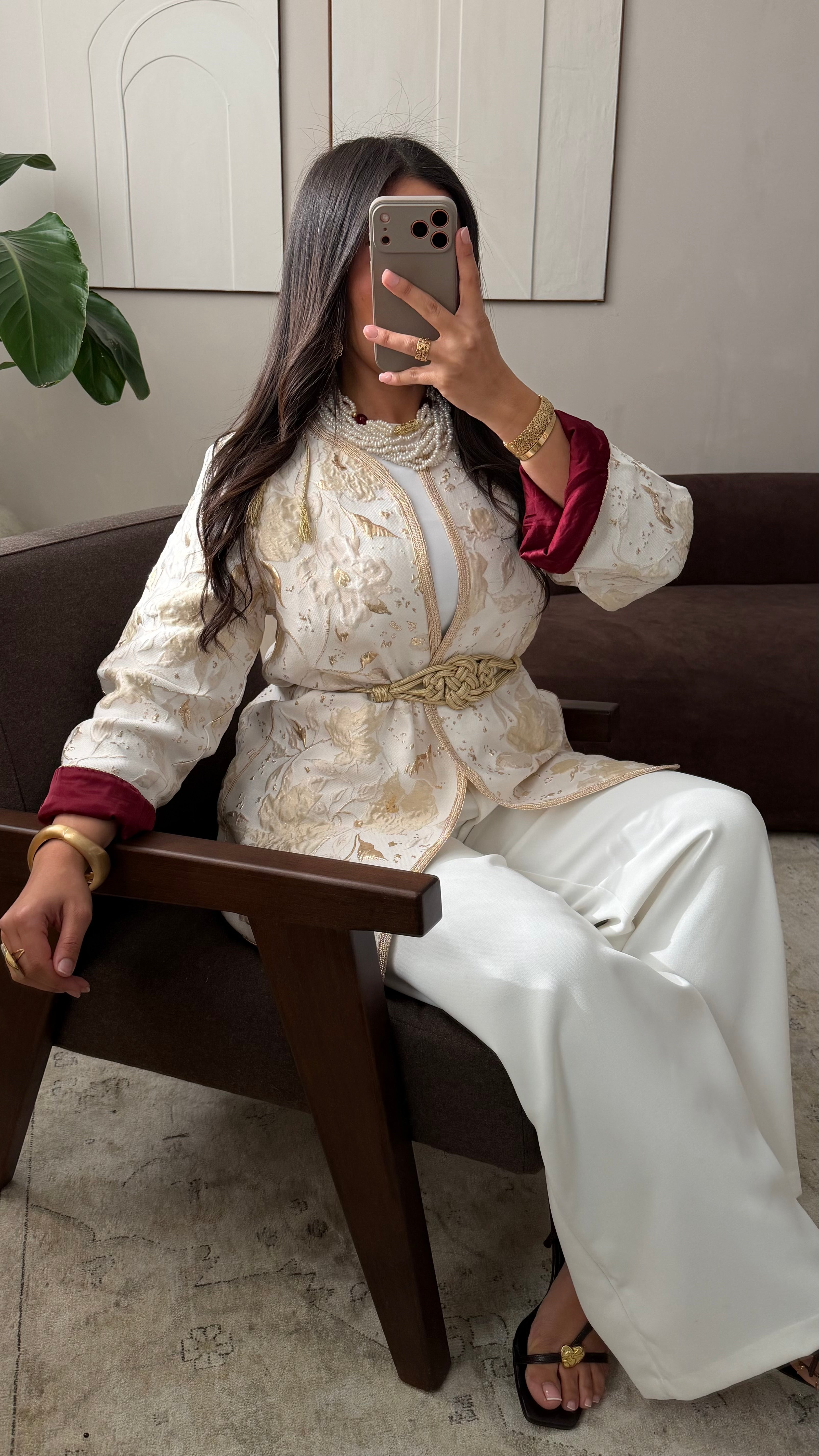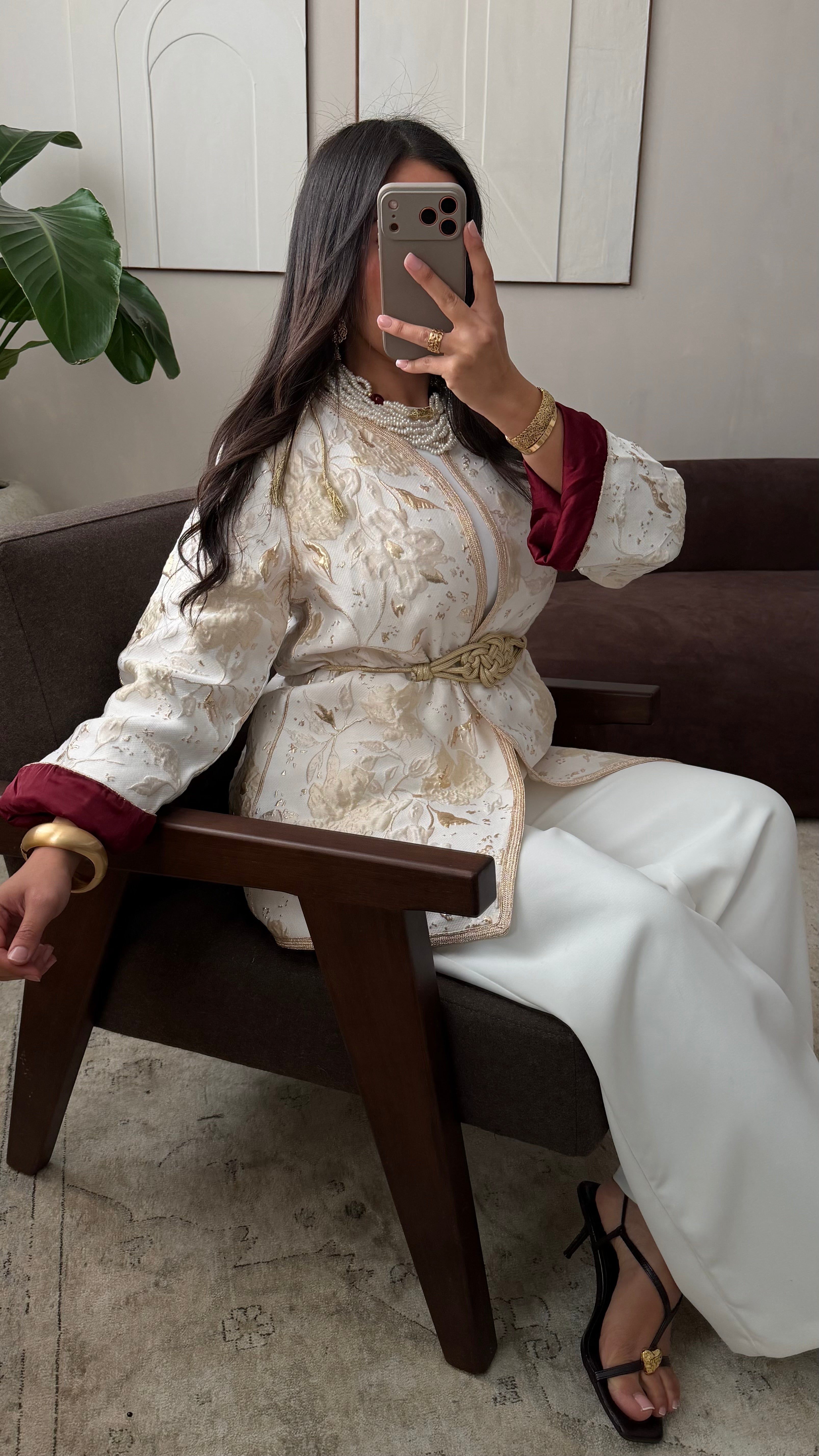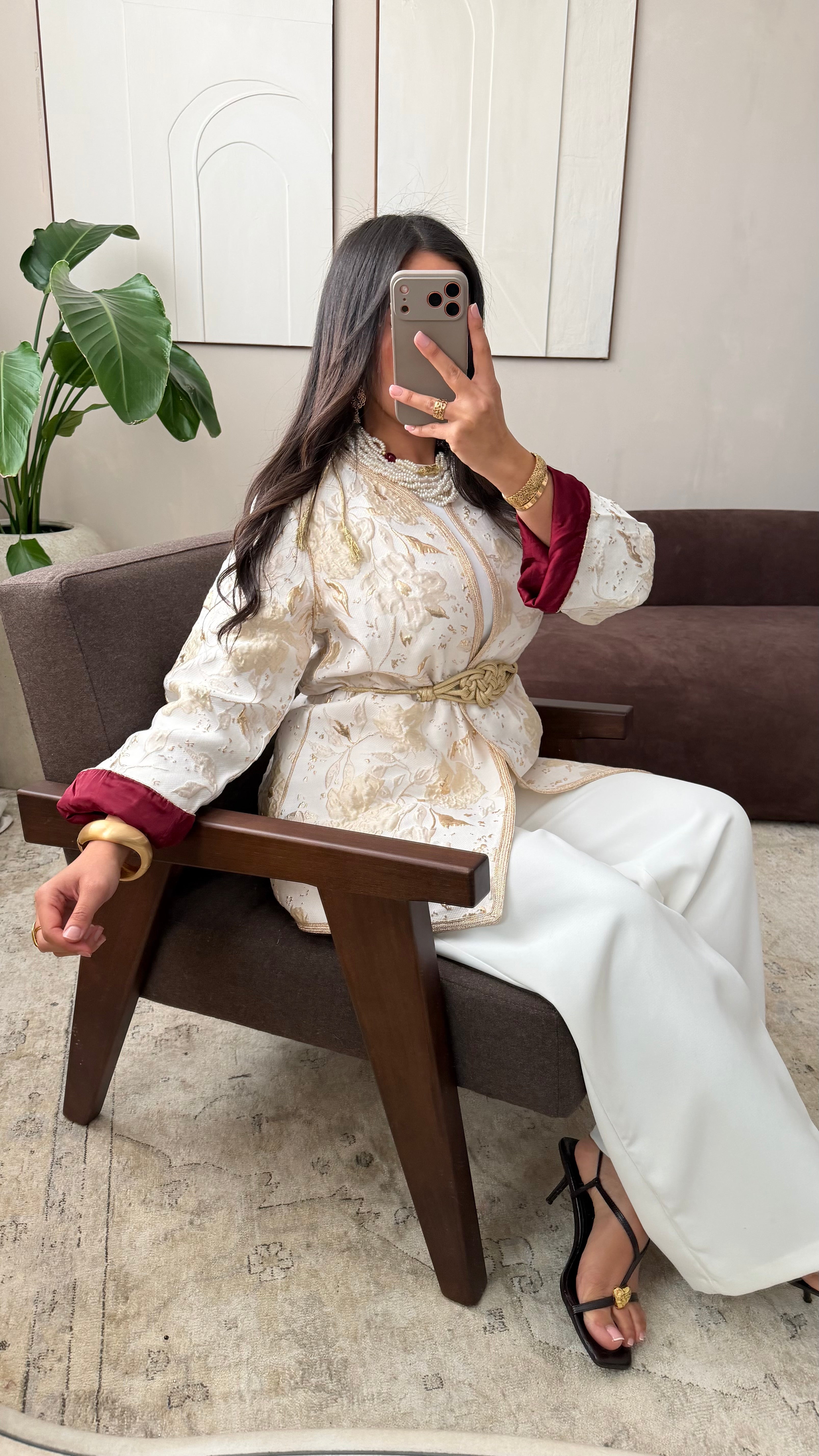 [ CRÉATION ARTISANALE 🇲🇦 ] Kimono en brocard avec fils de soie I Doré Bordeaux