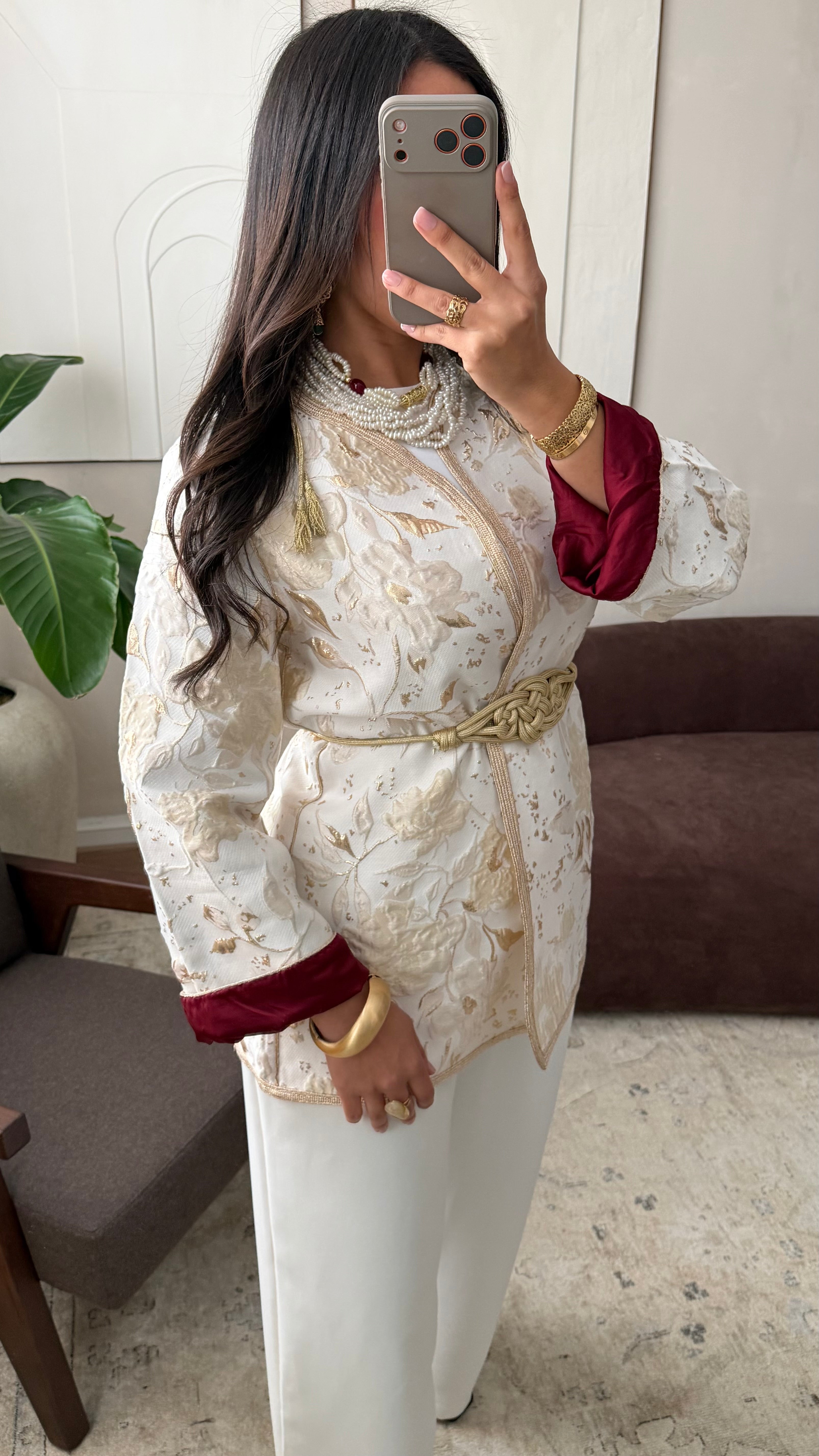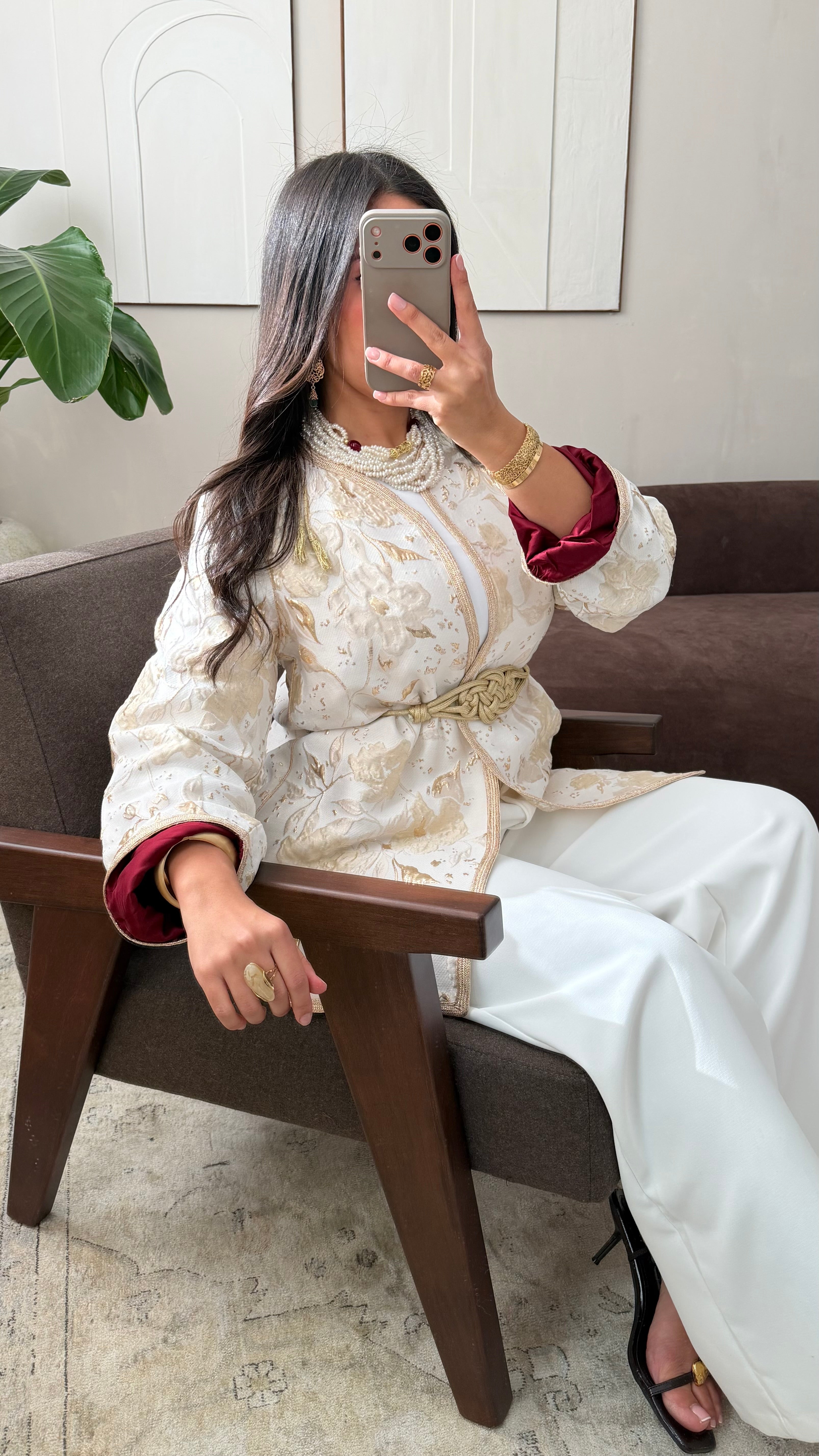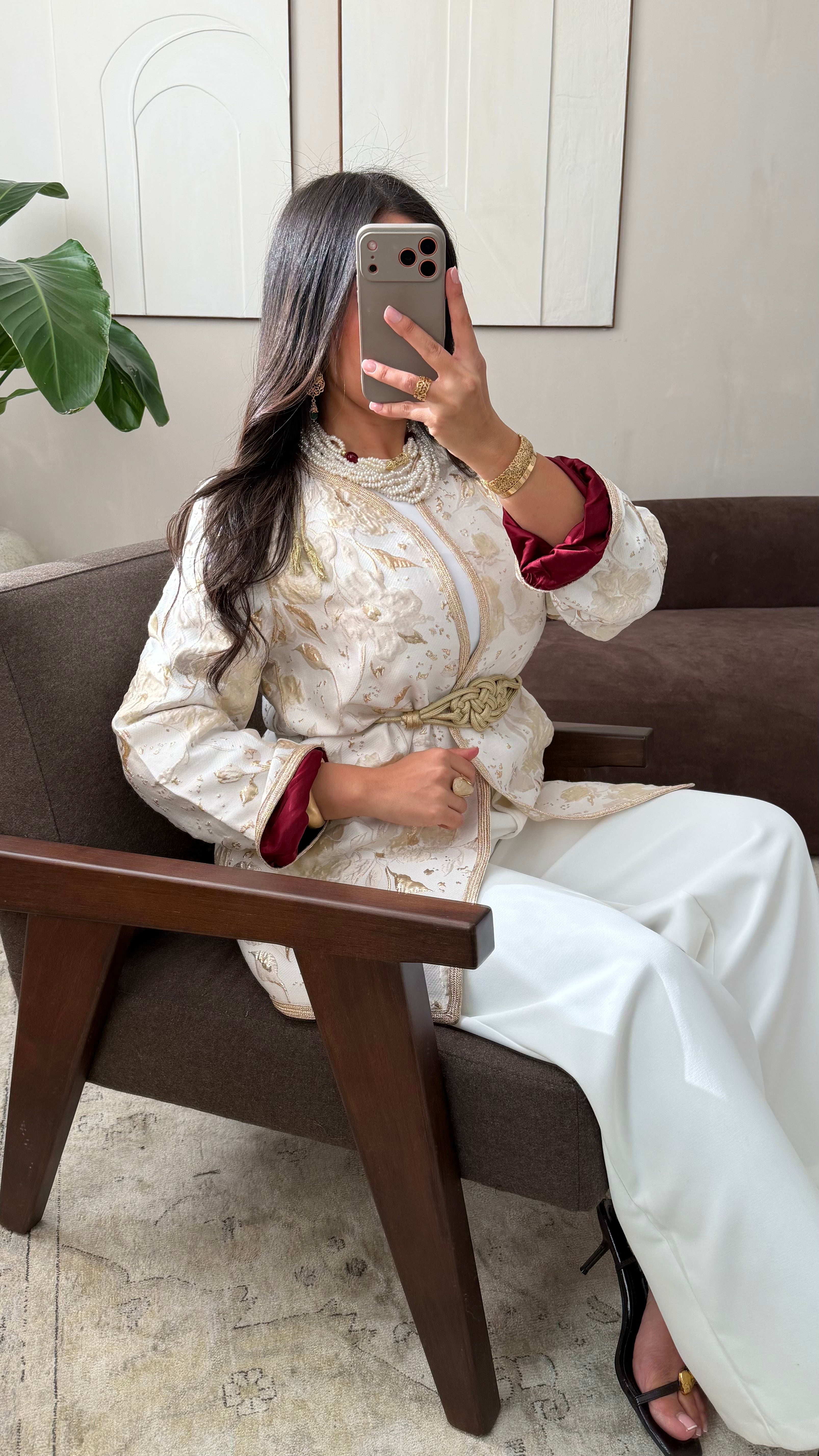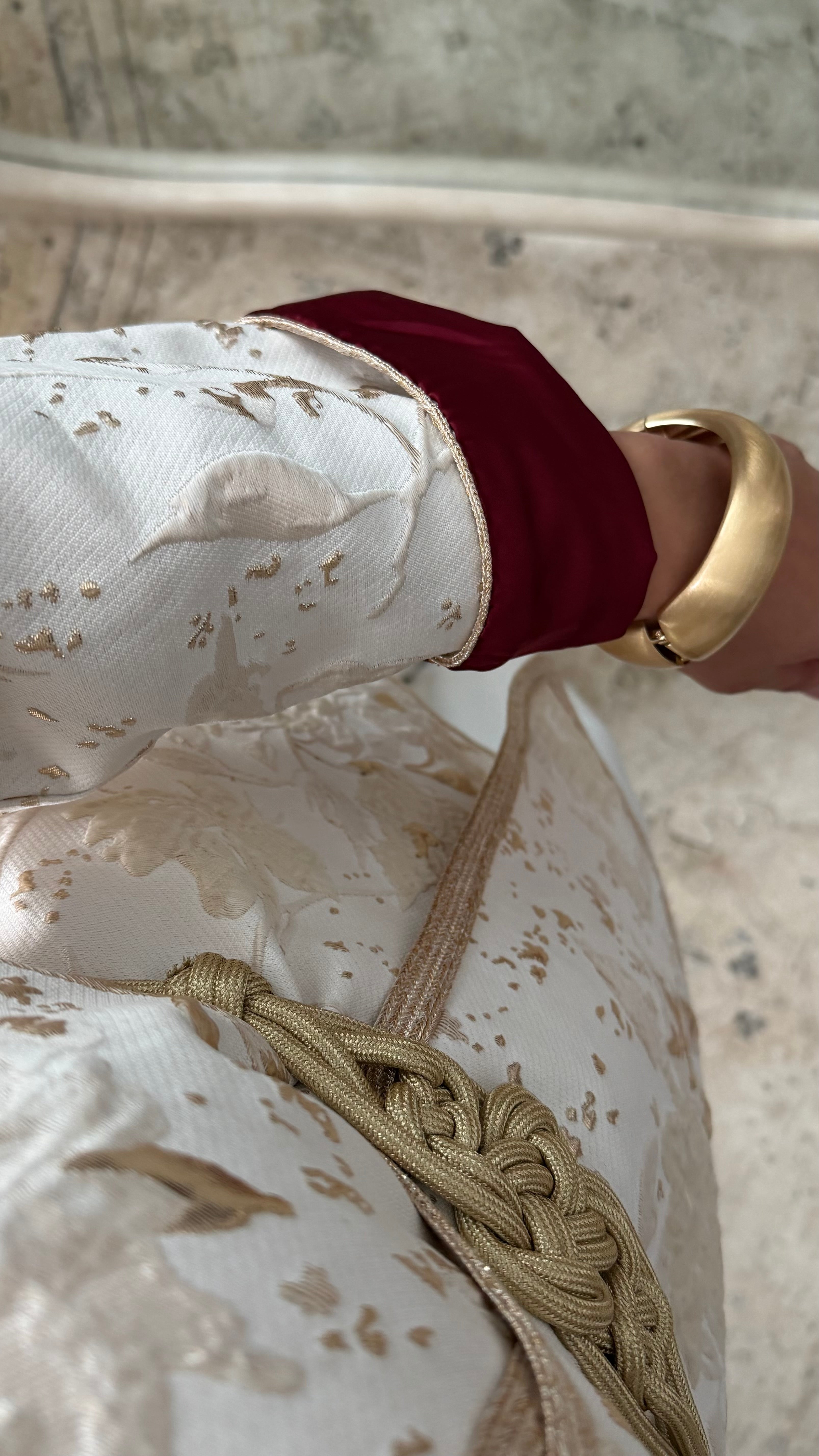[ CRÉATION ARTISANALE 🇲🇦 ] Kimono en brocard avec fils de soie I Doré Bordeaux