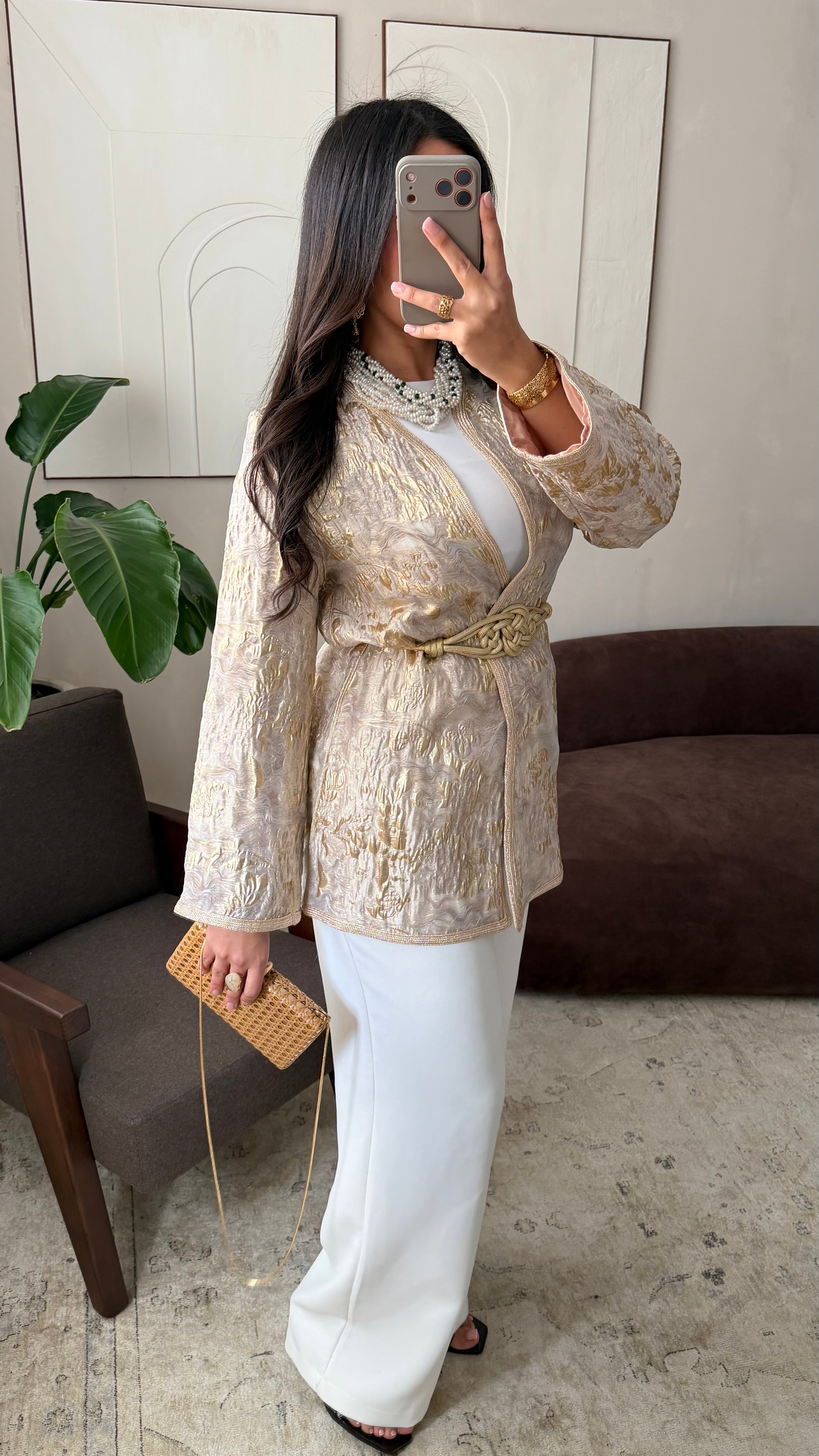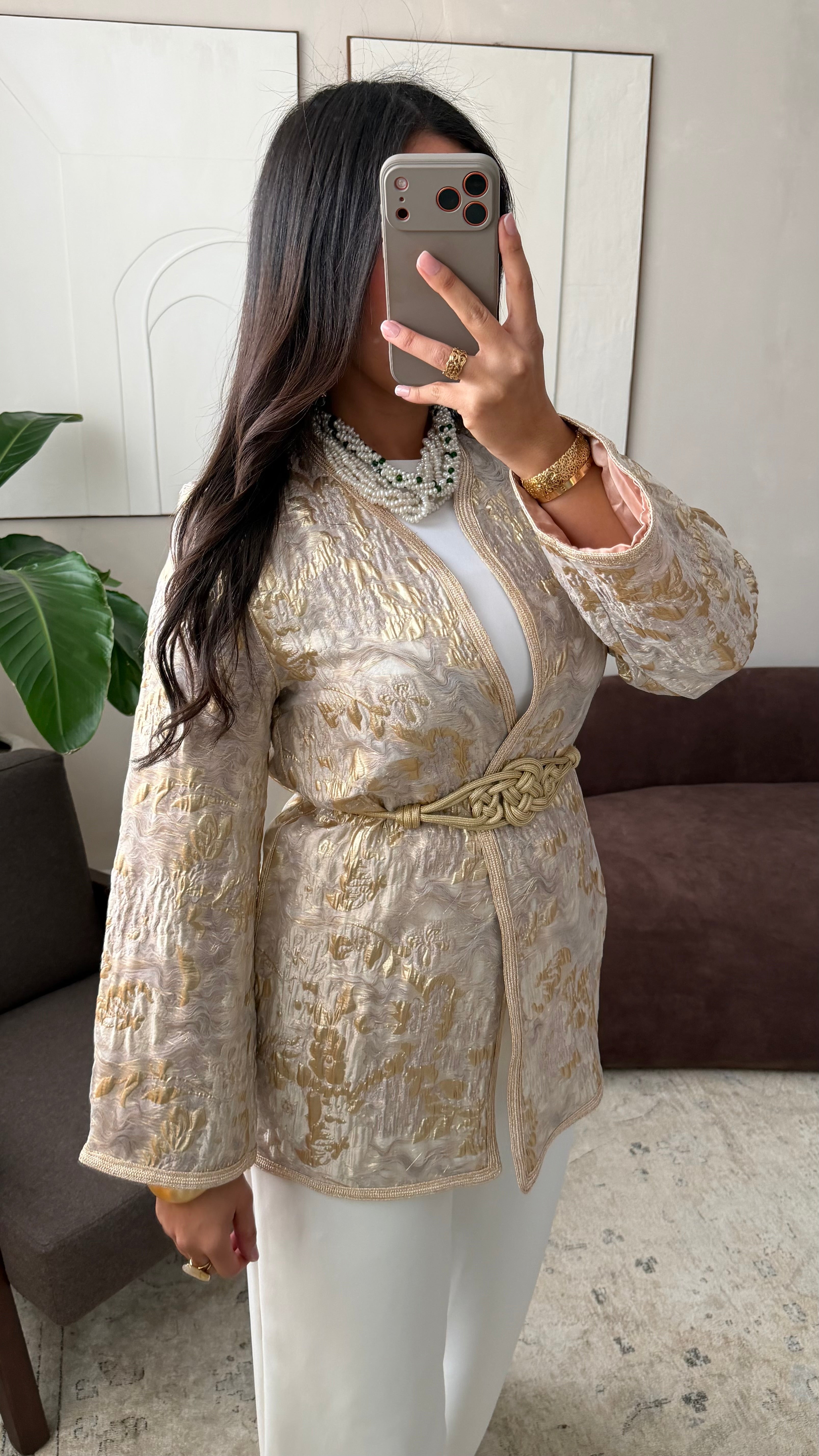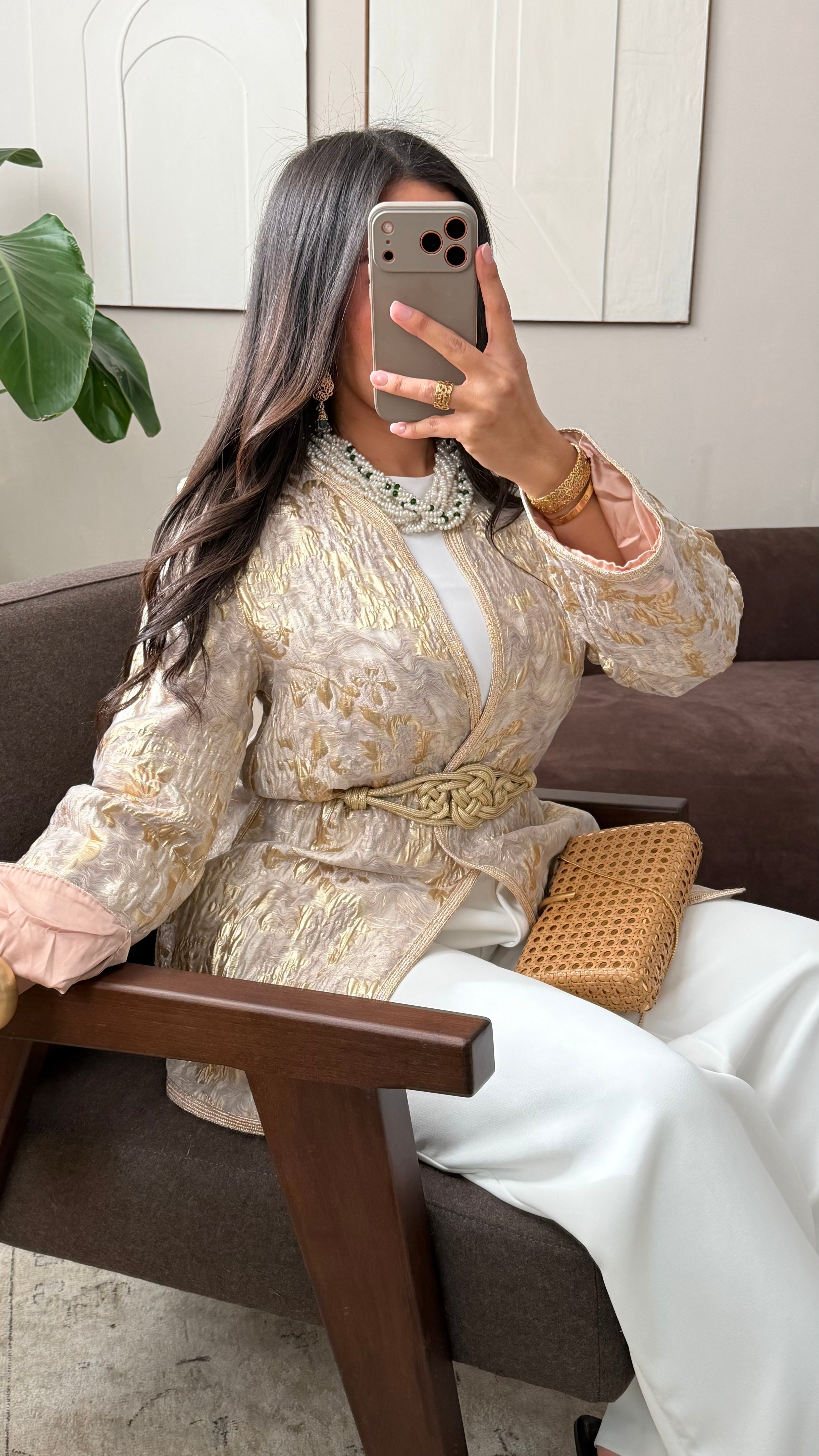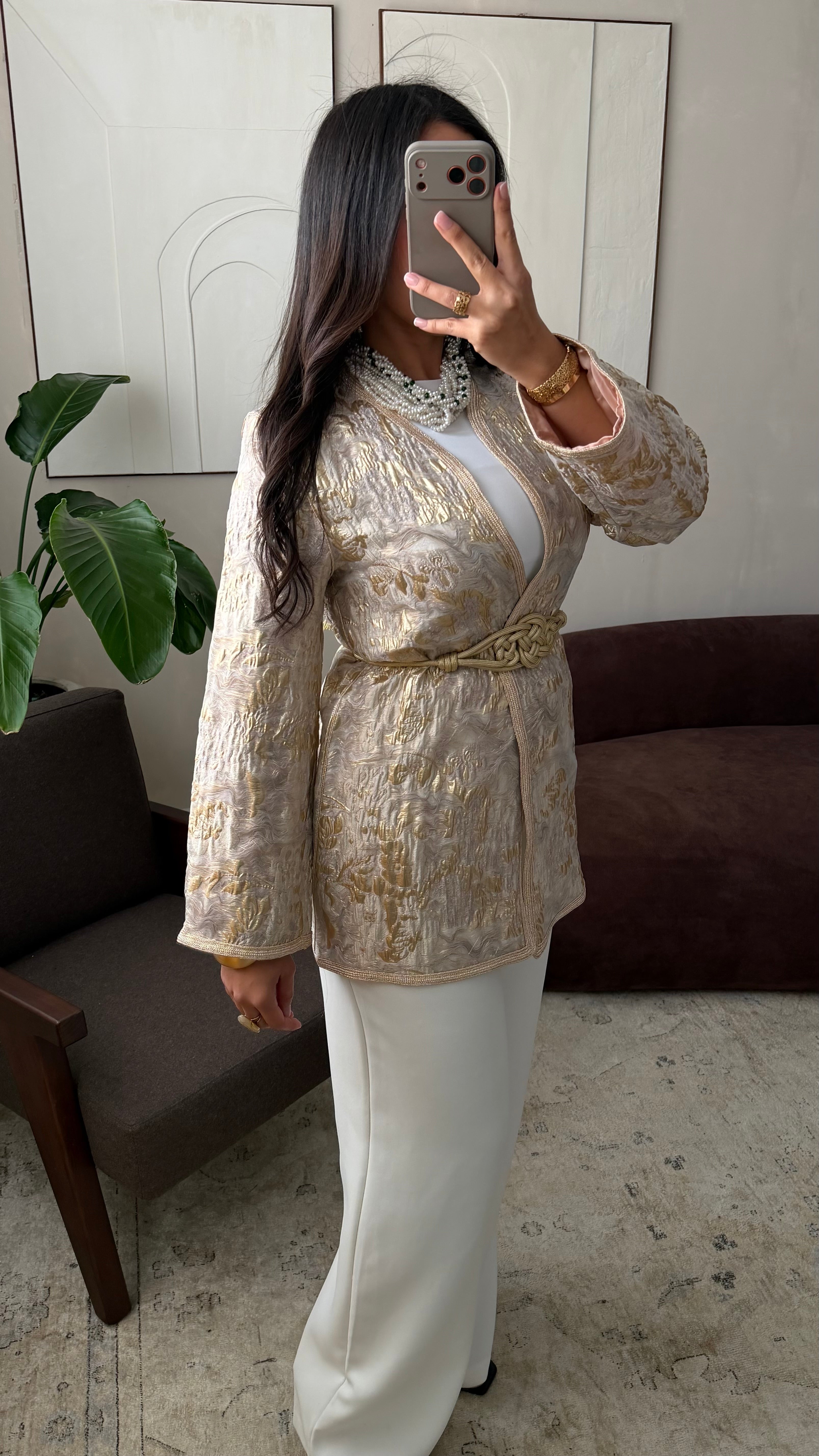 [ CRÉATION ARTISANALE 🇲🇦 ] Kimono en brocard et soie véritable I Dorée