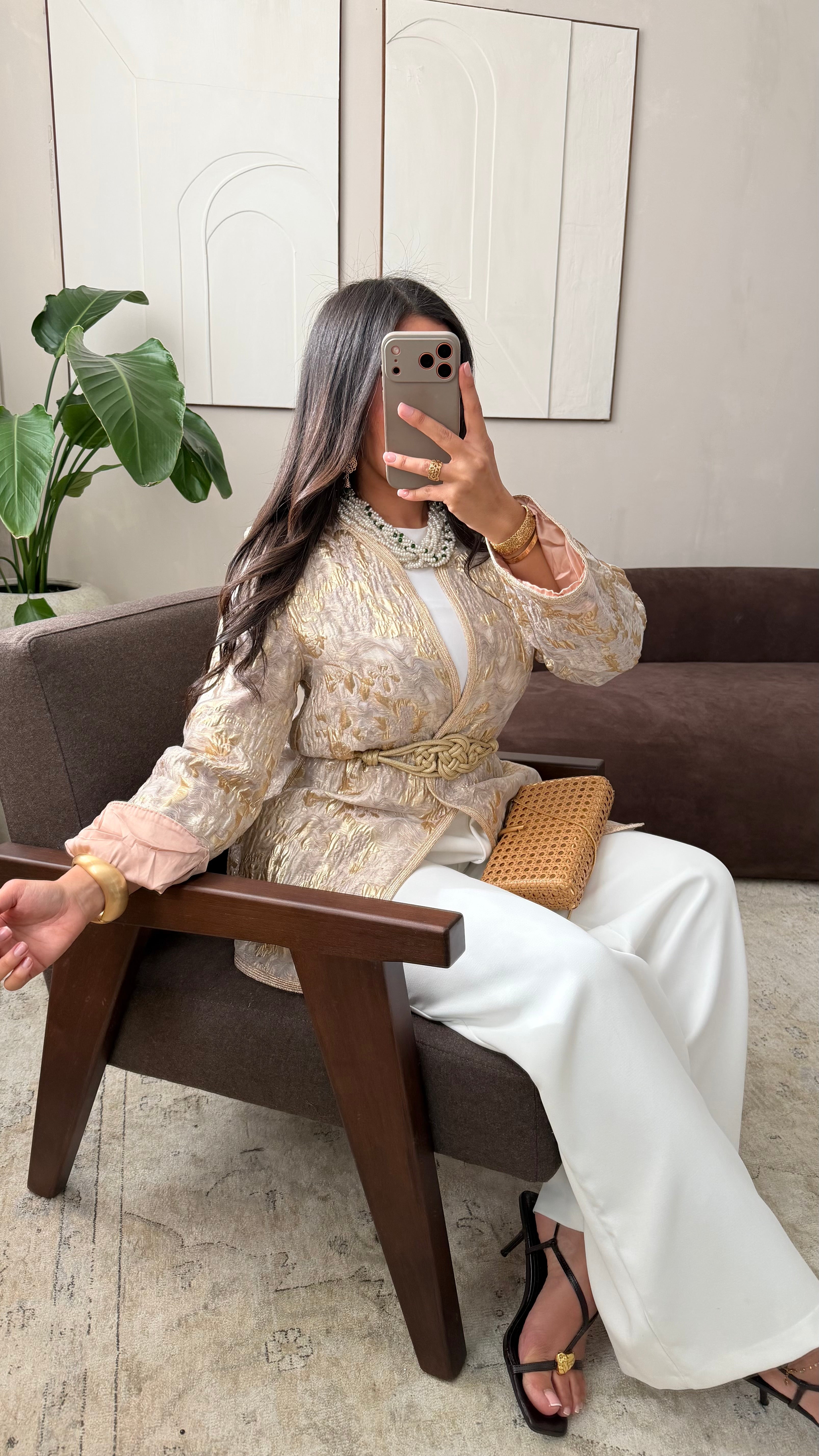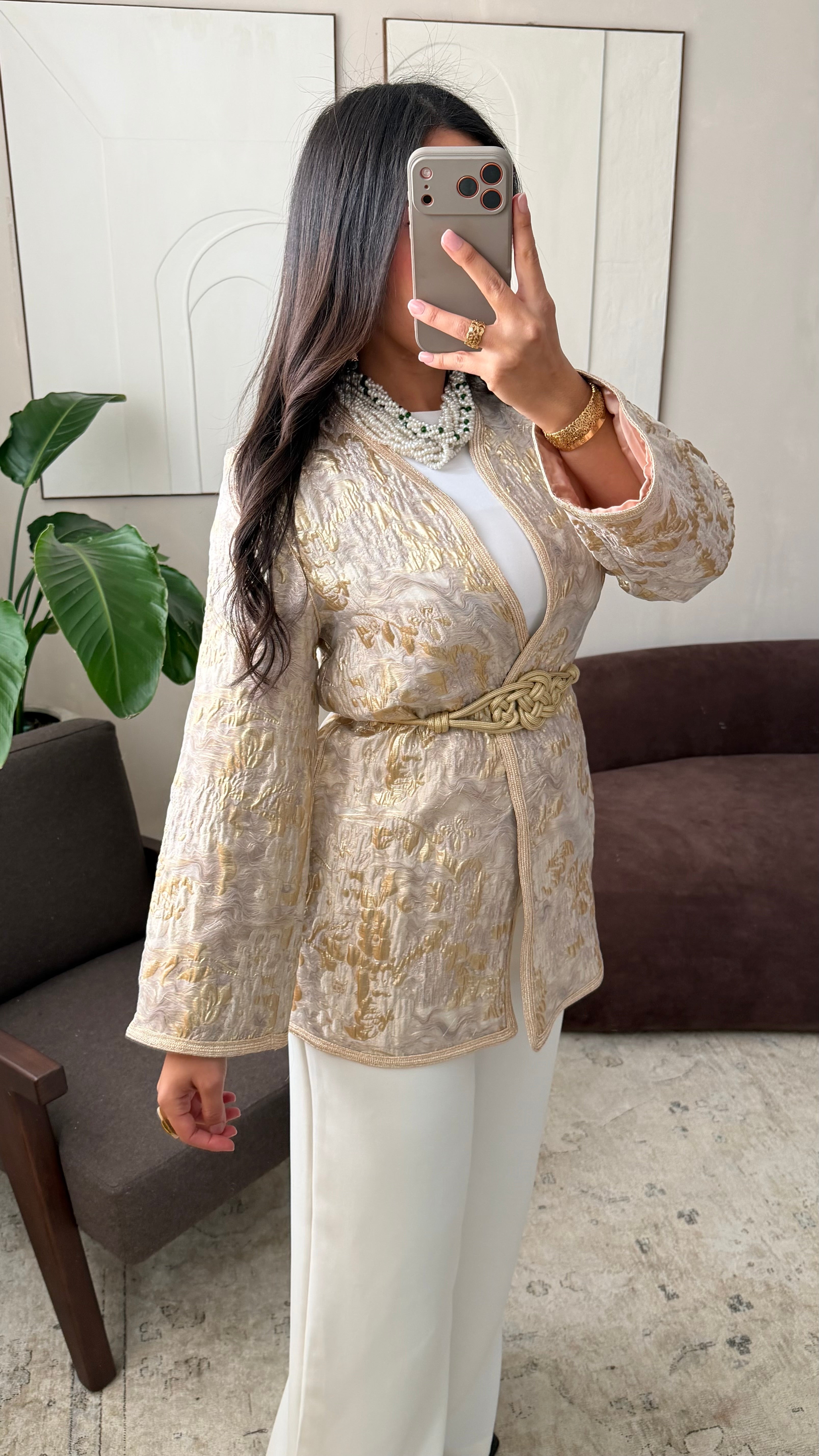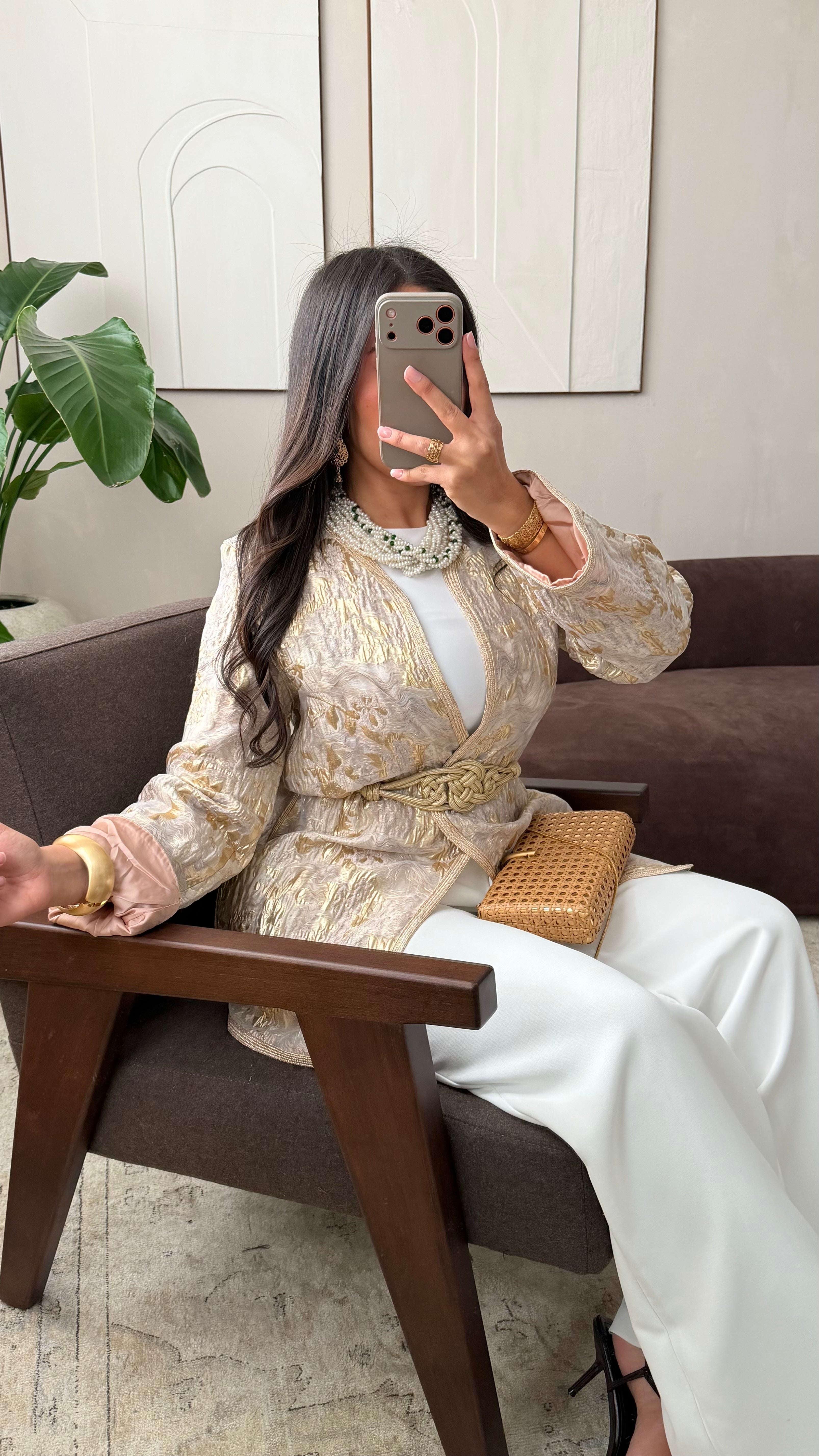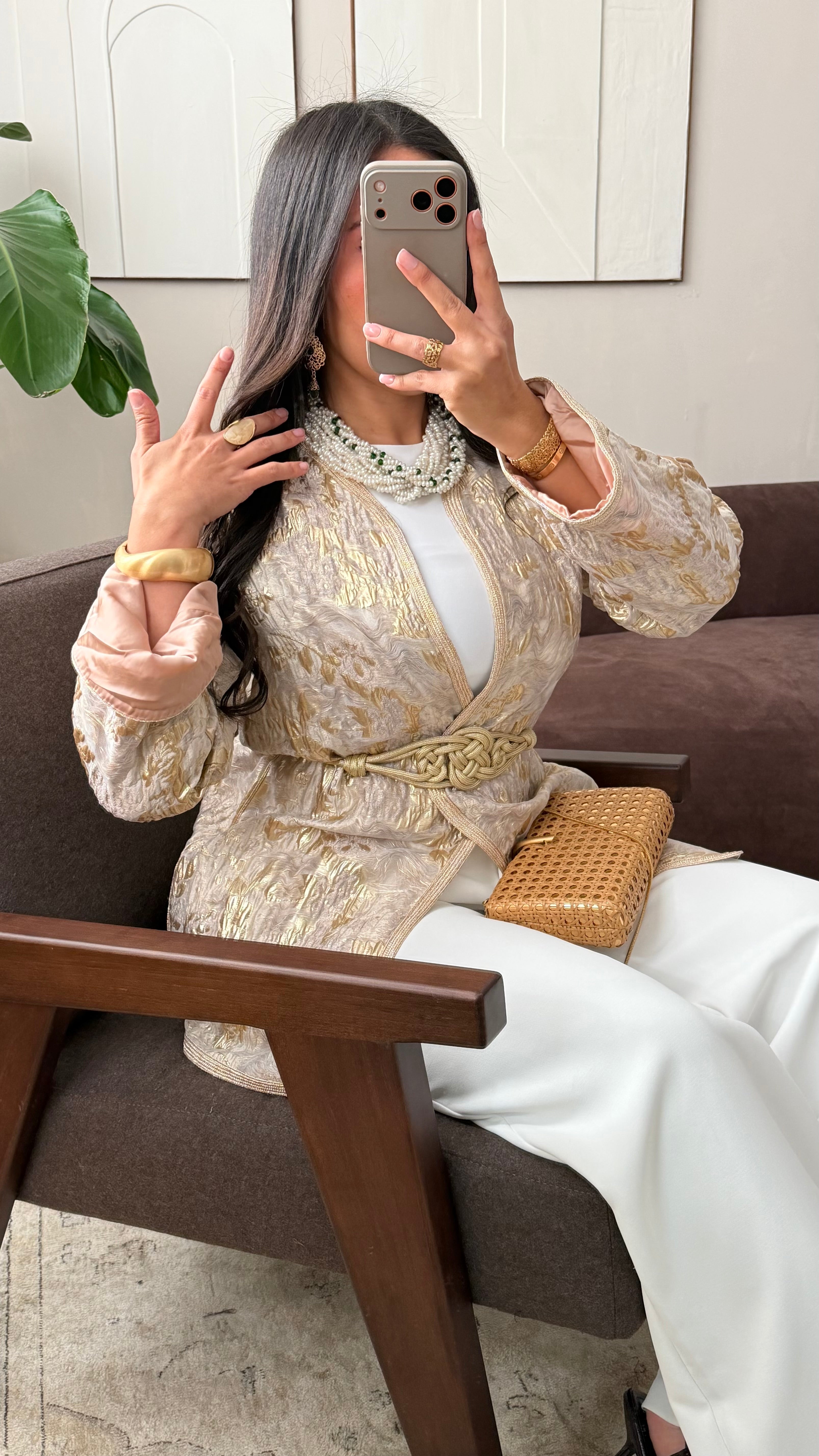[ CRÉATION ARTISANALE 🇲🇦 ] Kimono en brocard et soie véritable I Dorée