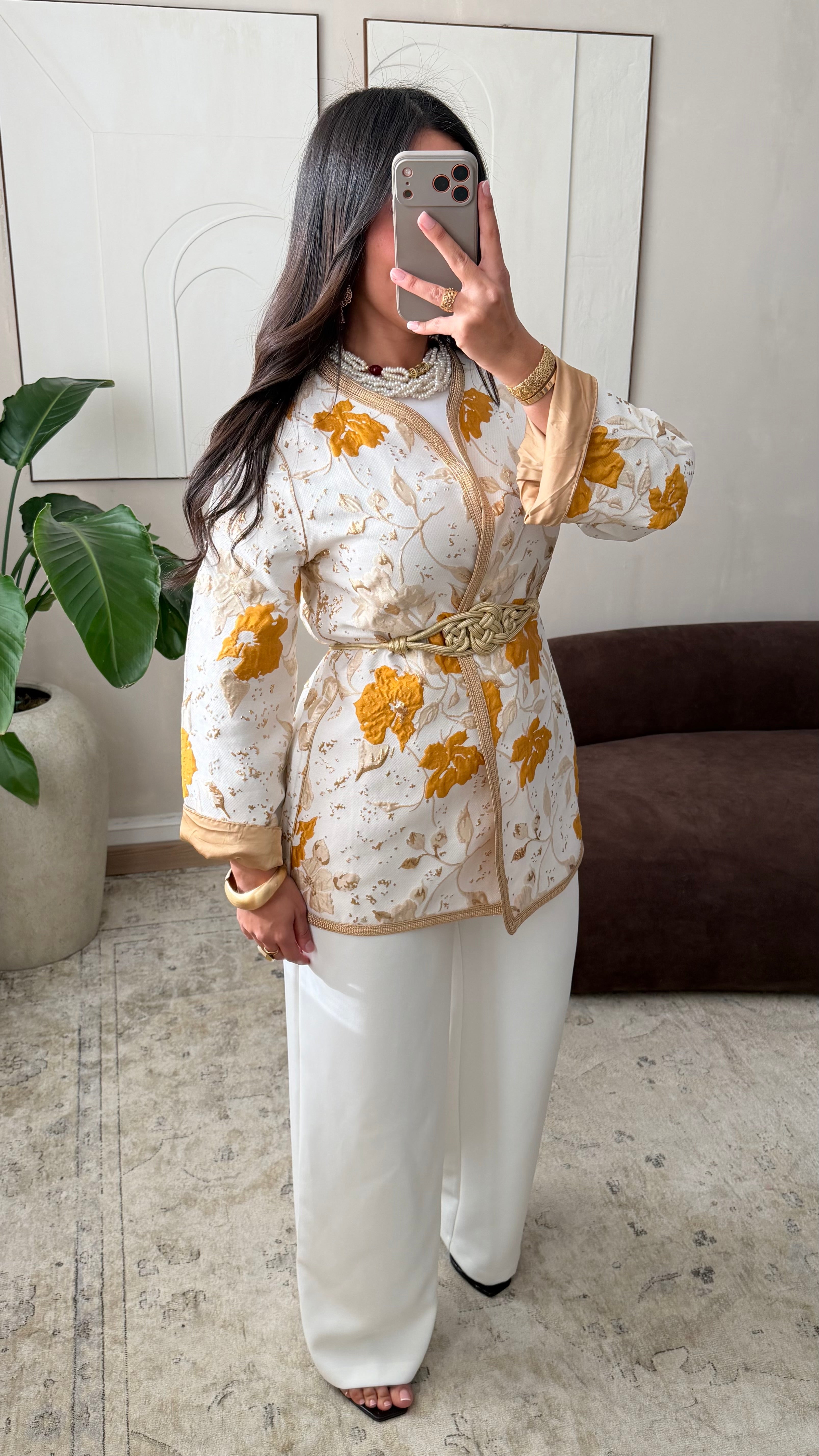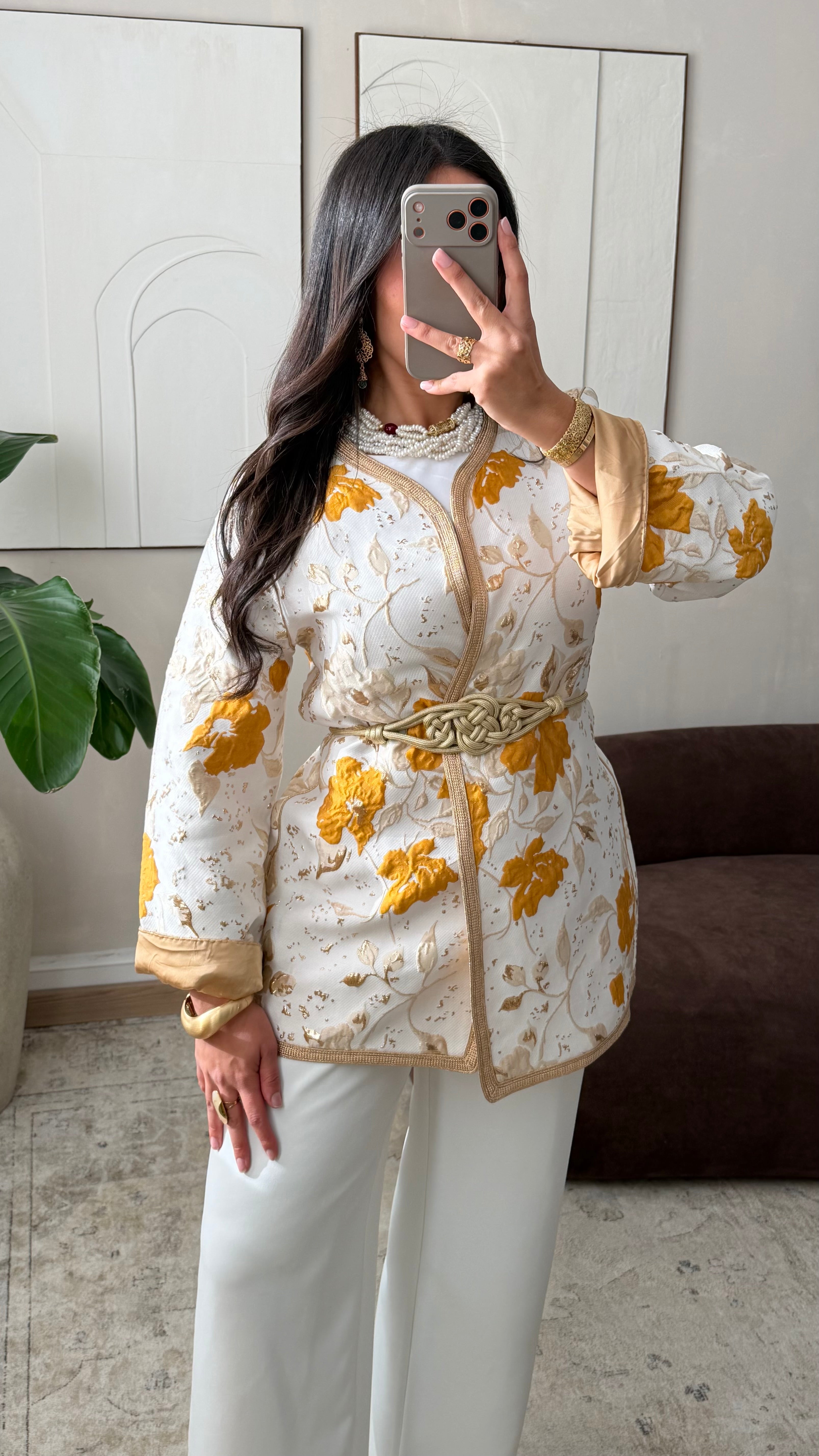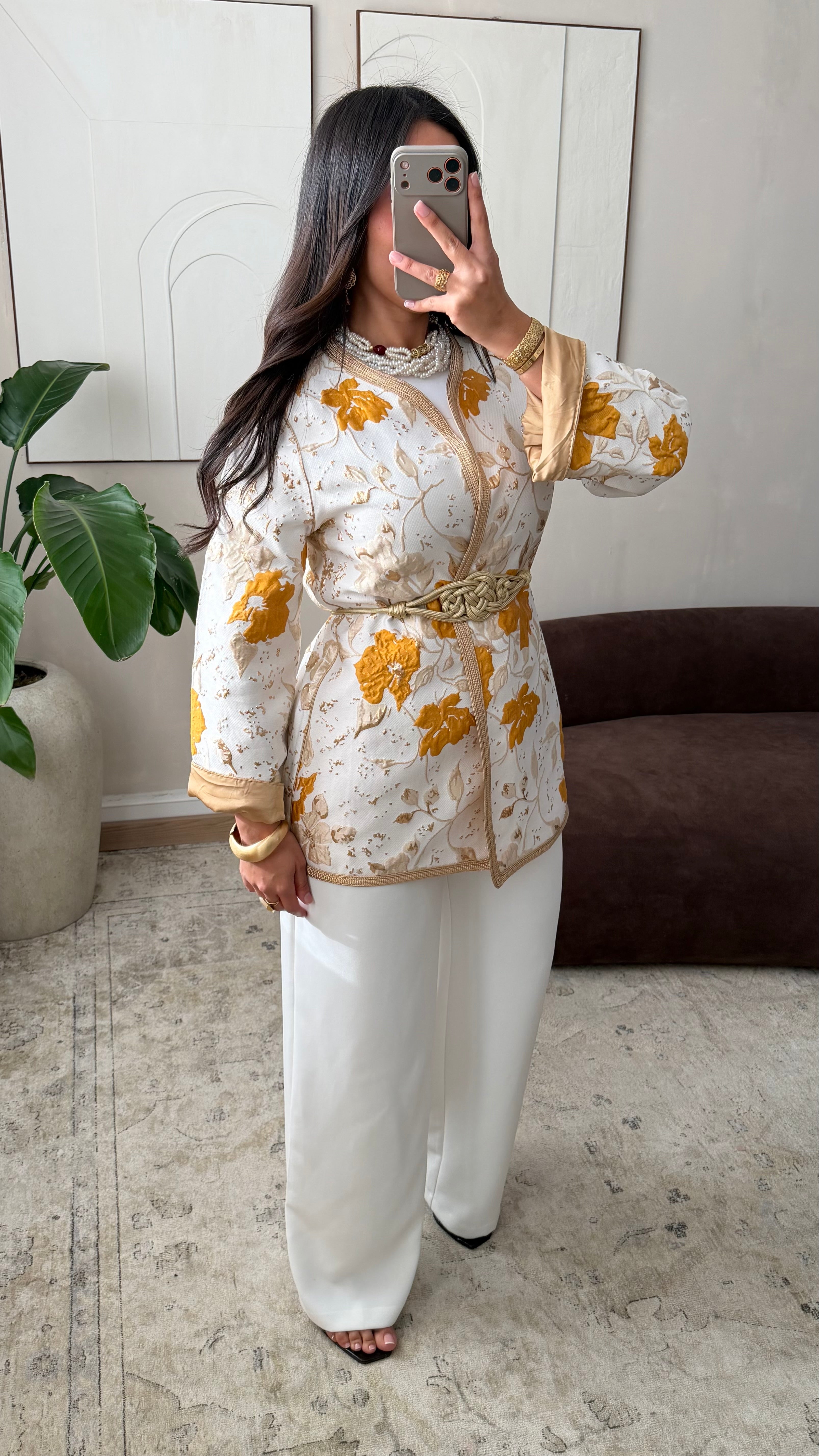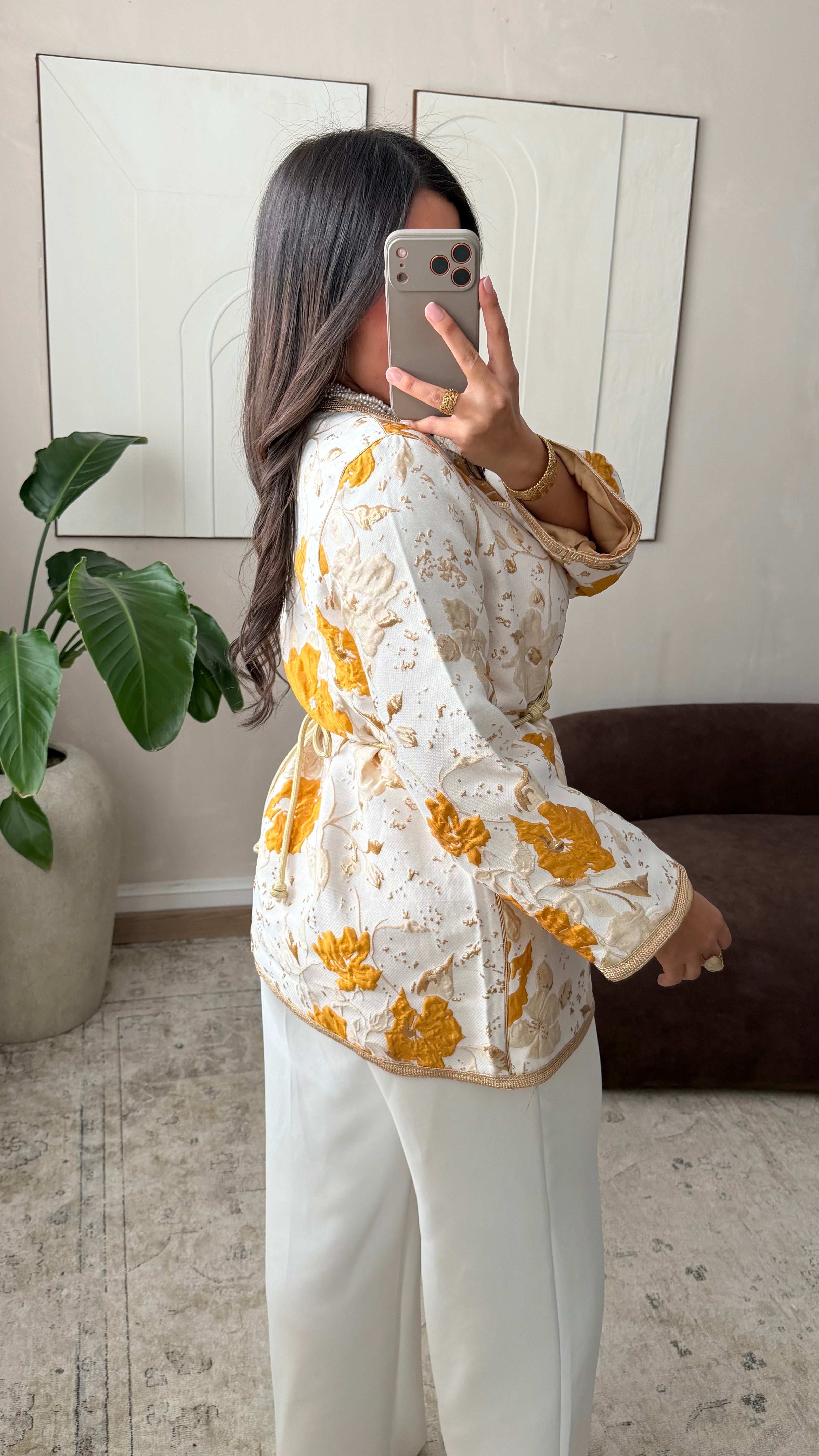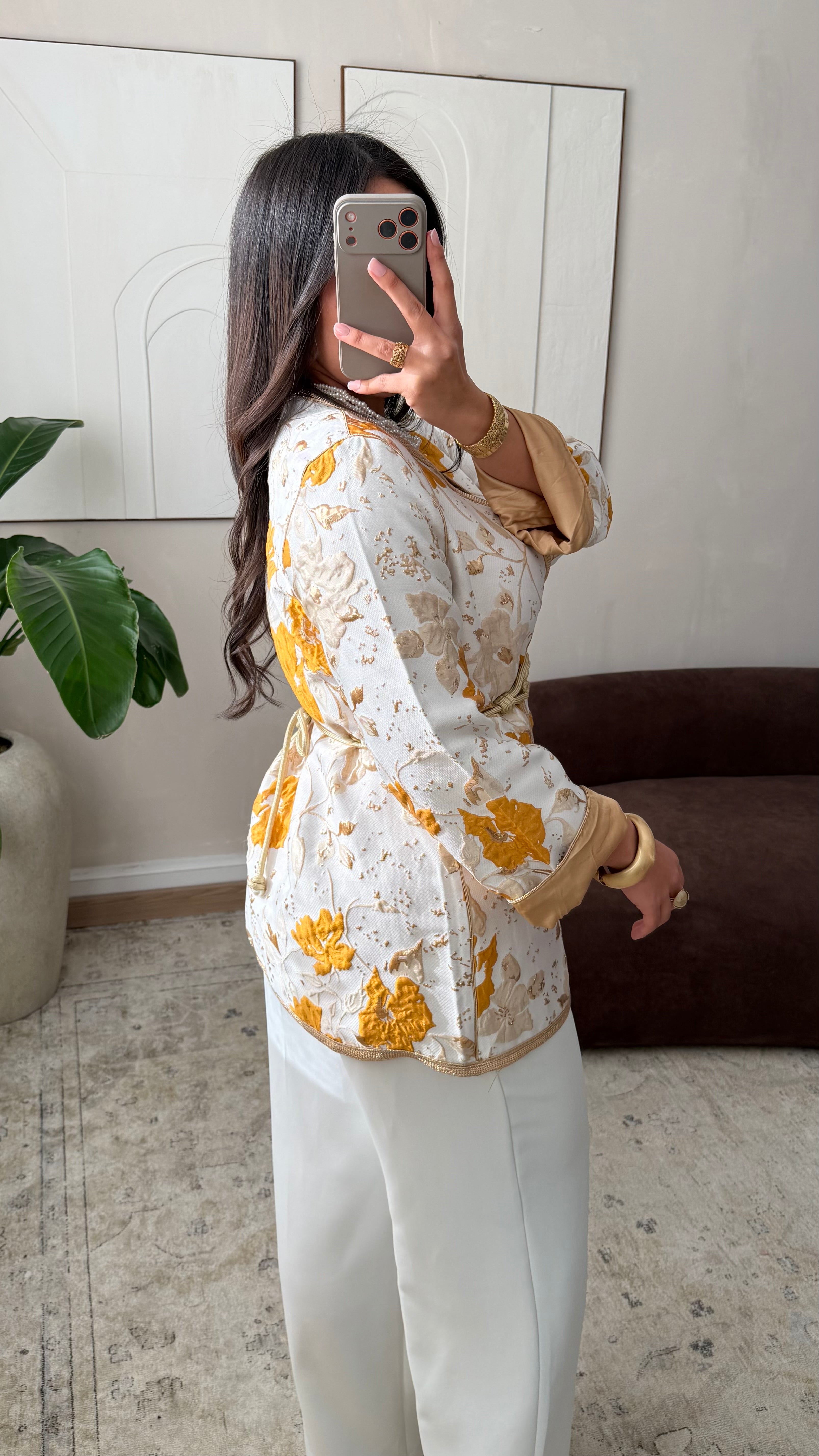 [ CRÉATION ARTISANALE 🇲🇦 ] Kimono en brocard I Curcuma