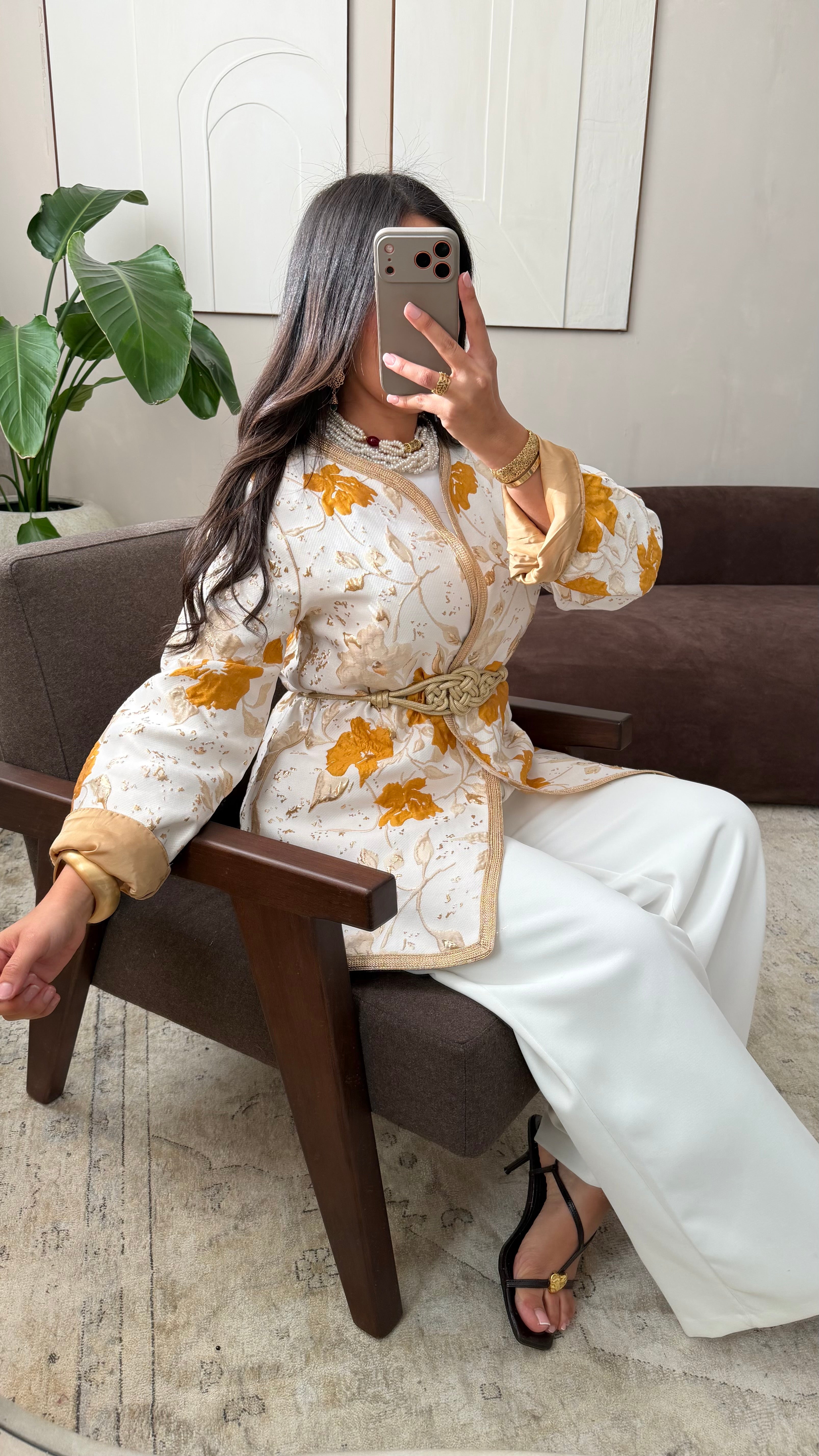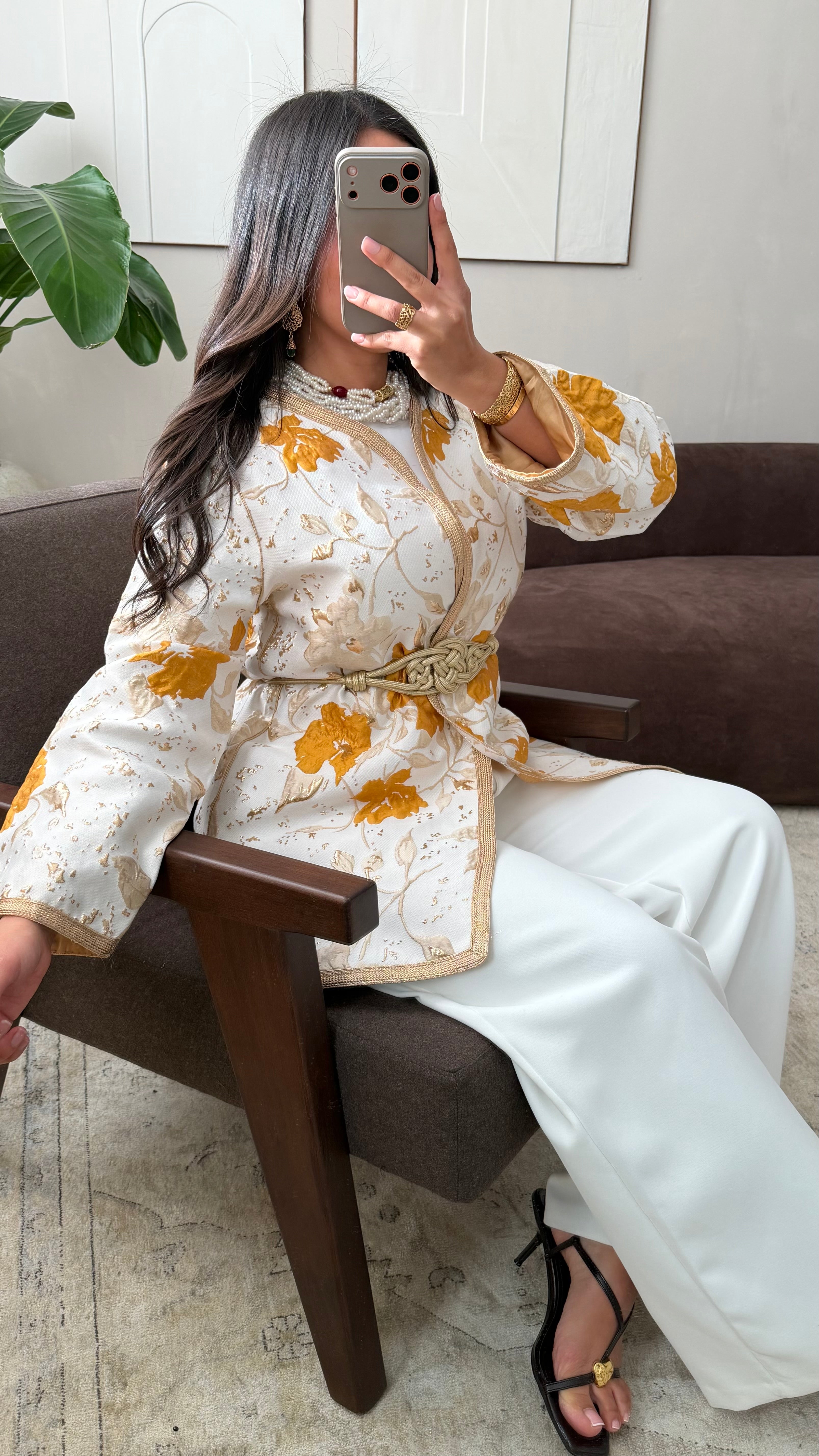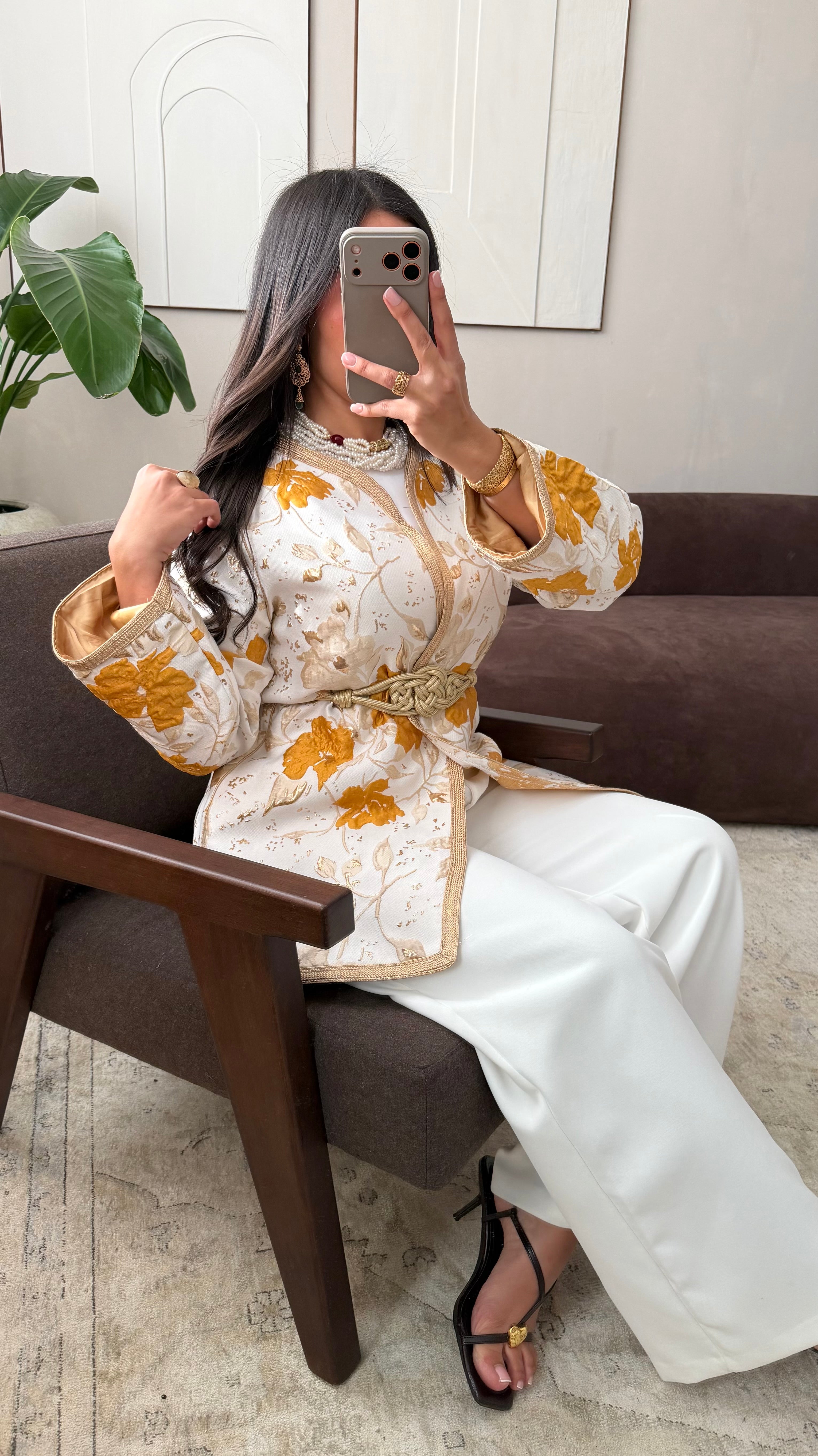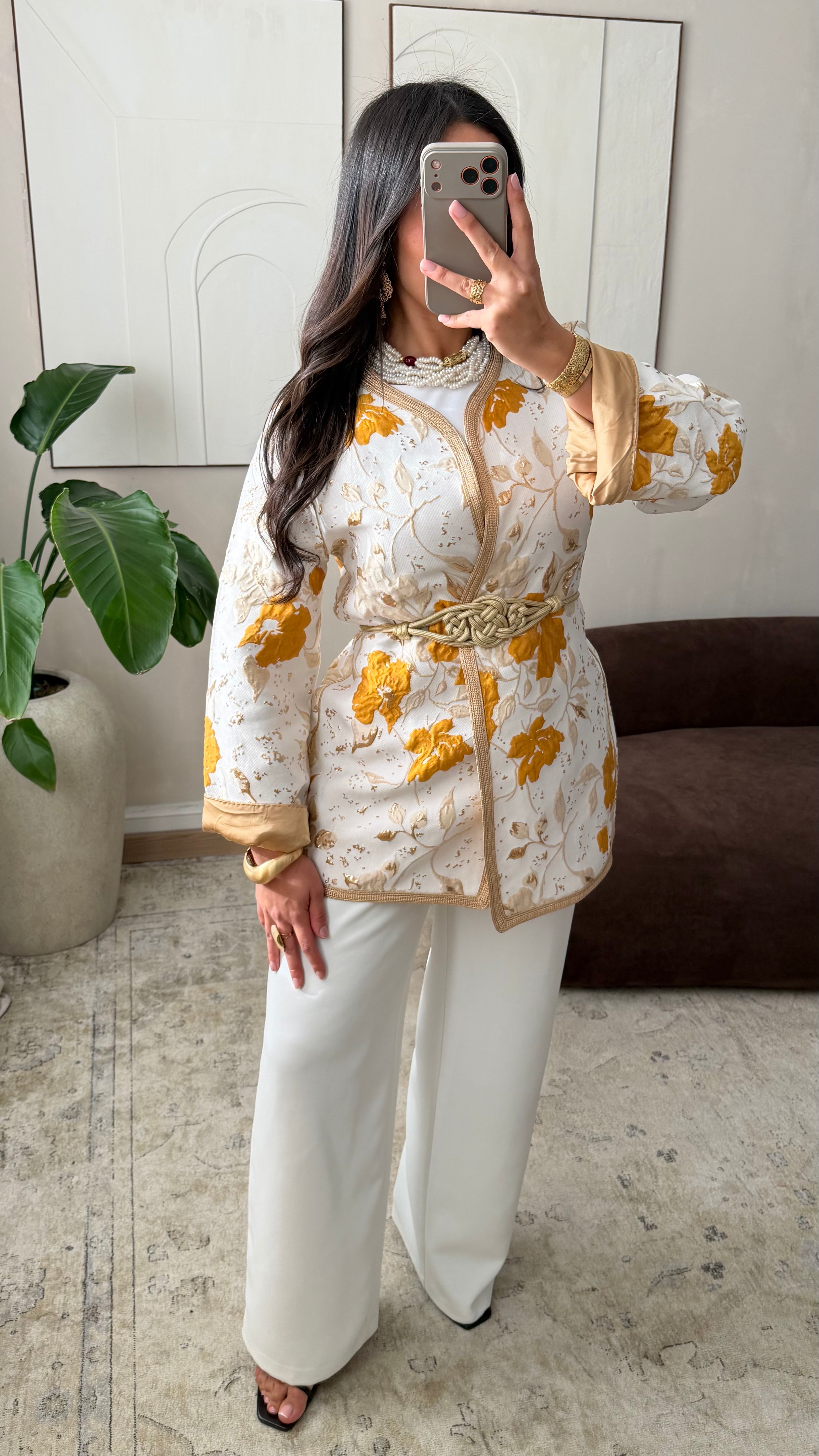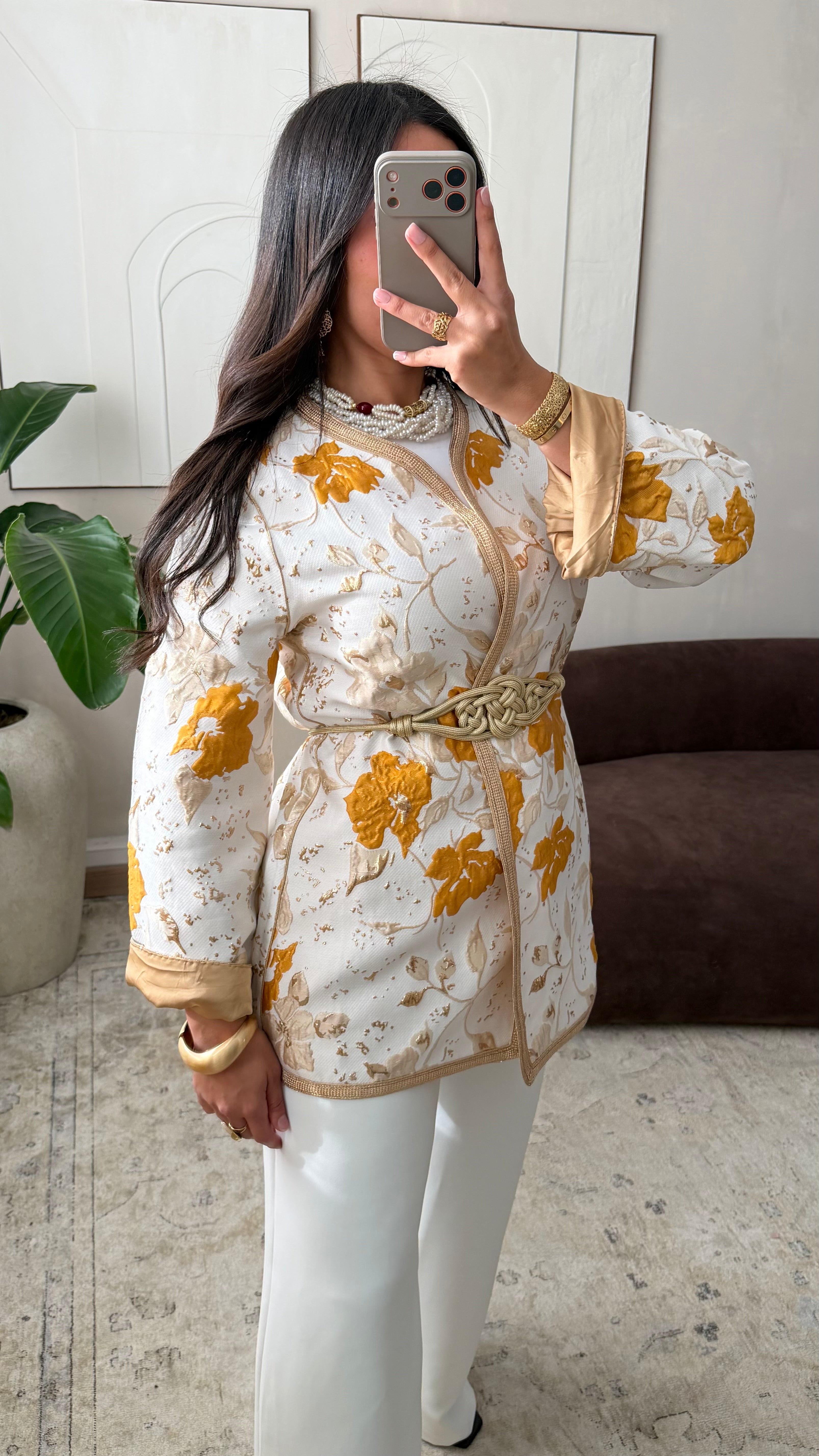 [ CRÉATION ARTISANALE 🇲🇦 ] Kimono en brocard I Curcuma