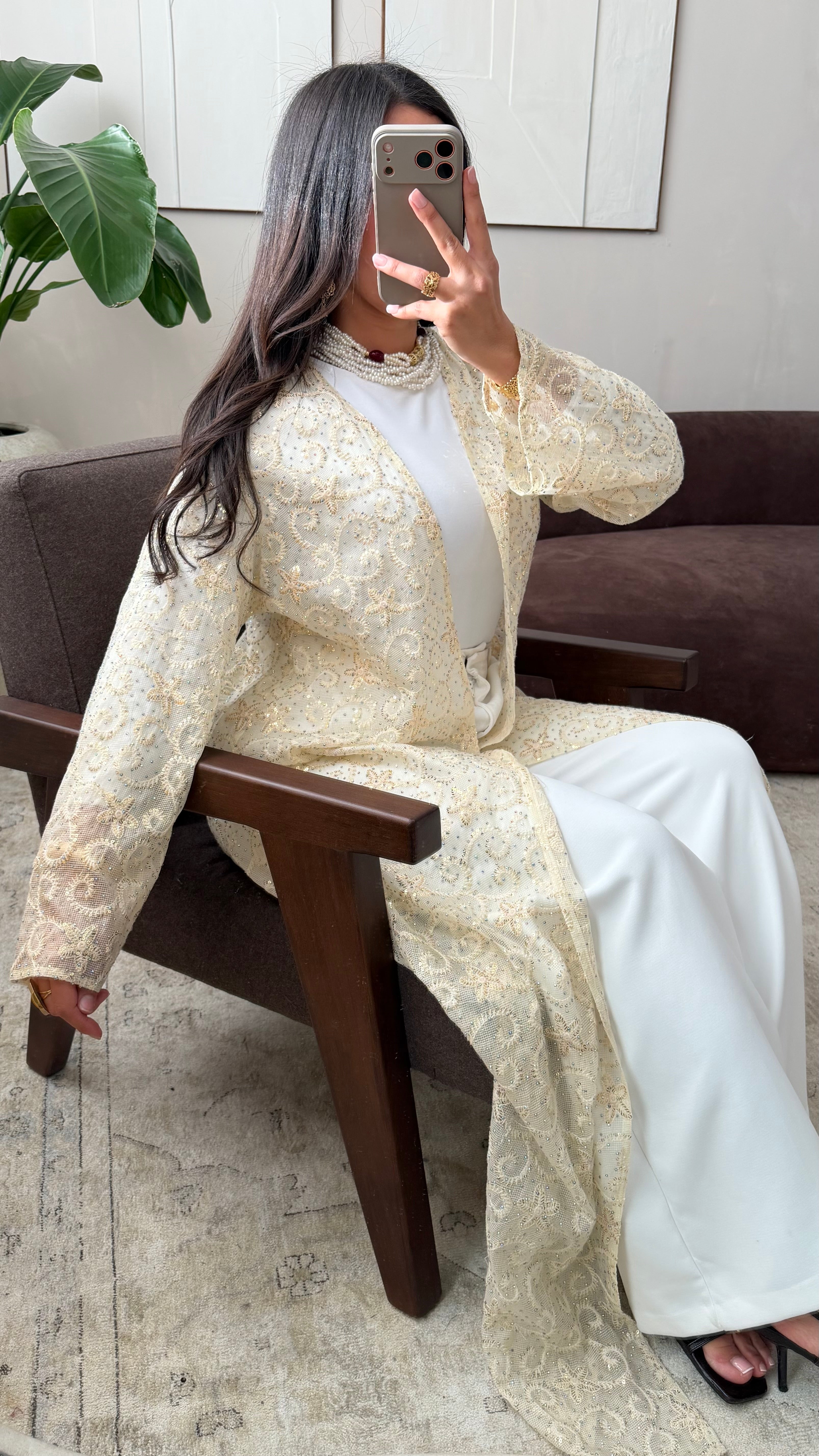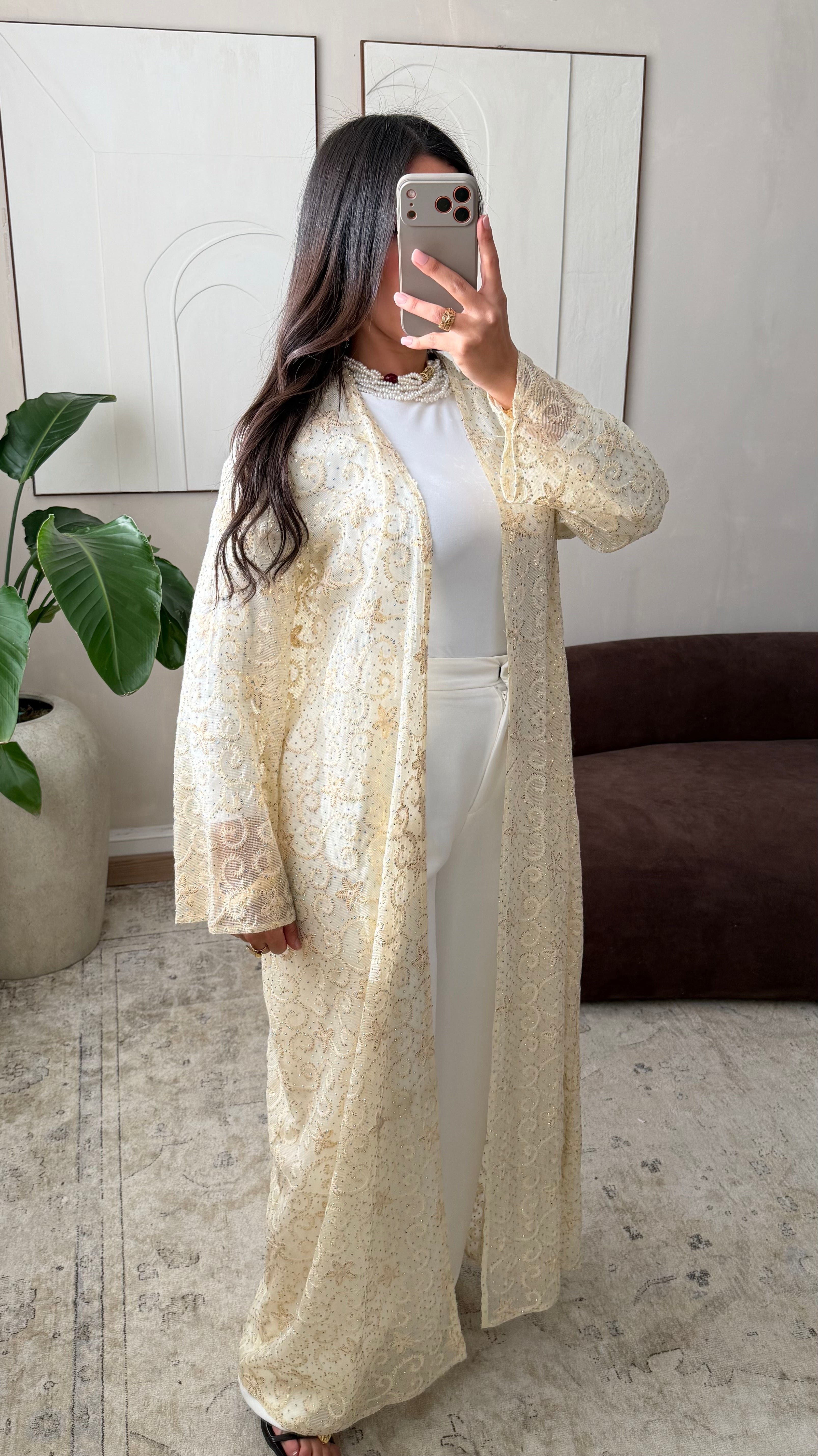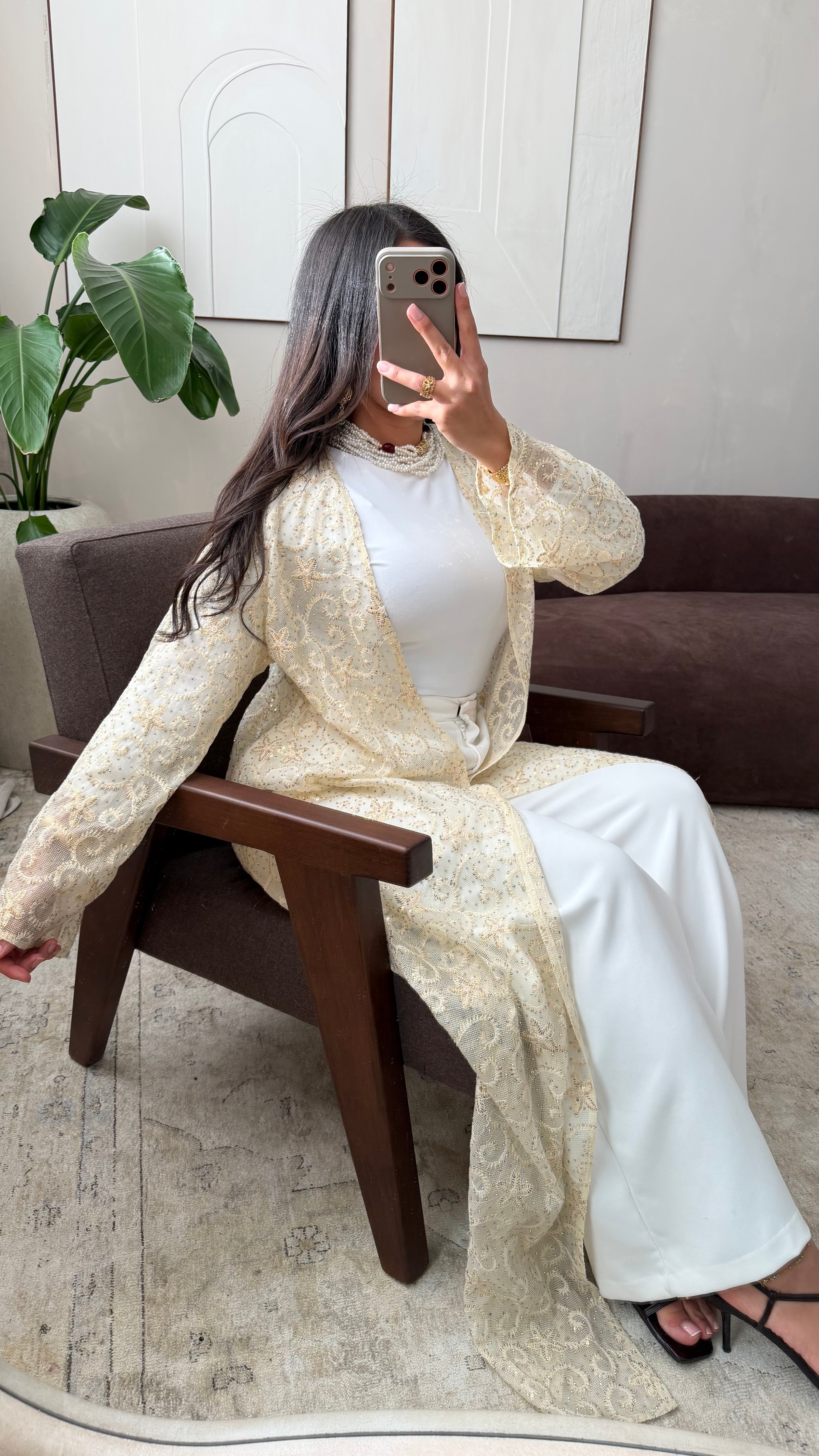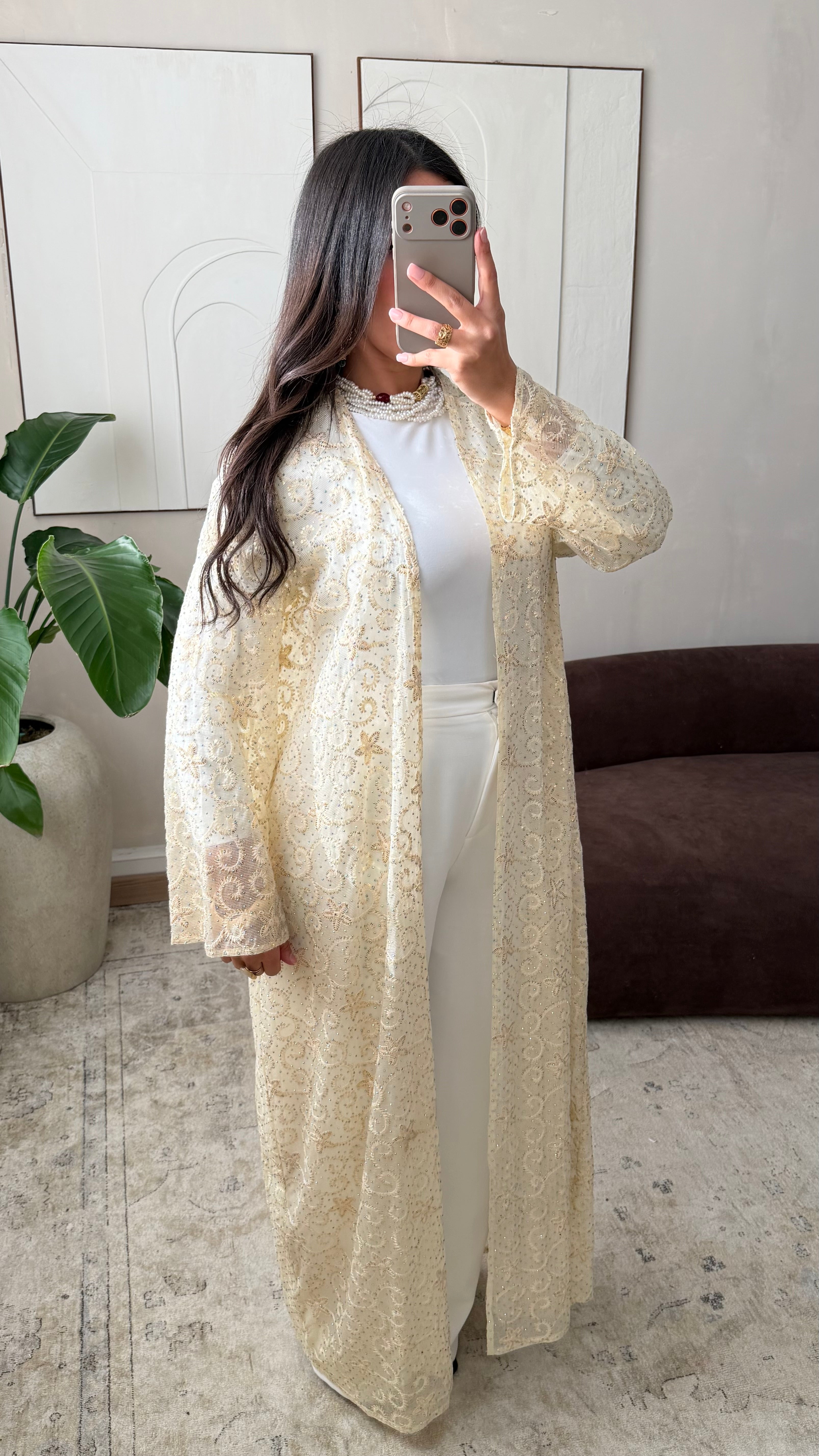 [EDITION LIMITÉE ATELIER DUBAÏ] Kimono long strass I Jaune pastel
