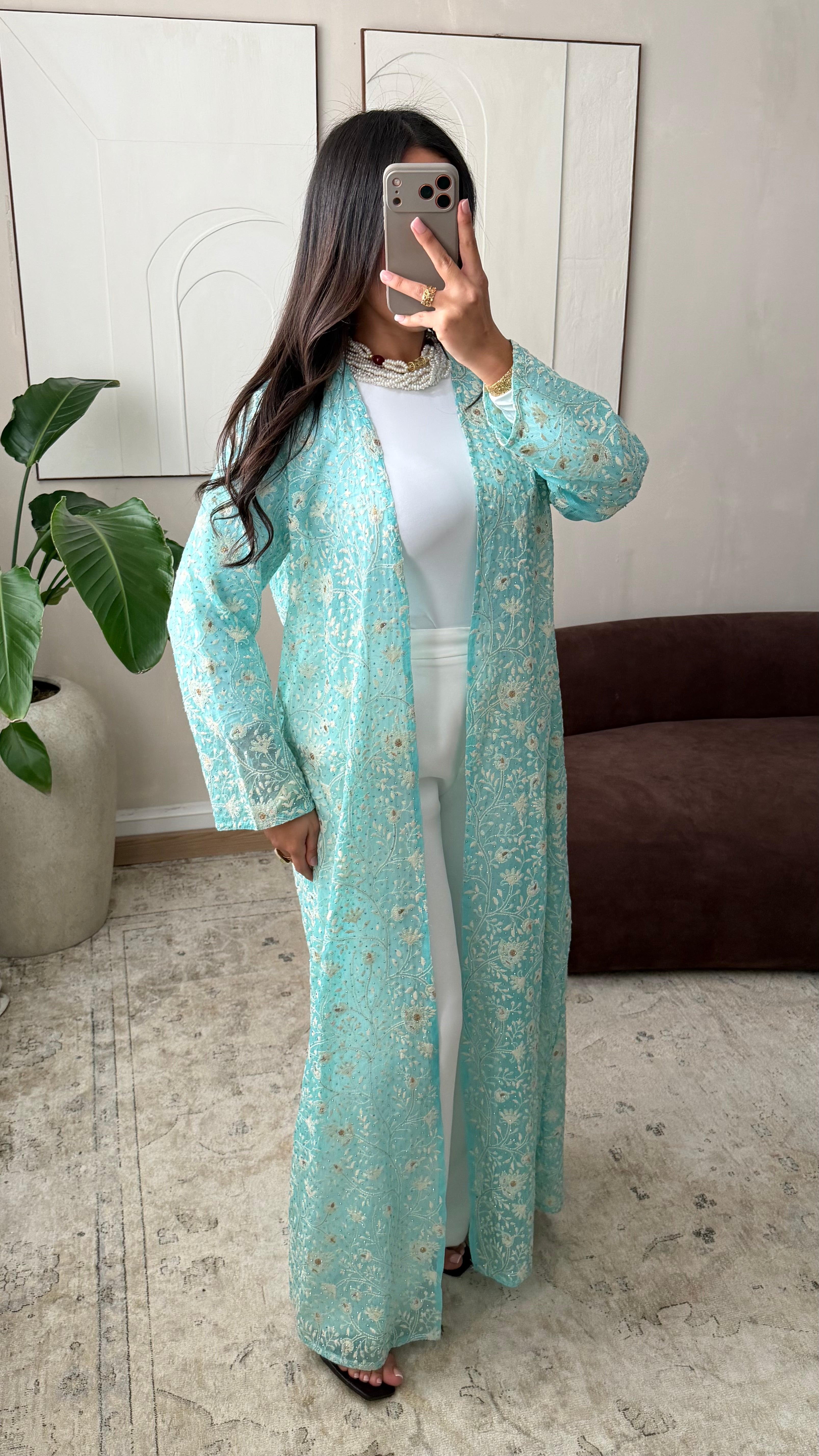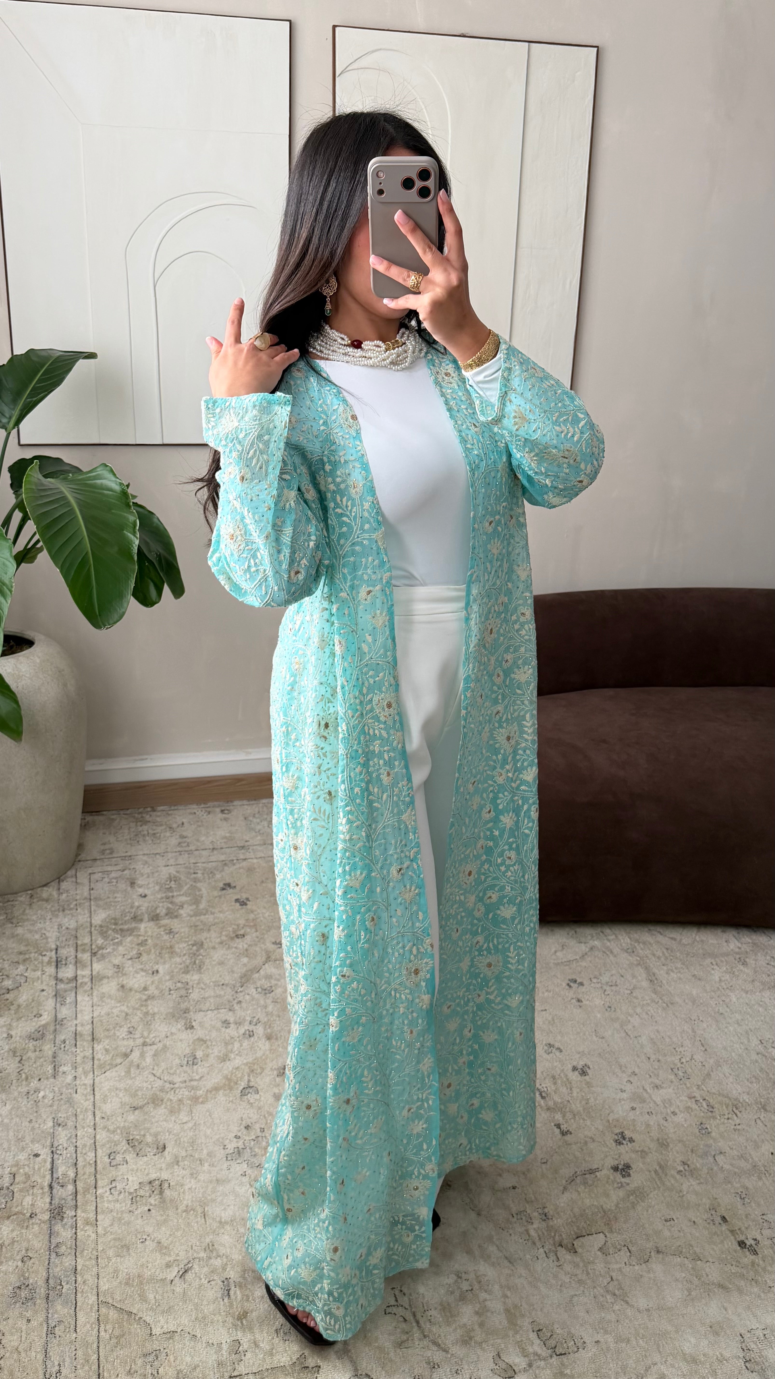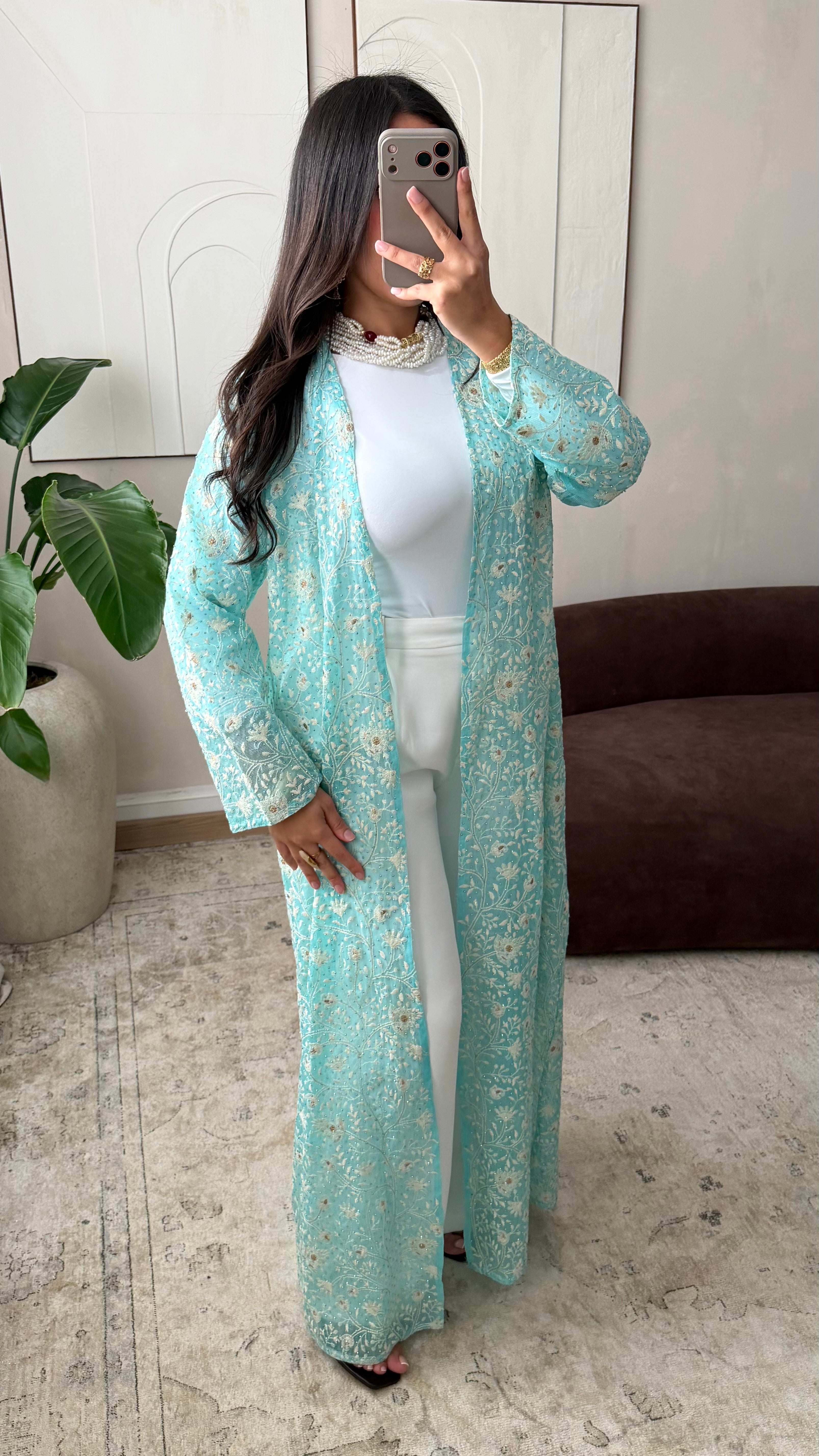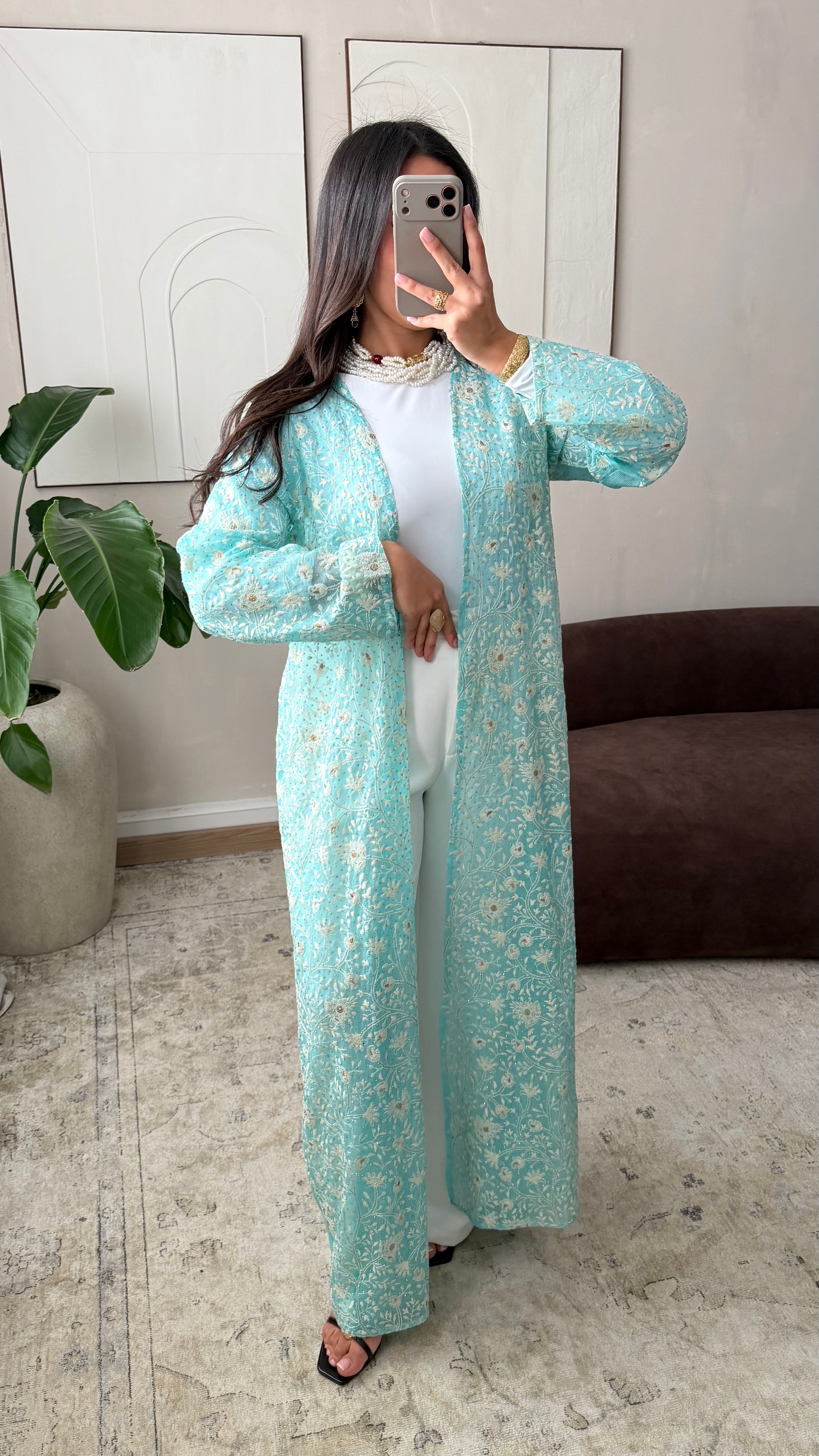 [EDITION LIMITÉE ATELIER DUBAÏ] Kimono long strass I Bleu turquoise