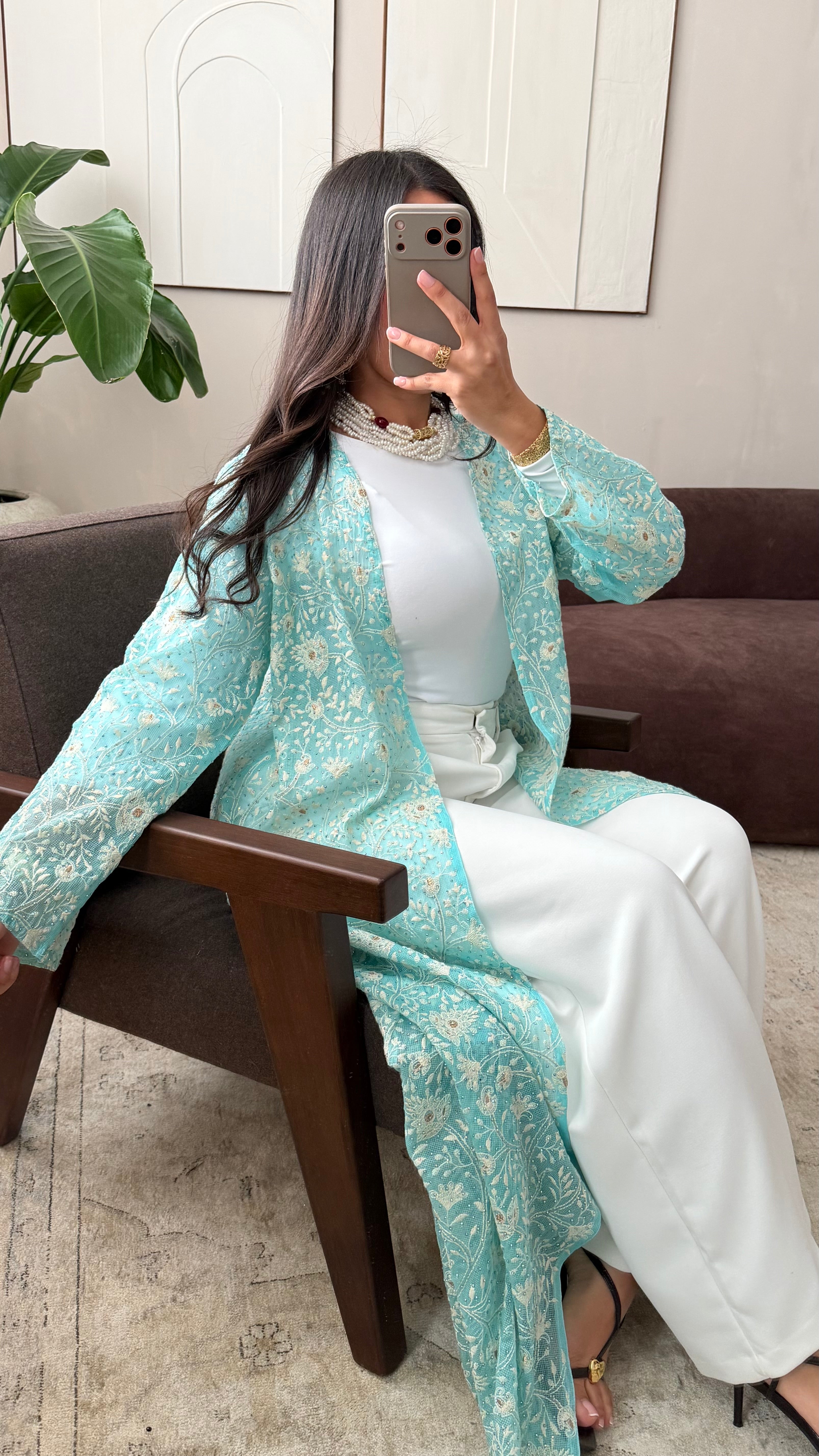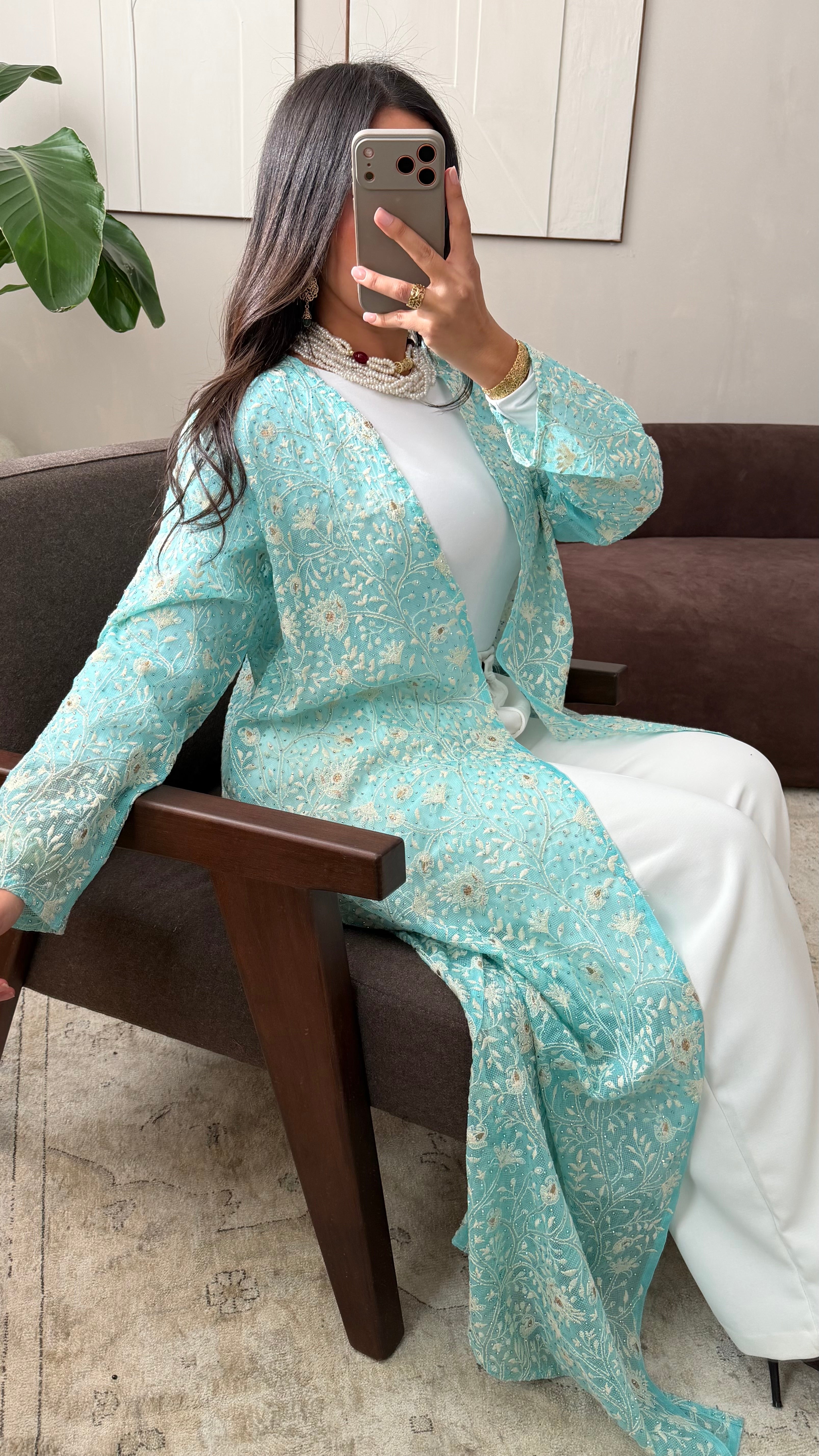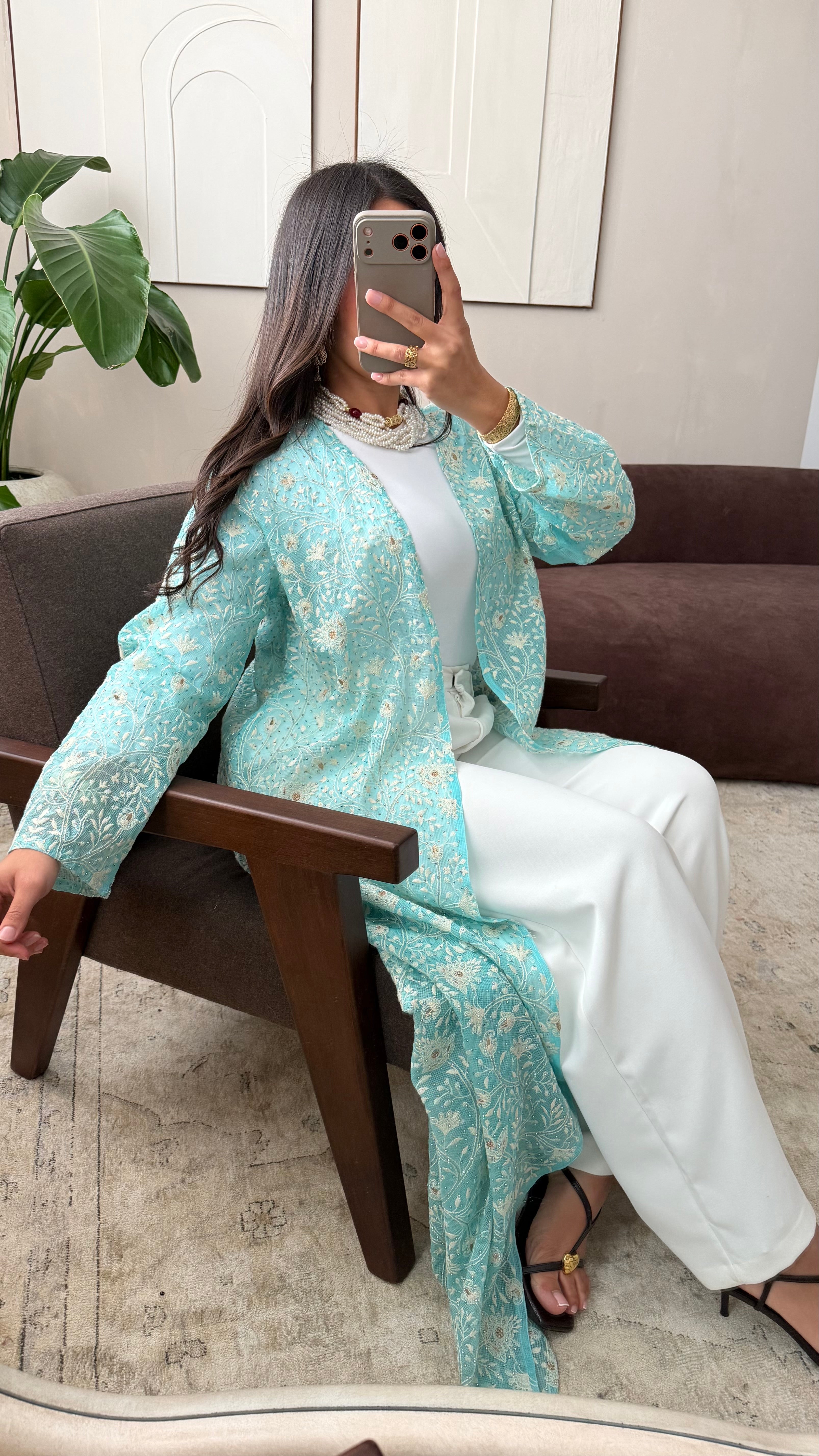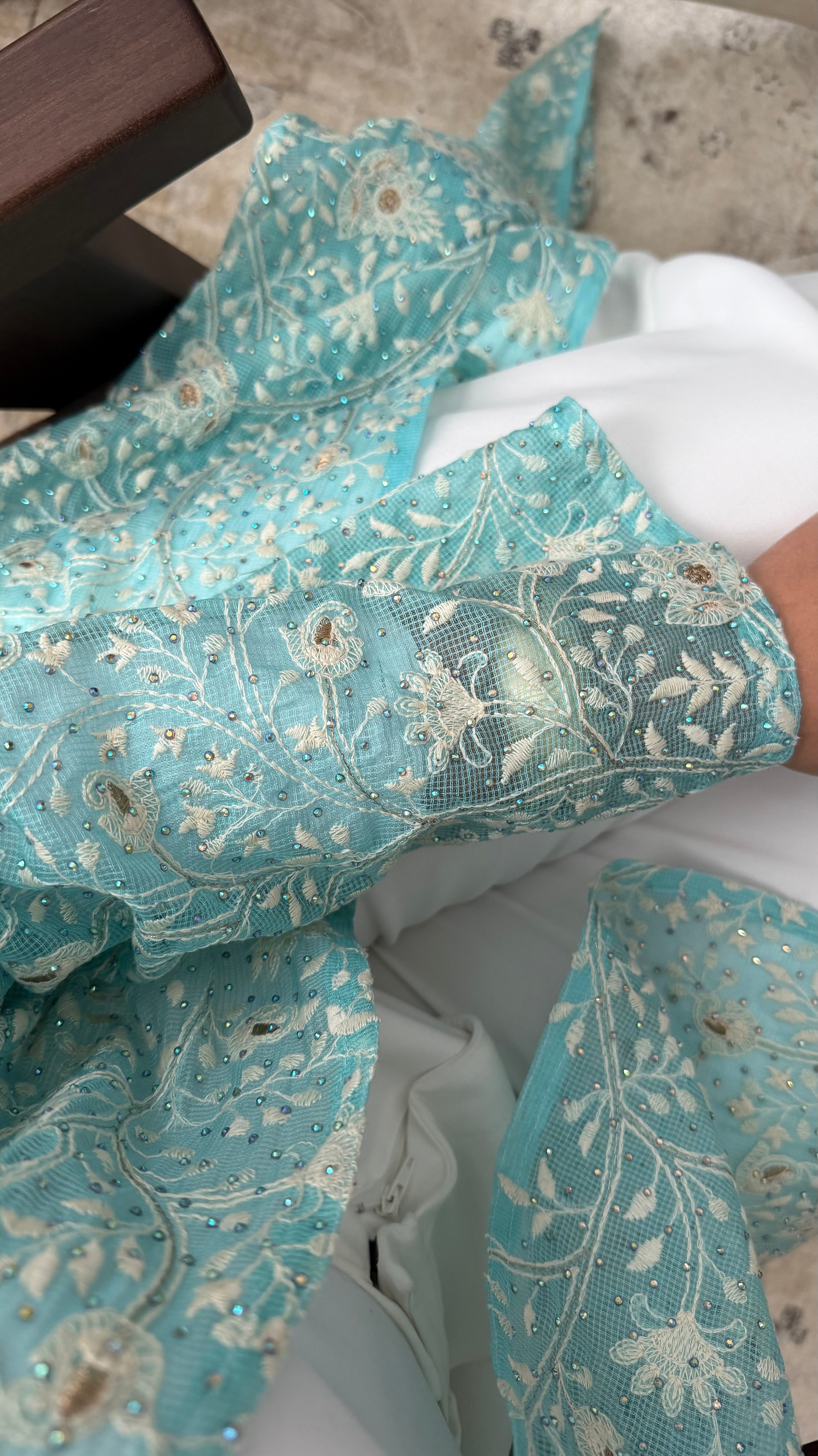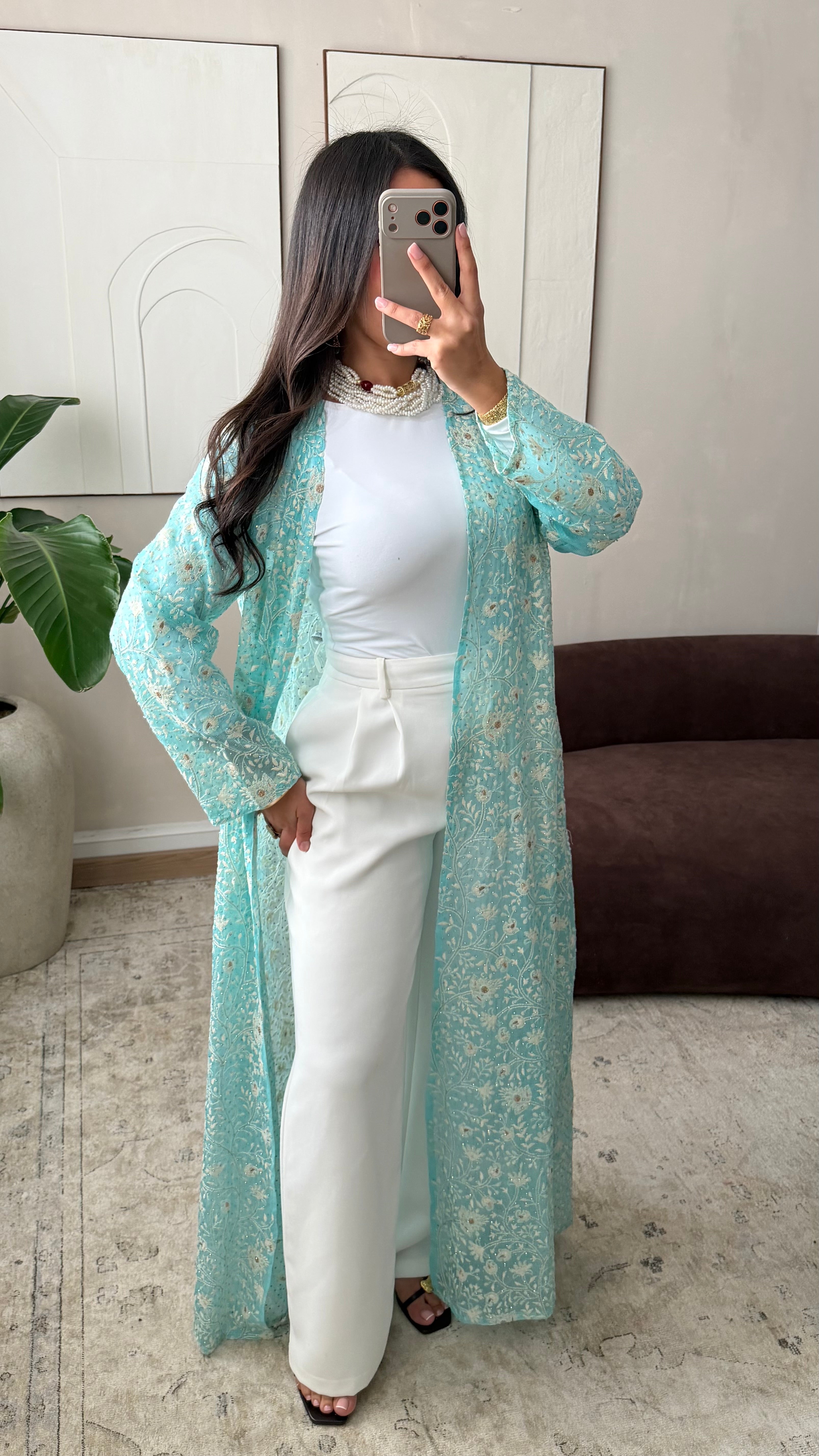 [EDITION LIMITÉE ATELIER DUBAÏ] Kimono long strass I Bleu turquoise