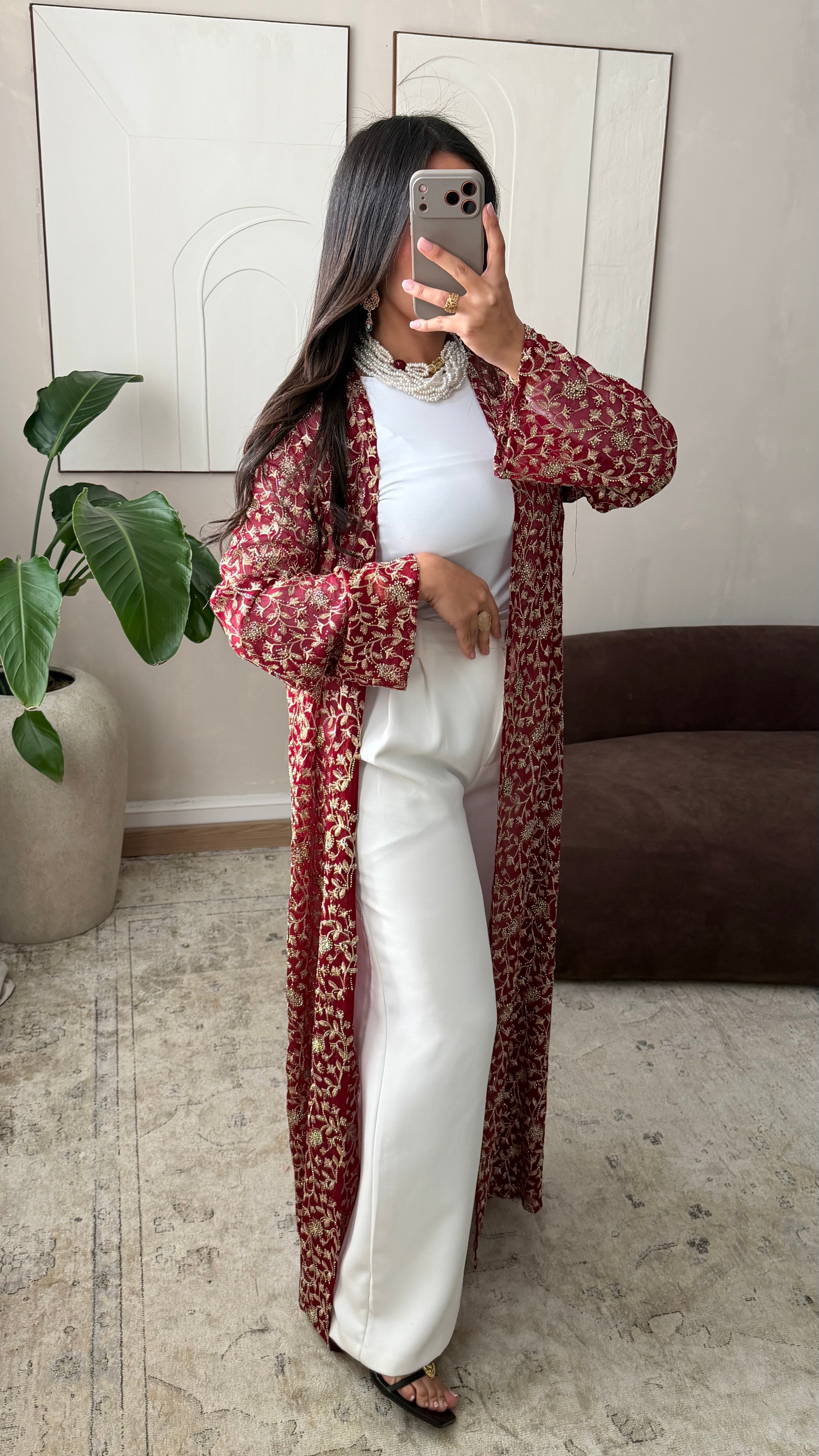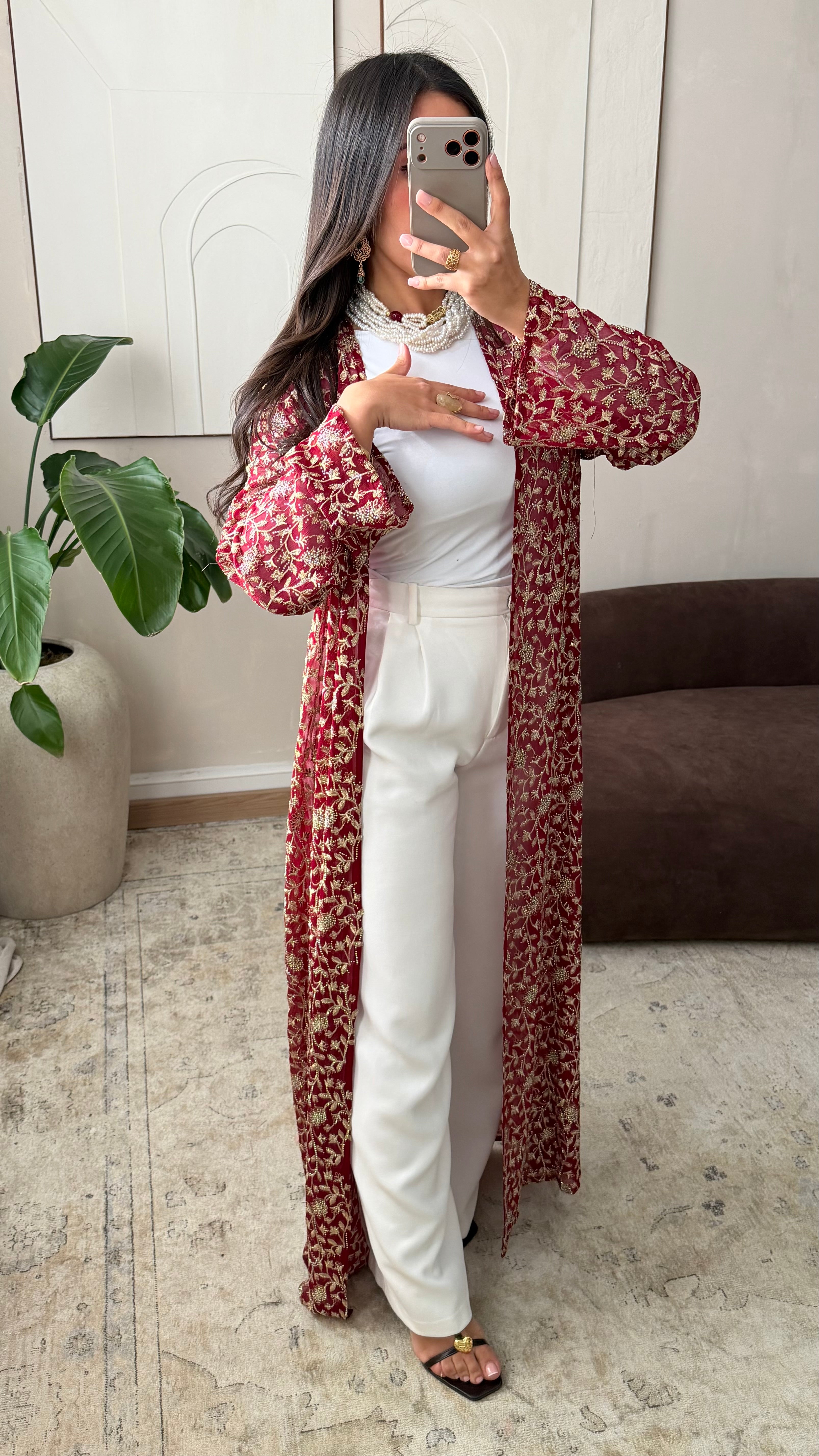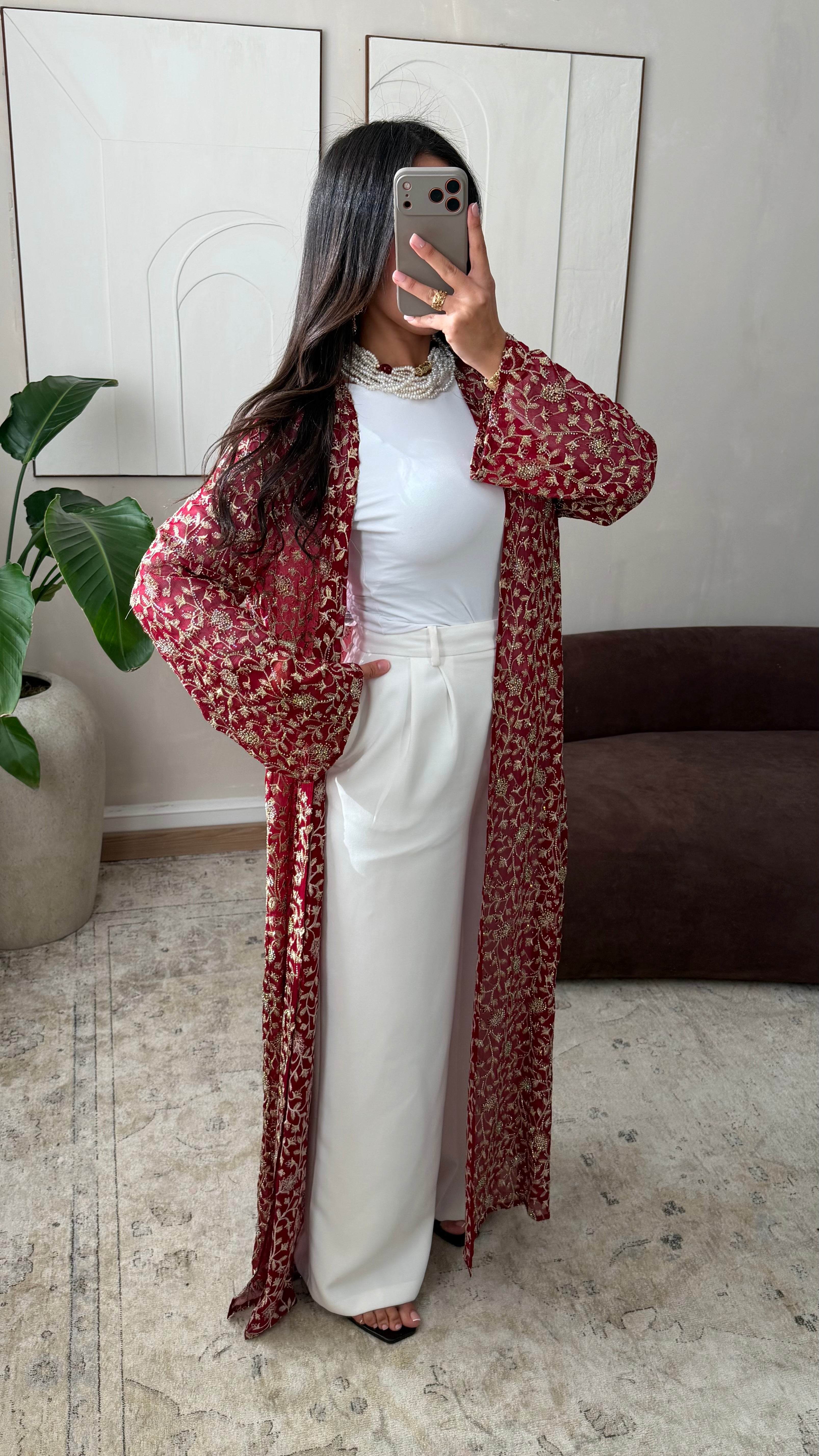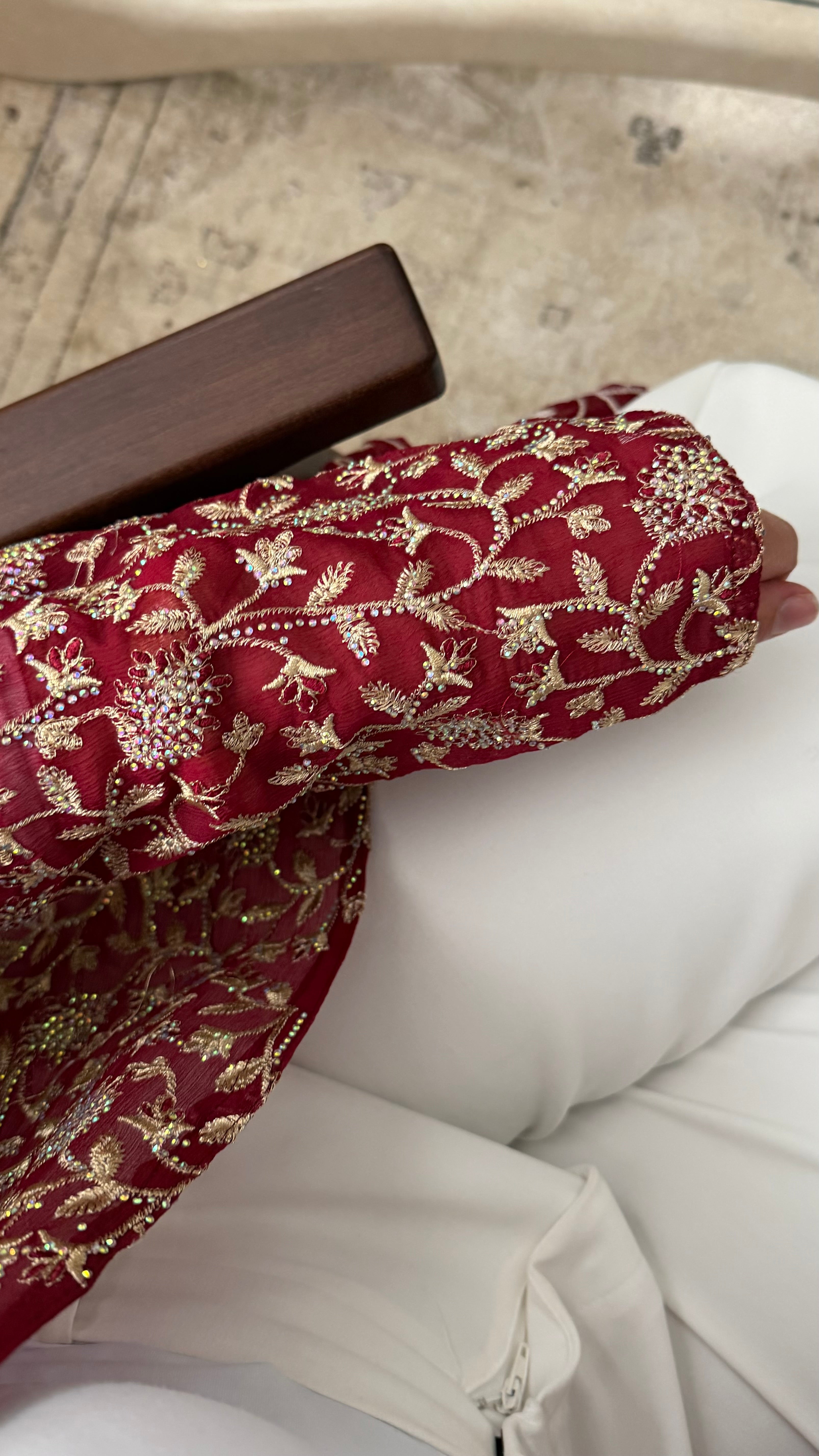 [EDITION LIMITÉE ATELIER DUBAÏ] Kimono long strass I Bordeaux