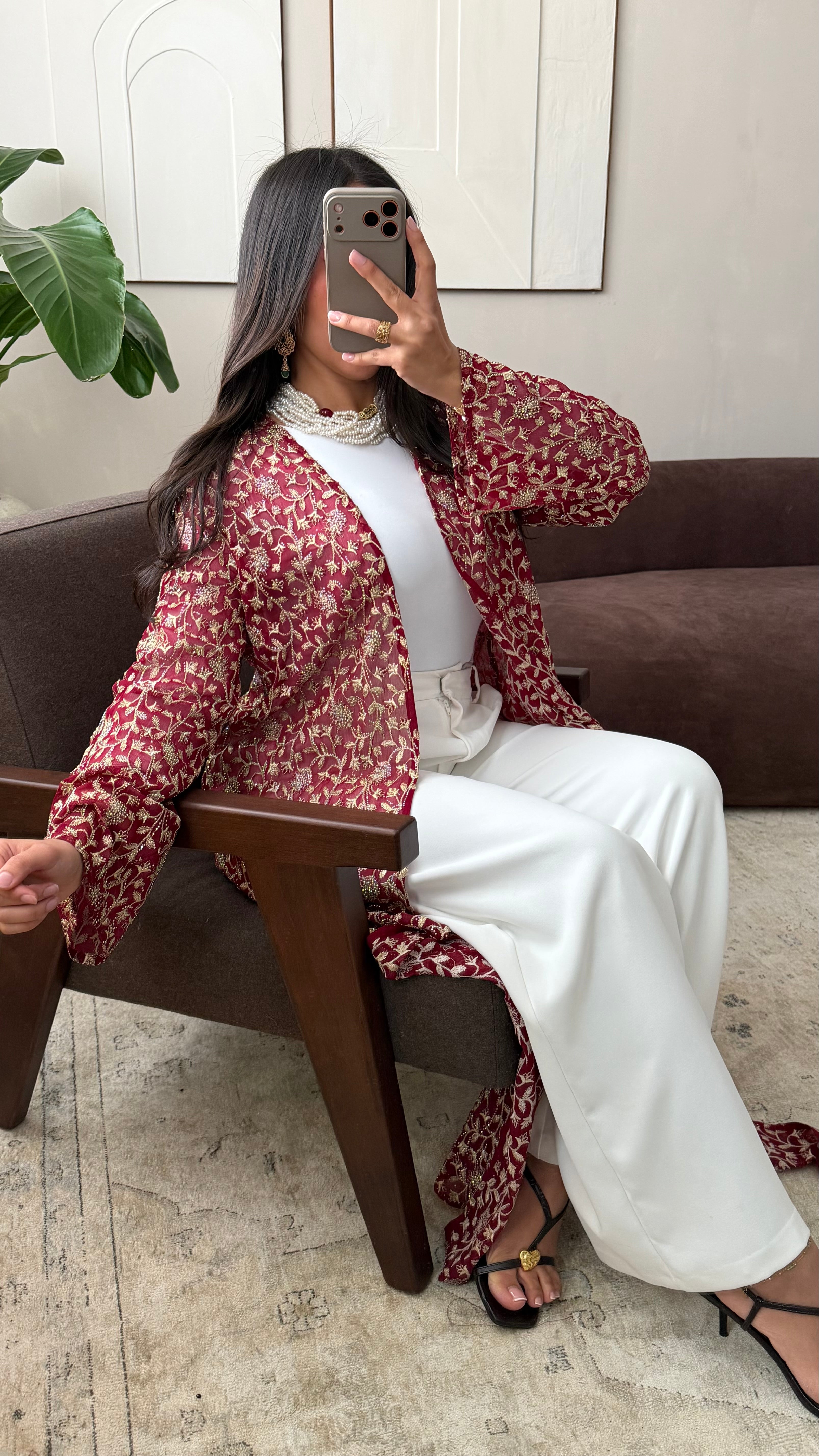 À porter ouvert sur une robe ou un ensemble pour une allure chic et sophistiquée. À associer avec des accessoires sobres afin de mettre en valeur la transparence, les broderies et les strass. Idéal pour les cérémonies et événements élégants.