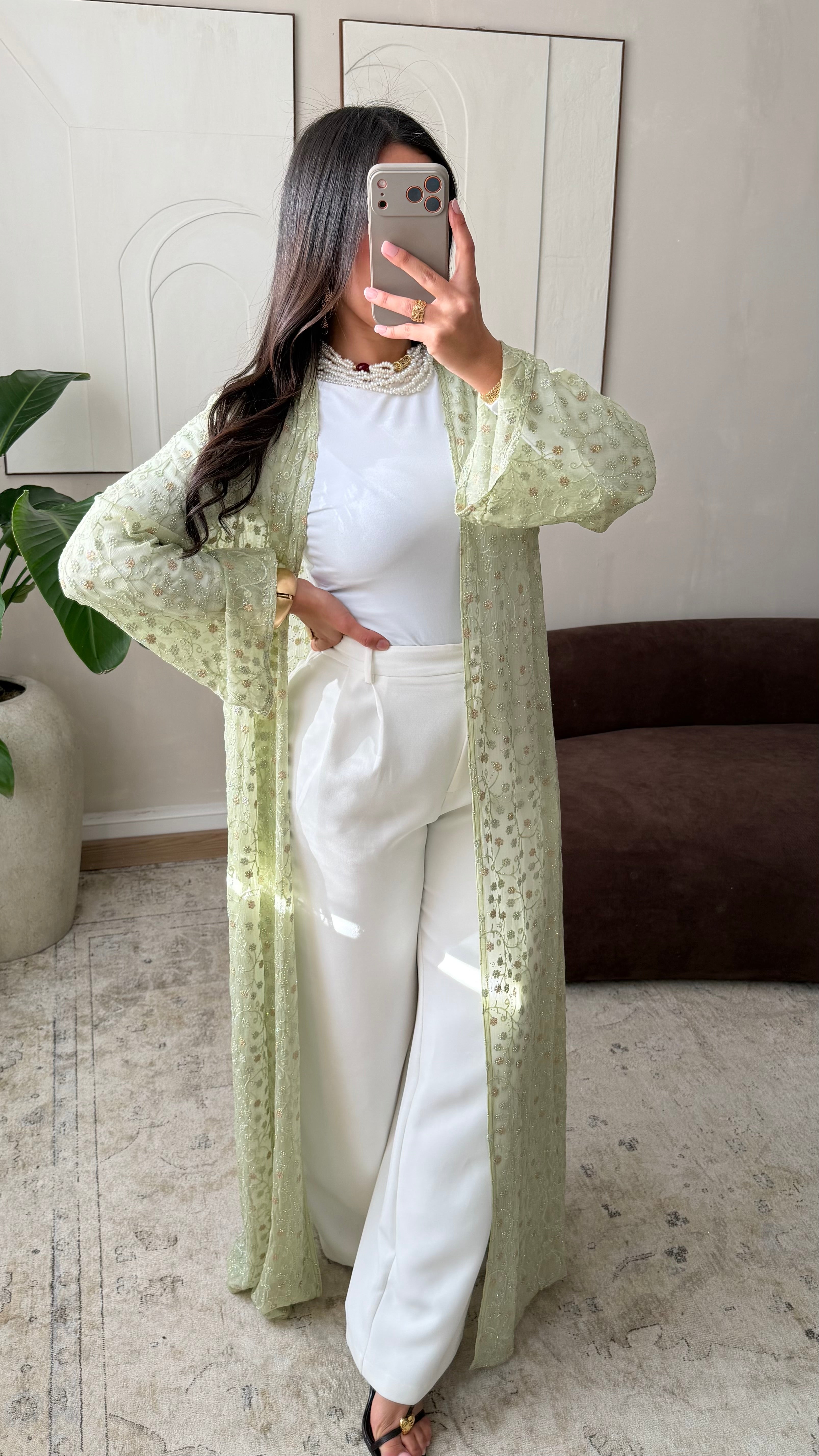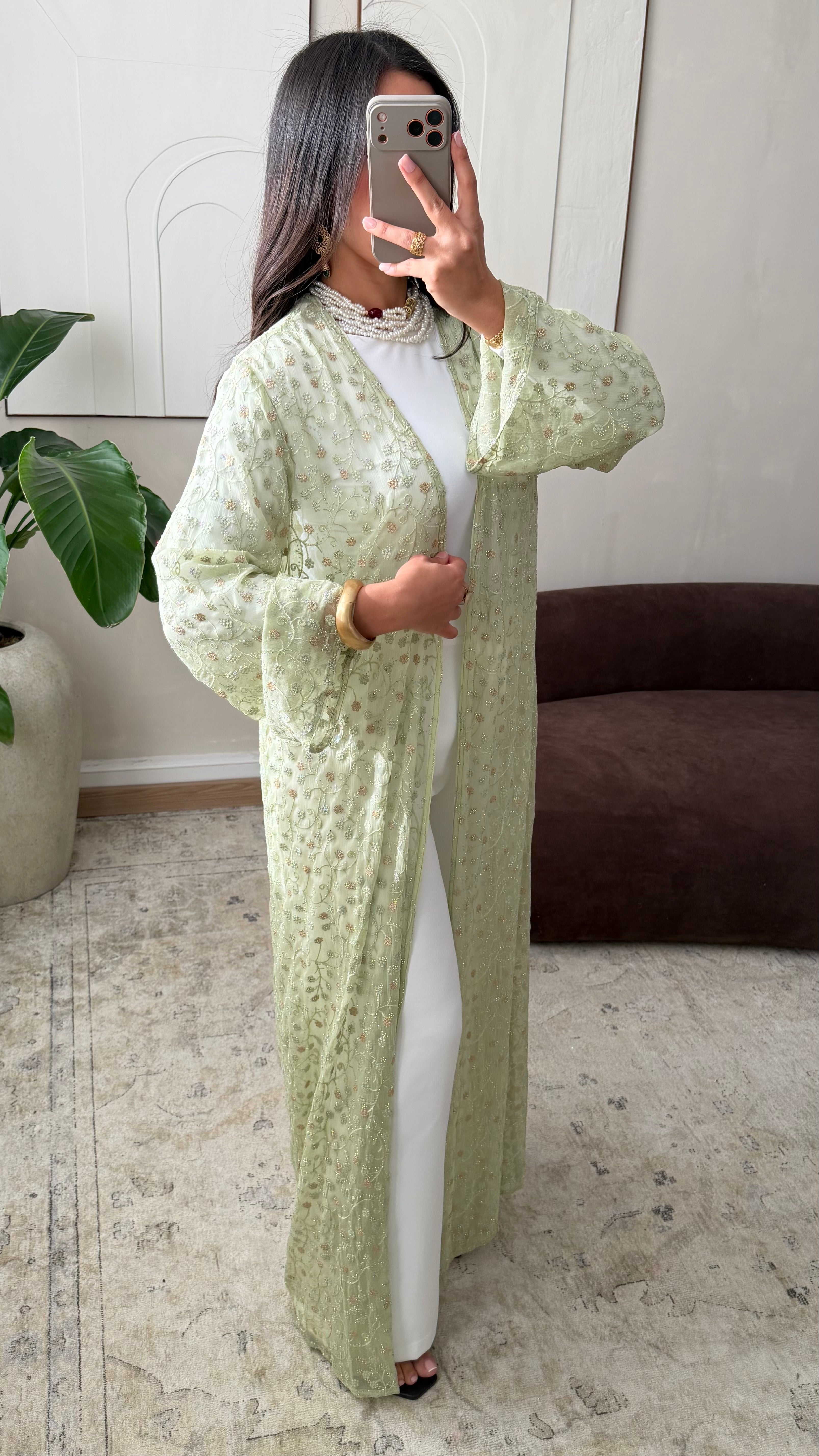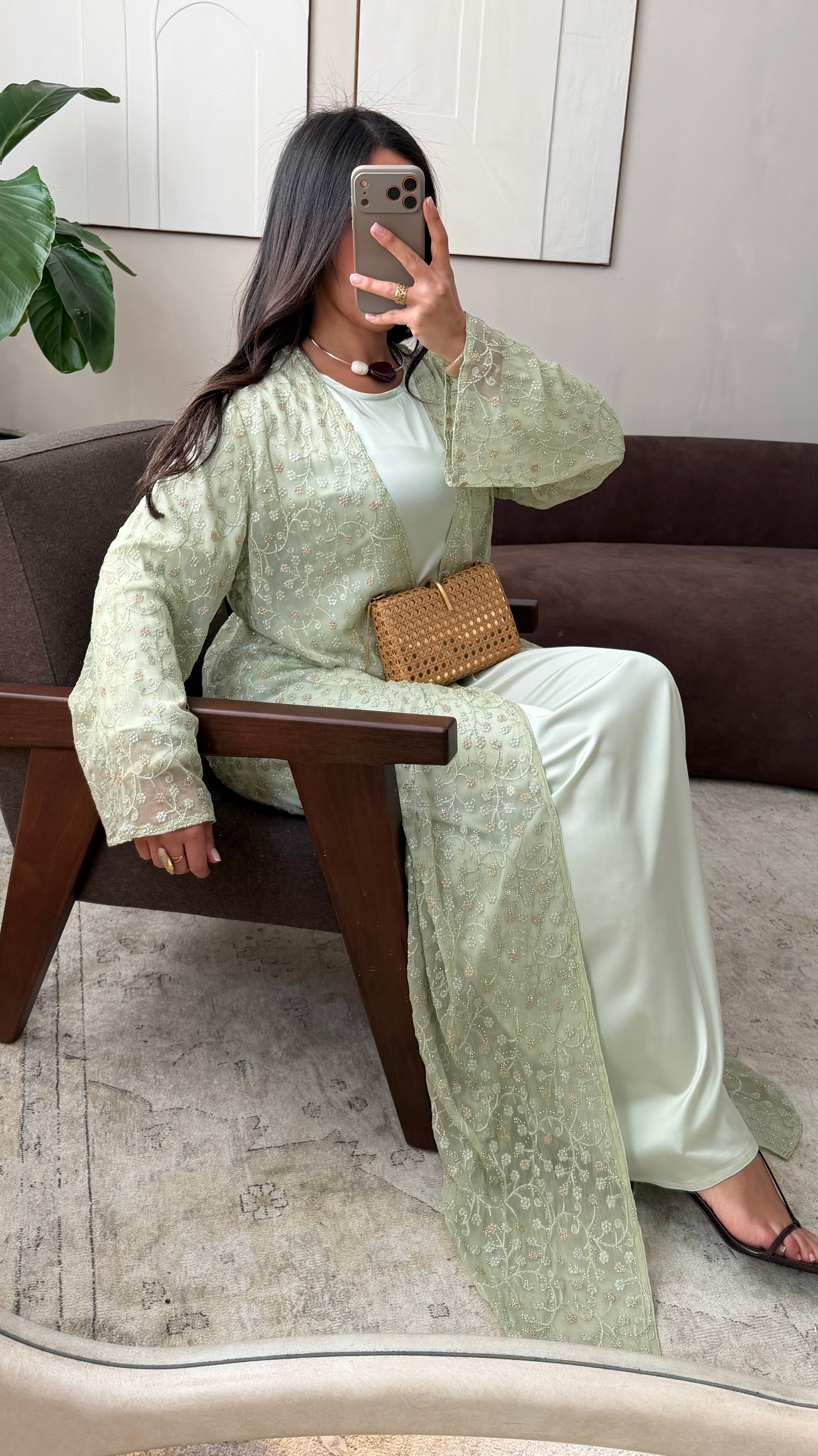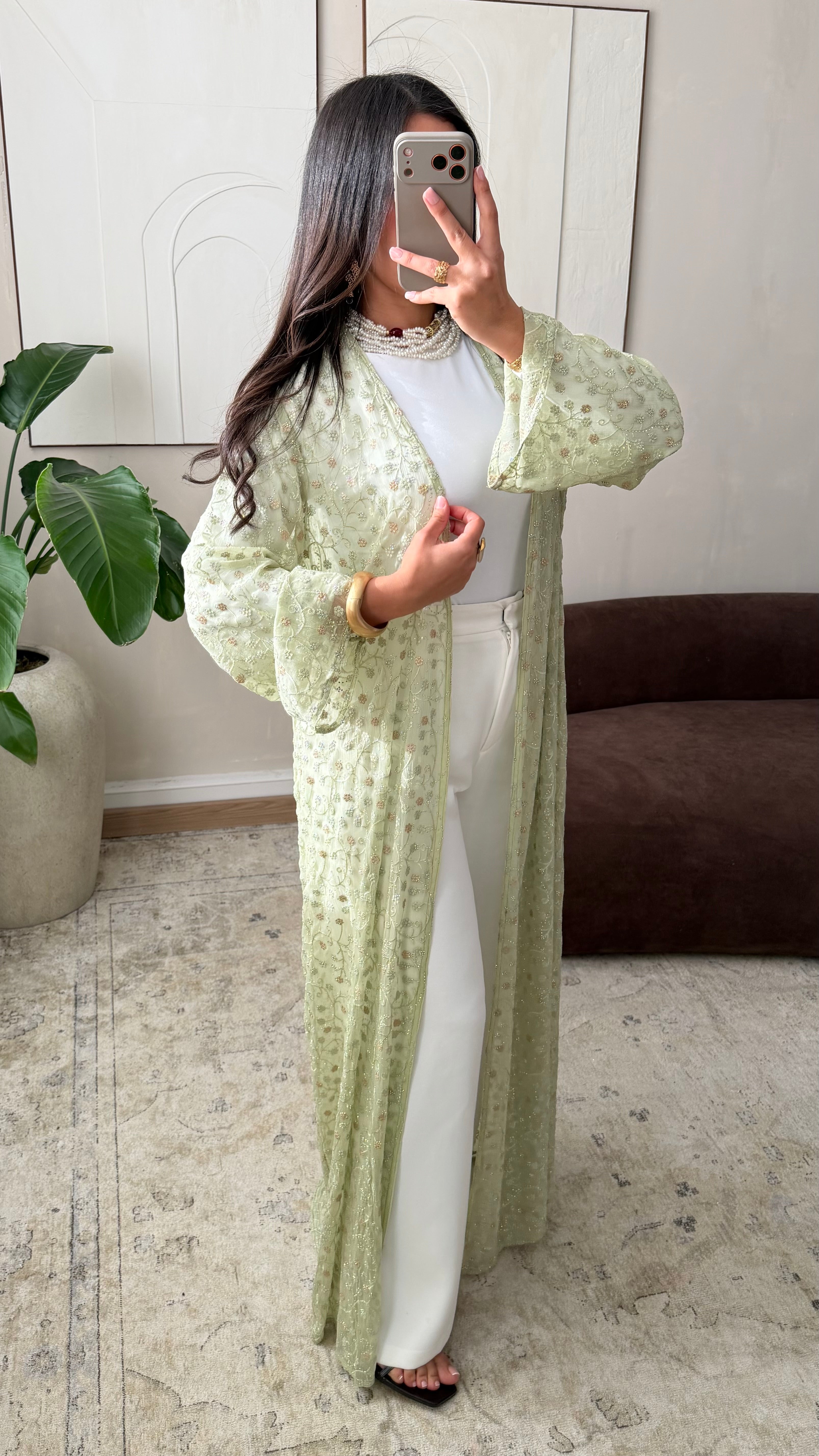 [EDITION LIMITÉE ATELIER DUBAÏ] Kimono long strass I Vert sauge