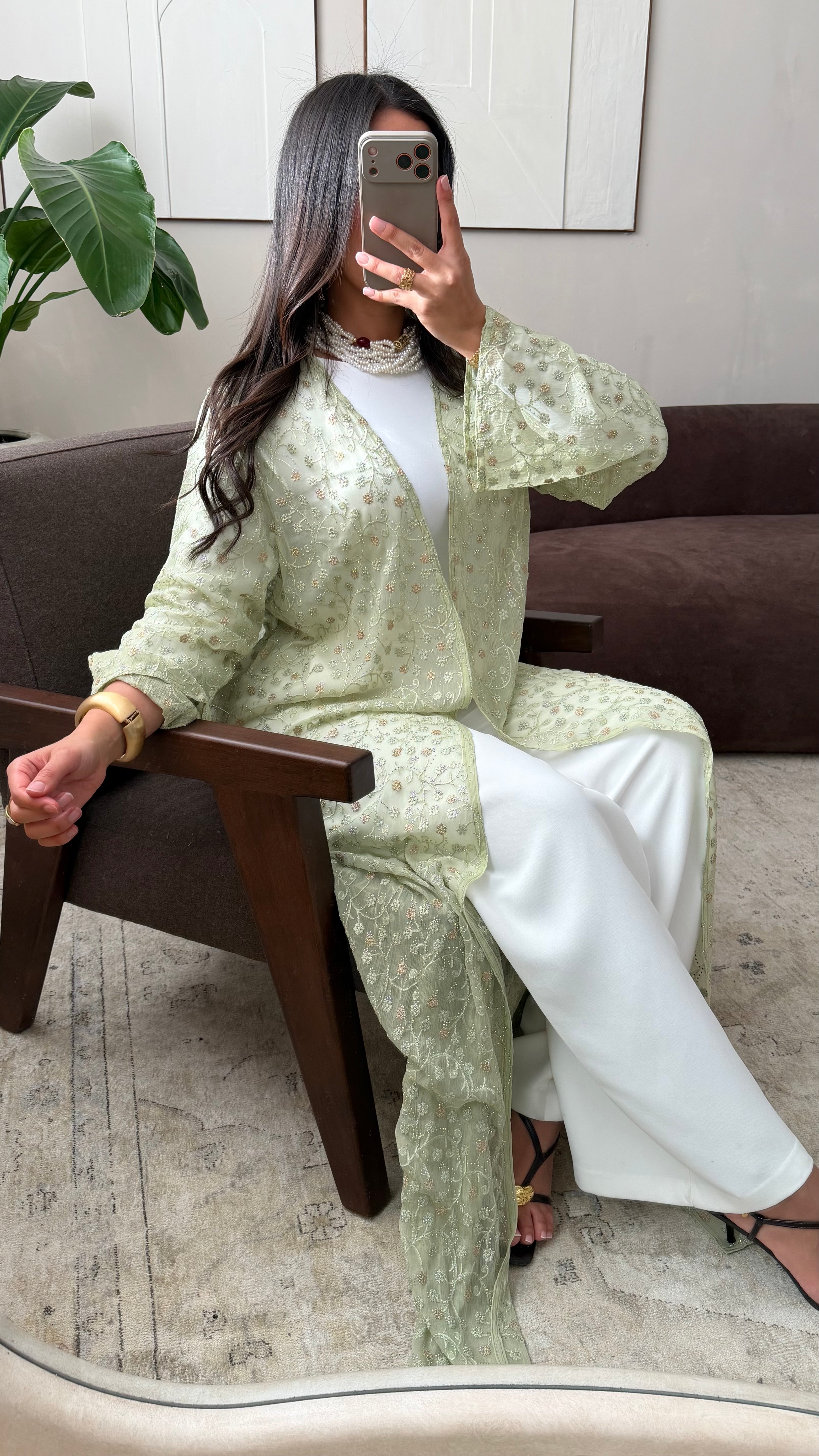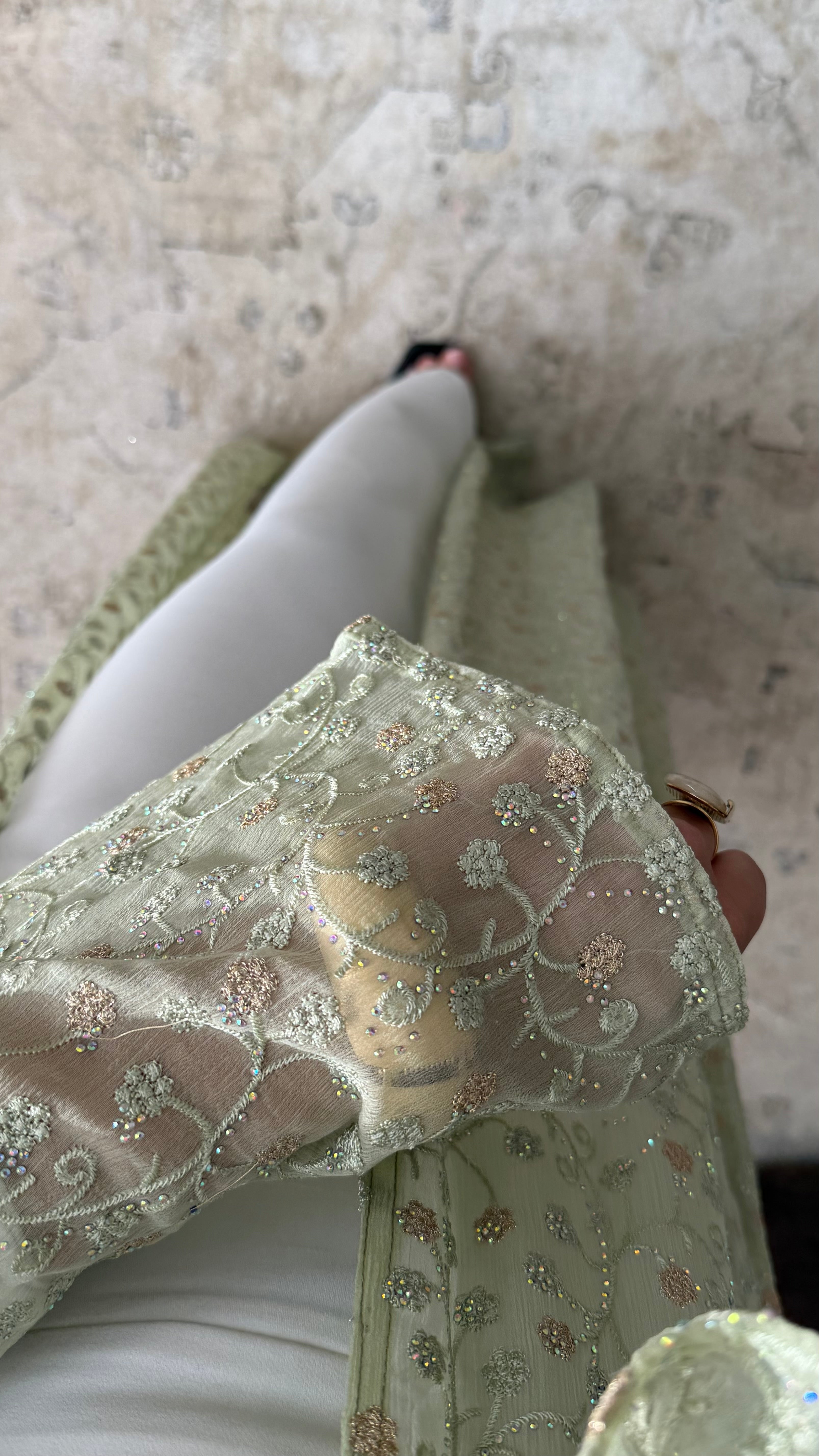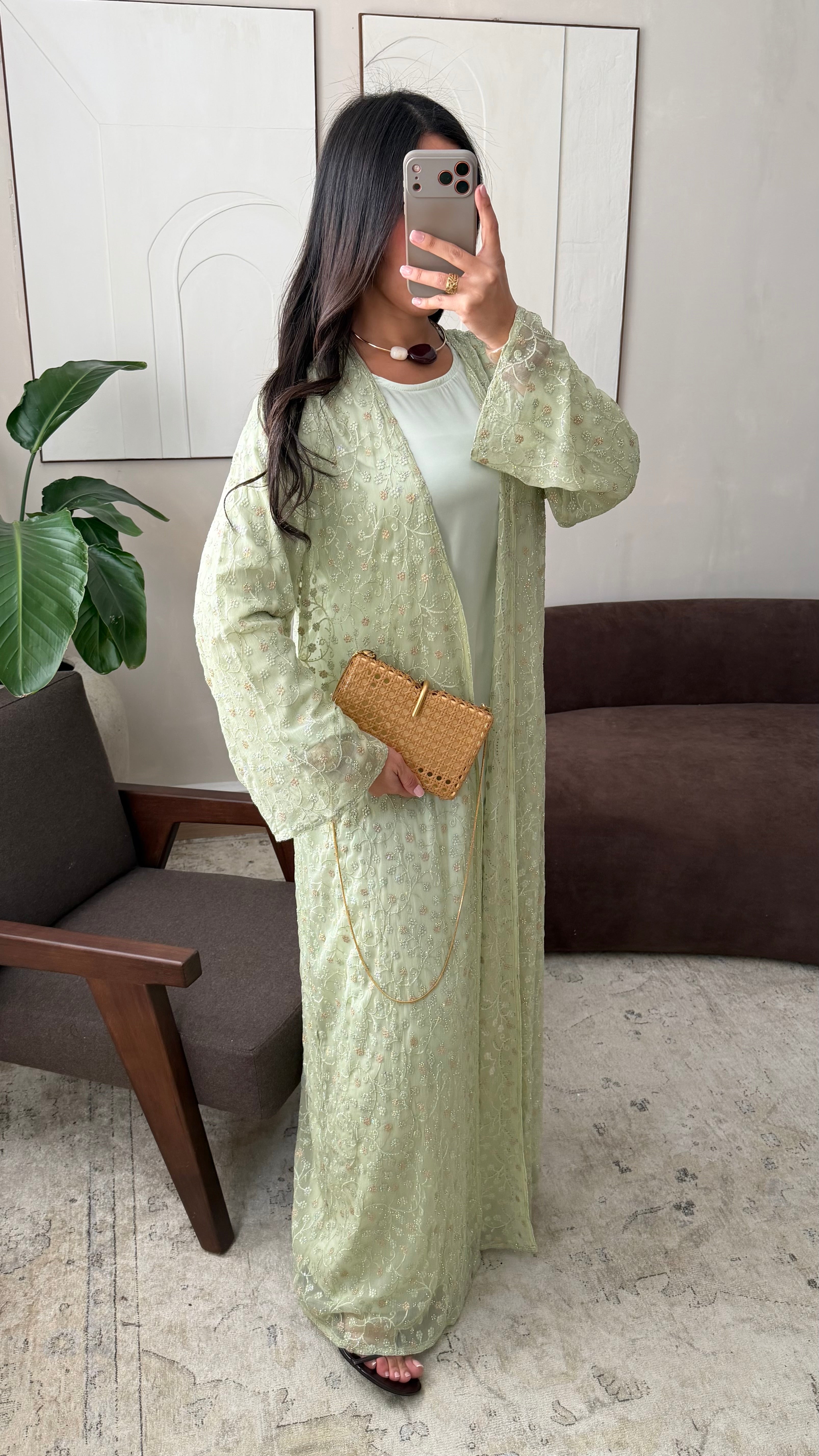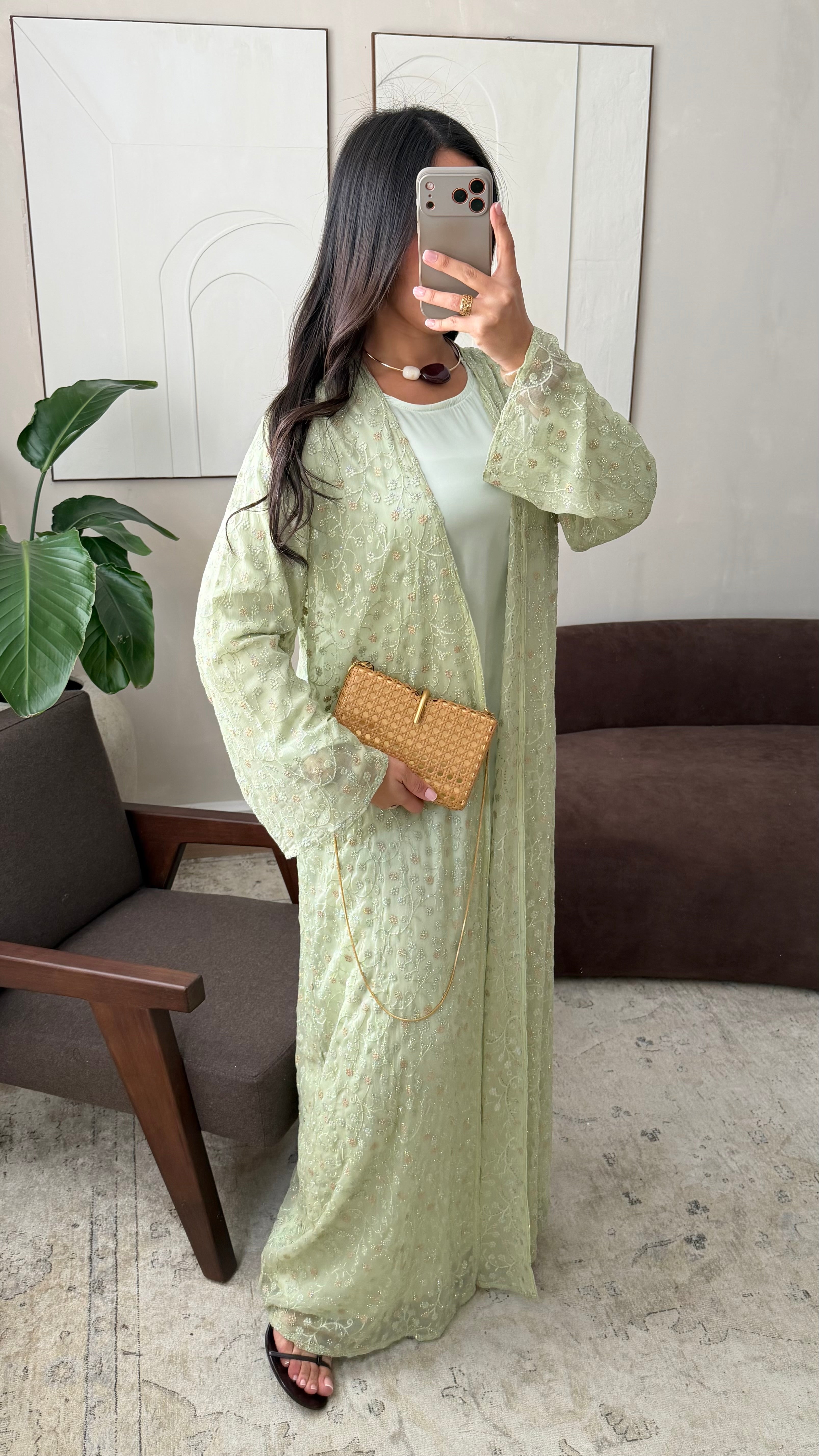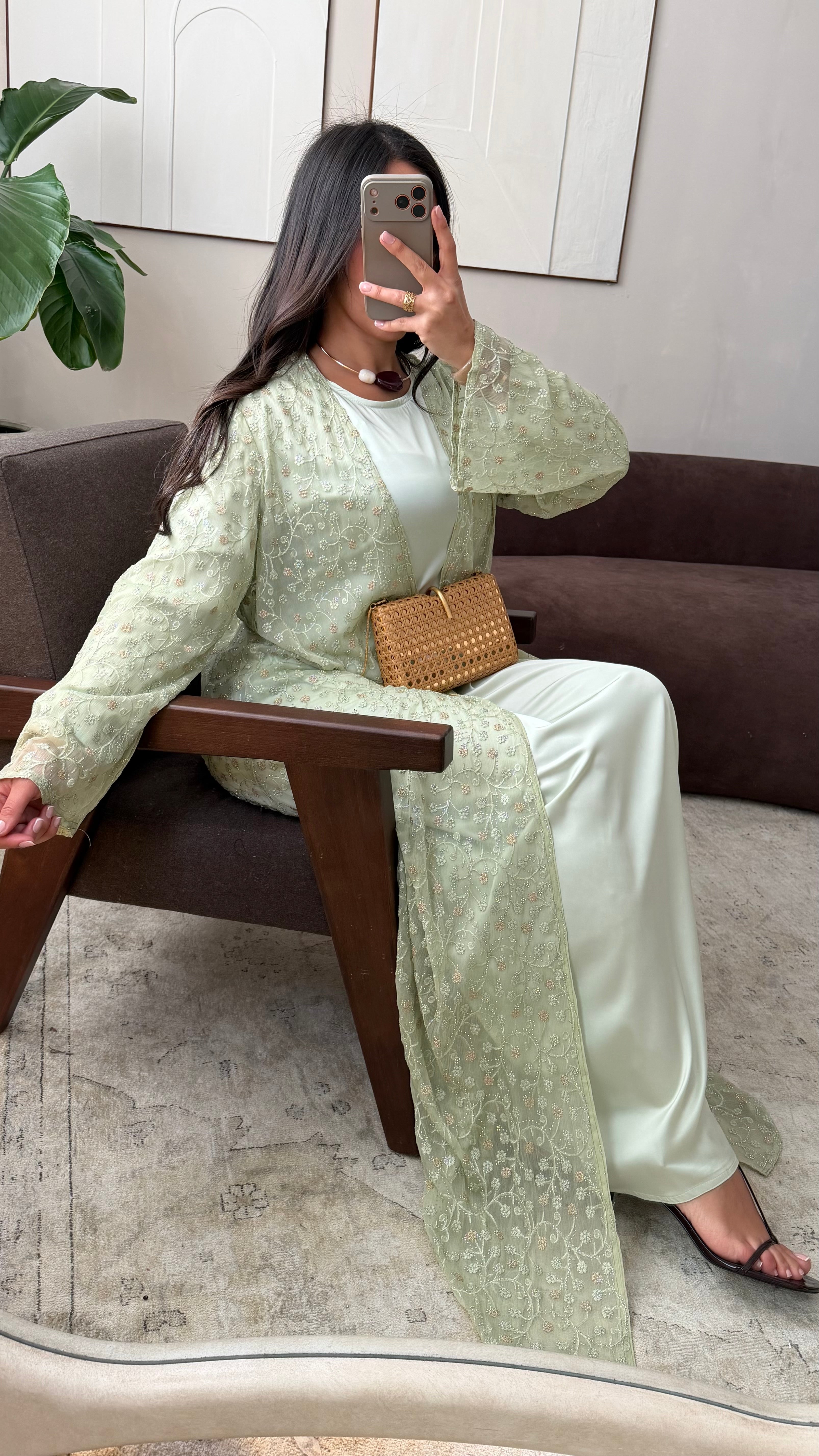 [EDITION LIMITÉE ATELIER DUBAÏ] Kimono long strass I Vert sauge