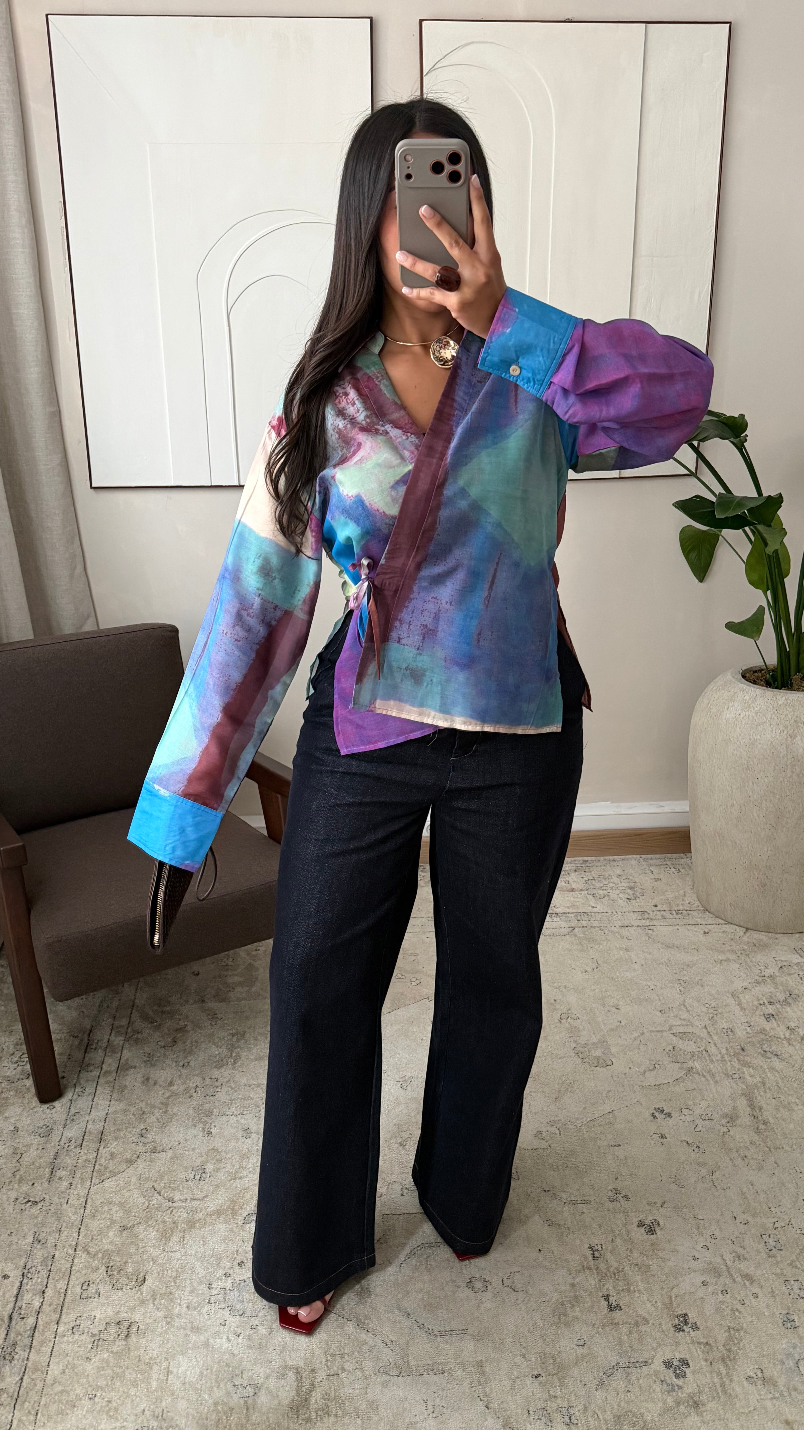 Chemisier à nouer cache-coeur I Violet