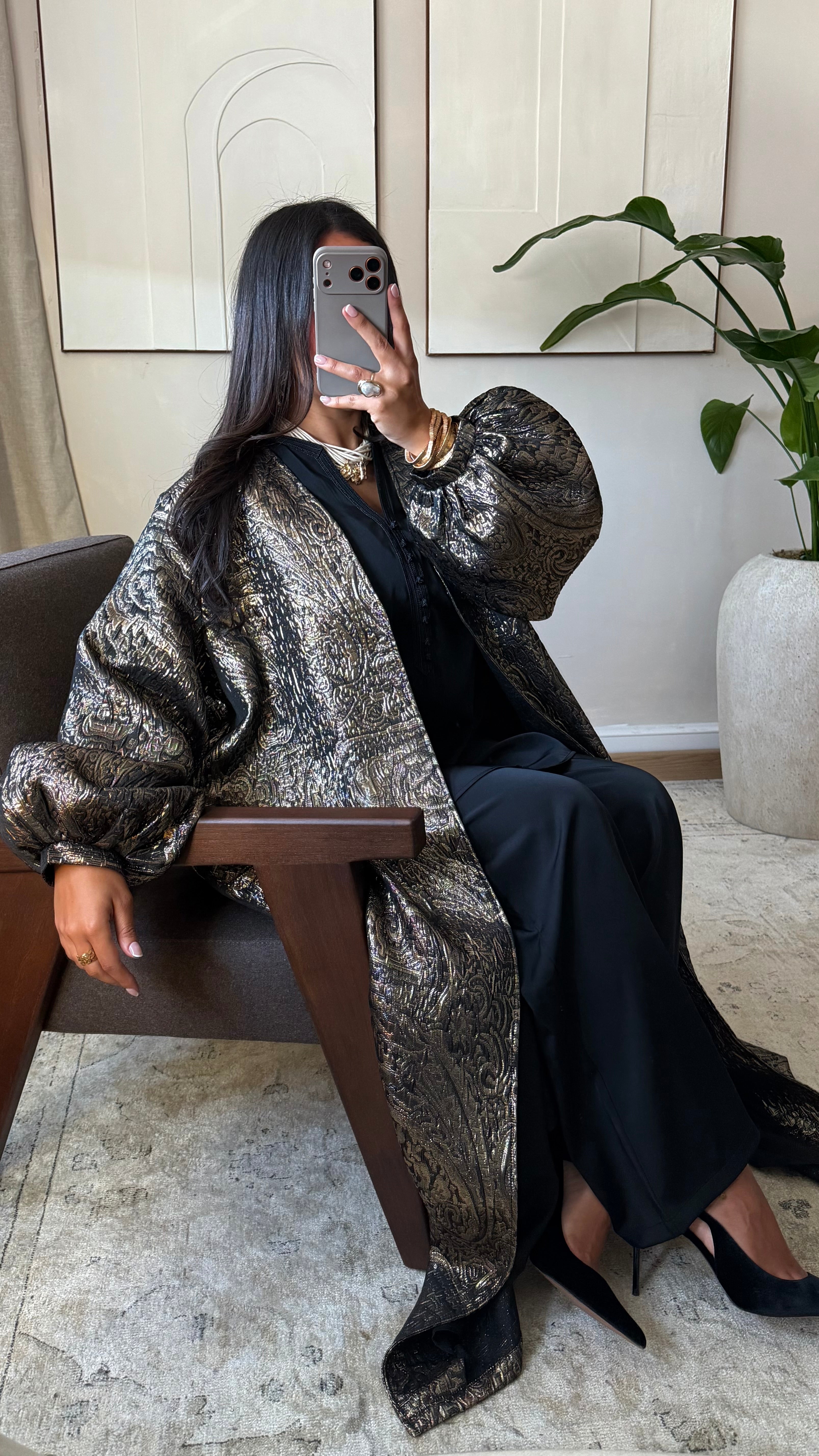 Ce kimono brocard doublé est une pièce élégante et raffinée, idéale pour les grandes occasions. Sa matière brocardée aux fils métallisés apporte une touche de lumière et de sophistication, parfaite pour sublimer vos tenues lors d’événements spéciaux. Sa coupe fluide et sa doublure assurent un confort optimal tout en offrant un tombé élégant.