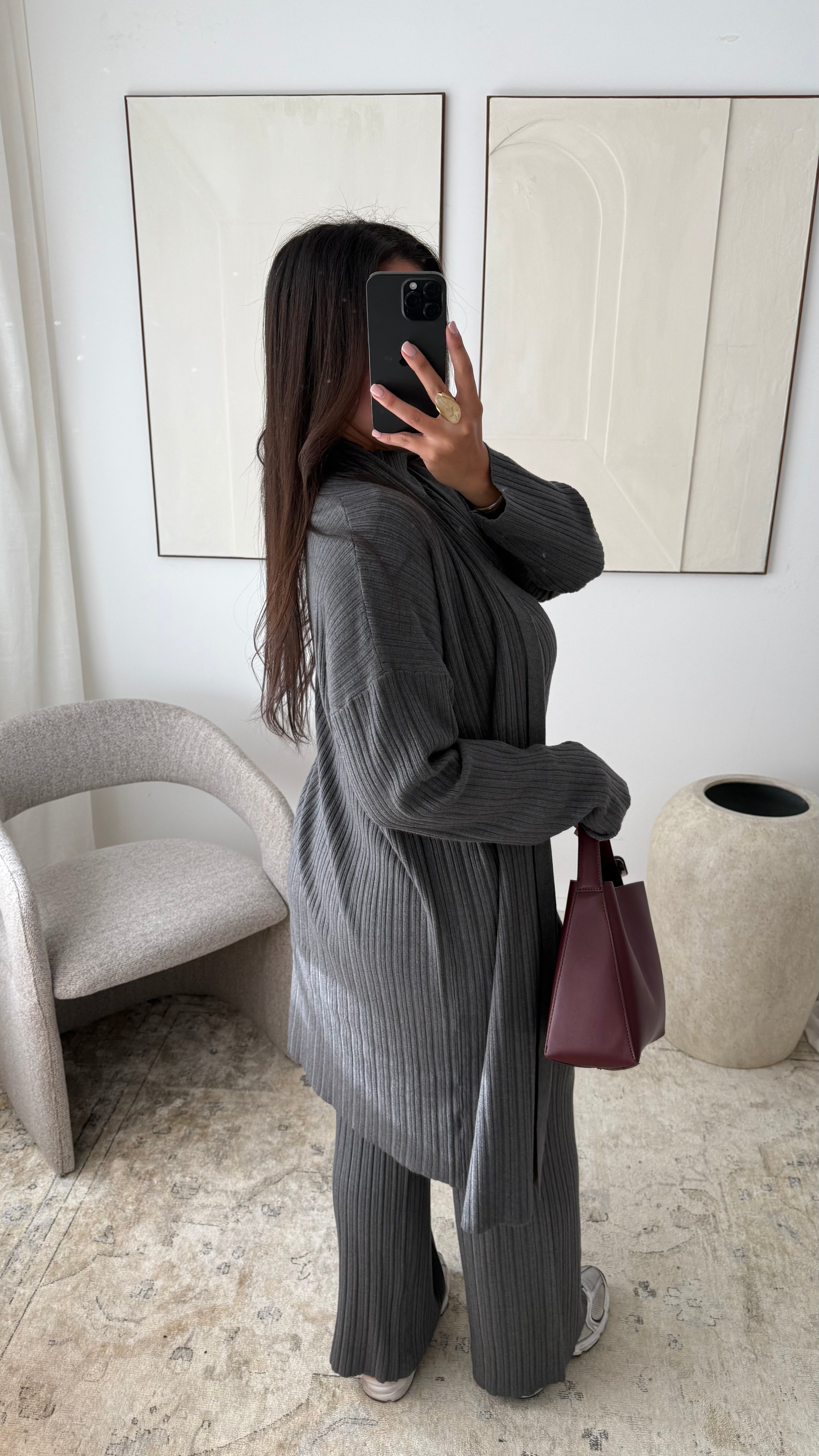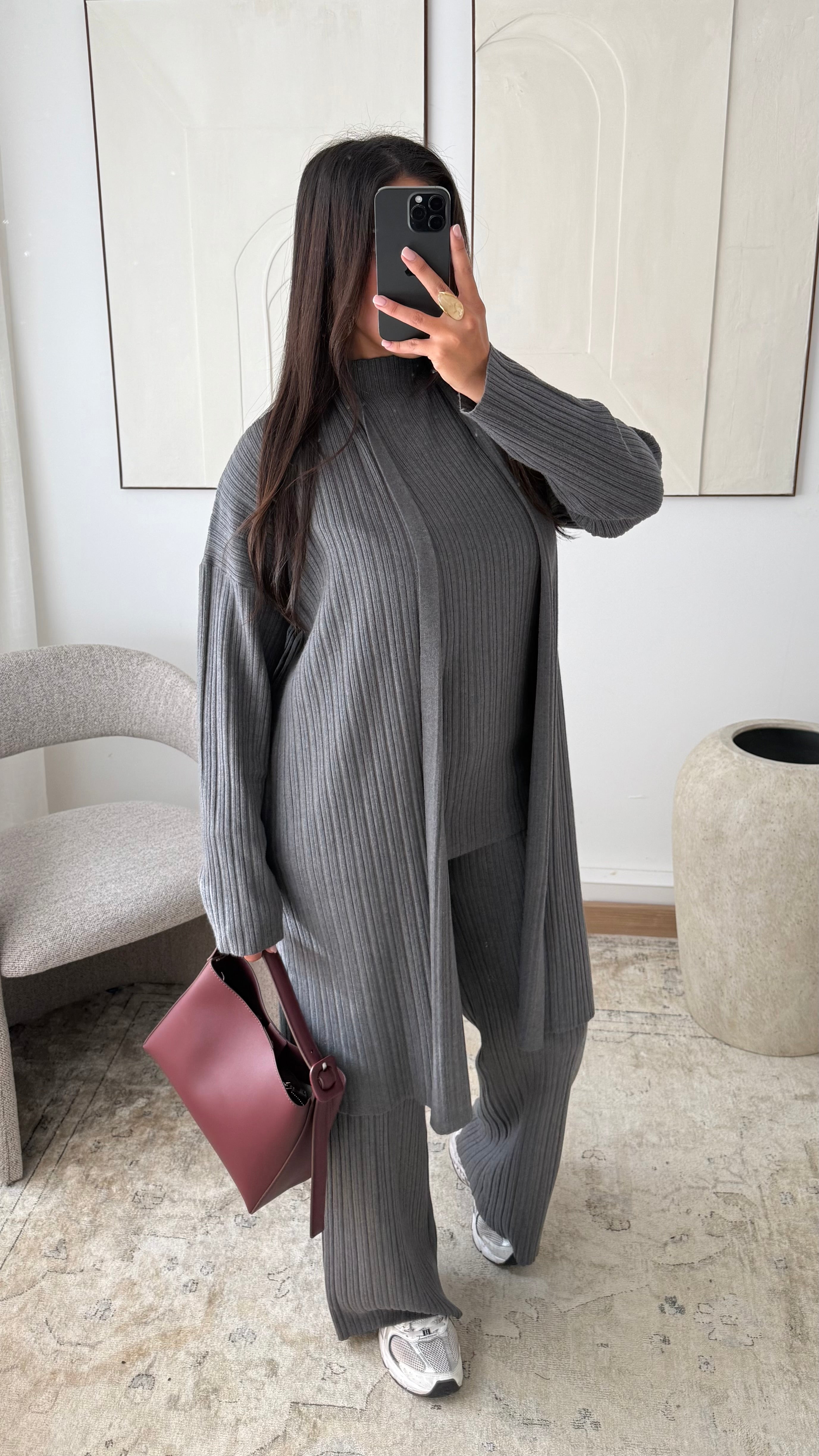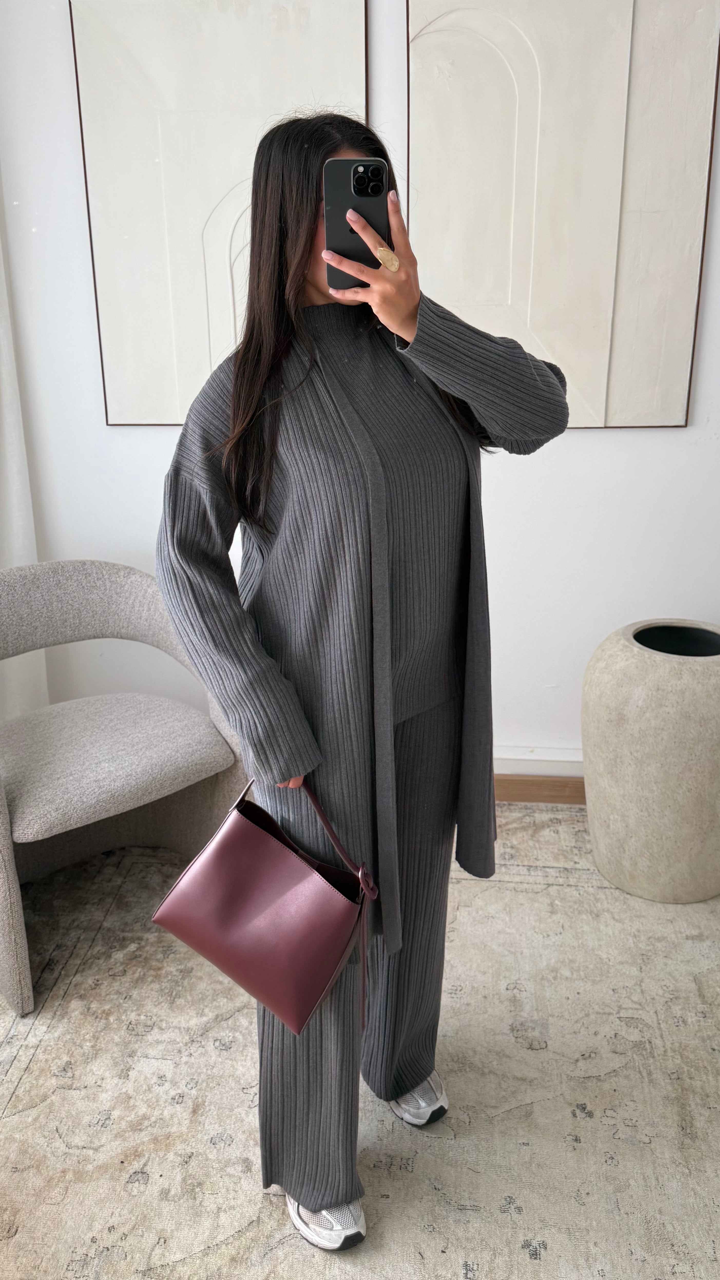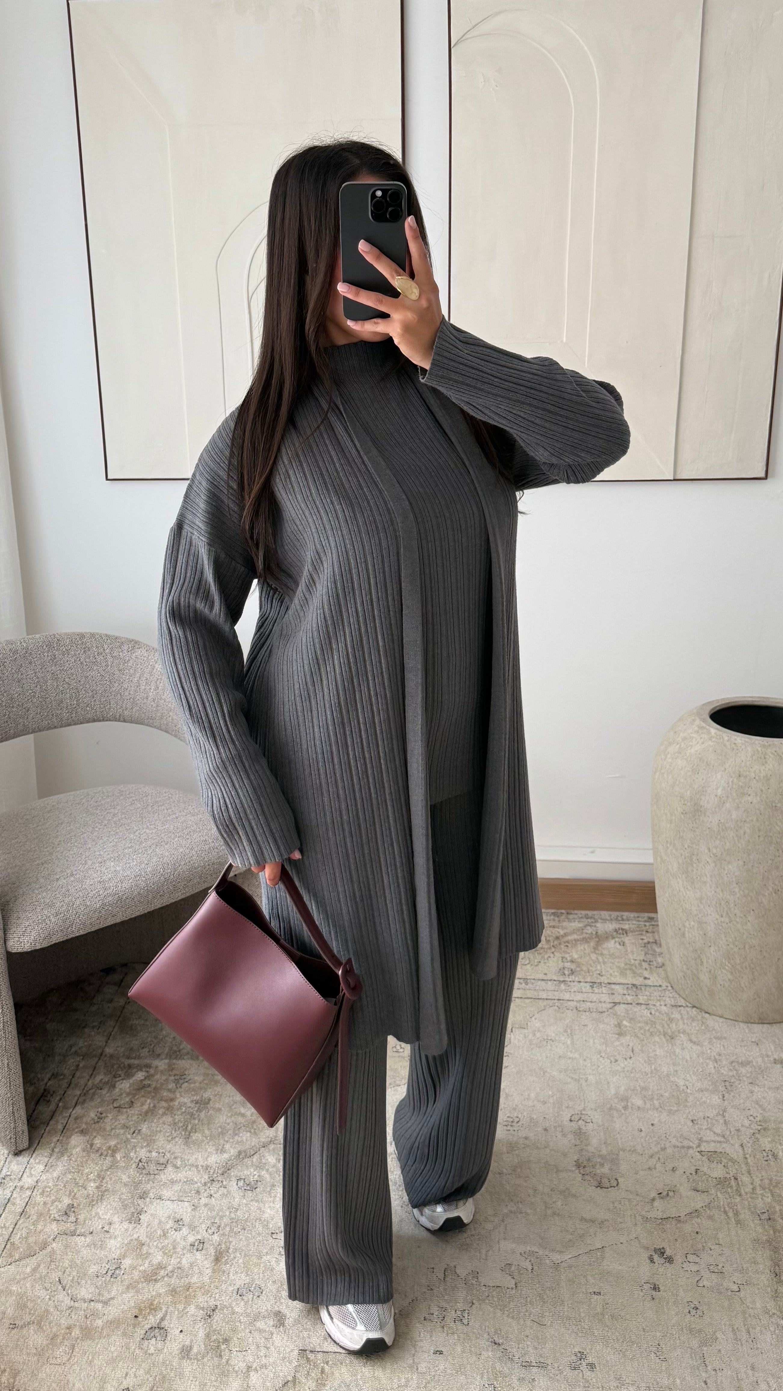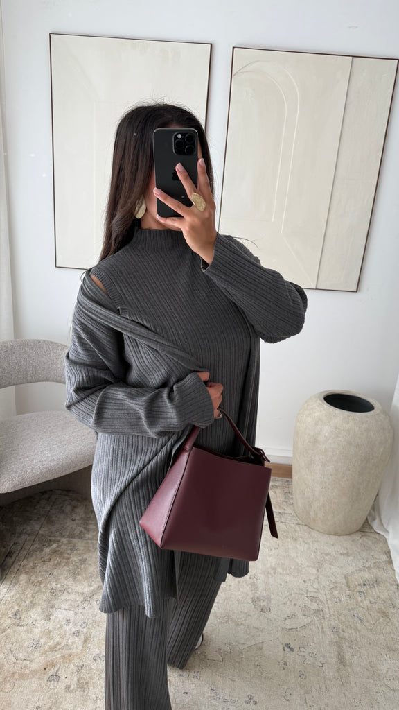 Ensemble trois pièces en maille côtelée I Gris foncé