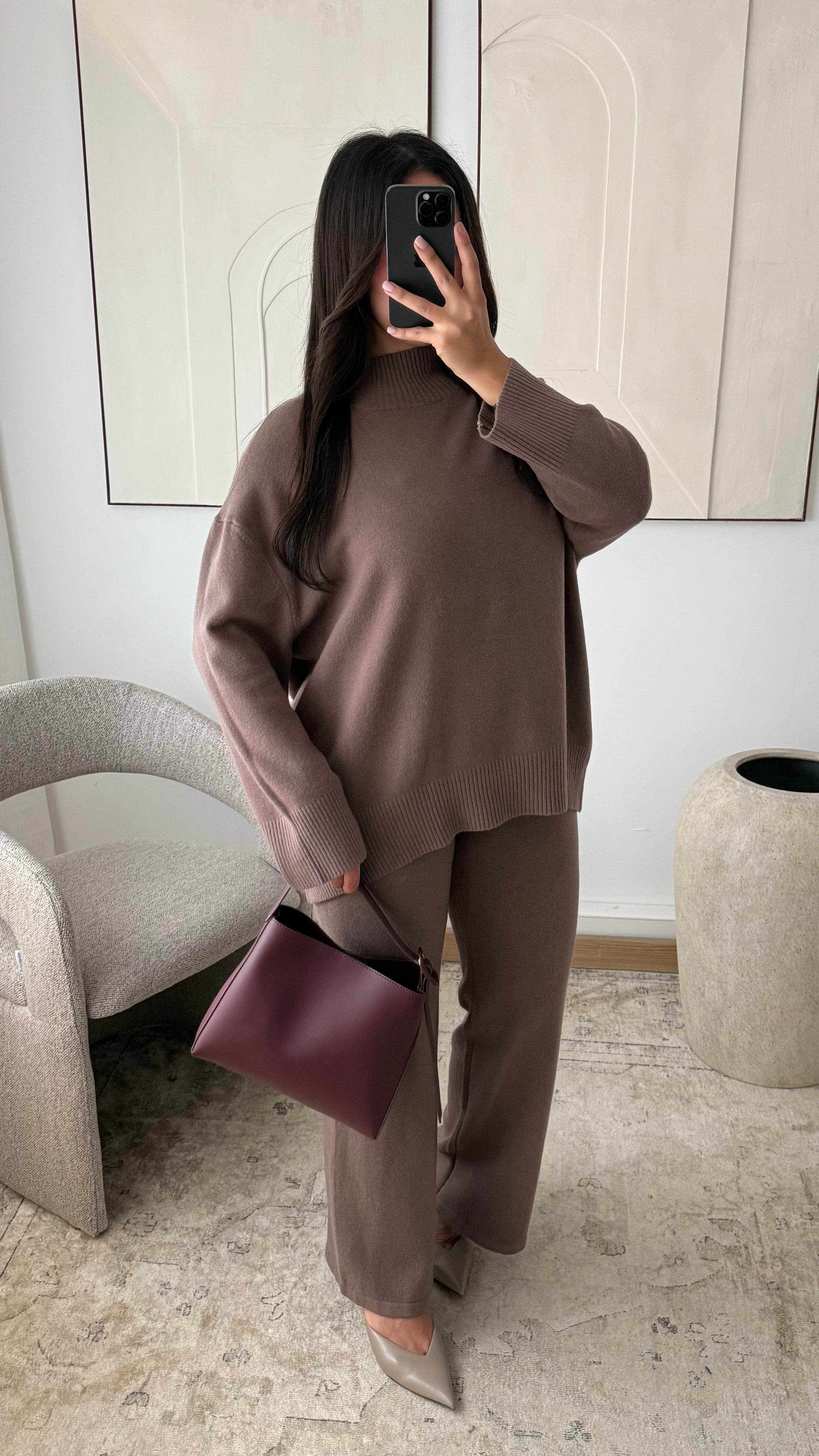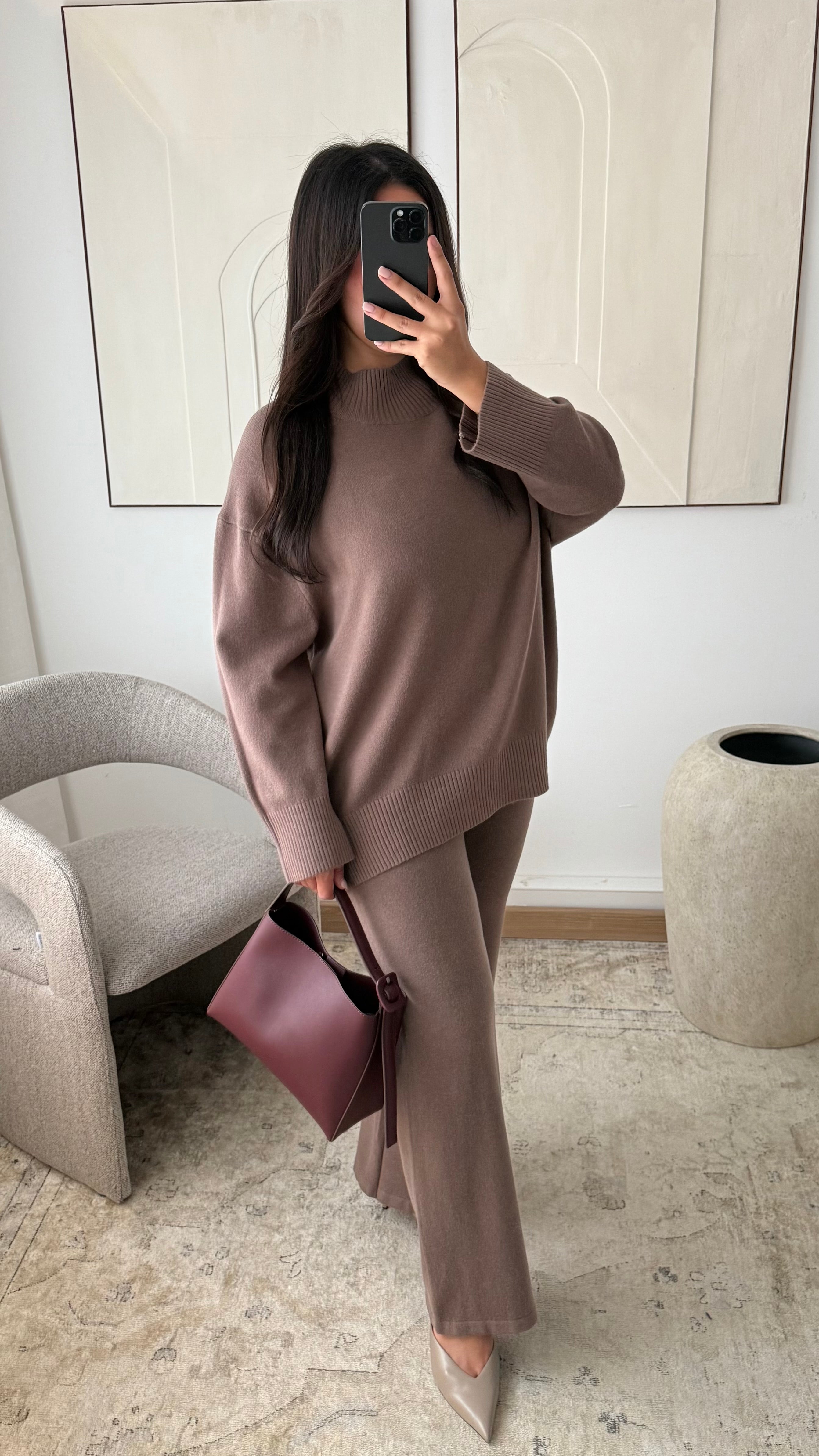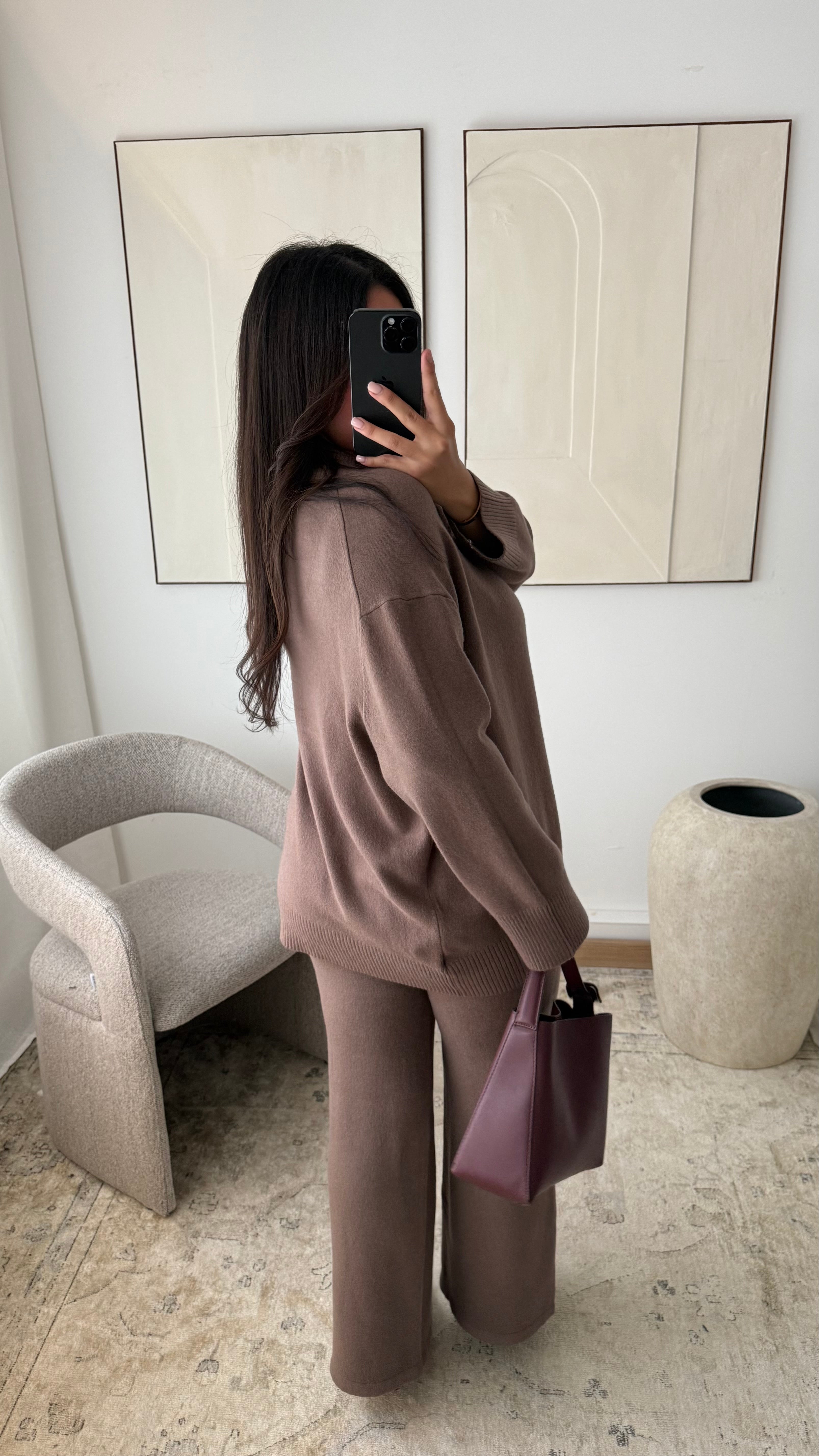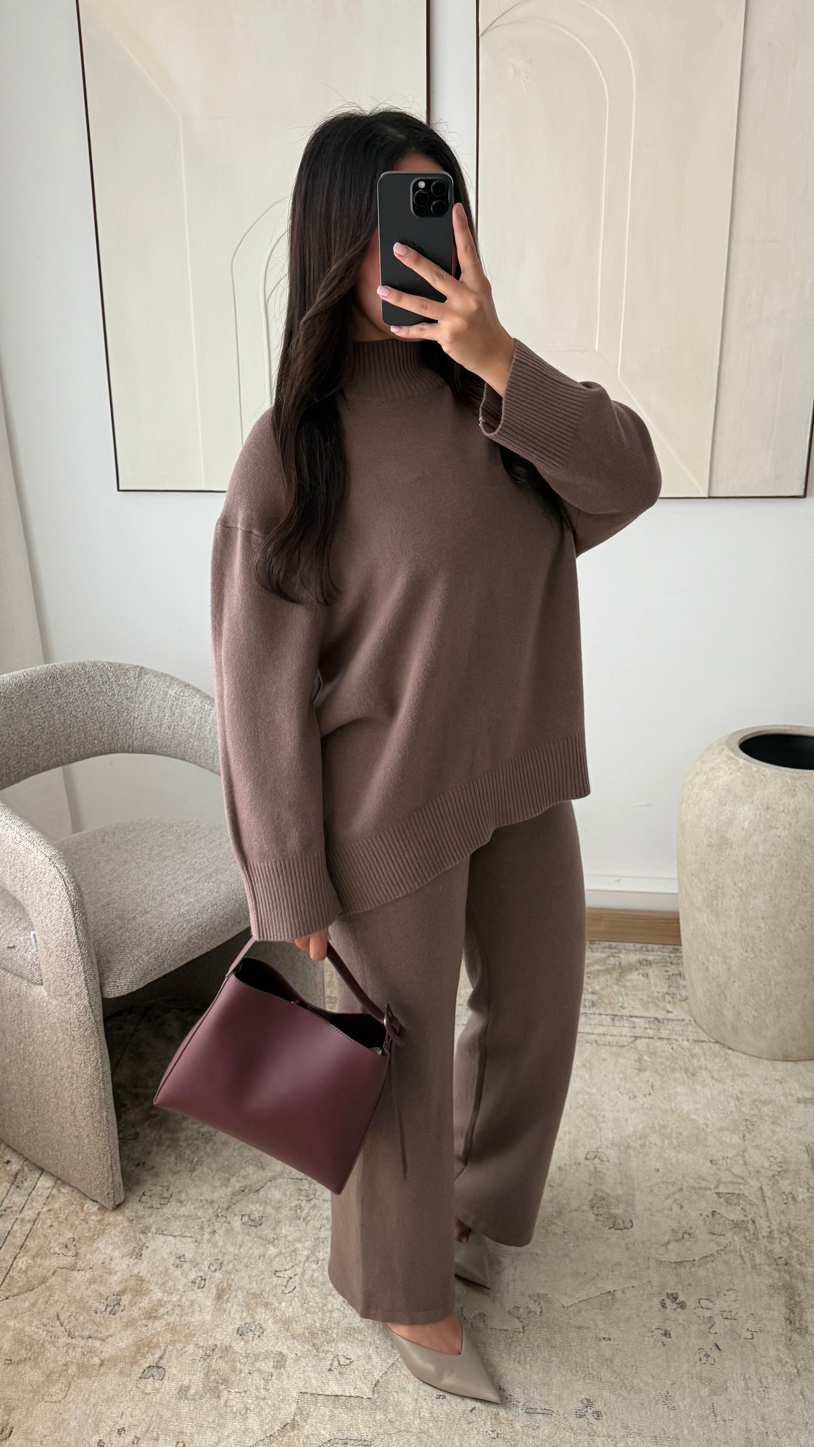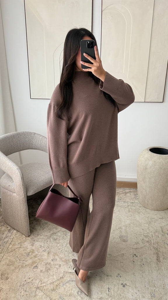 Ensemble col montant pull et pantalon I Chocolat