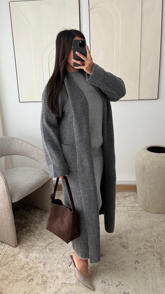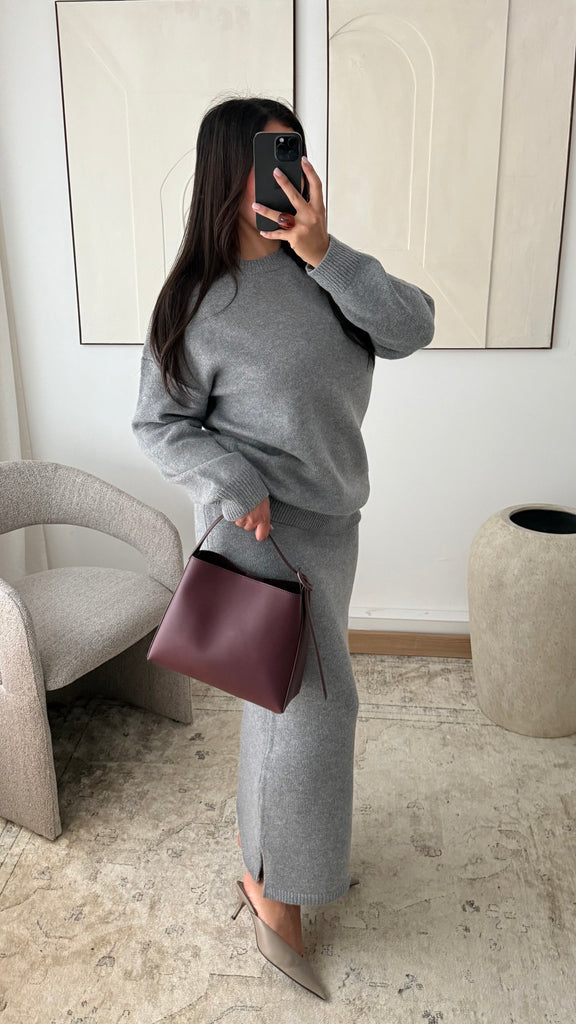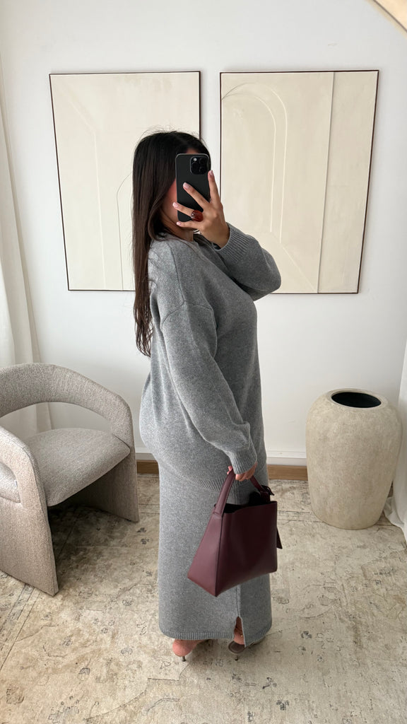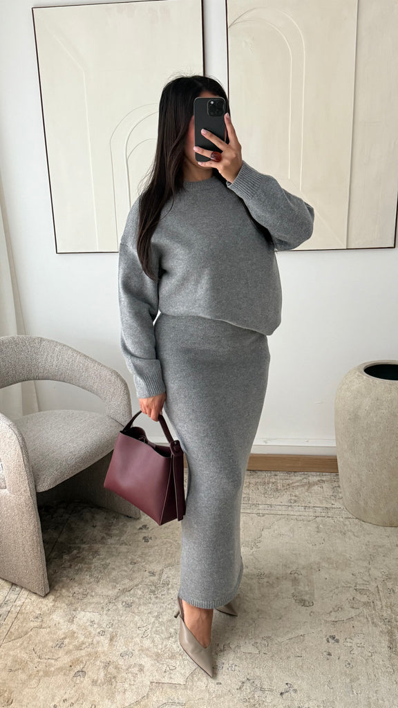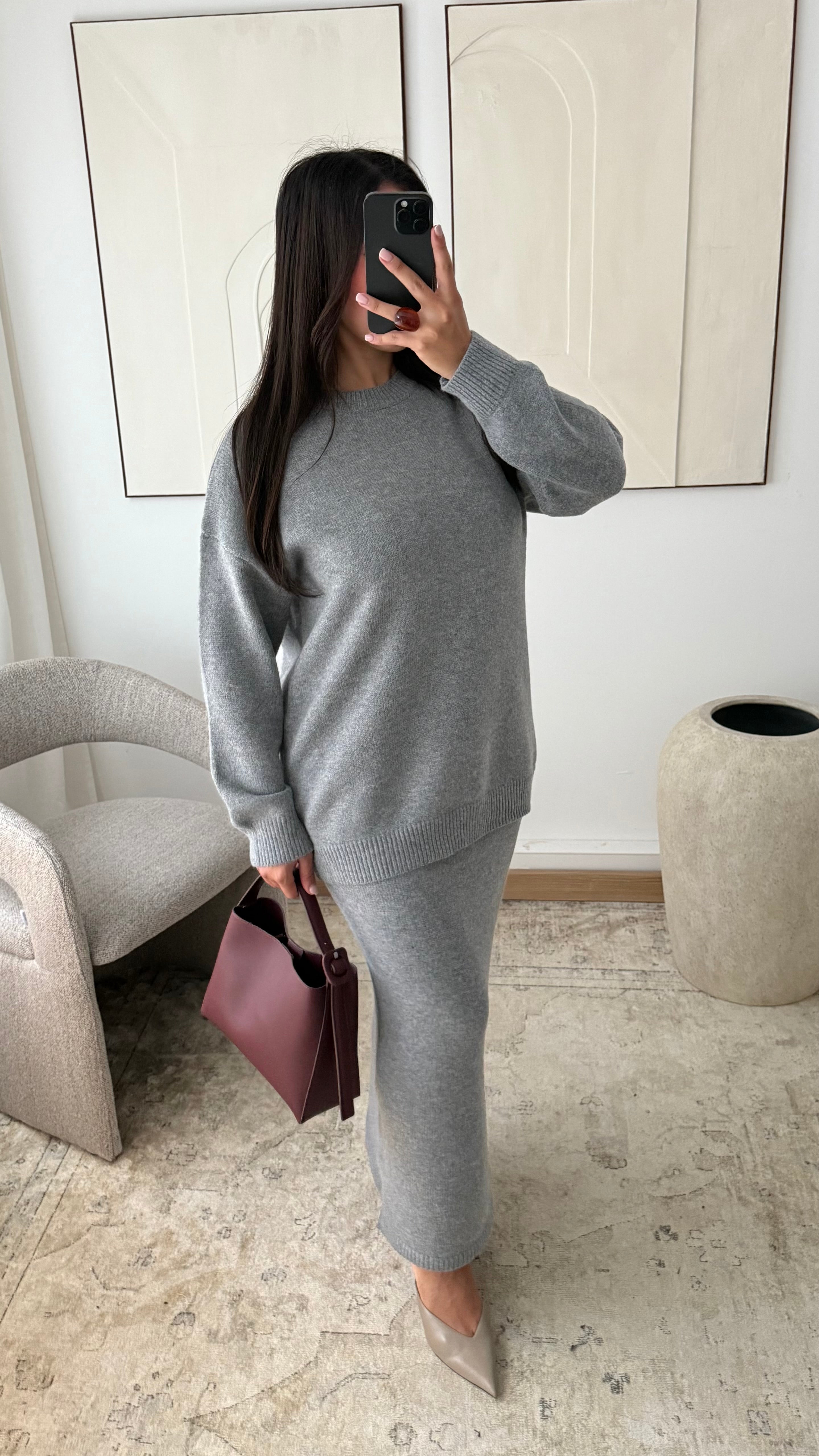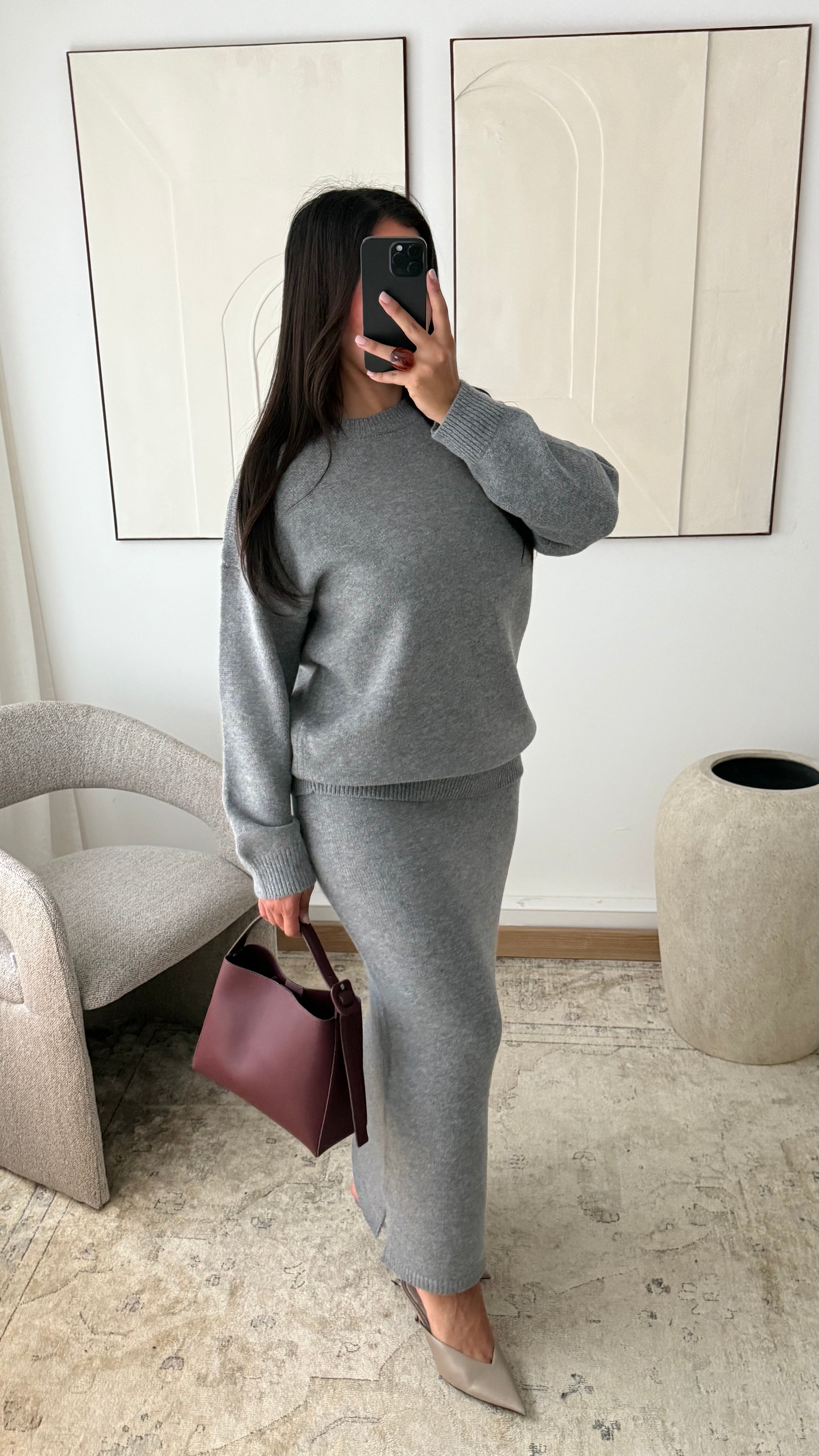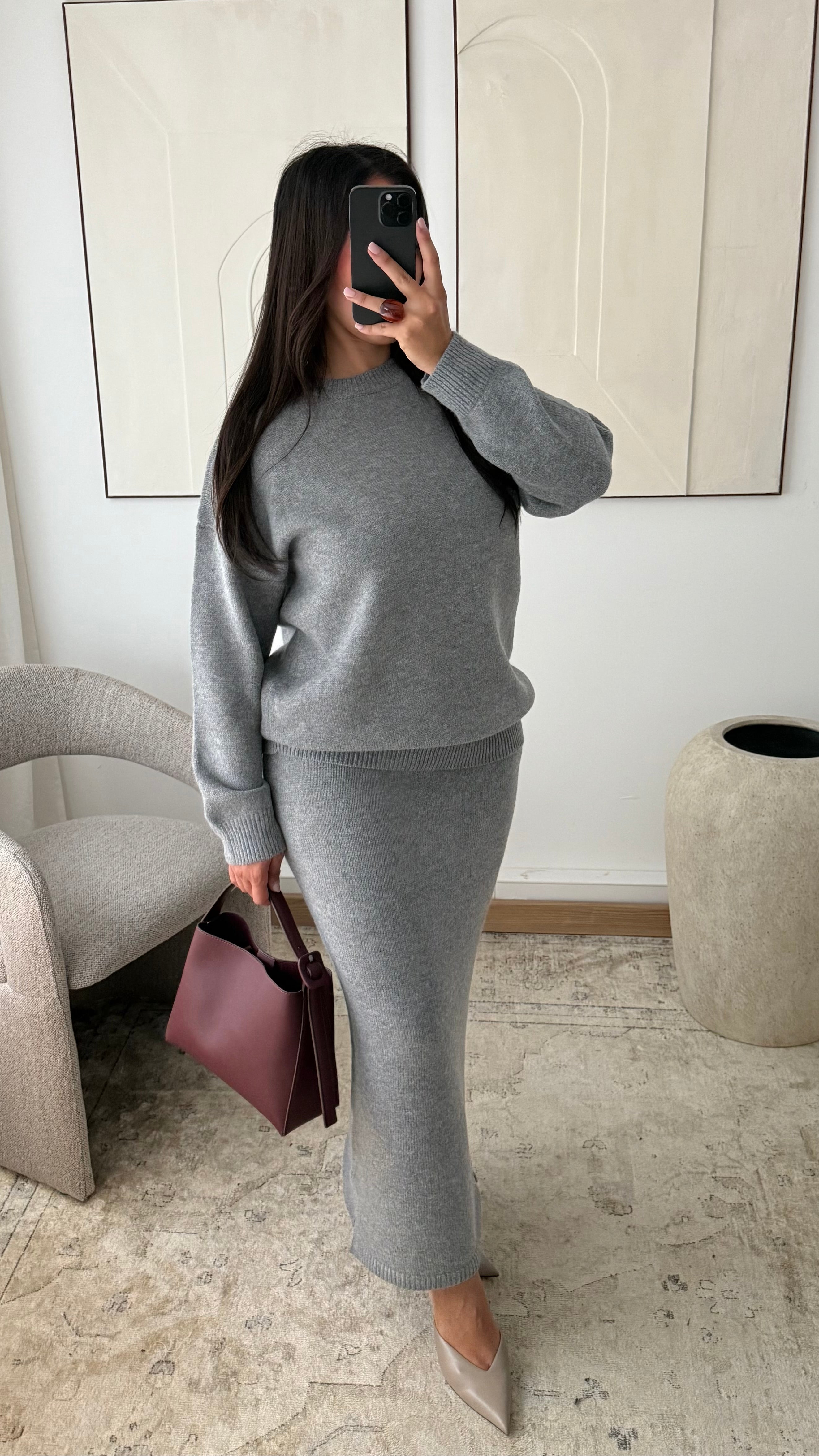 Ensemble pull et jupe en maille épaisse TALYA I Gris