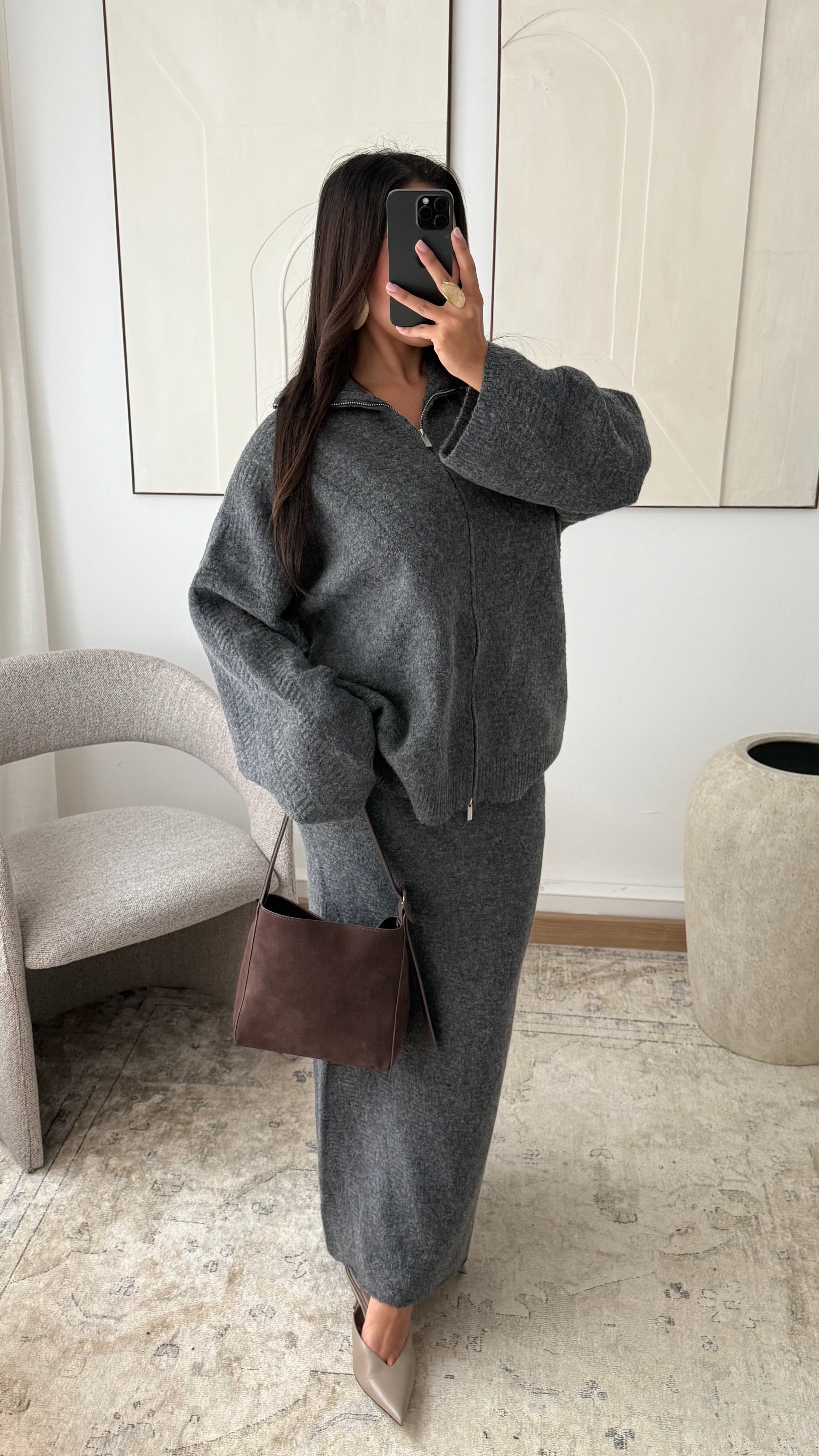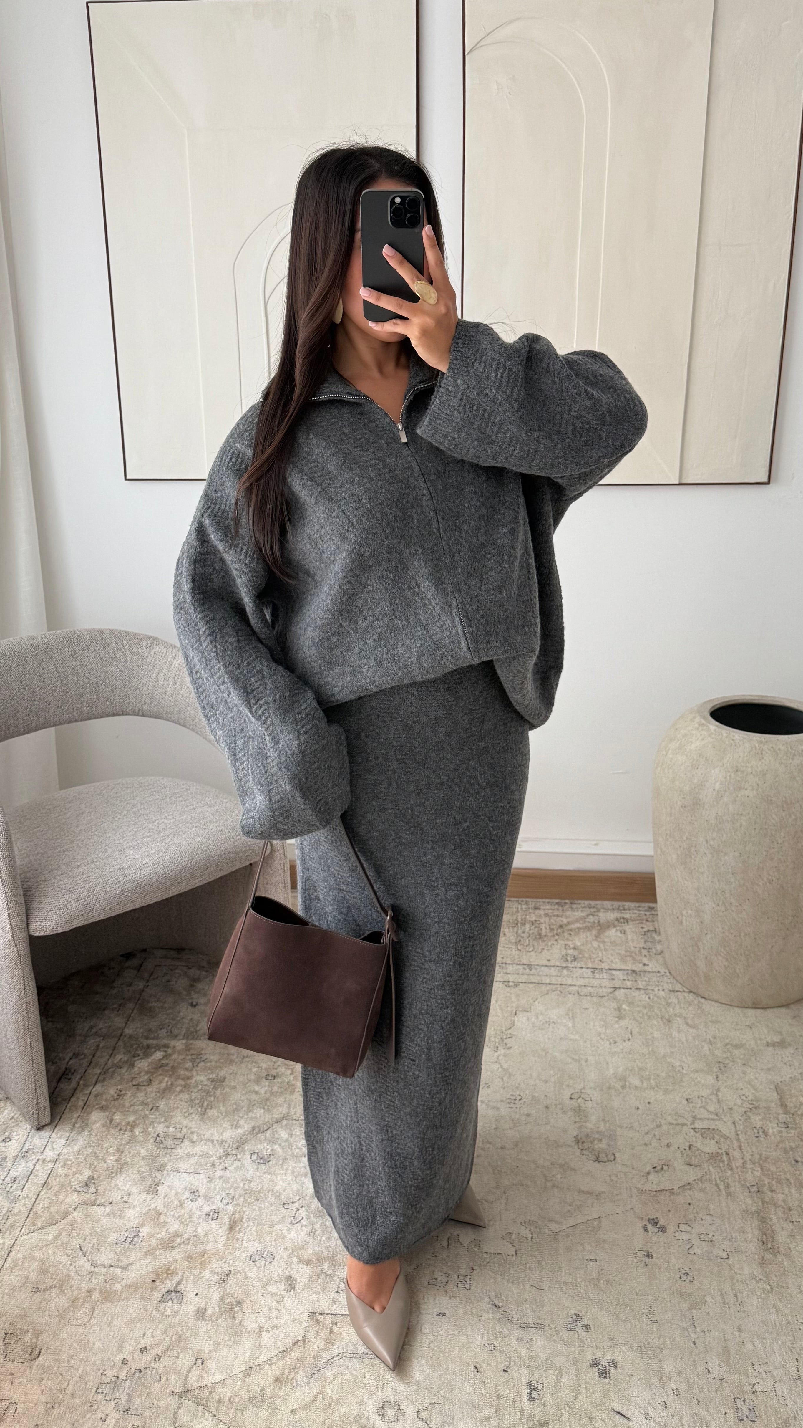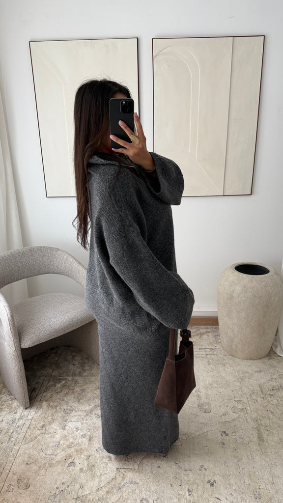 Ensemble pull à zip et jupe ultra longue I Gris foncé