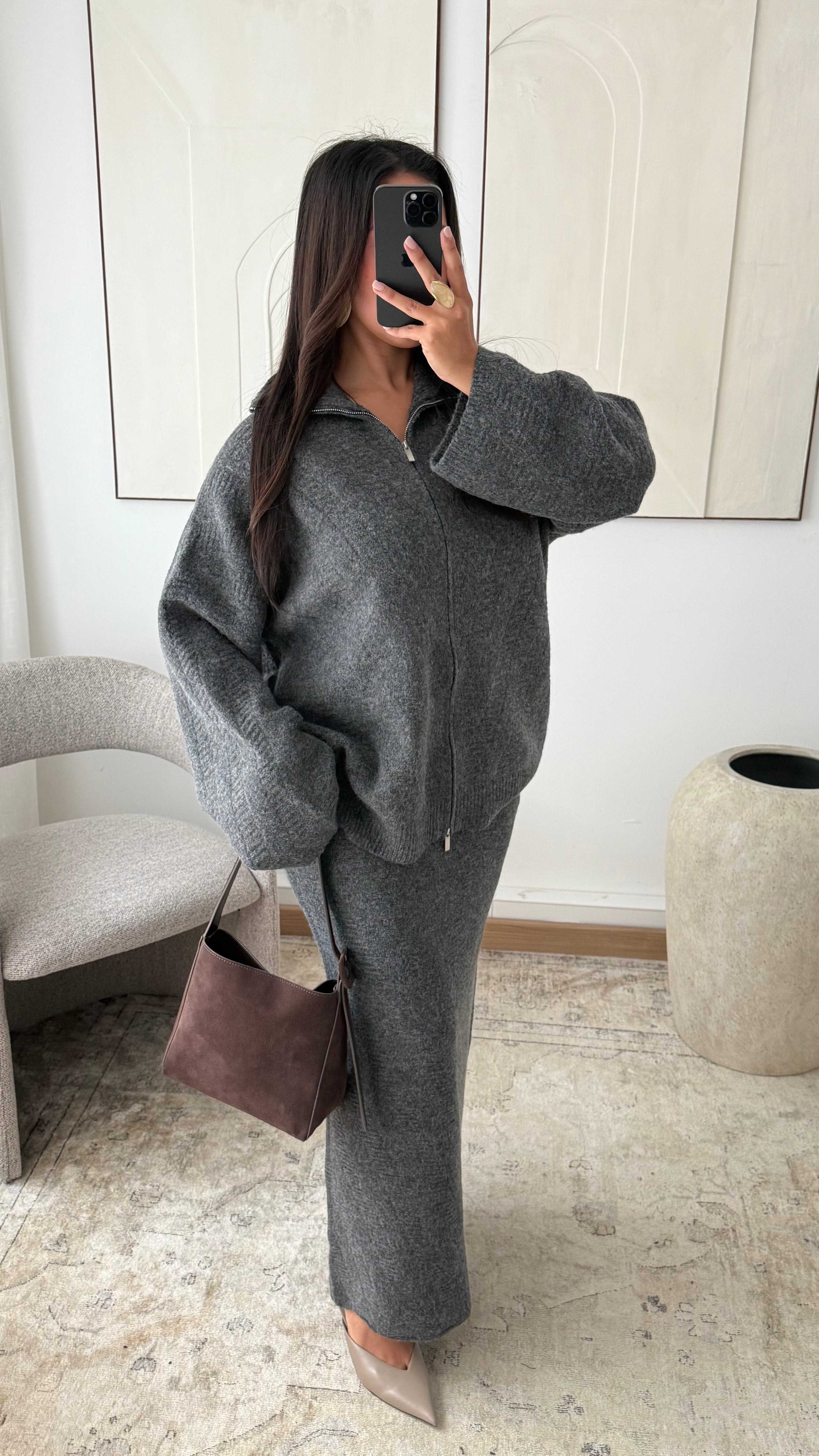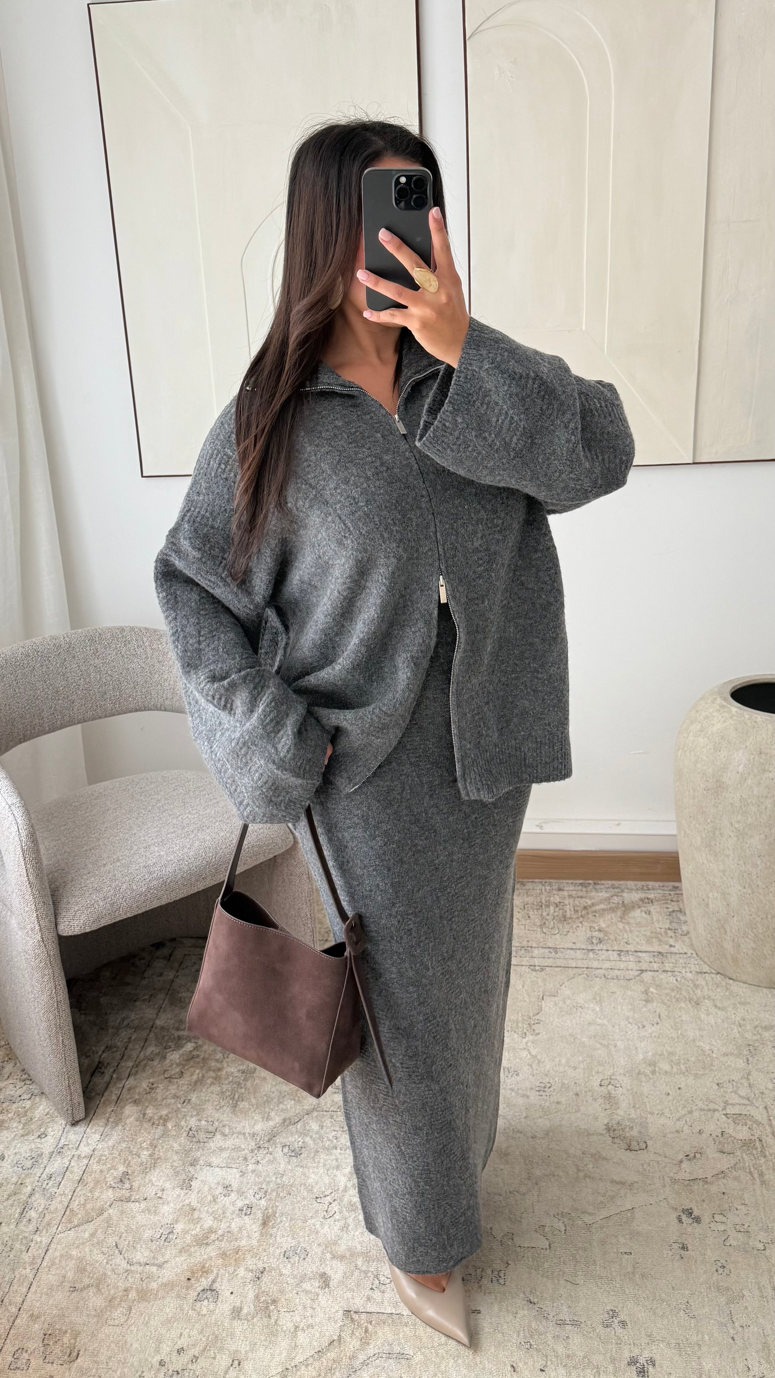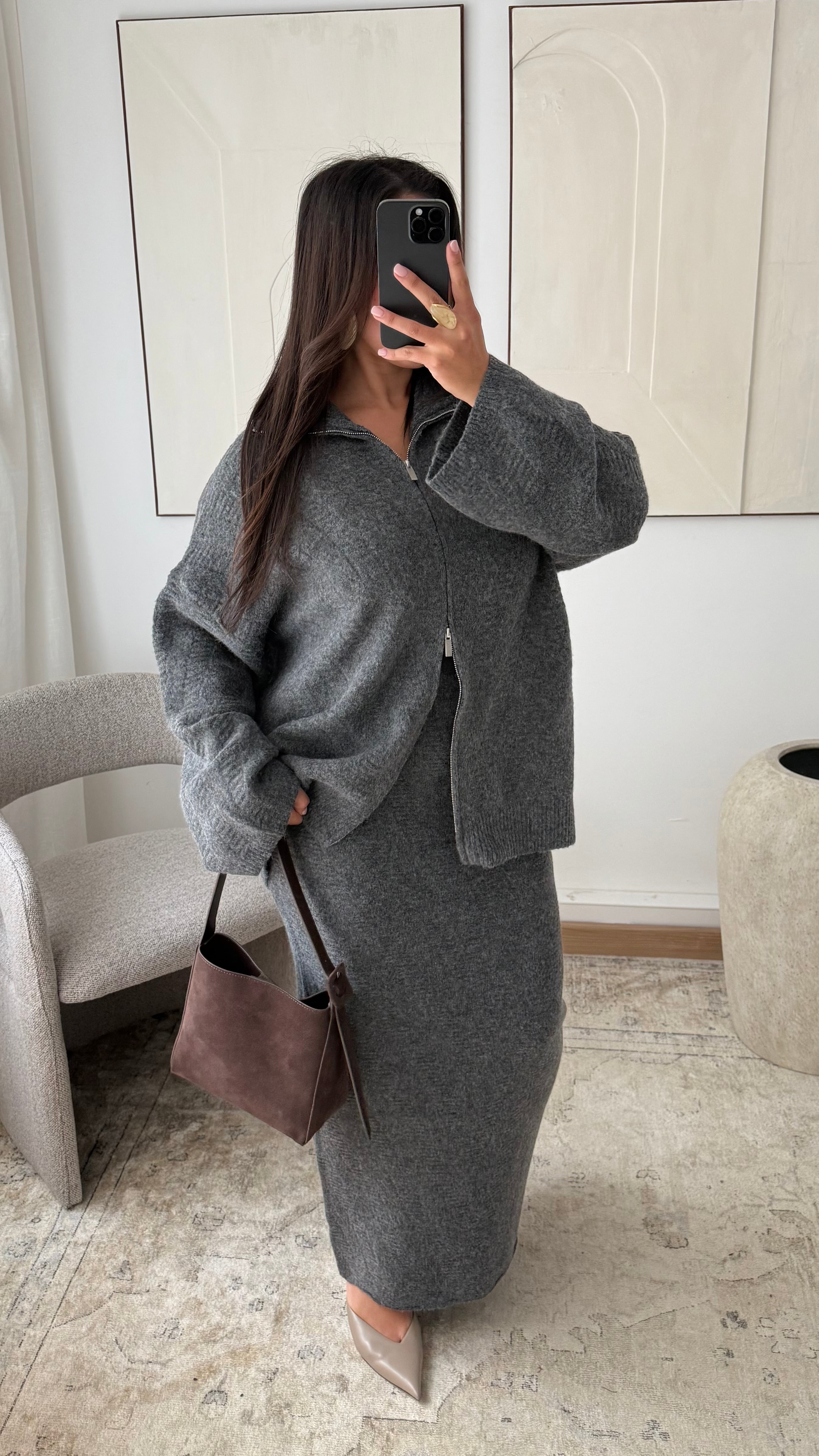 Ensemble pull à zip et jupe ultra longue I Gris foncé