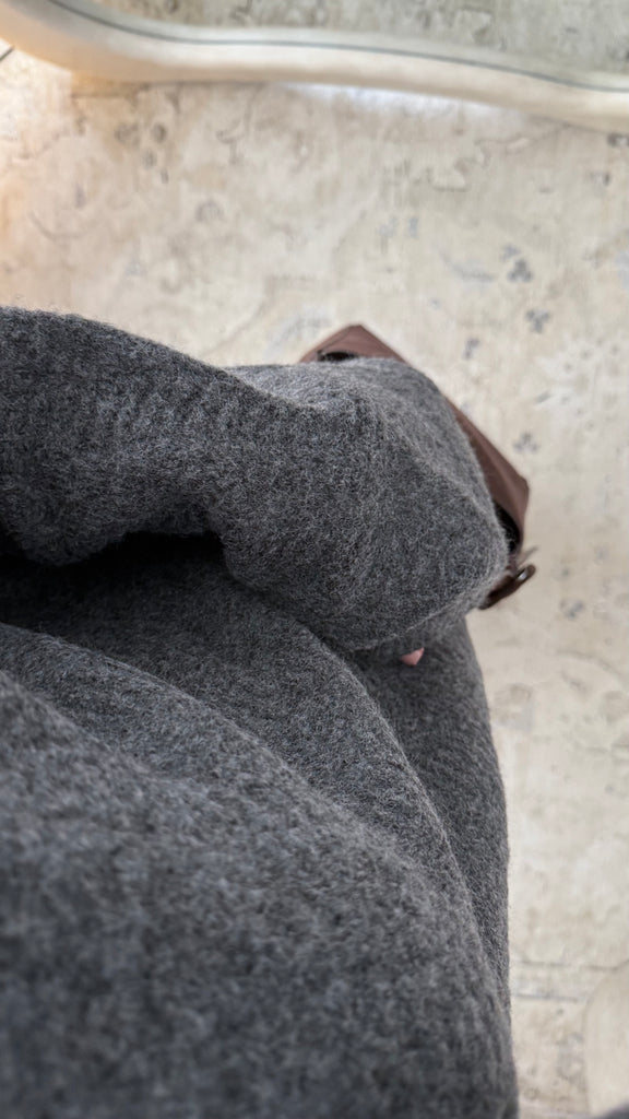 À porter avec des bottes hautes, un foulard en laine fine ou en jersey pour rester dans les tons doux, et un manteau long pour un look sobre et raffiné. Peut aussi se porter en dépareillé pour varier les tenues.
