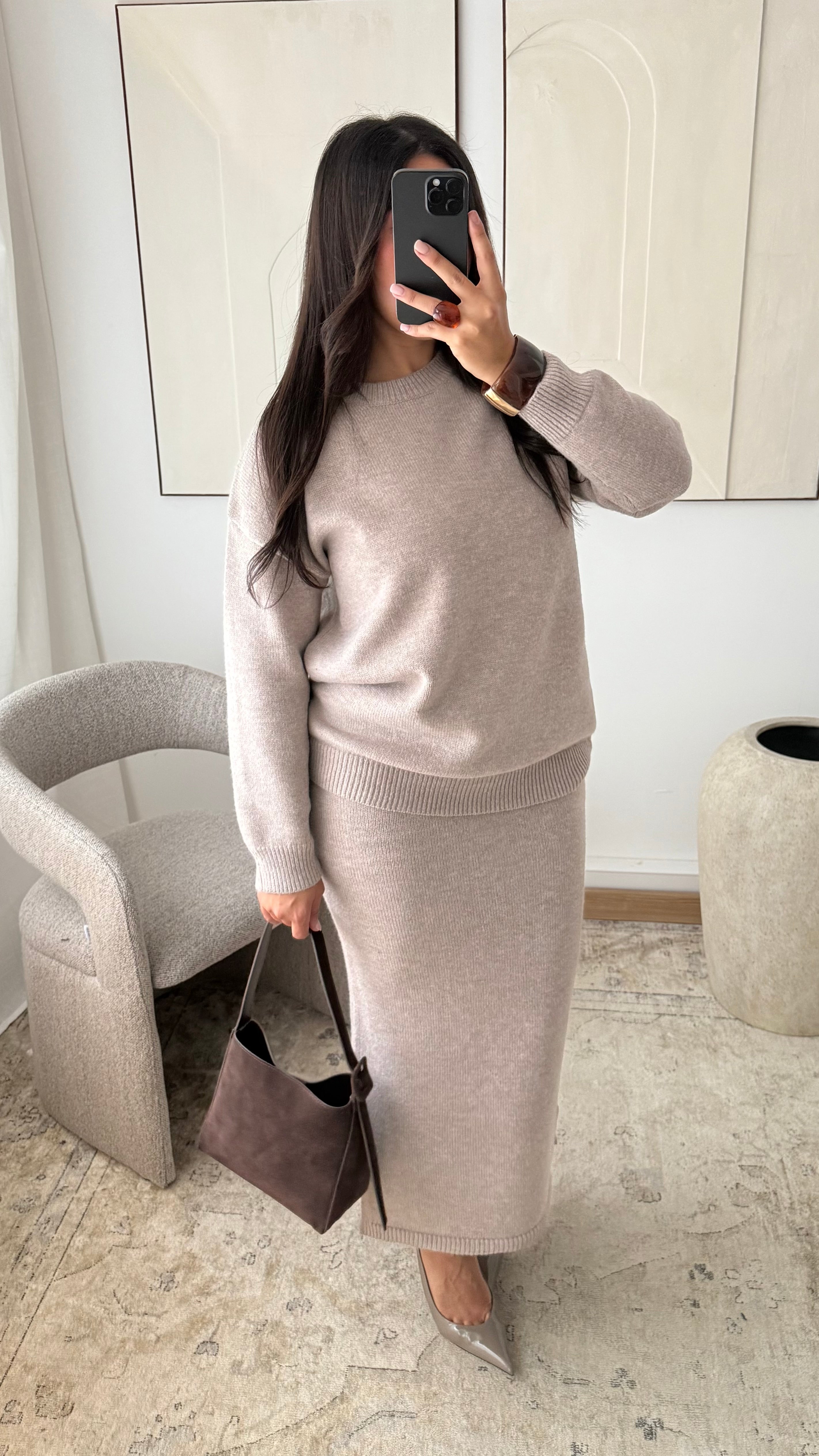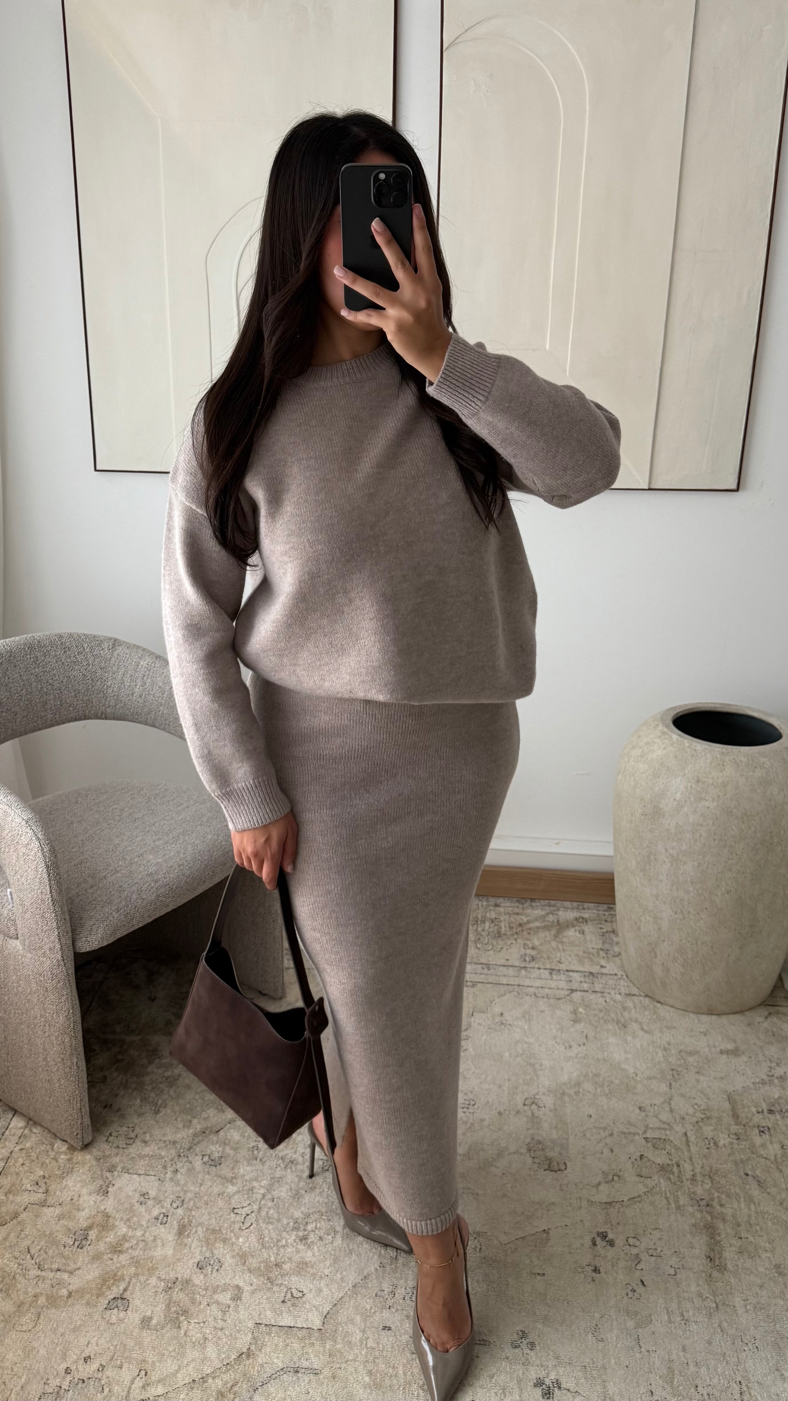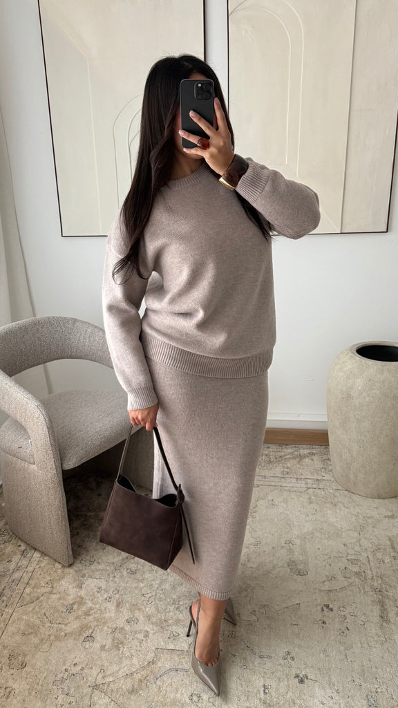 Ensemble pull et jupe en maille épaisse TALYA I Taupe