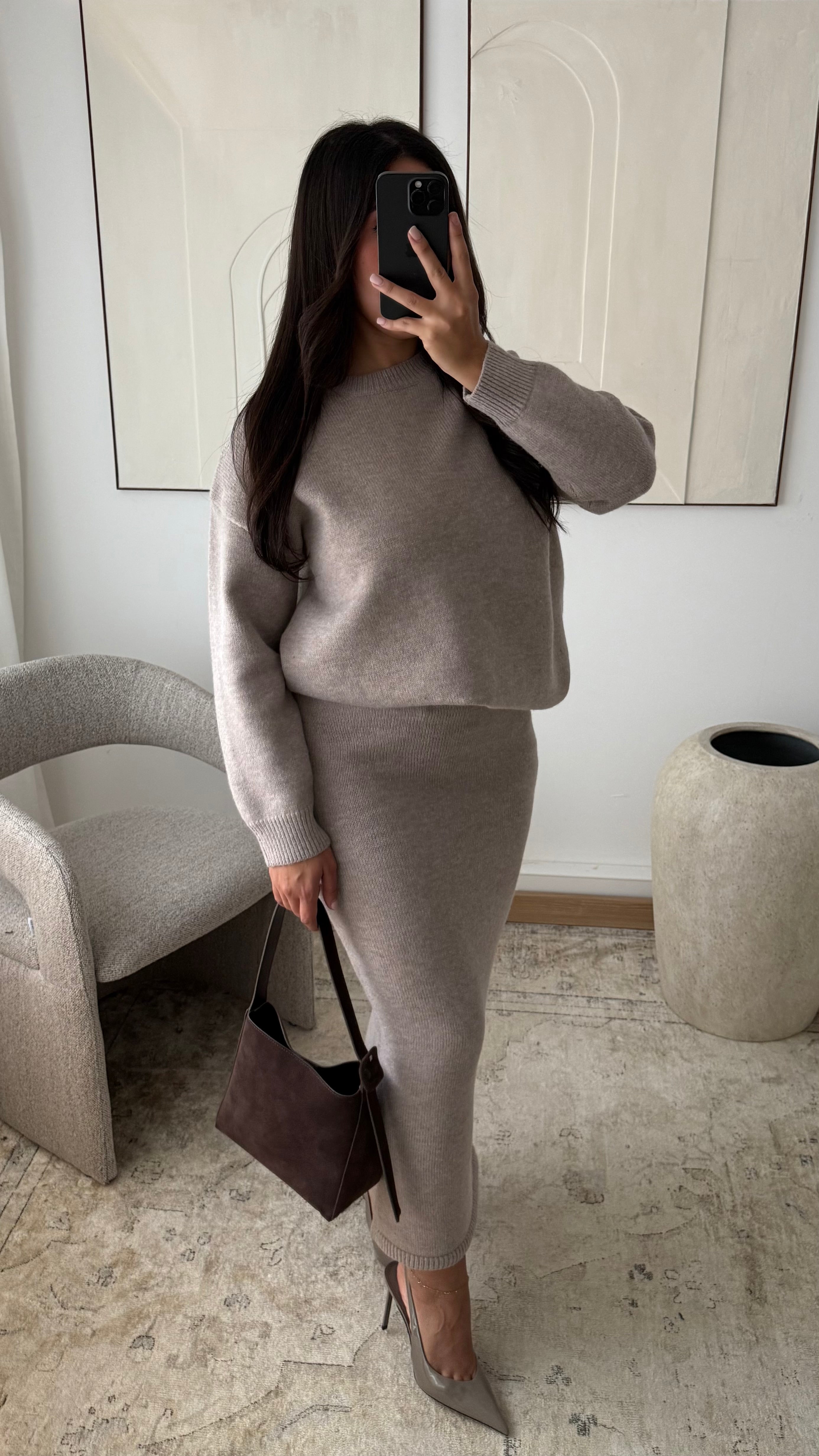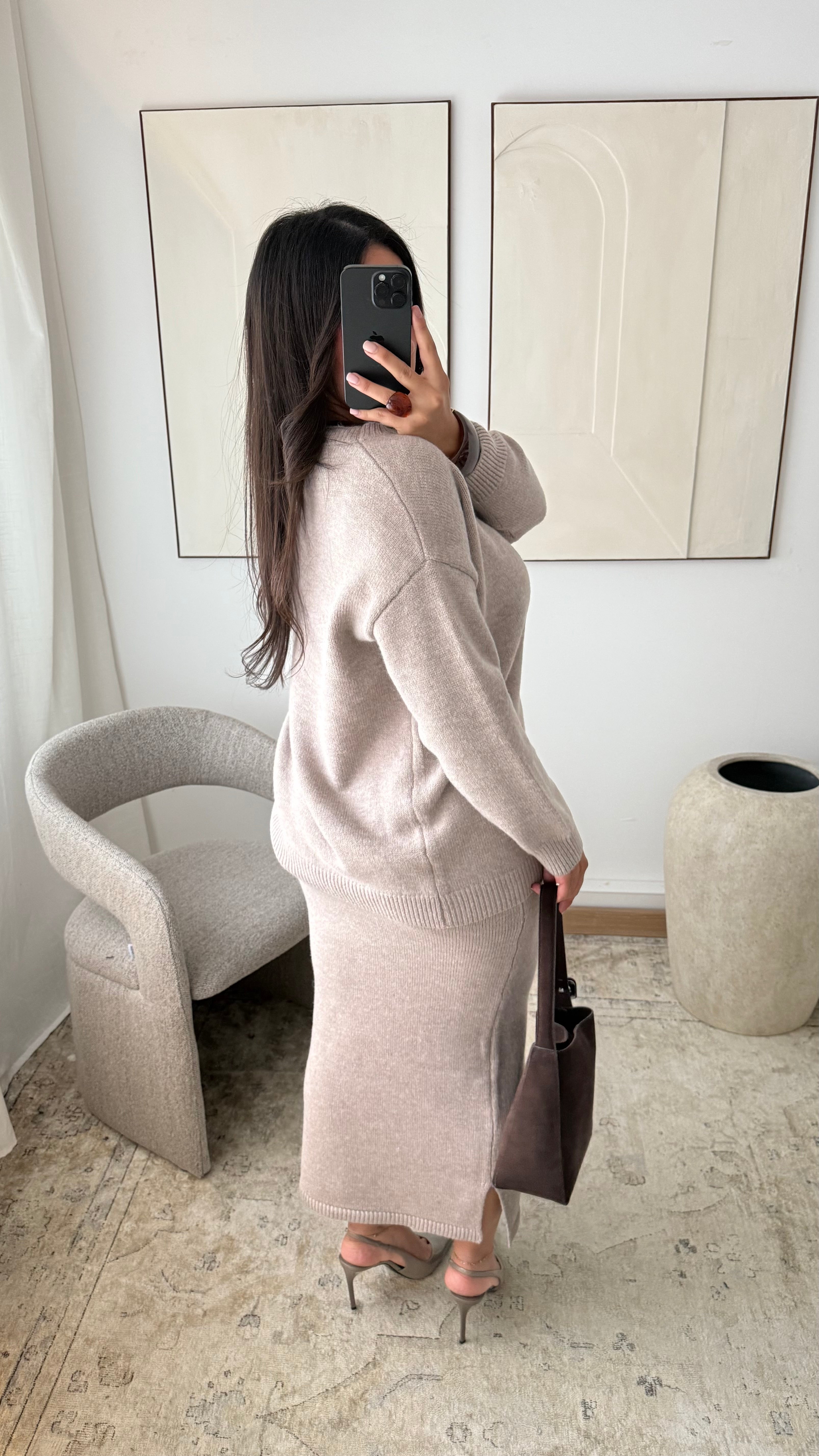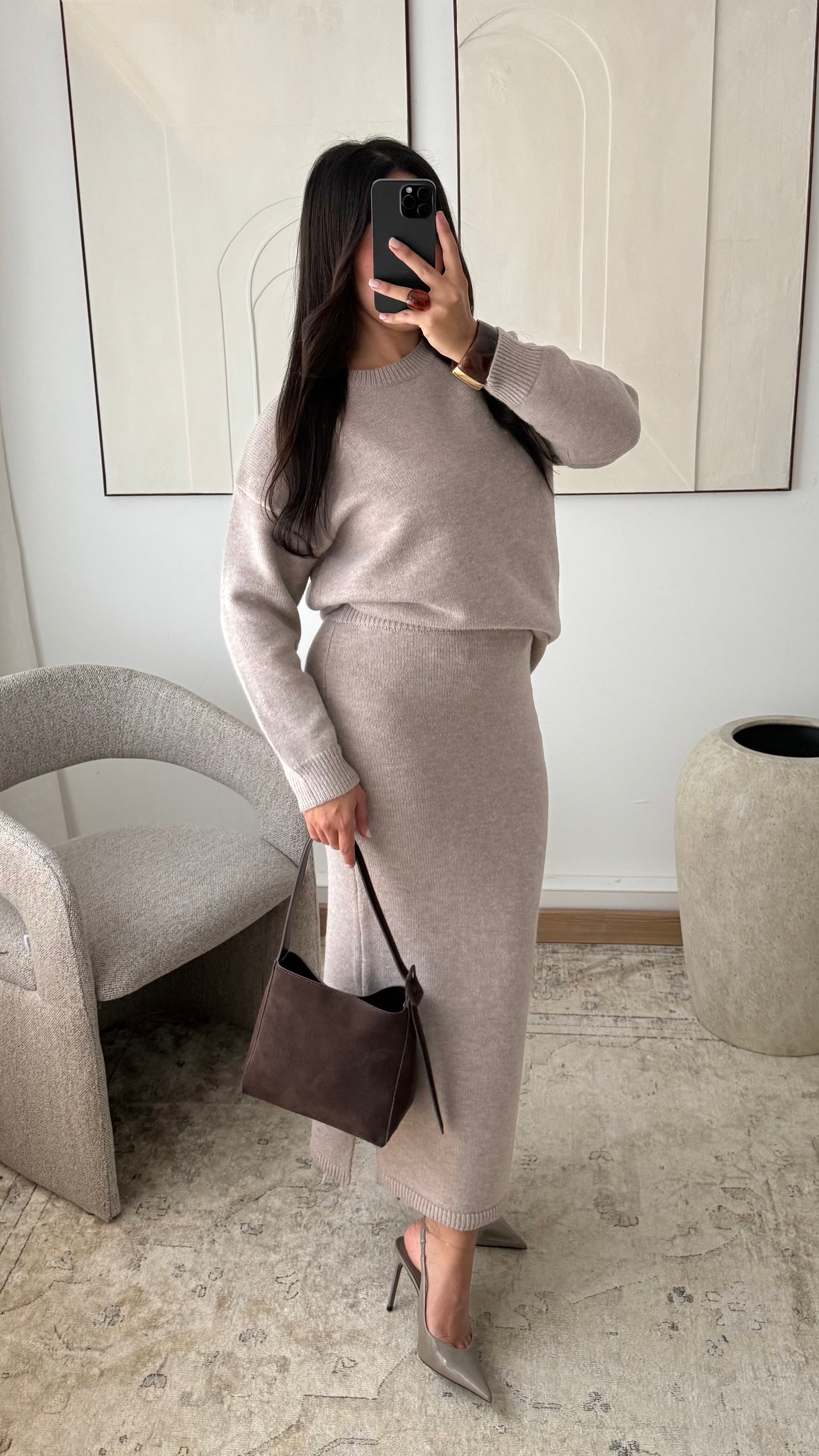 Ensemble pull et jupe en maille épaisse TALYA I Taupe