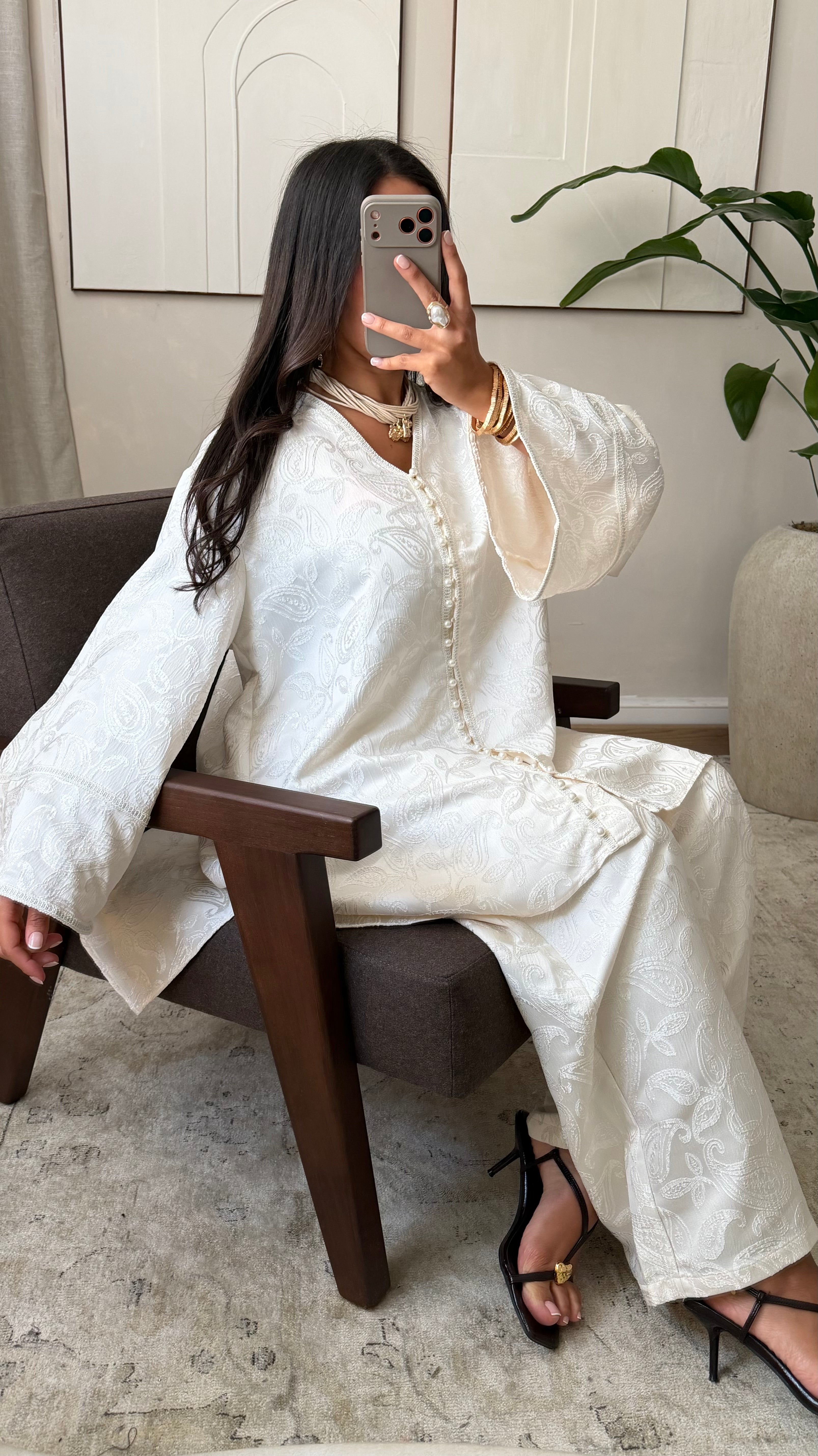 Cet ensemble séduit par son style à la fois chic et confortable. Composé d’un haut long et d’un pantalon assorti, il offre une silhouette fluide et harmonieuse. Sa matière douce et respirante assure un tombé naturel, idéal pour un porté agréable tout au long de la journée.