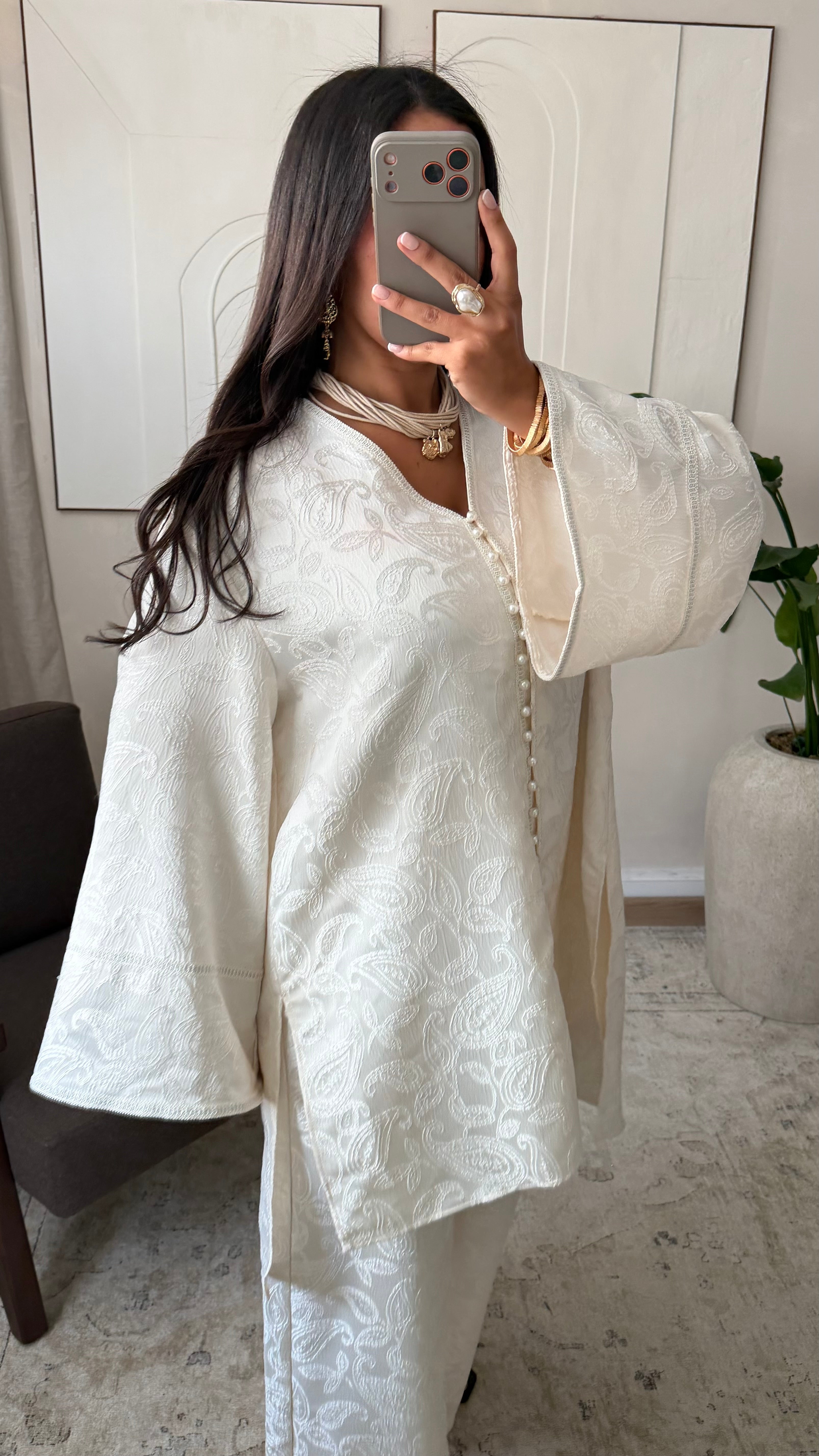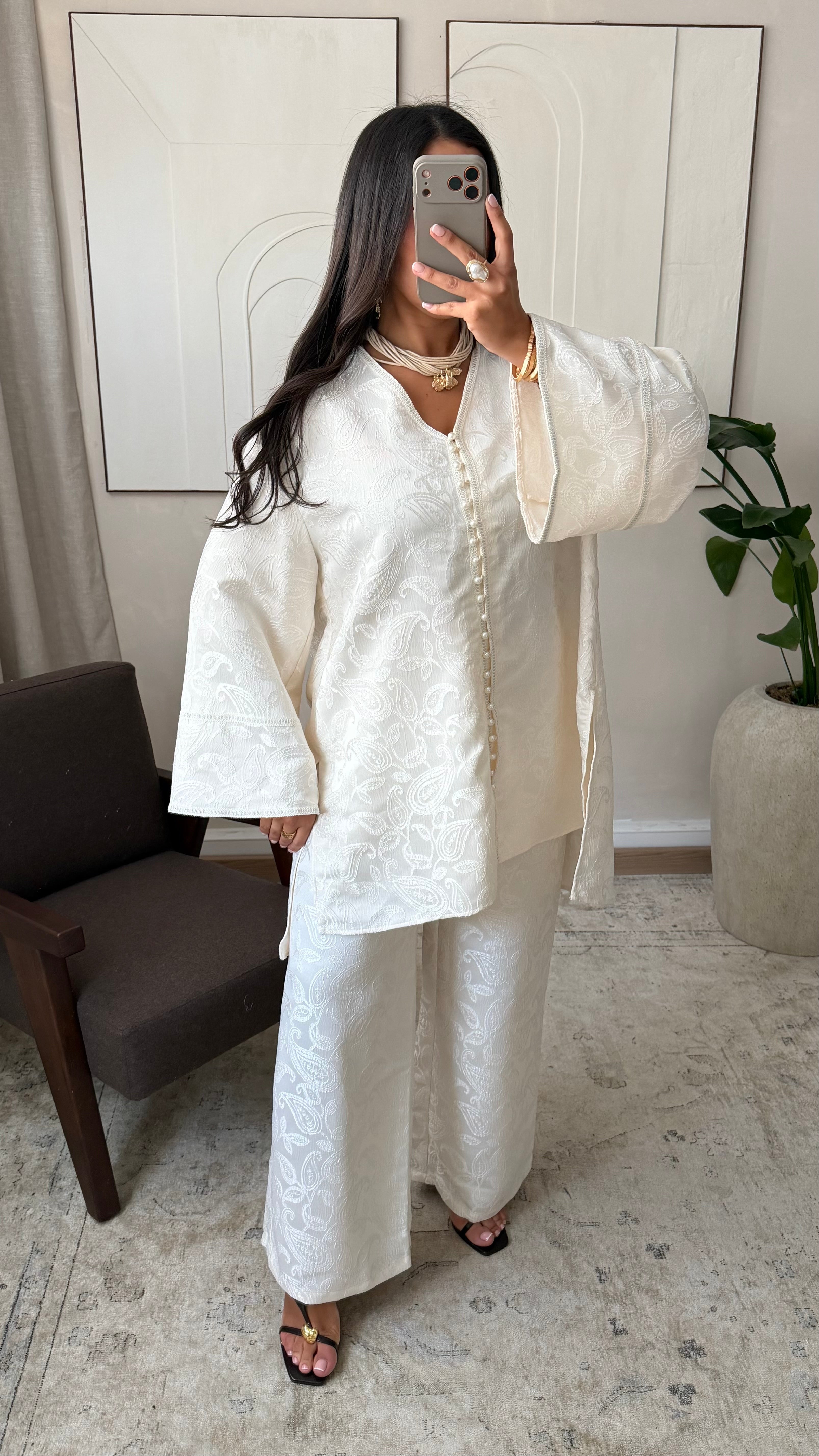 Ensemble deux pièces : haut + pantalon (le kimono est vendu séparément).