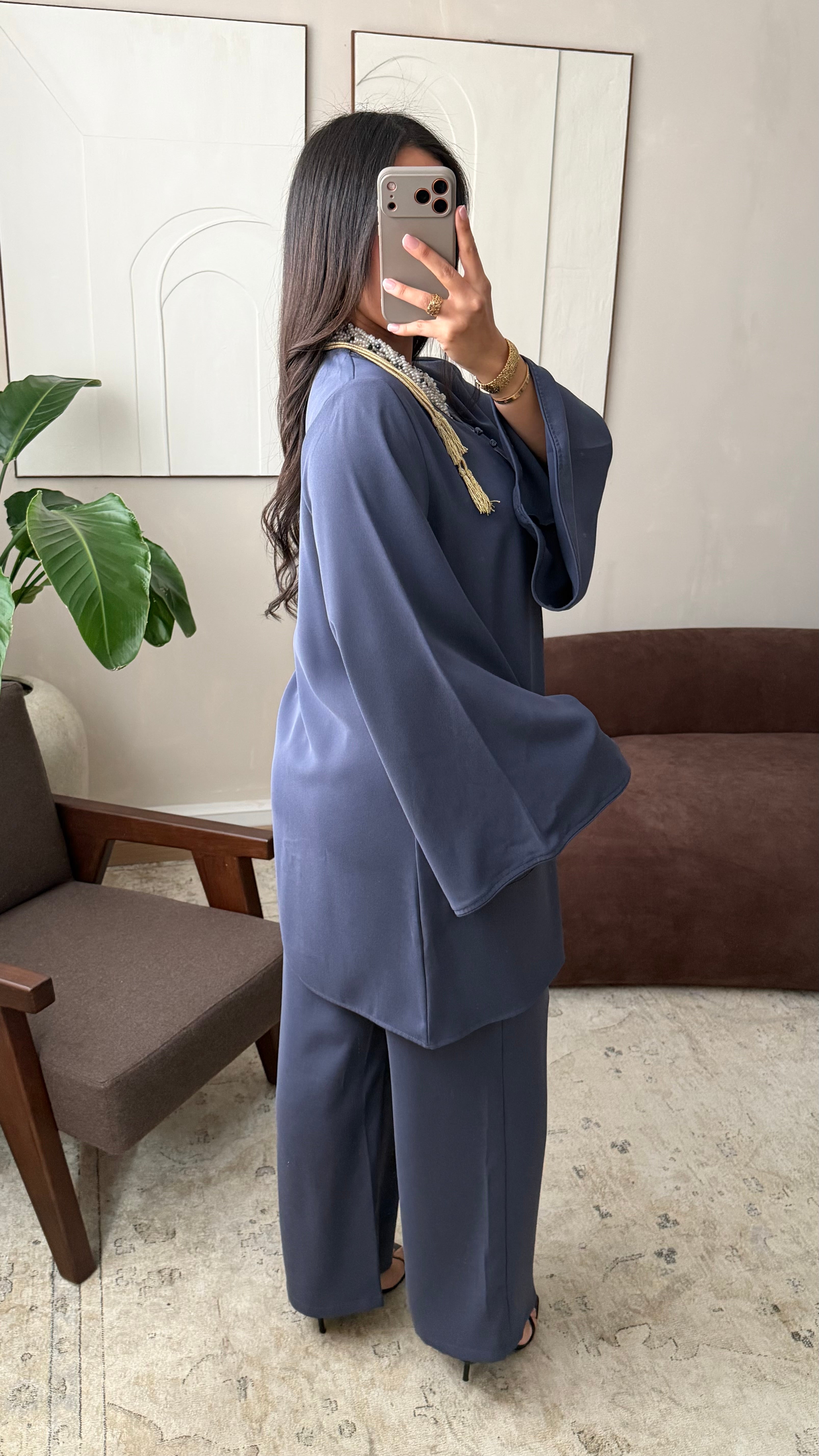 Succombez au charme de cet ensemble traditionnel et moderne, une pièce élégante qui allie authenticité et tendance contemporaine. Composé d’un haut long et d’un pantalon fluide, il est sublimé par une ceinture qui structure la silhouette et souligne la taille avec raffinement. Confortable et sophistiqué, il est idéal pour vos occasions spéciales.
