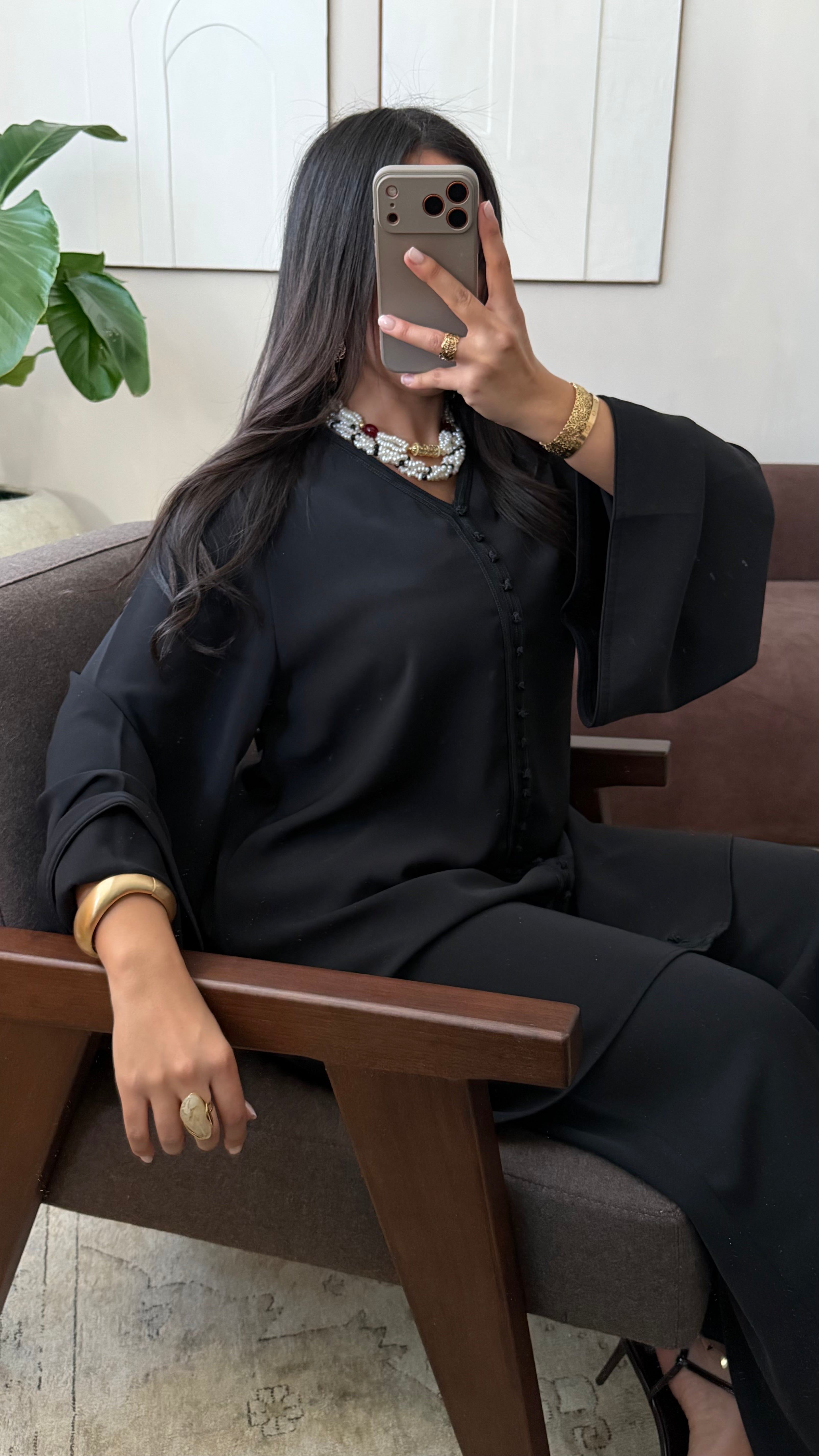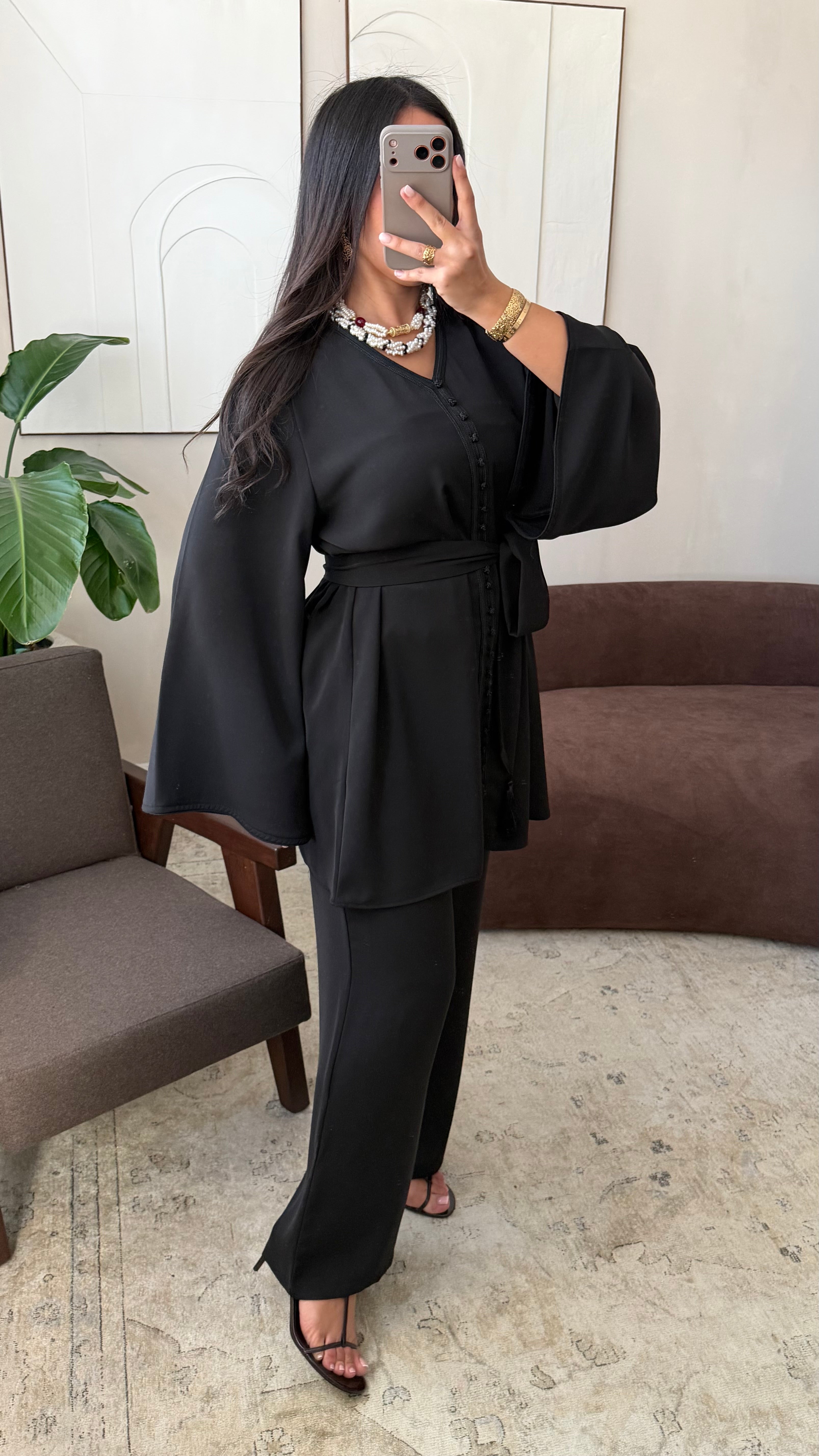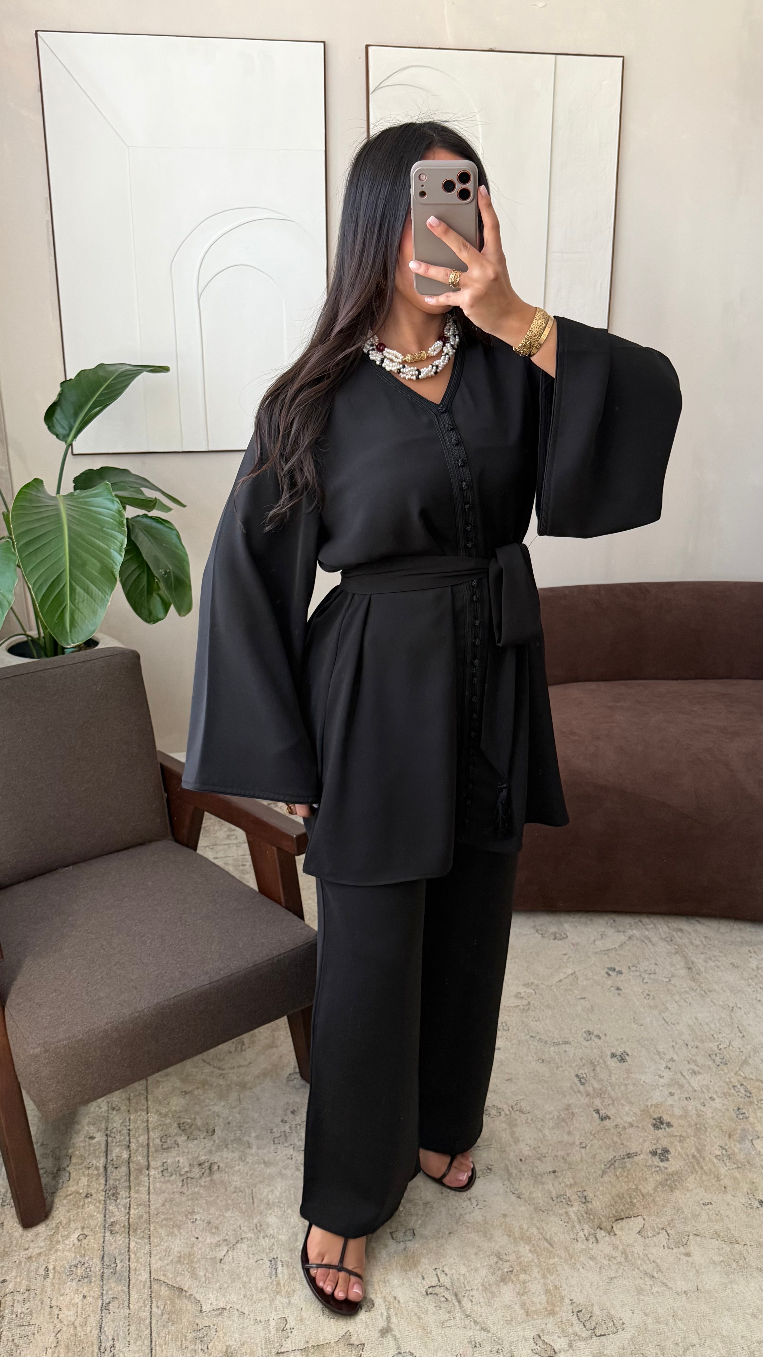 Succombez au charme de cet ensemble traditionnel et moderne, une pièce élégante qui allie authenticité et tendance contemporaine. Composé d’un haut long et d’un pantalon fluide, il est sublimé par une ceinture qui structure la silhouette et souligne la taille avec raffinement. Confortable et sophistiqué, il est idéal pour vos occasions spéciales.