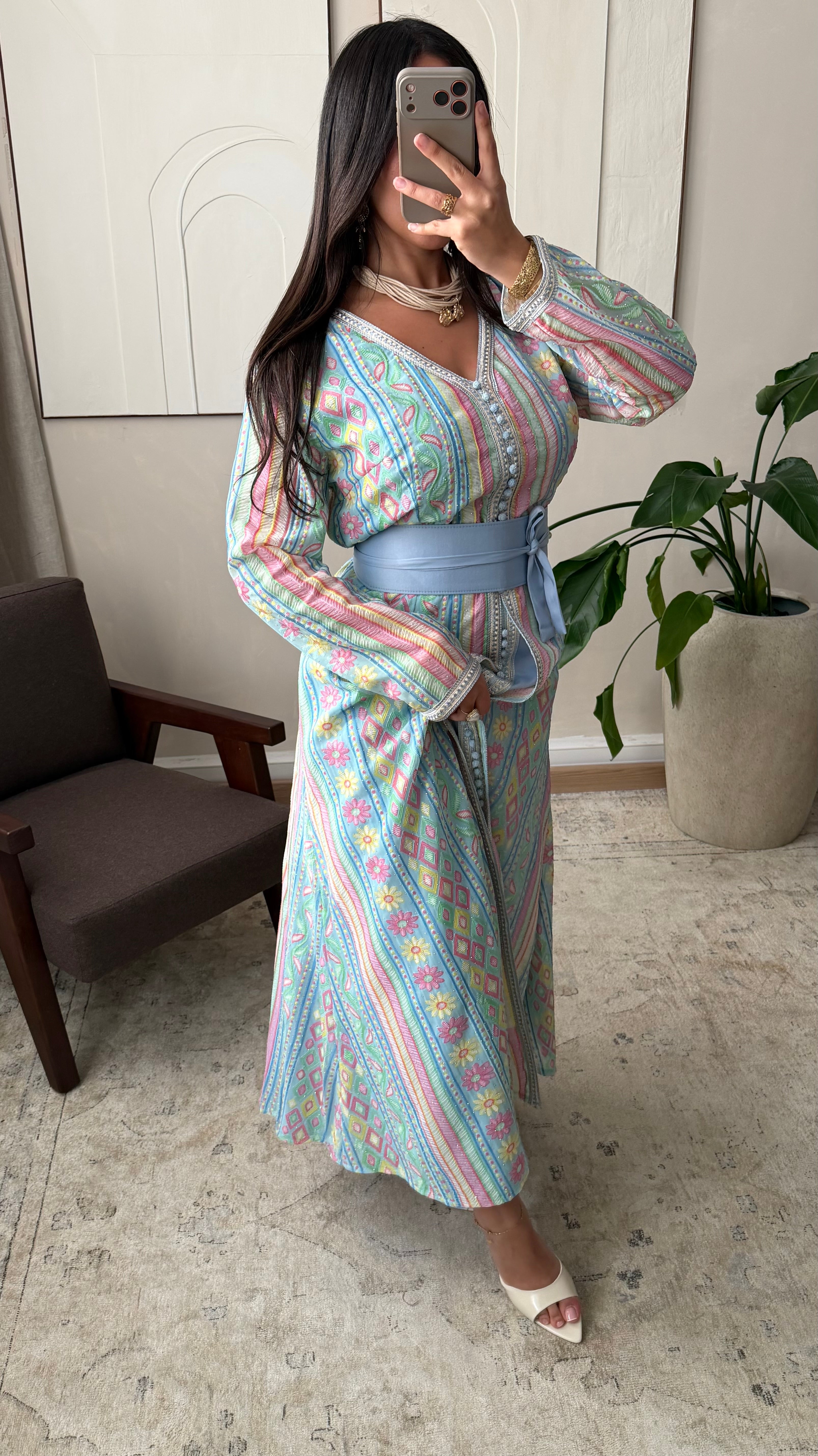 Robe caftan sari I Bleu ciel - S/M est en rupture de stock et sera envoyé dès qu'il sera disponible