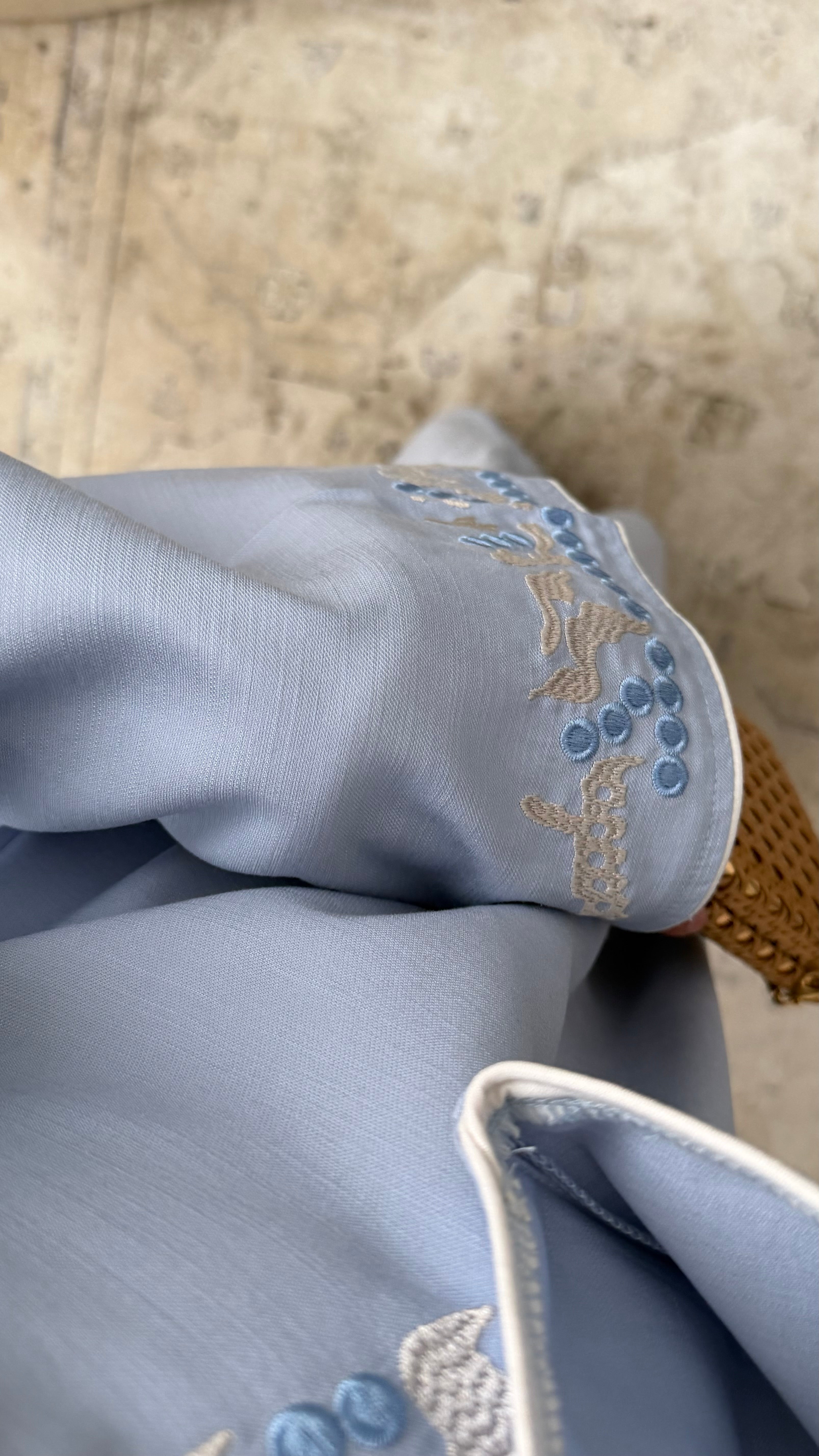 Caftan brodé effet coton I Bleu ciel