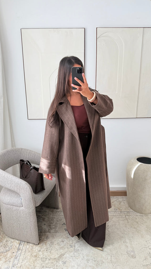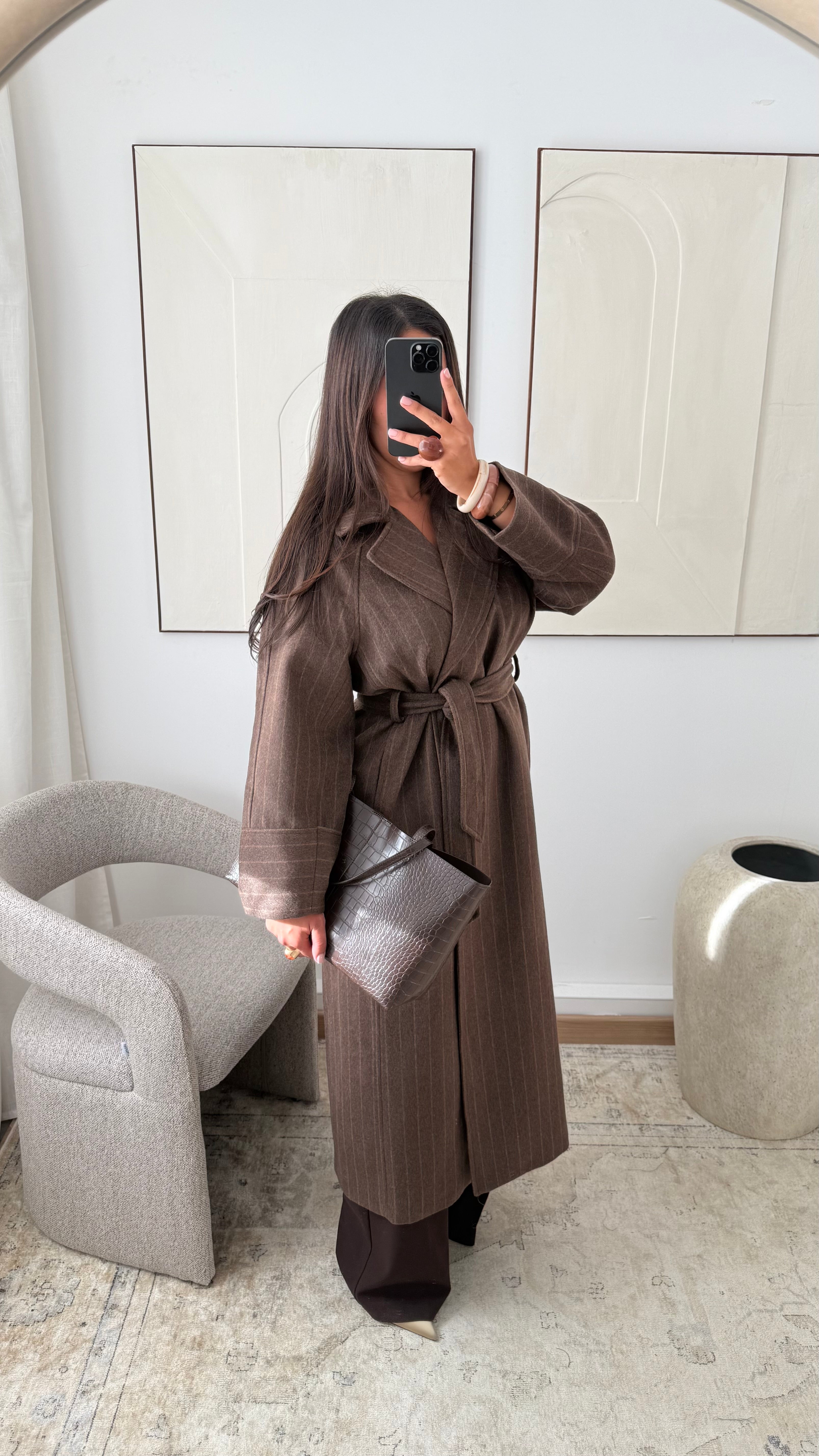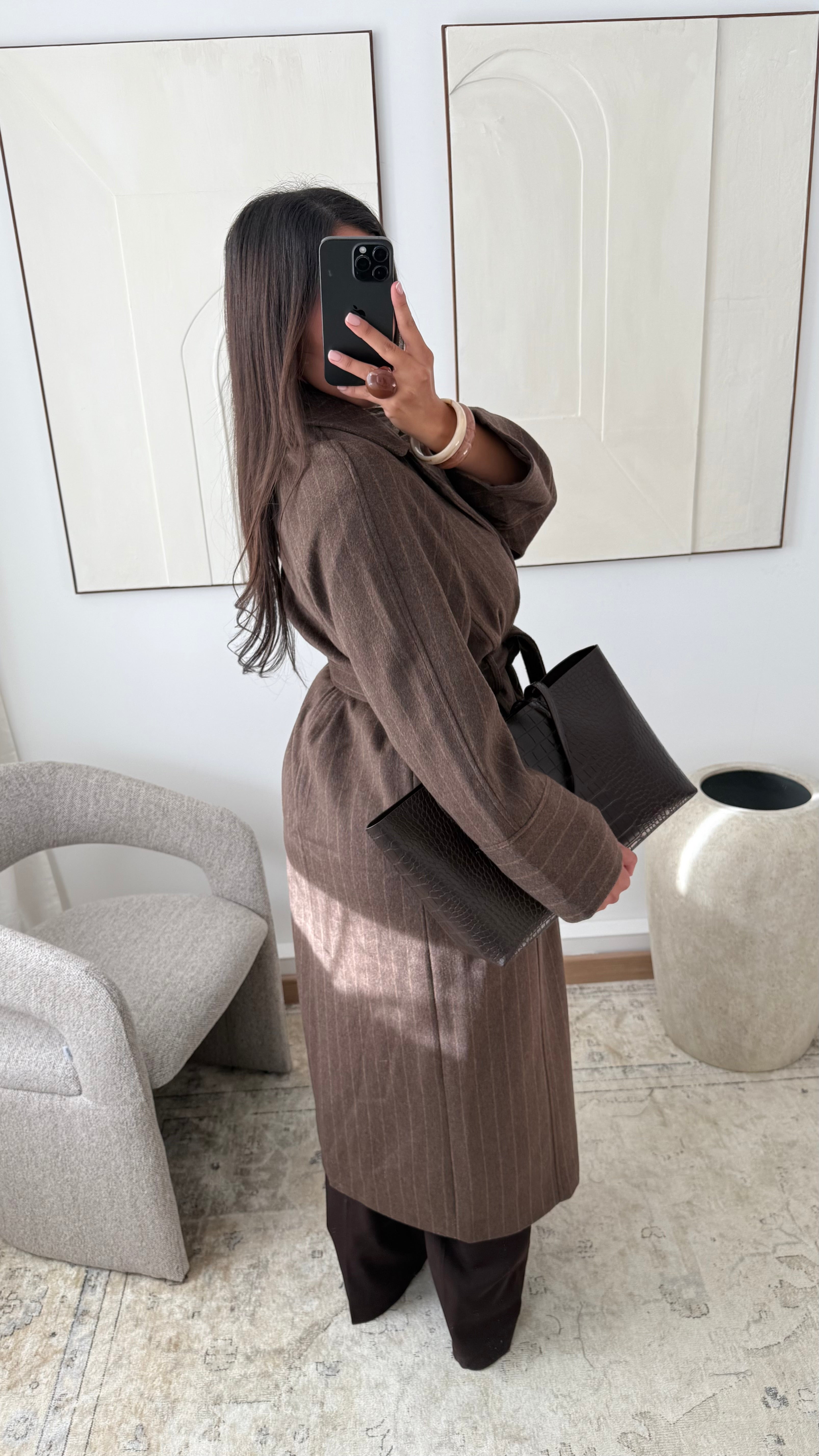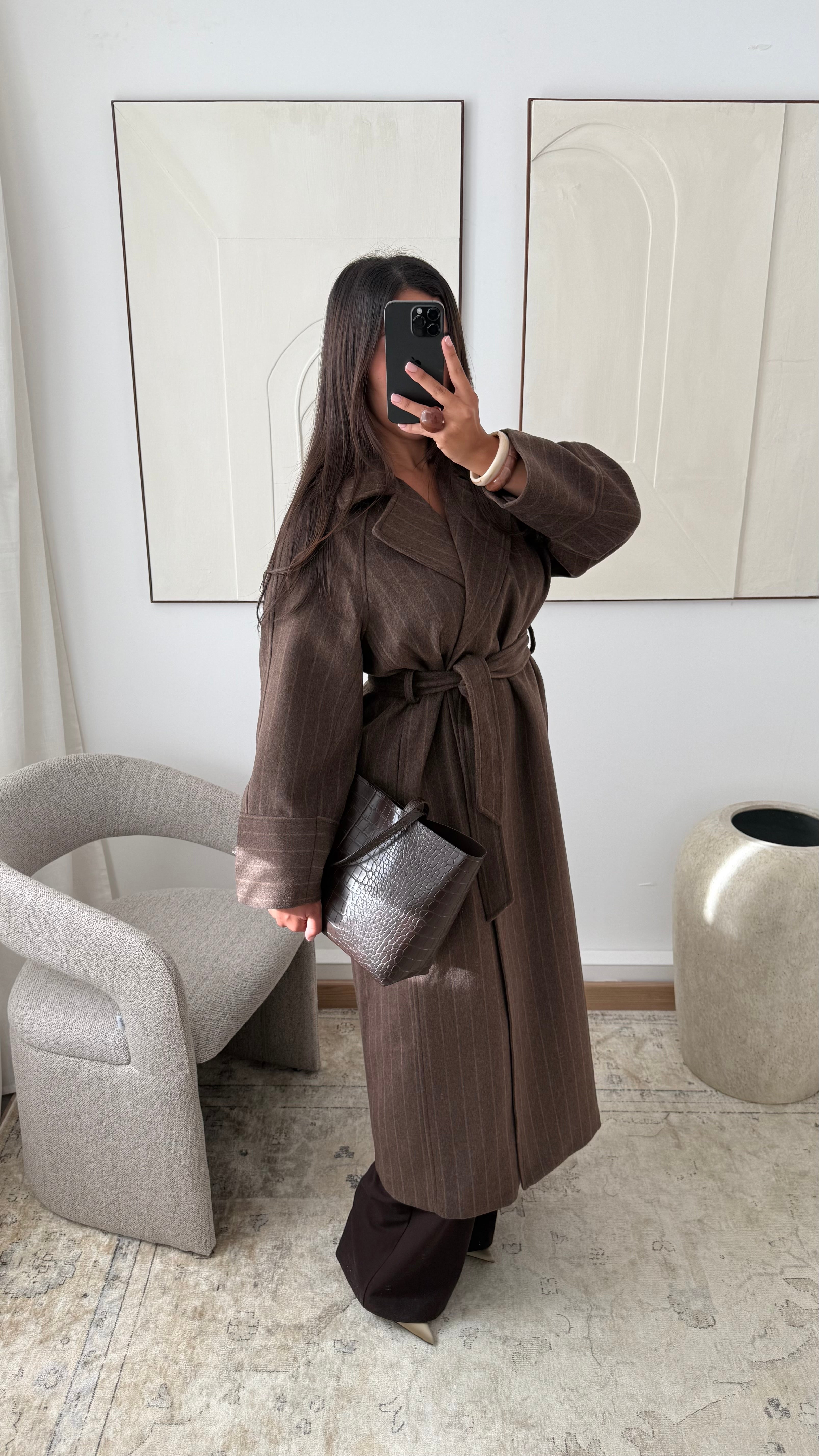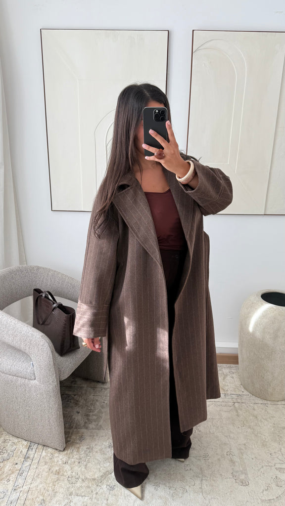 Manteau en laine véritable long à rayures LE TIMELESS I Chocolat
