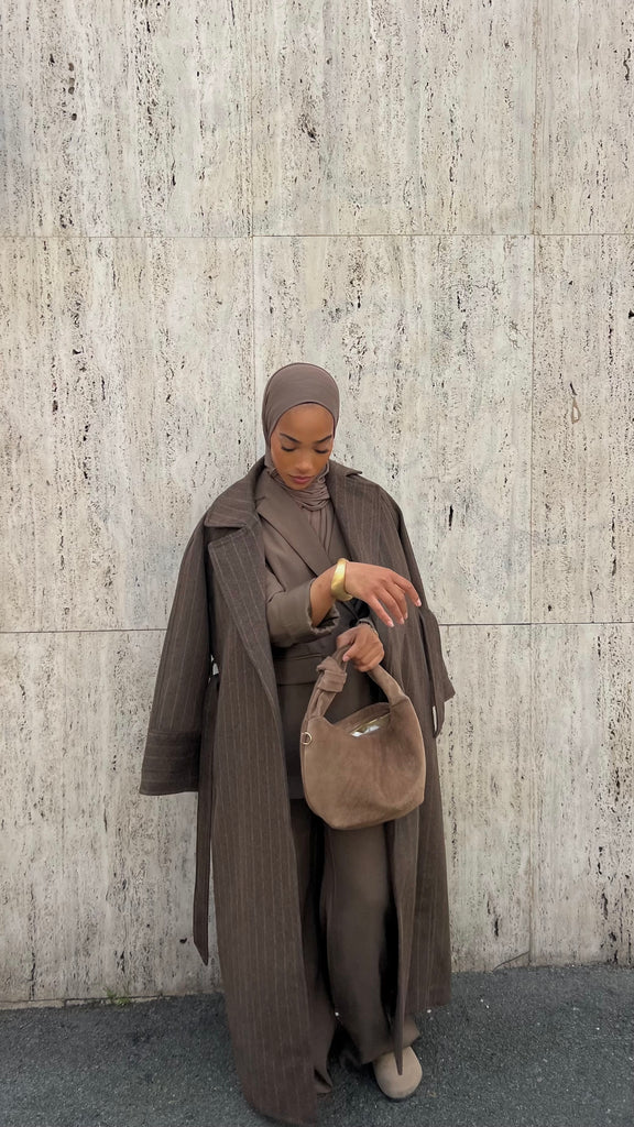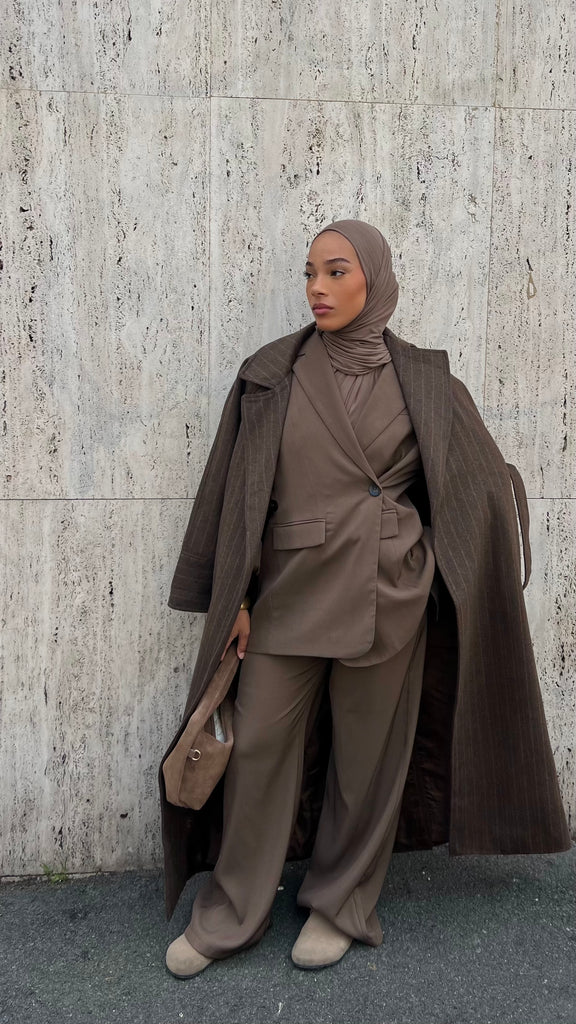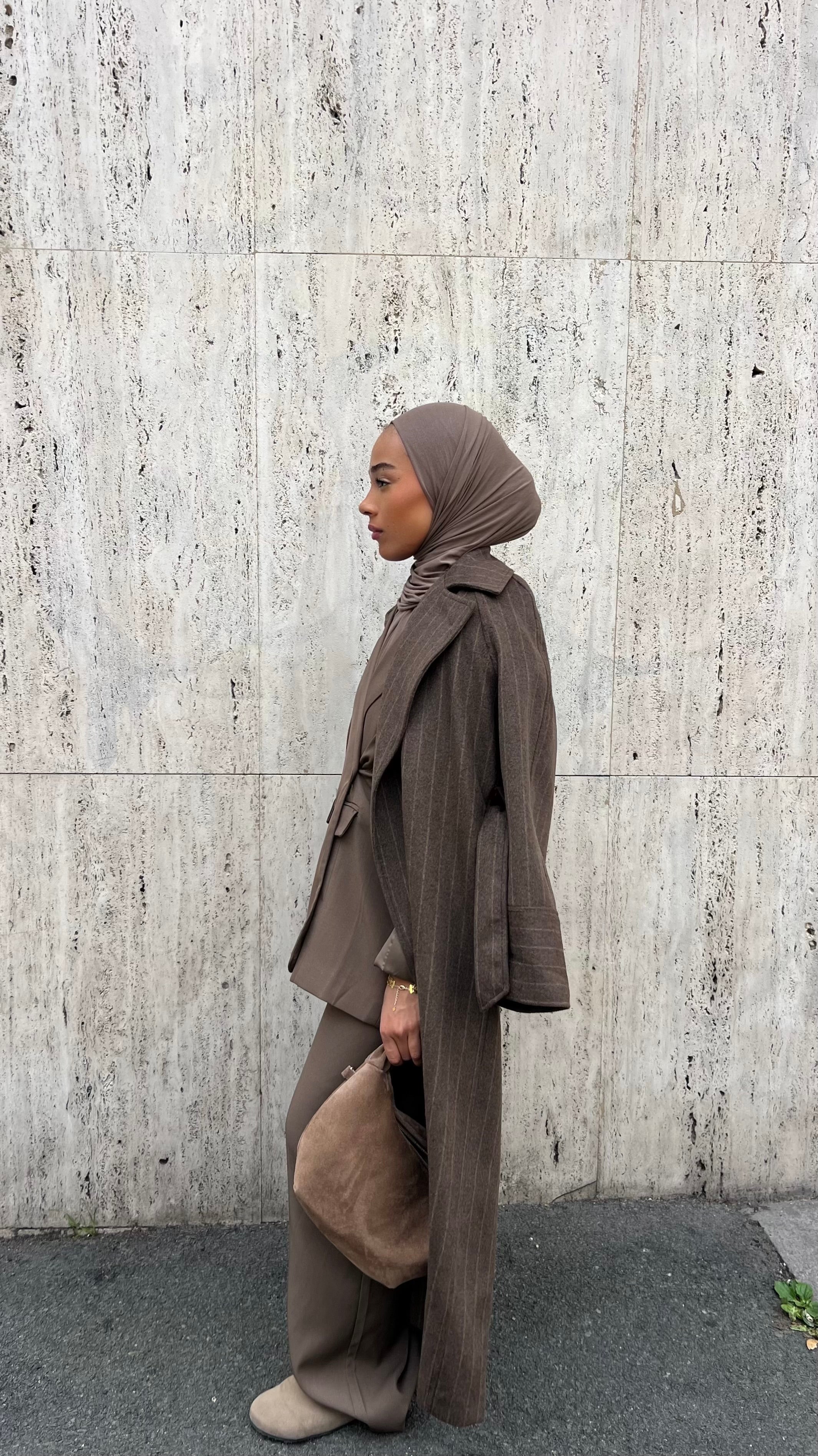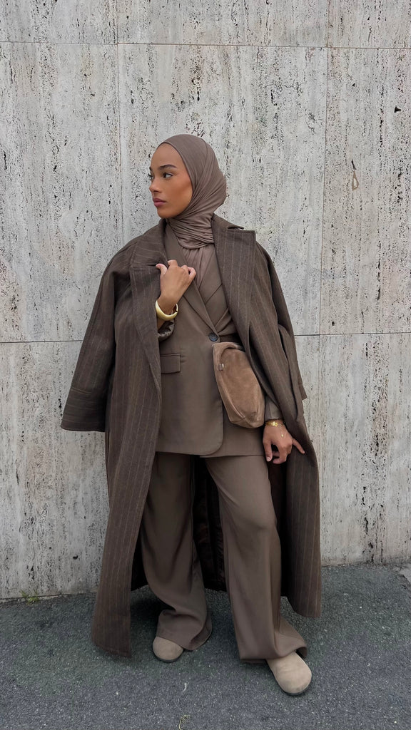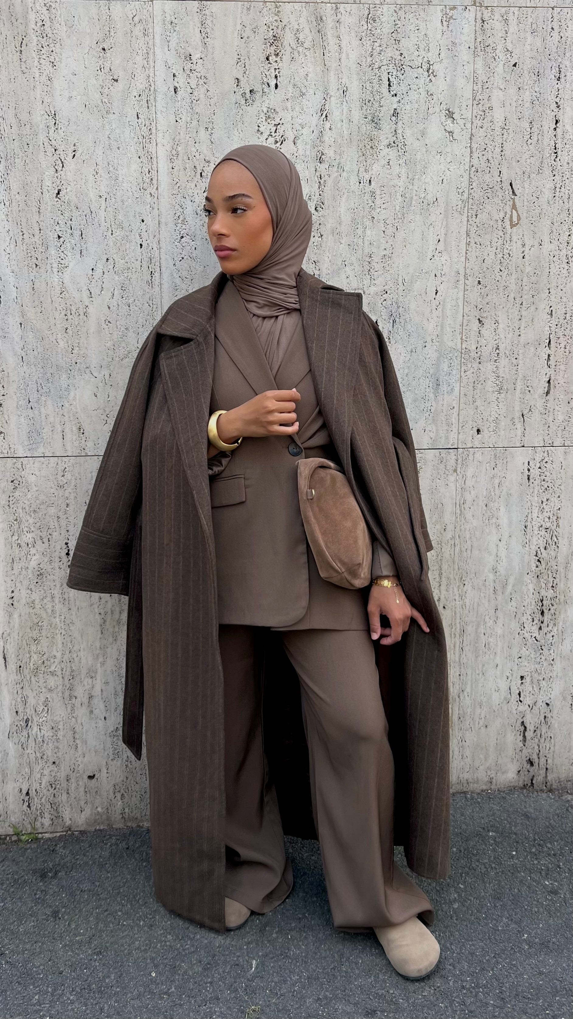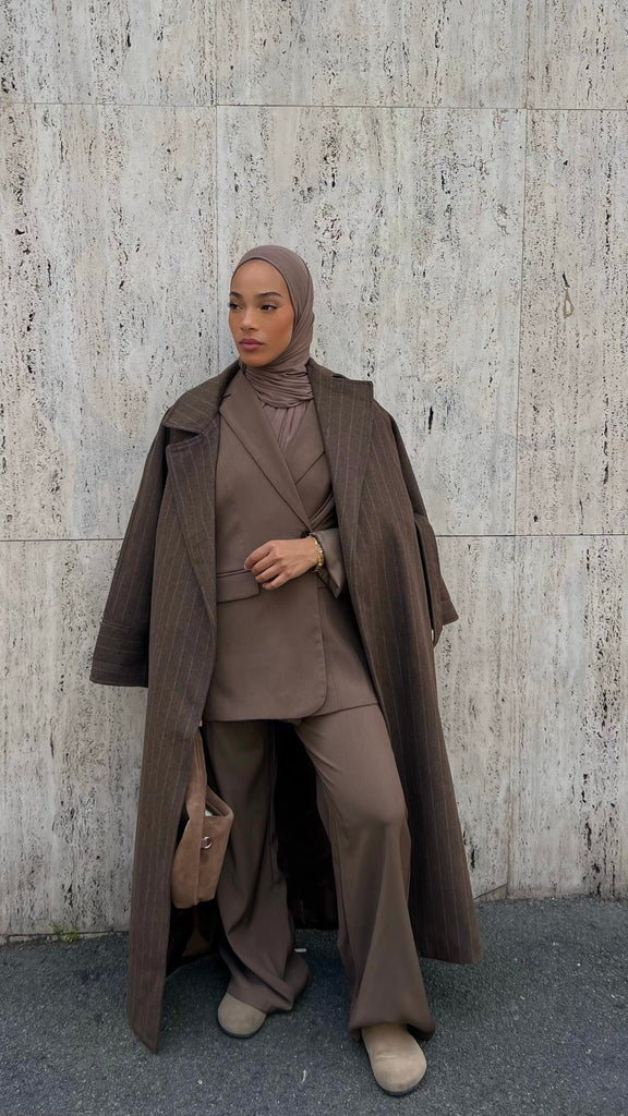 Manteau en laine véritable long à rayures LE TIMELESS I Chocolat