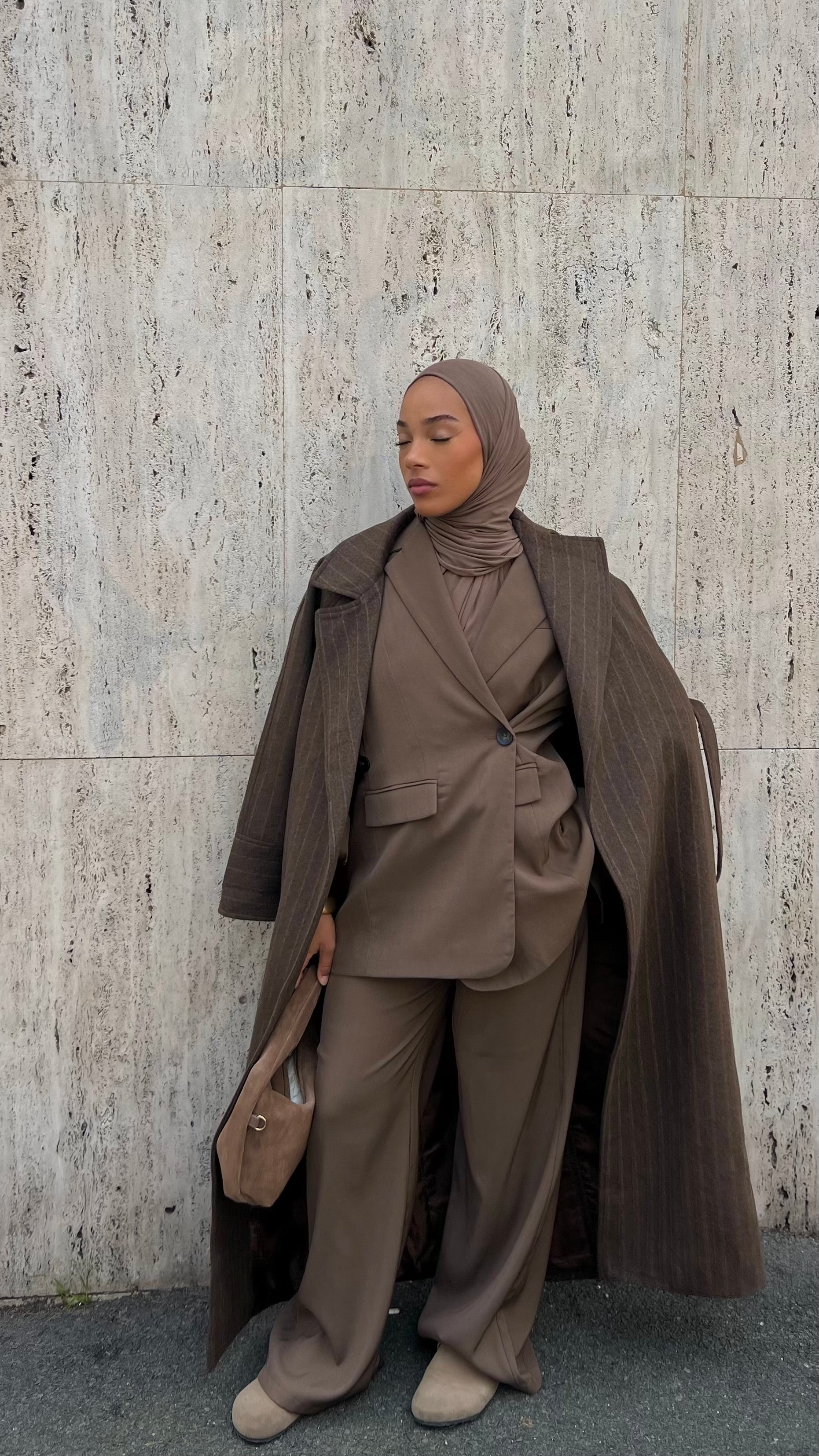 À porter avec un ensemble monochrome ou un jean brut pour une allure structurée et tendance. Idéal pour un look automnal affirmé et chic.