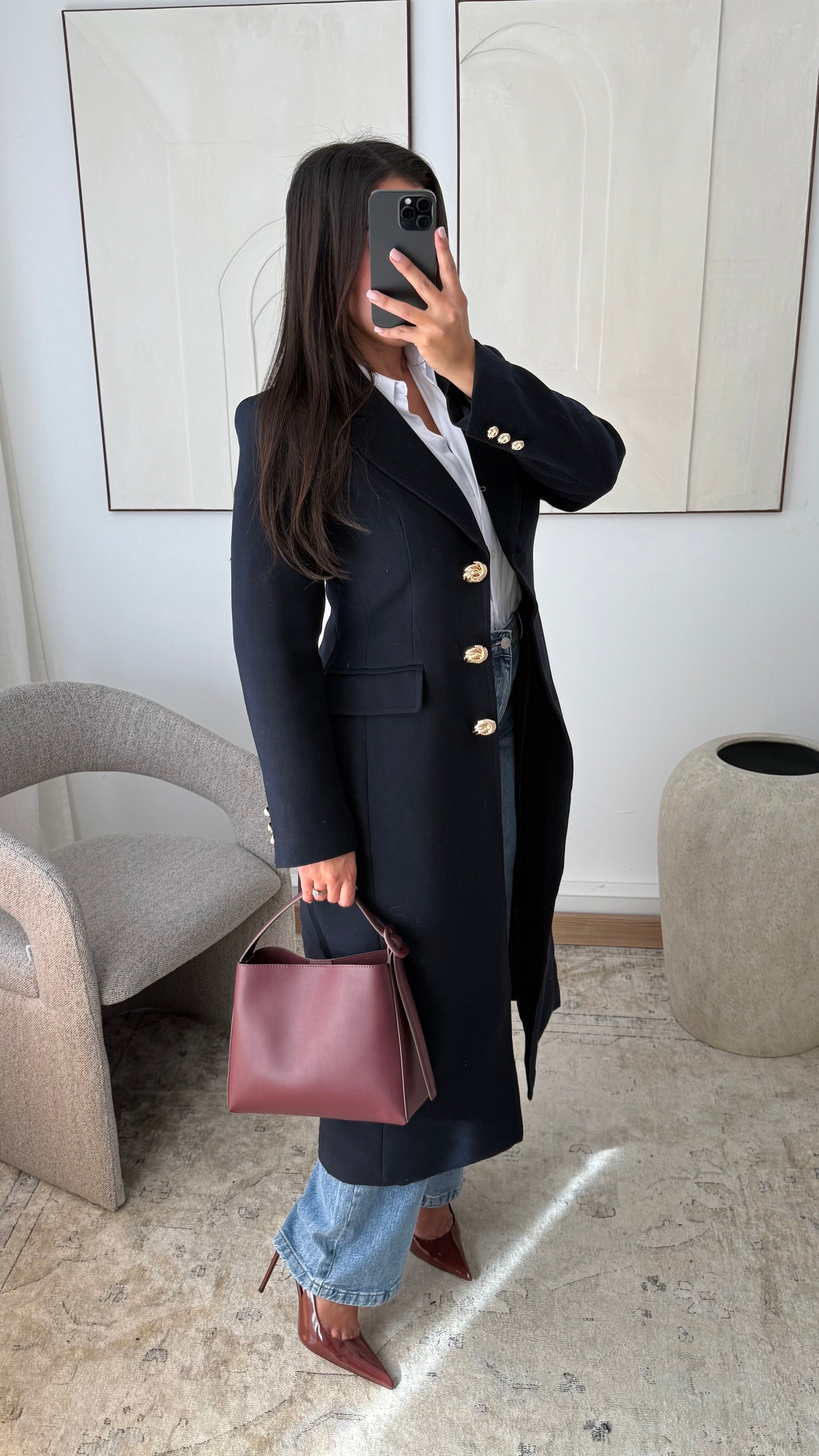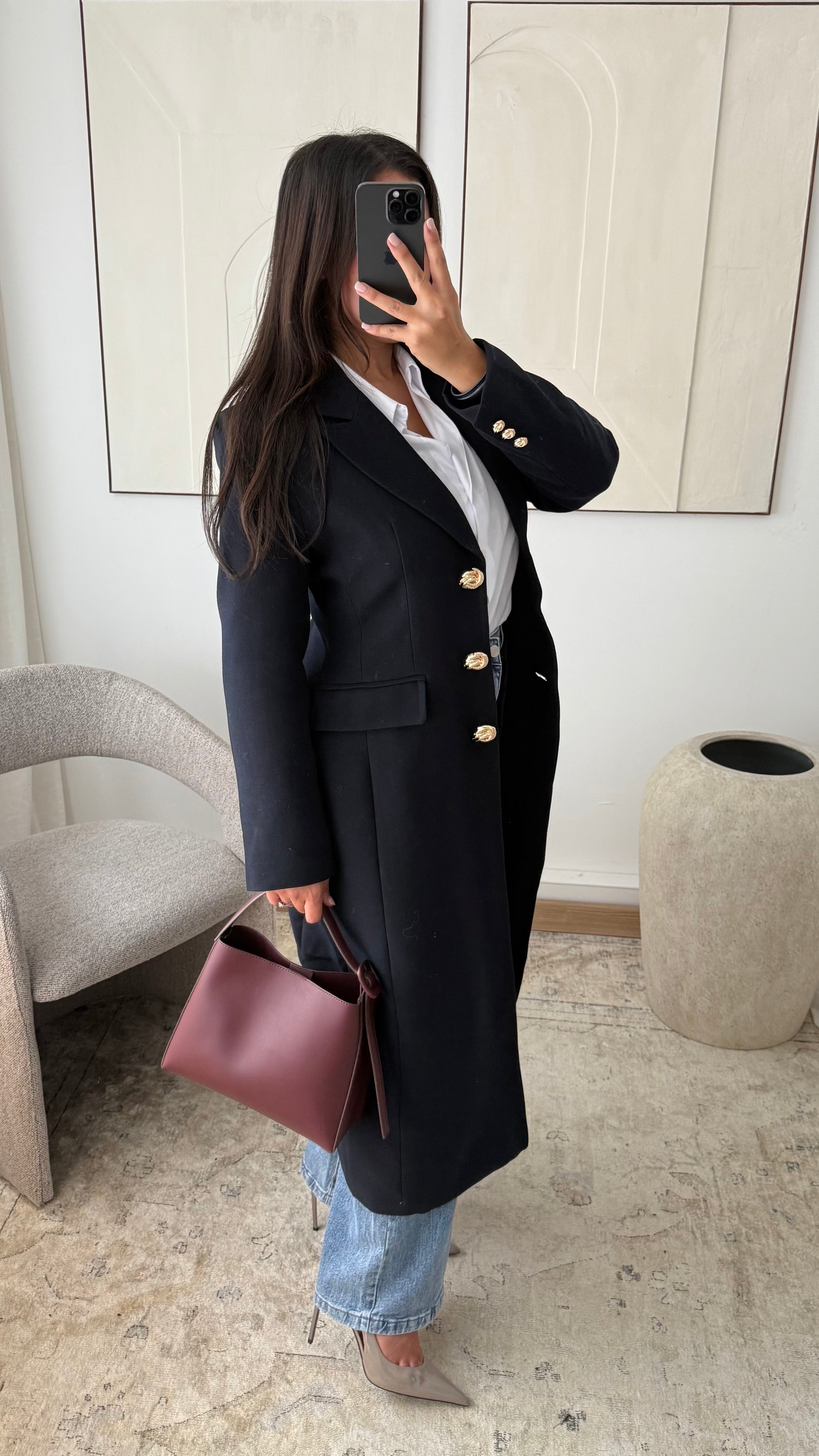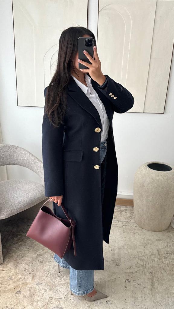 Manteau long cintré à boutons dorés AZALÉES I Bleu marine