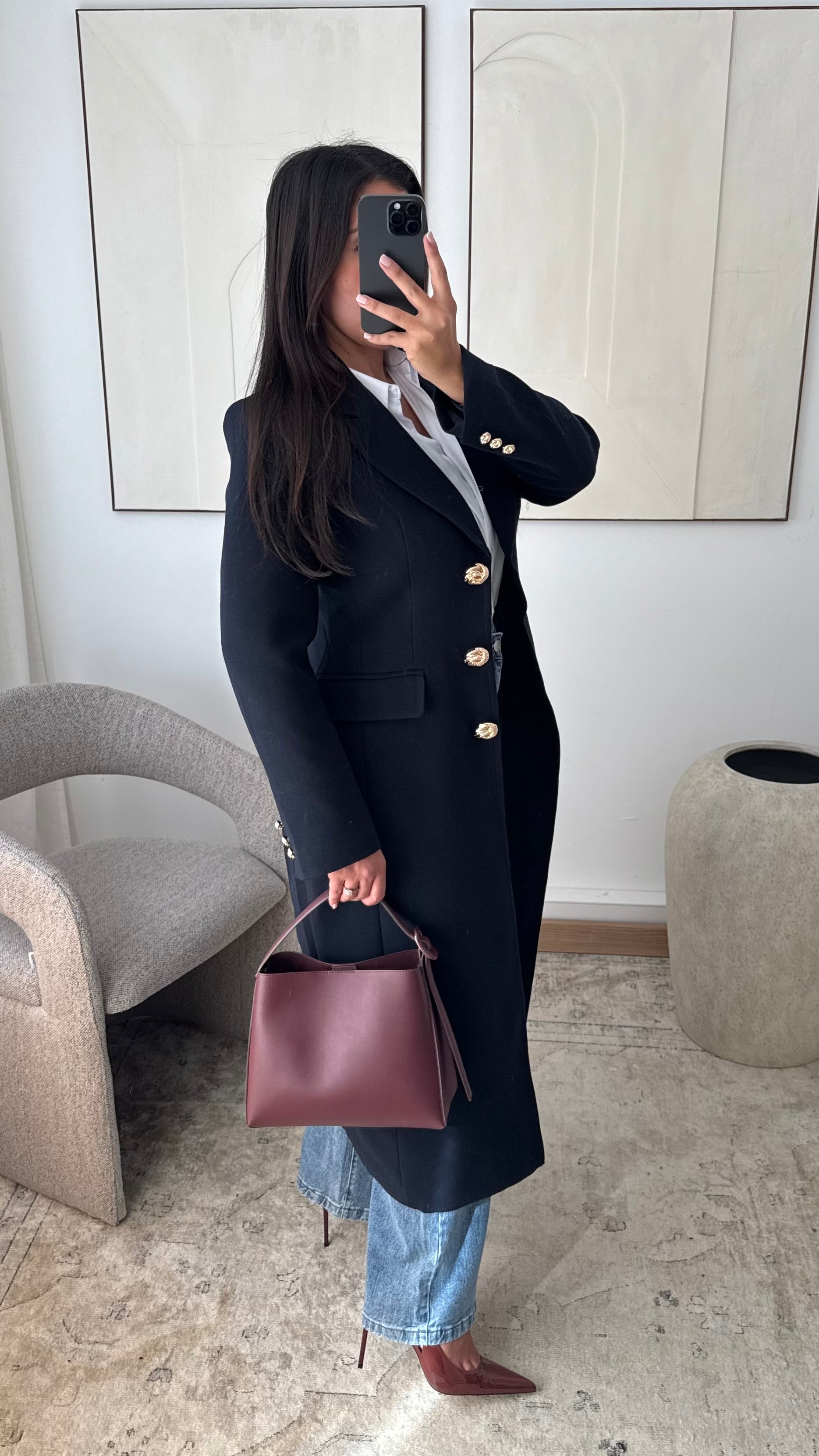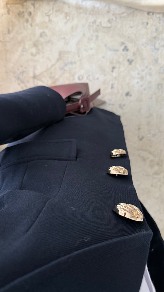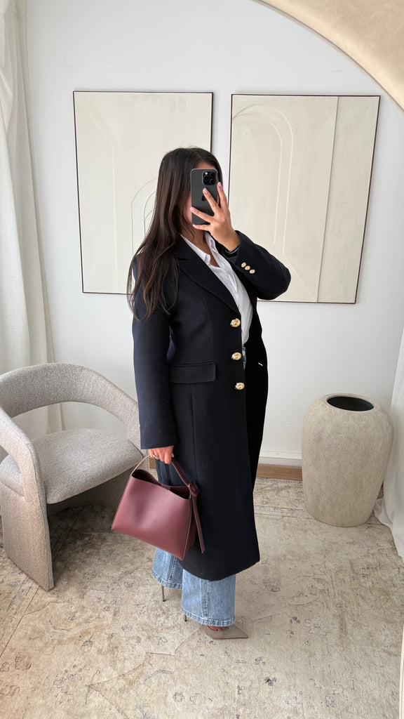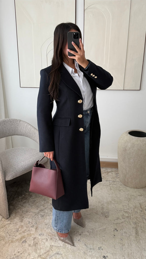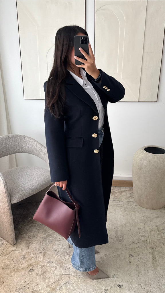 Manteau long cintré à boutons dorés AZALÉES I Bleu marine