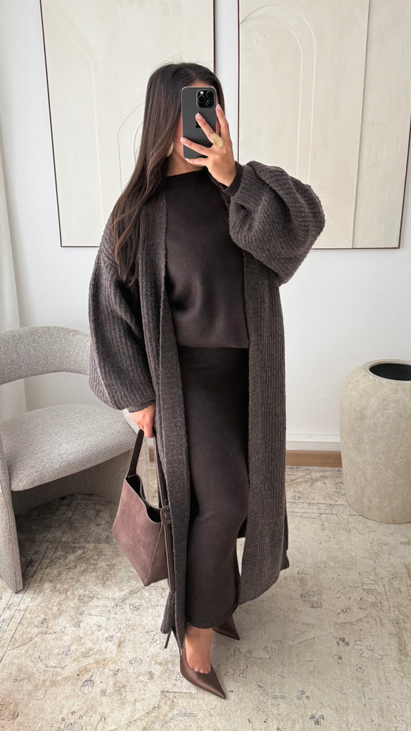 Gilet cardigan manches ballon SUZY I Marron chocolat