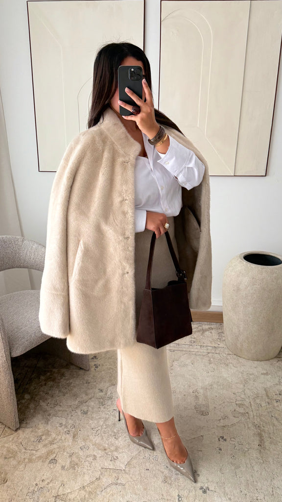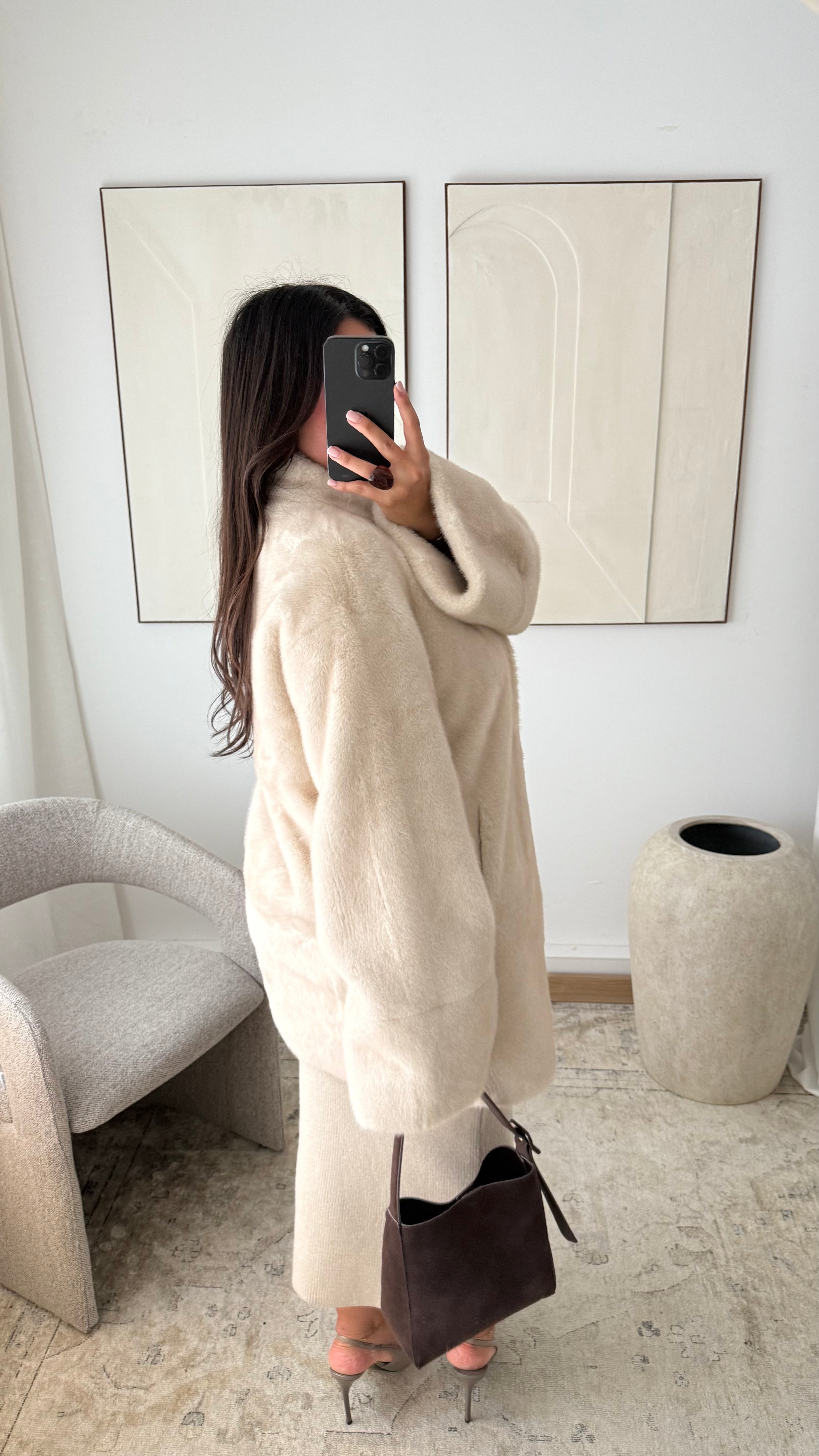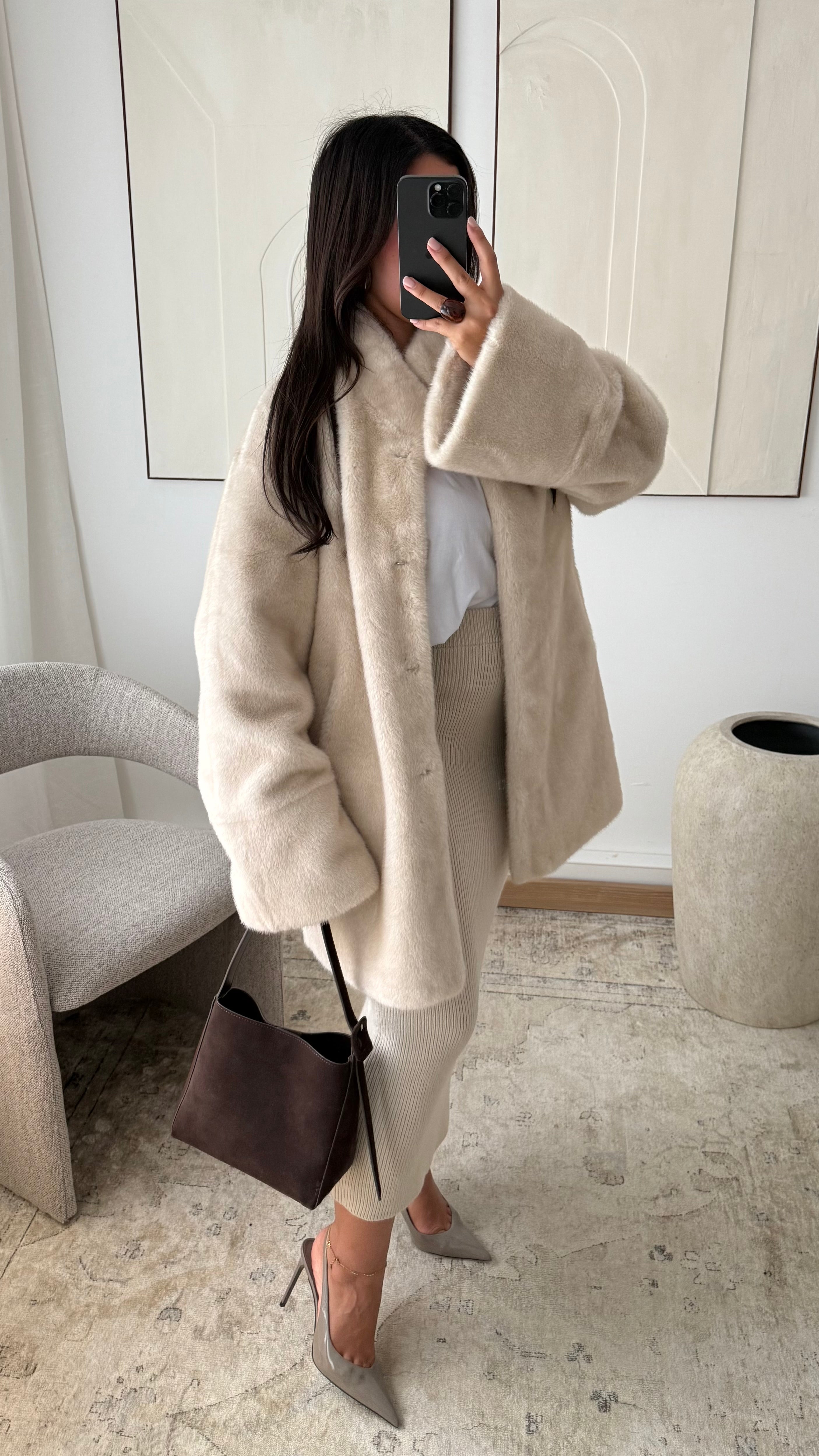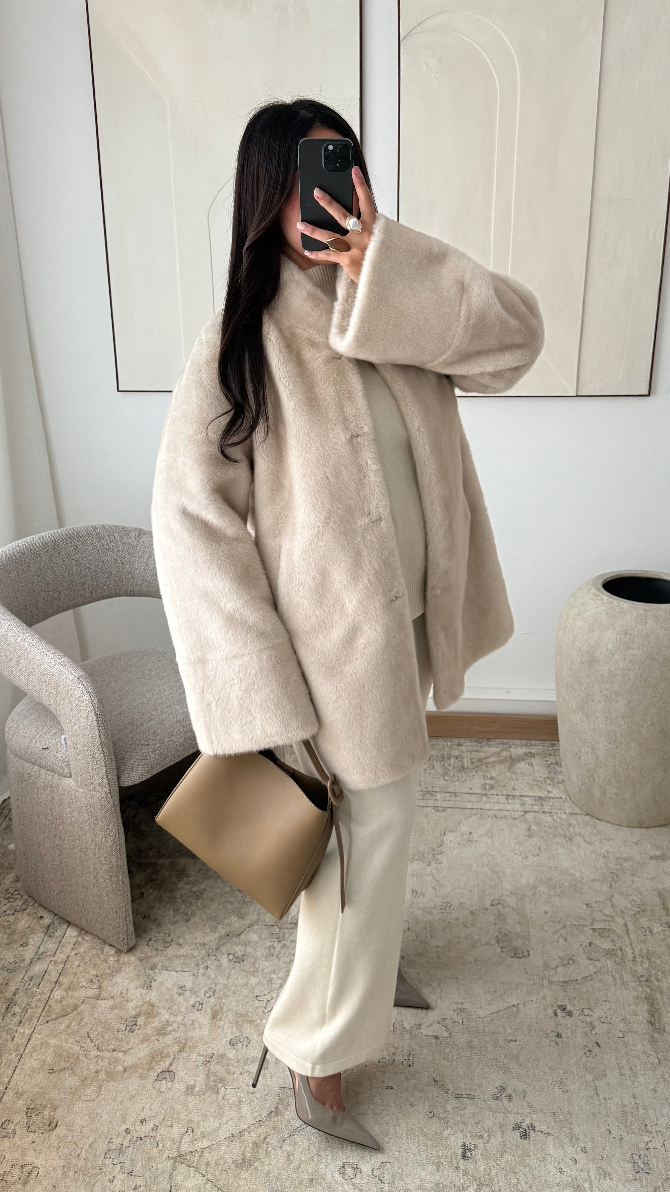 [ GAMME PREMIUM ] Manteau doublé en fausse fourrure vegan I Beige