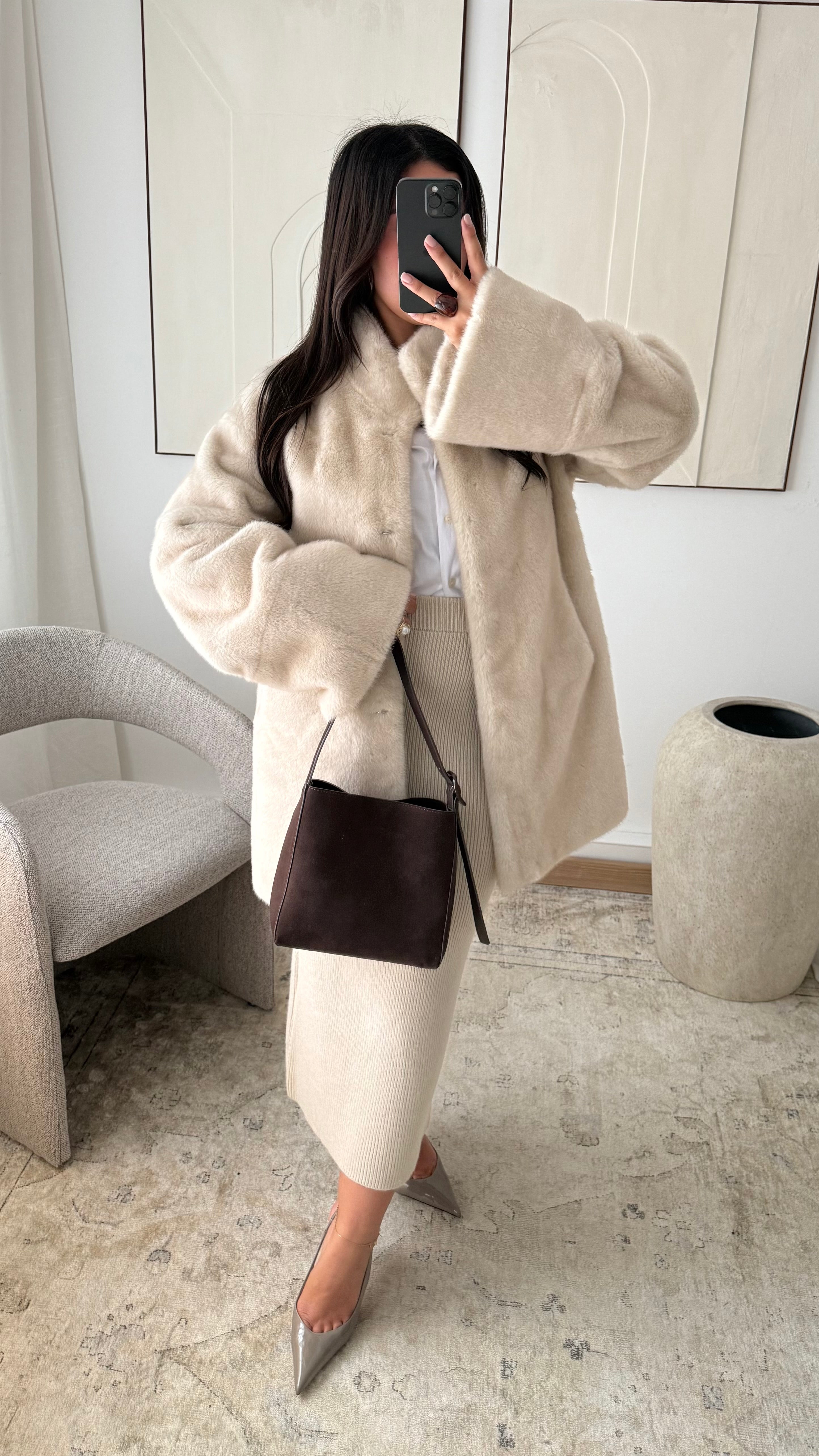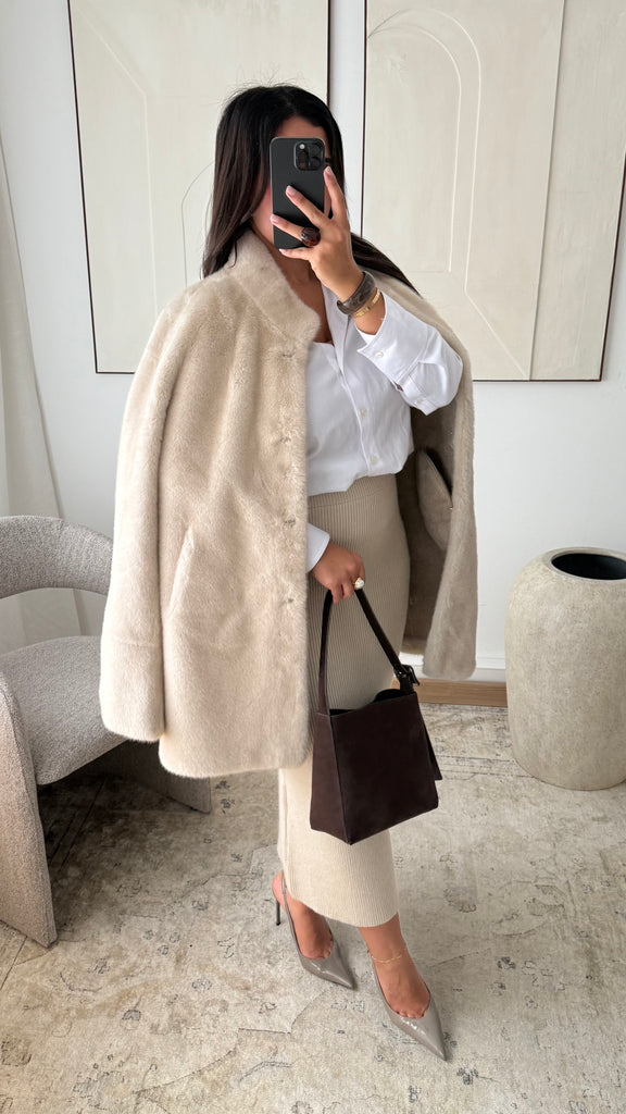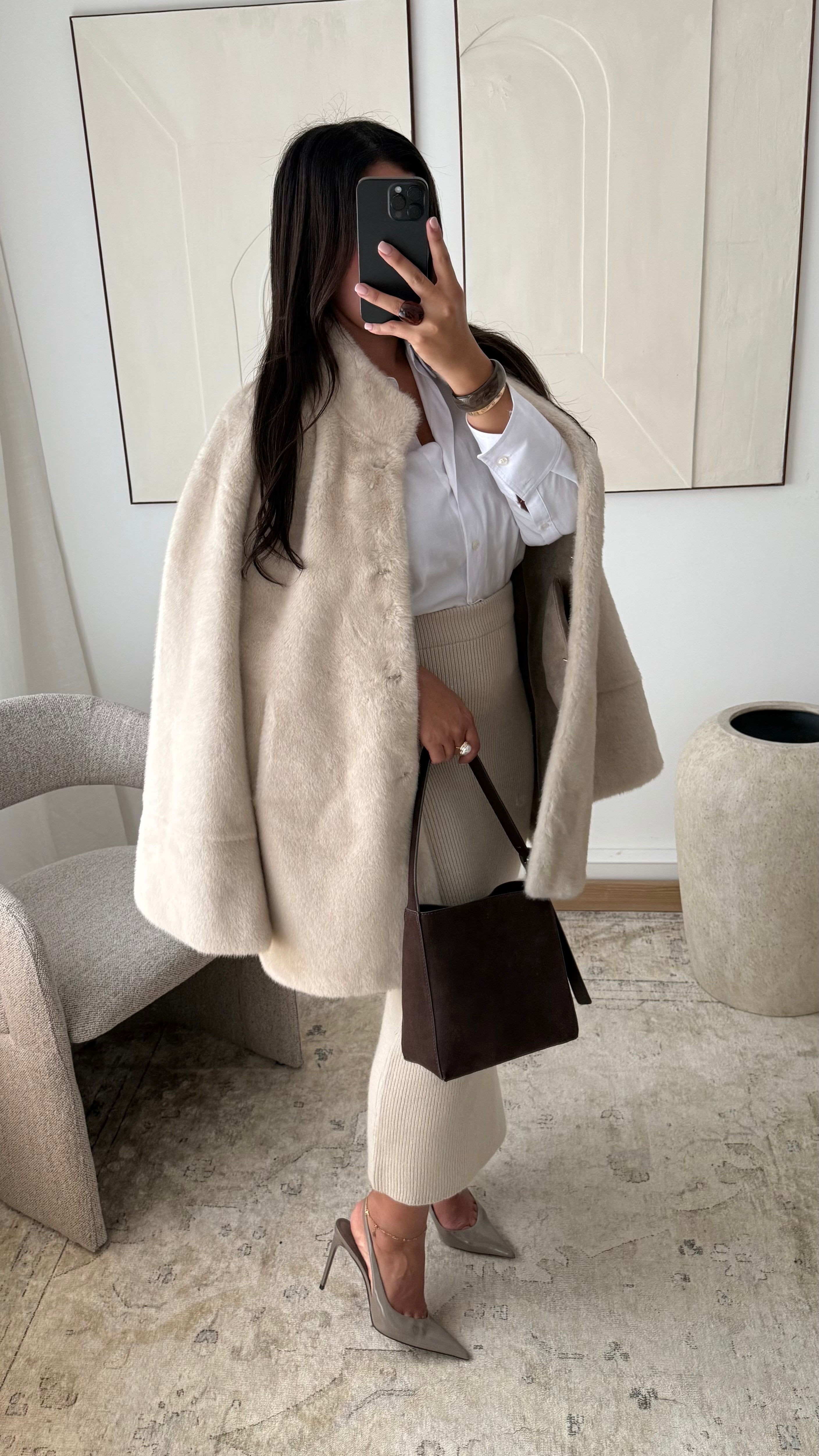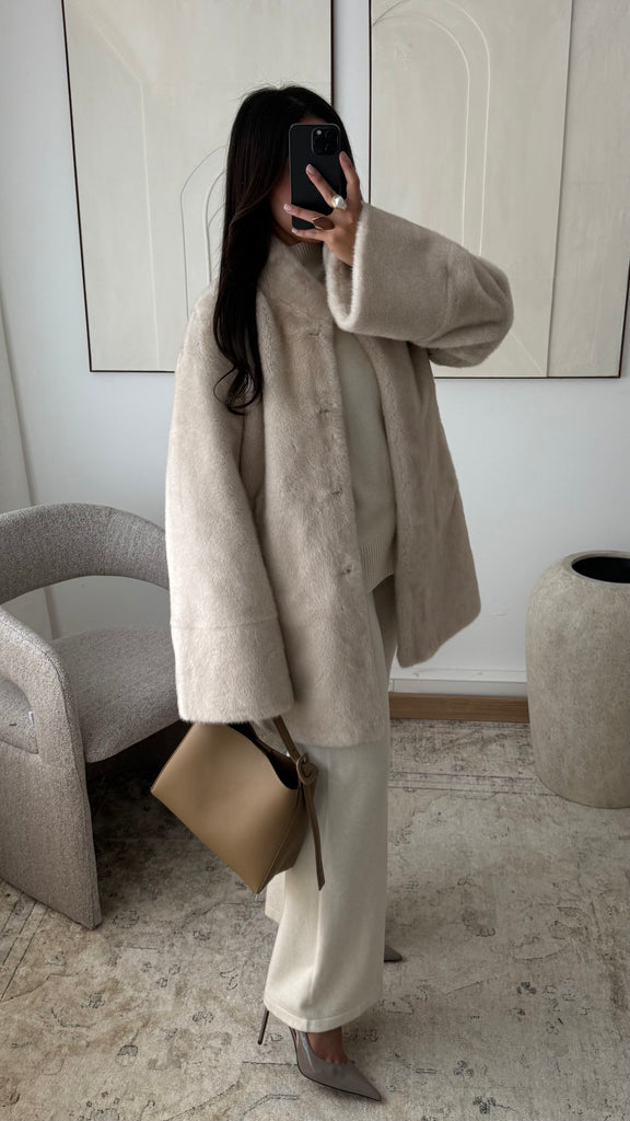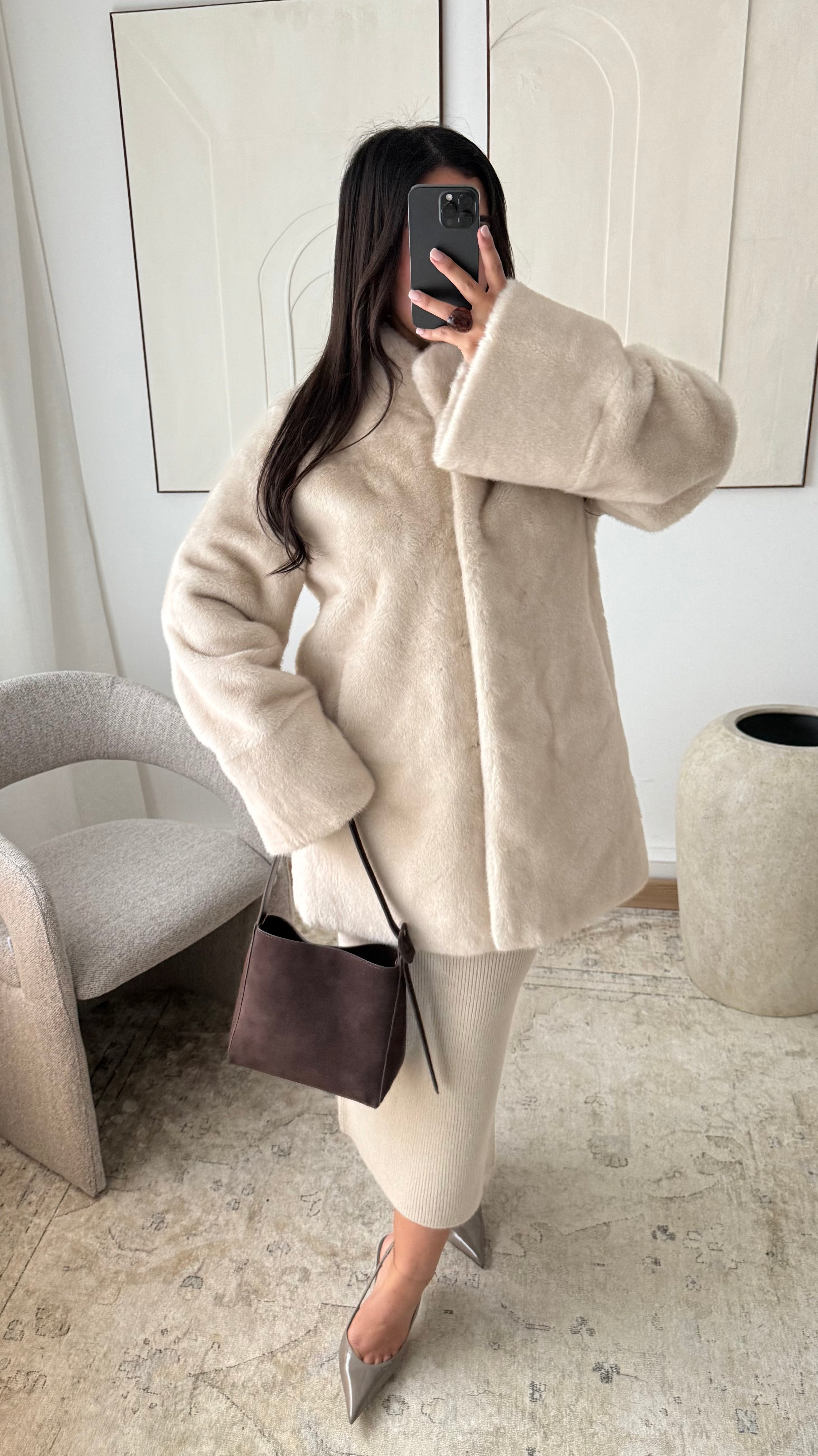 [ GAMME PREMIUM ] Manteau doublé en fausse fourrure vegan I Beige