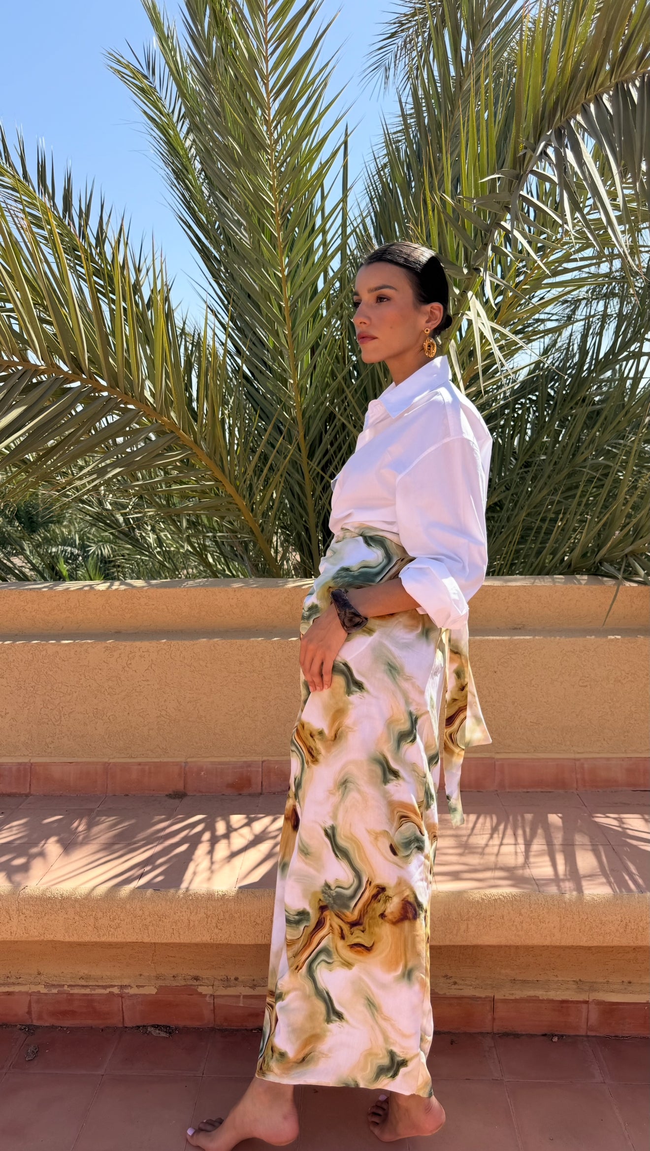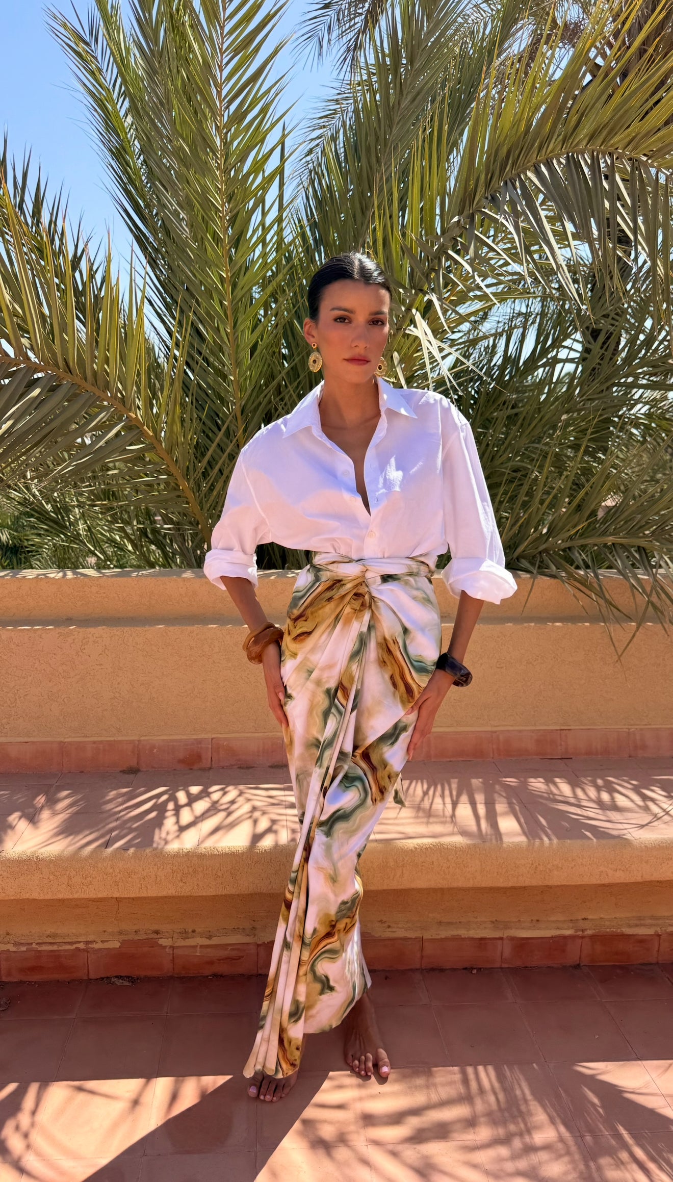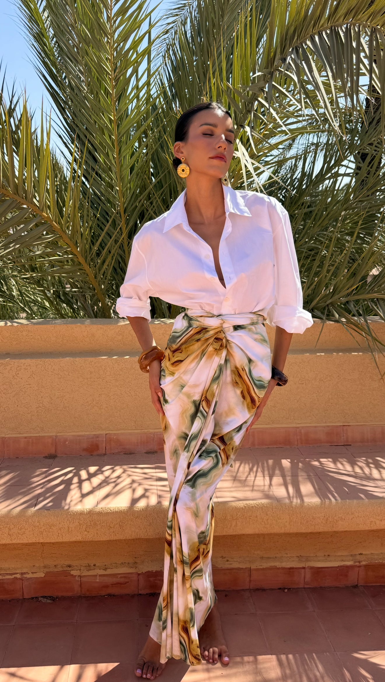 L'été joue les prolongations avec cette jupe à nouer effet paréo au charme solaire.