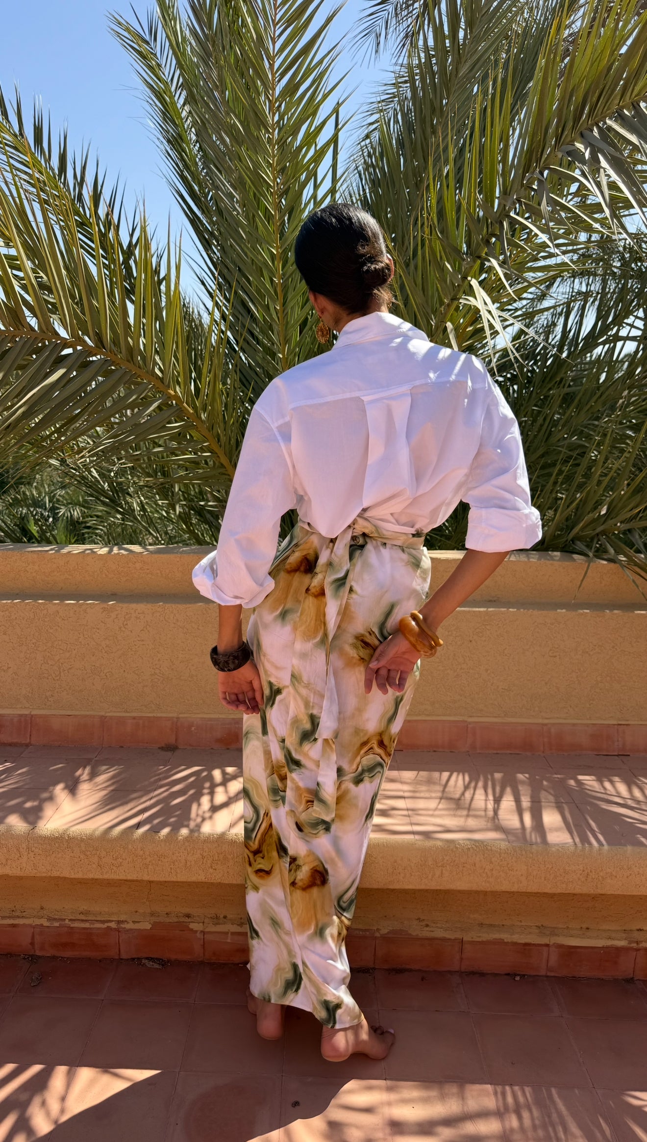 Son imprimé lumineux et sa coupe fluide en font la pièce idéale pour sublimer toutes les silhouettes, du XS au XXL, grâce à son système de nouage qui permet plusieurs façons de la porter.