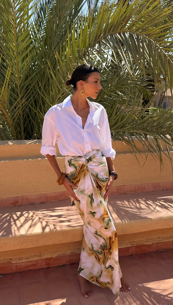 [EDITION LIMITÉE ATELIER DUBAÏ] Jupe effet paréo en coton | Vert Oasis