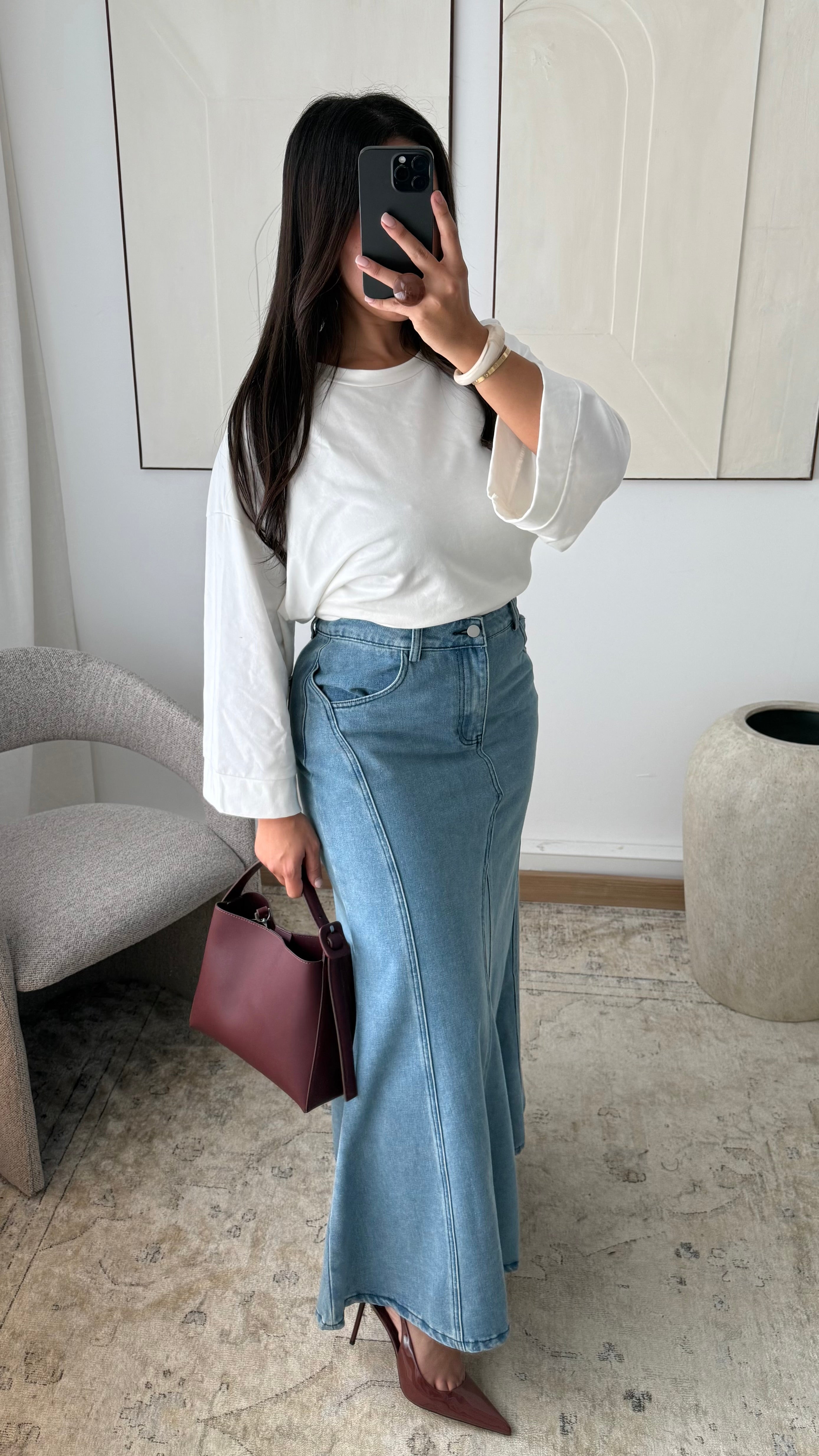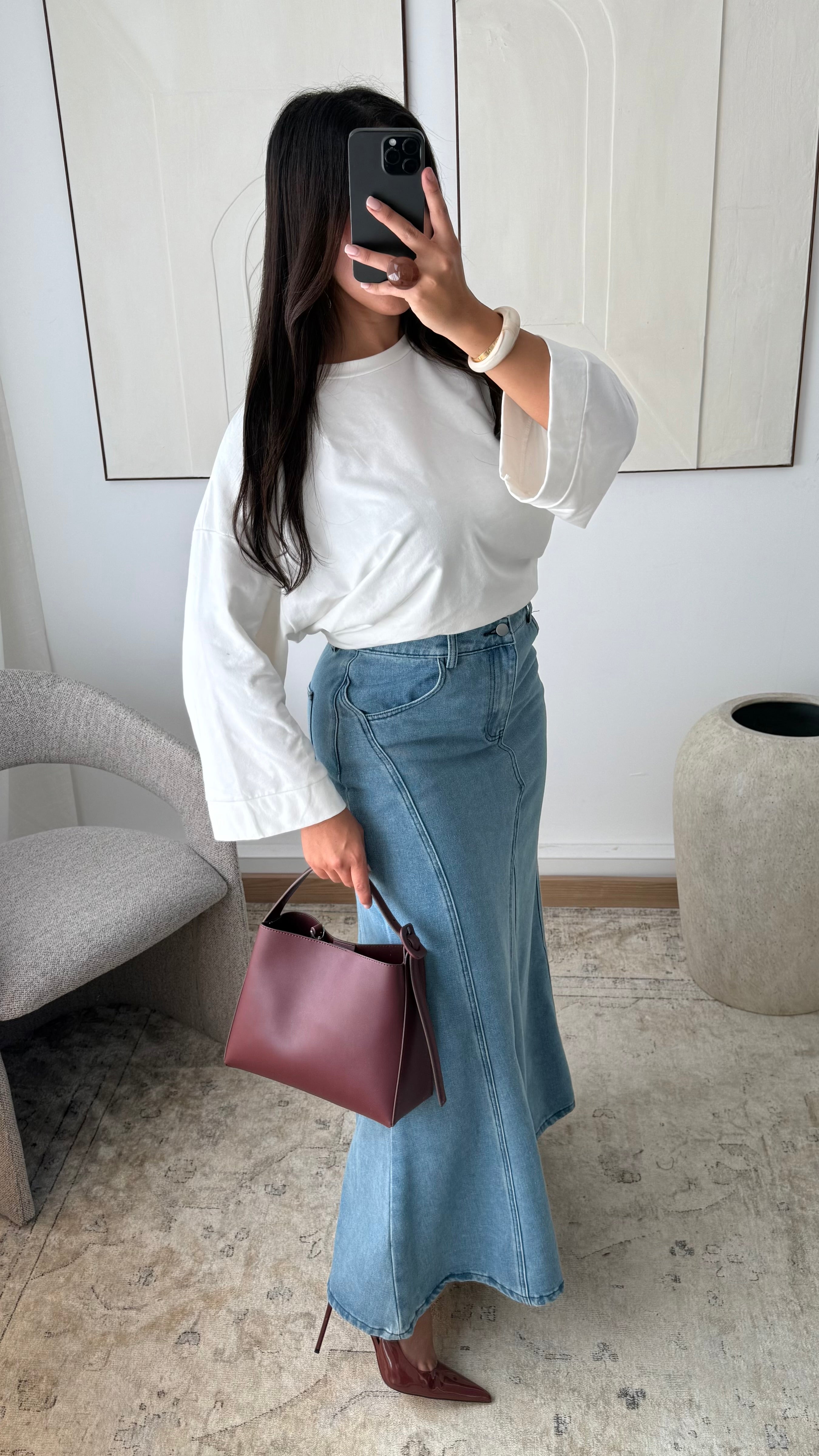 • Jupe longue en jean