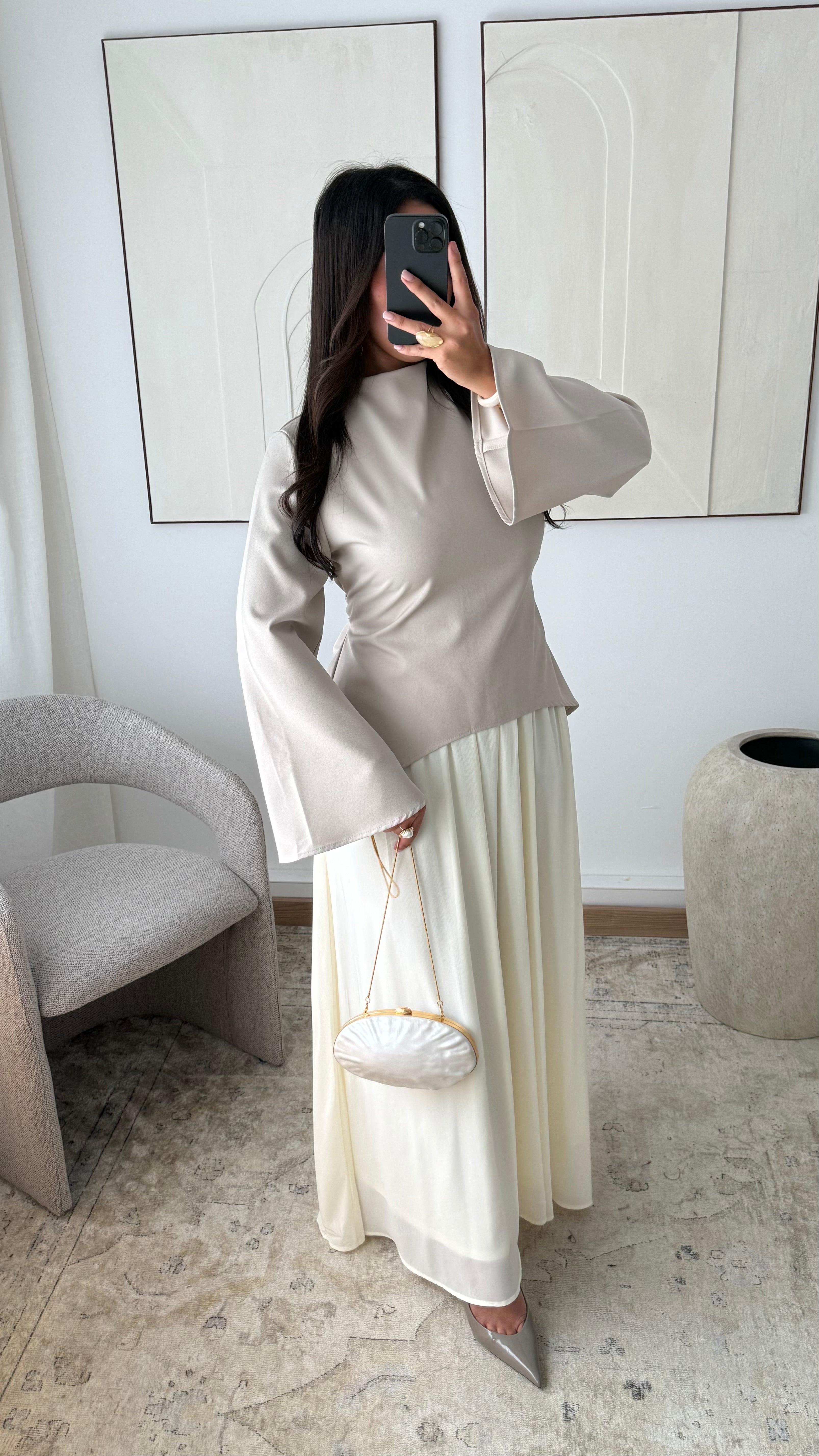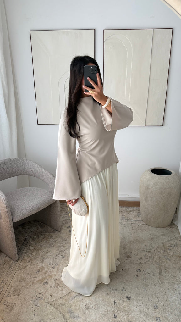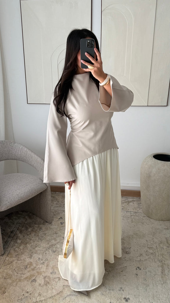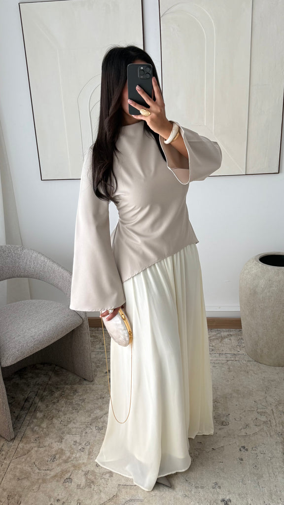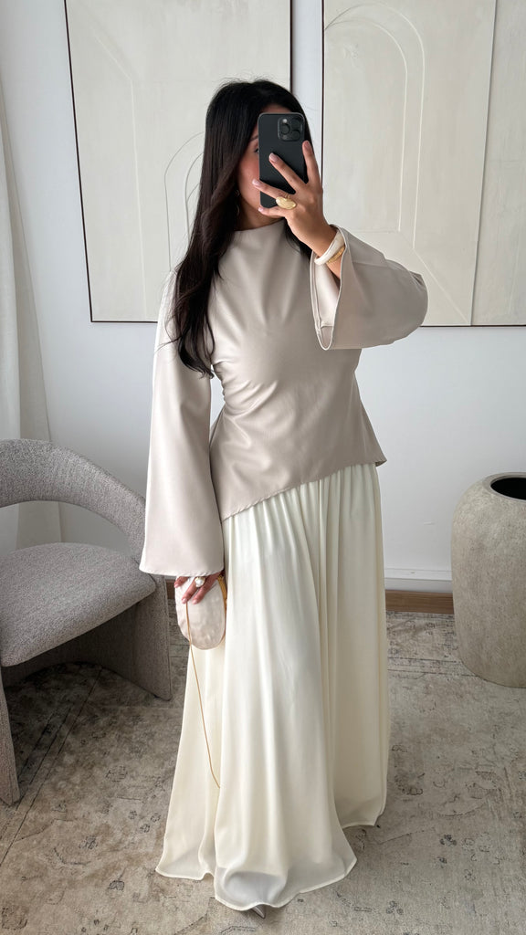 Ensemble asymétrique avec jupe drapée RAFINITY I Beige