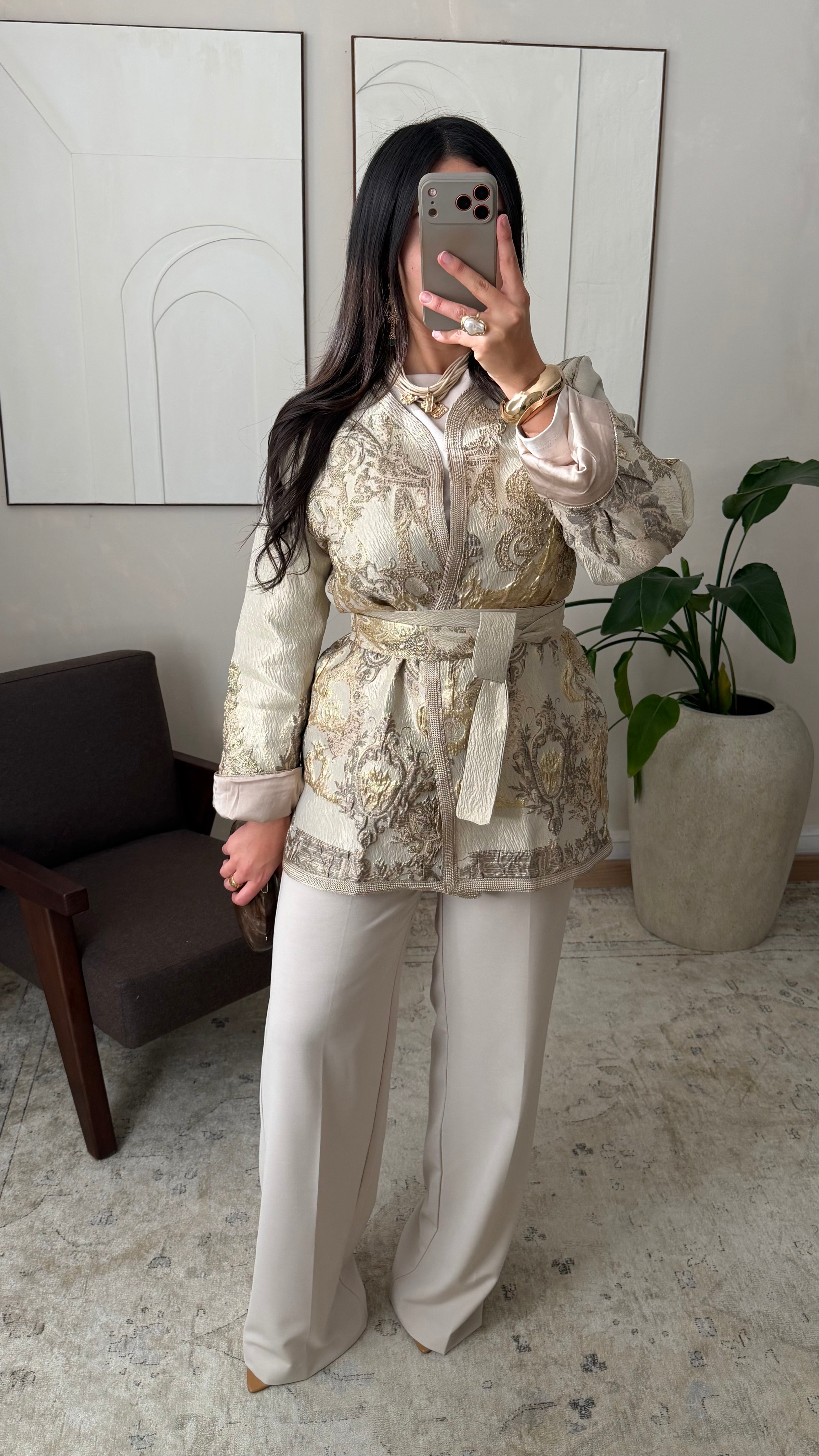 [ CRÉATION ARTISANALE 🇲🇦 ] Kimono en brocard I Doré