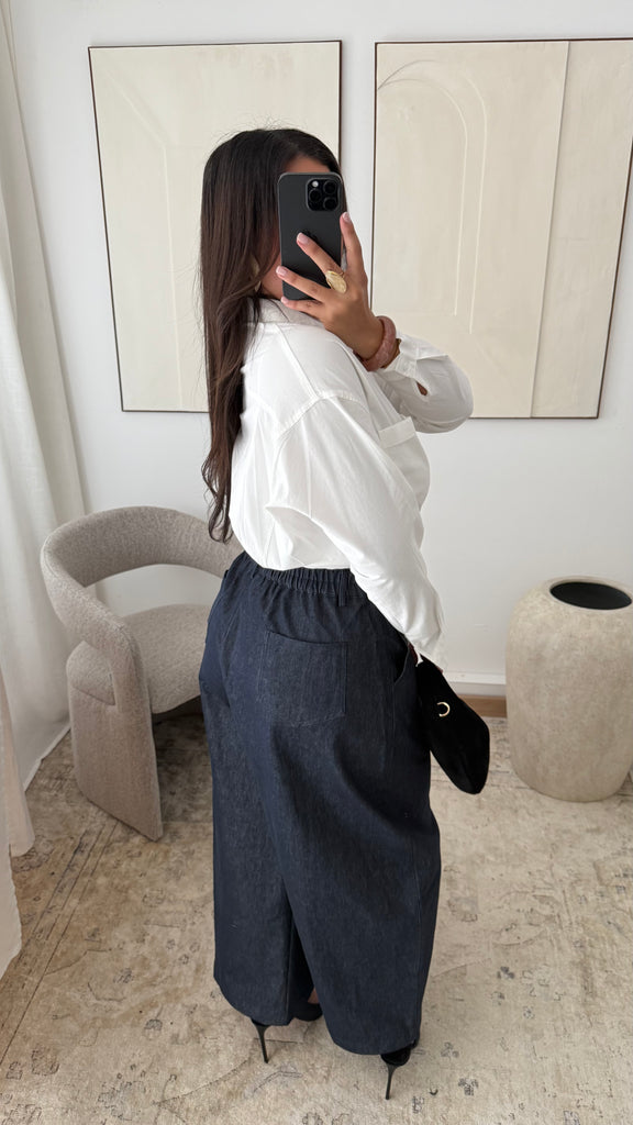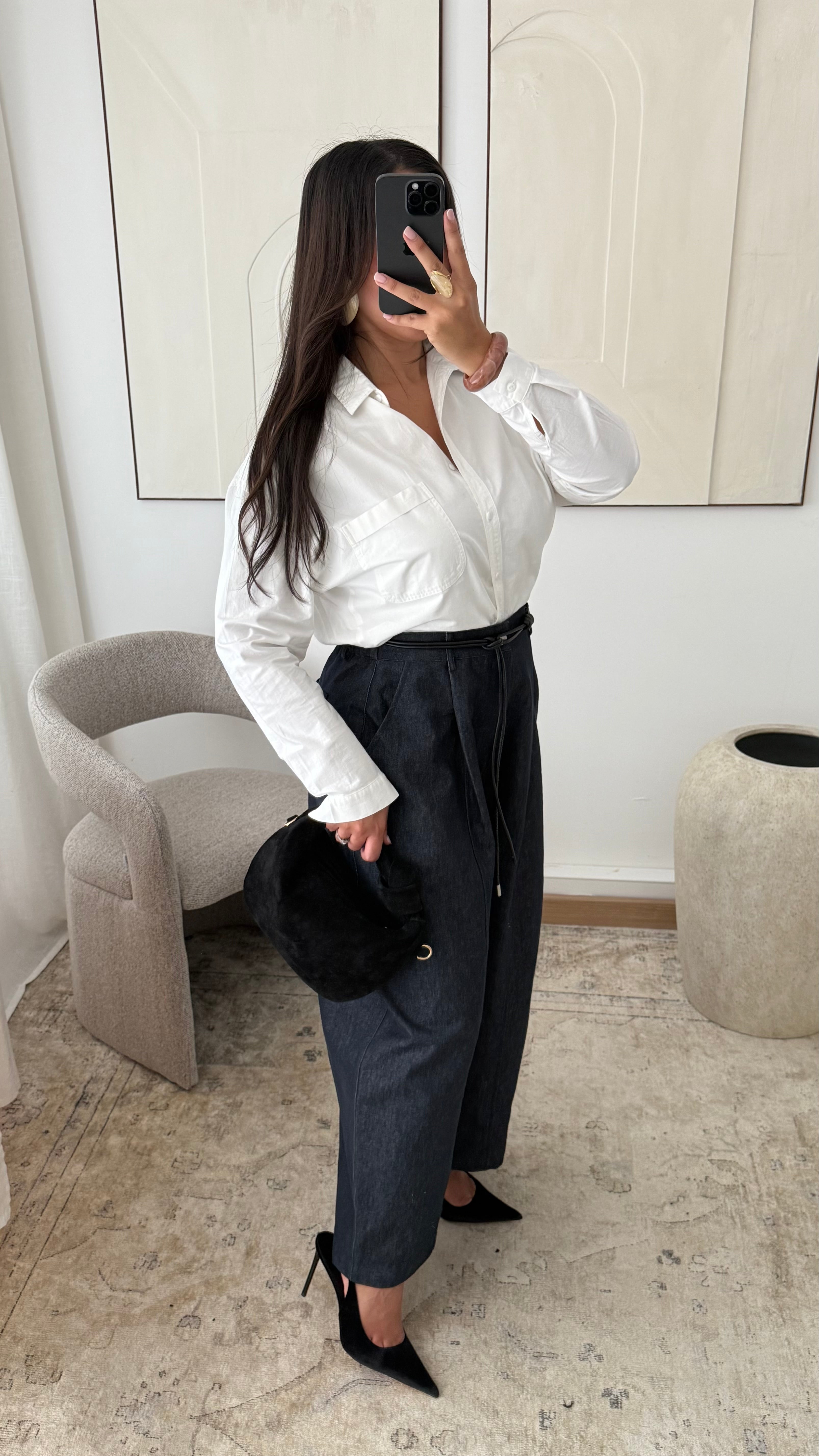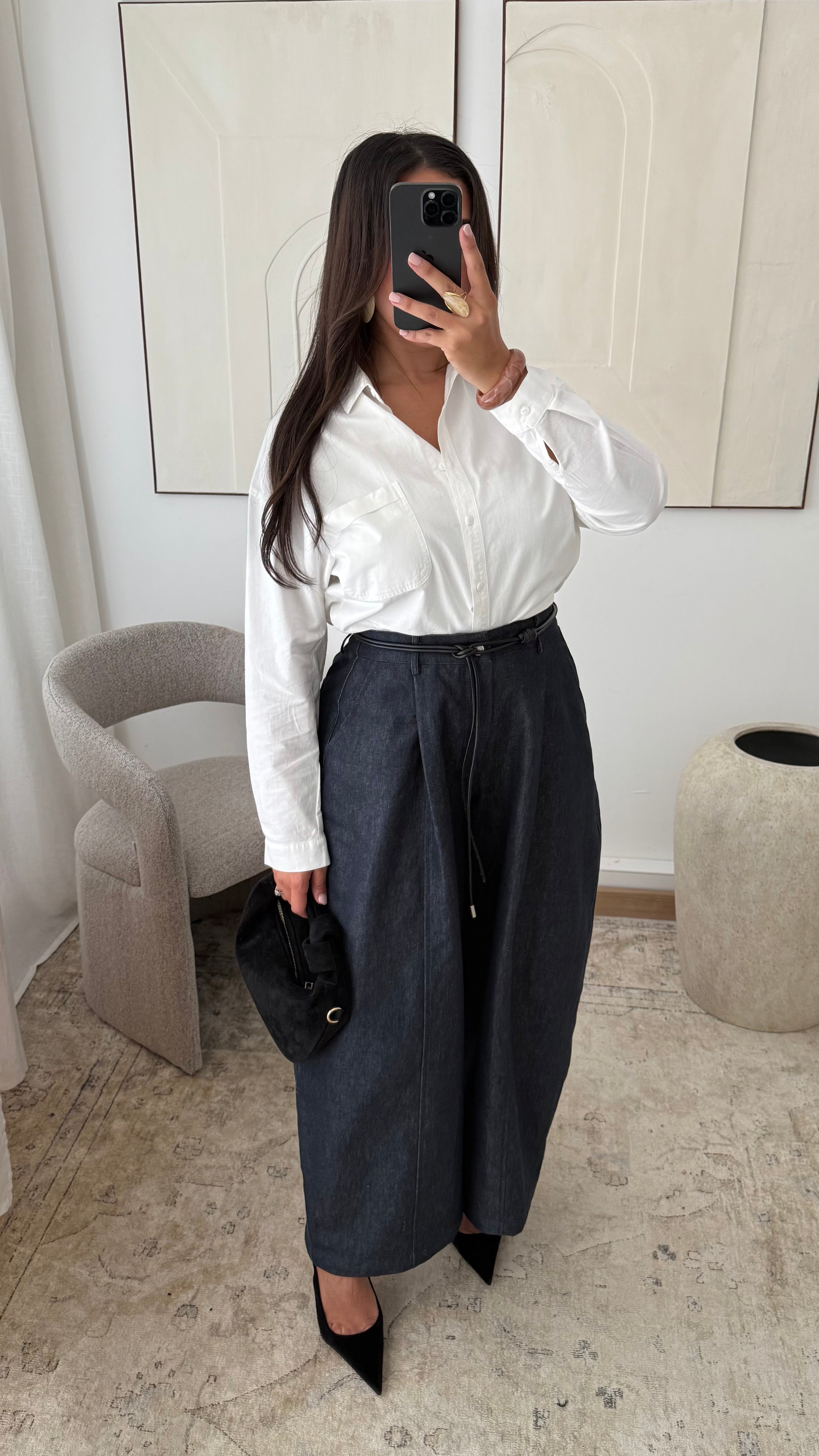À associer avec une tunique fluide rentrée partiellement à l’avant ou une chemise oversize pour un look élégant et pudique. Complétez avec un long cardigan ou un kimono pour une silhouette structurée et harmonieuse. Idéal avec des mocassins, des bottines ou des baskets sobres pour un style urbain et confortable, en toute modestie.