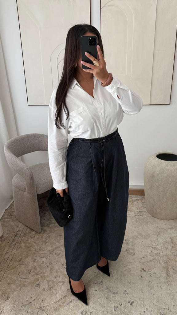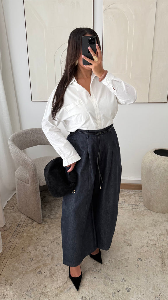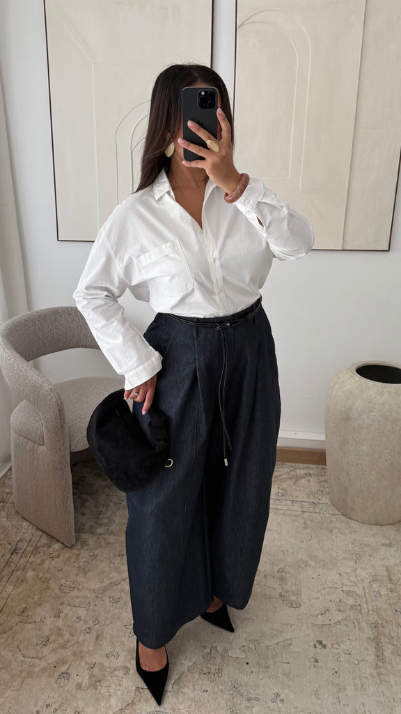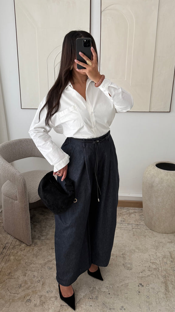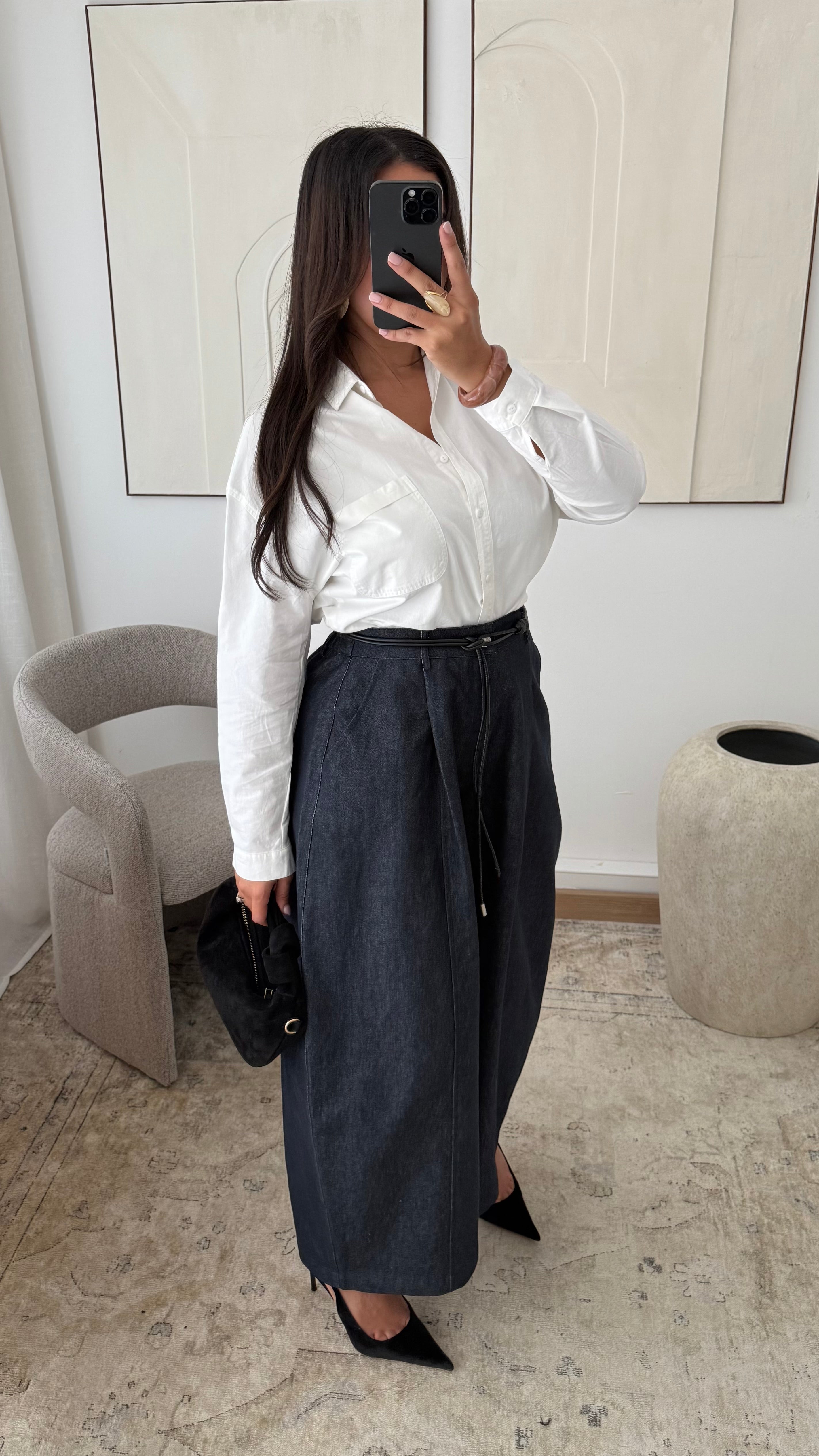 À associer avec une tunique fluide rentrée partiellement à l’avant ou une chemise oversize pour un look élégant et pudique. Complétez avec un long cardigan ou un kimono pour une silhouette structurée et harmonieuse. Idéal avec des mocassins, des bottines ou des baskets sobres pour un style urbain et confortable, en toute modestie.