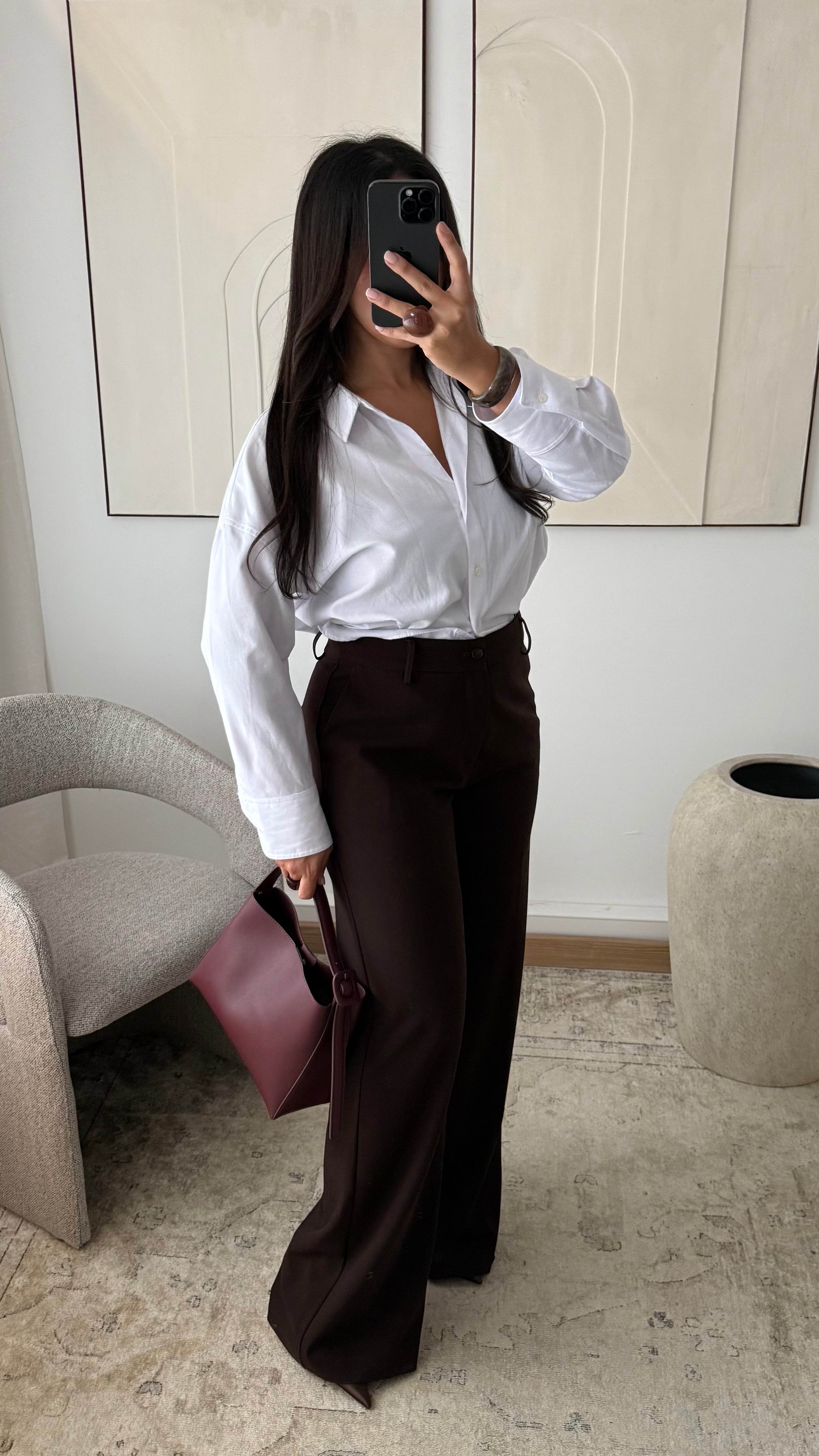 À associer avec une chemise classique ou un blazer pour un look élégant au bureau, ou avec un pull doux pour une allure plus décontractée mais toujours raffinée.