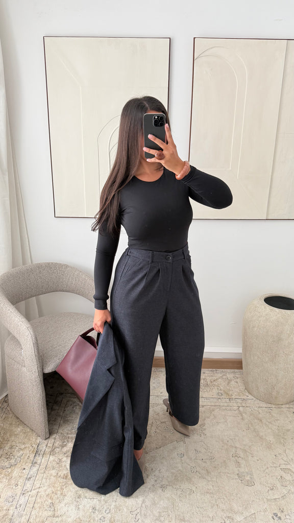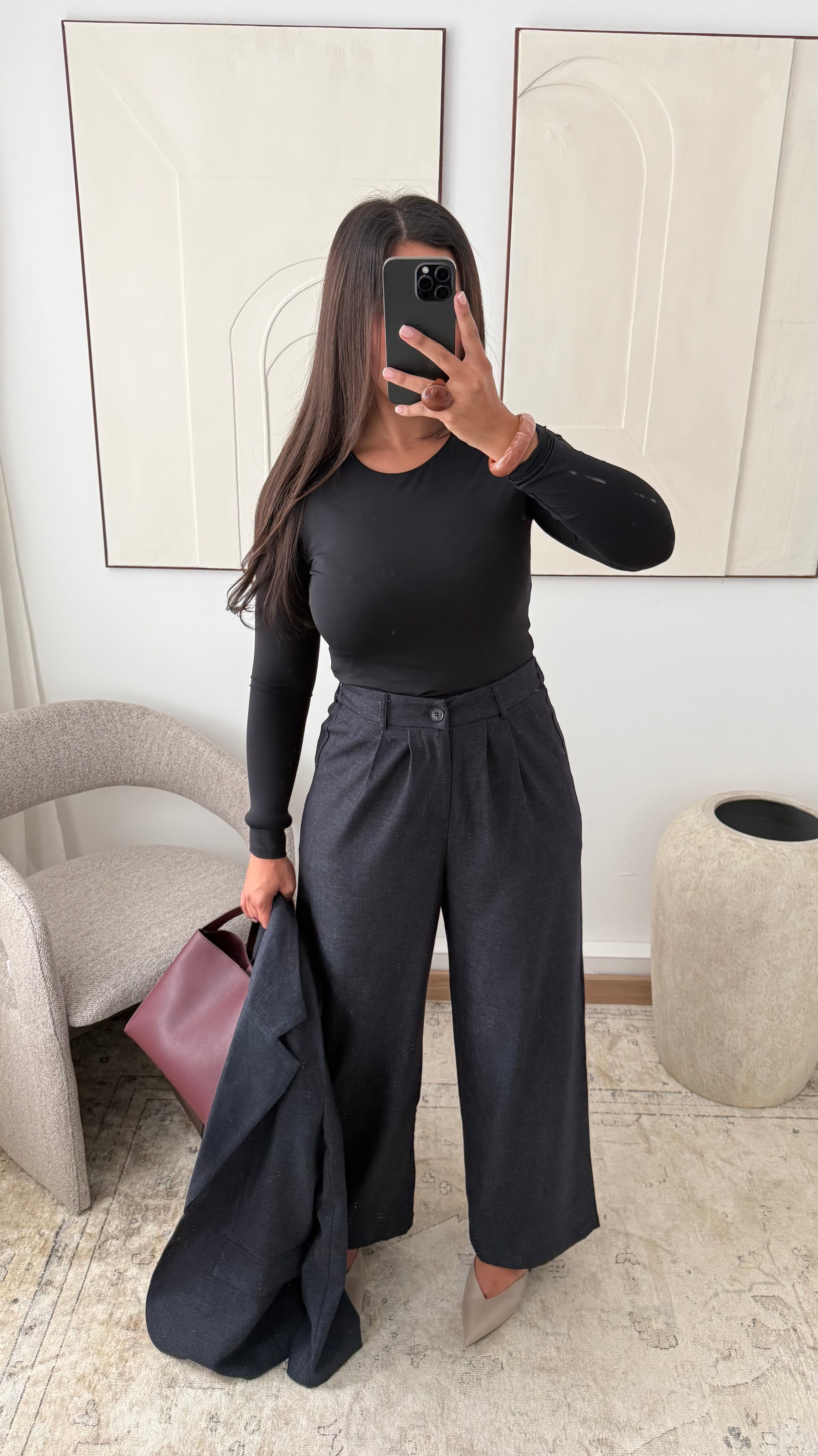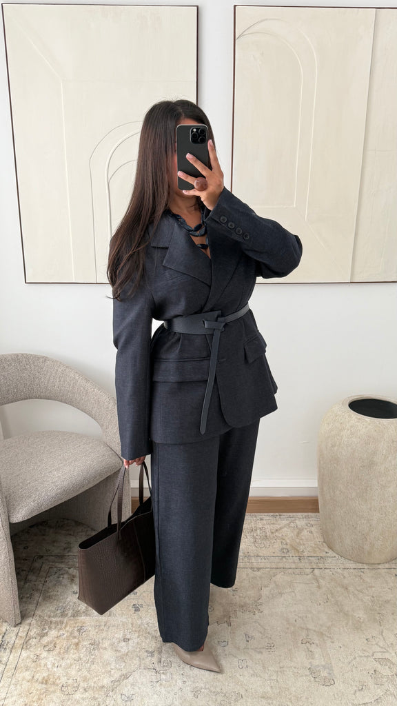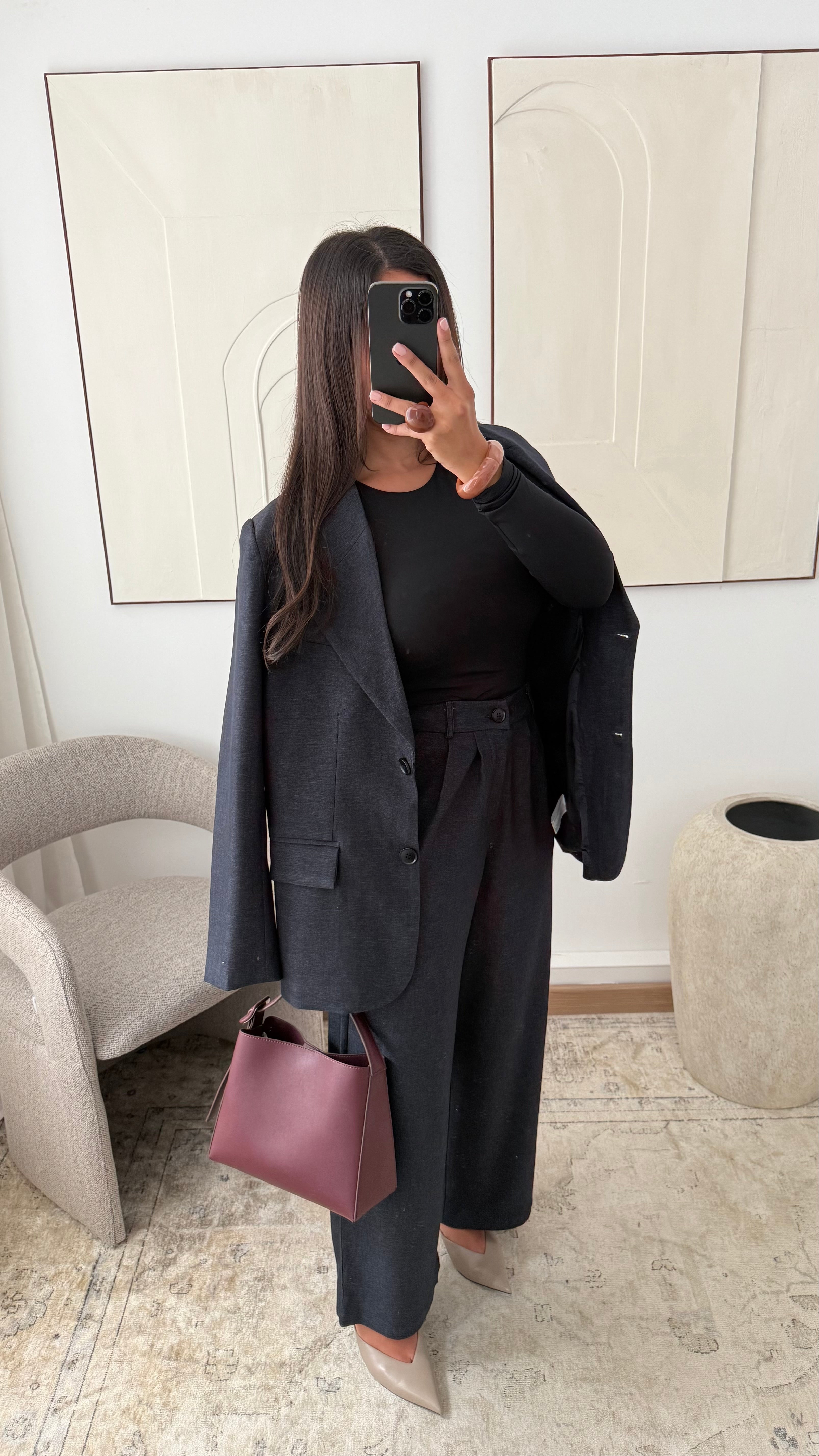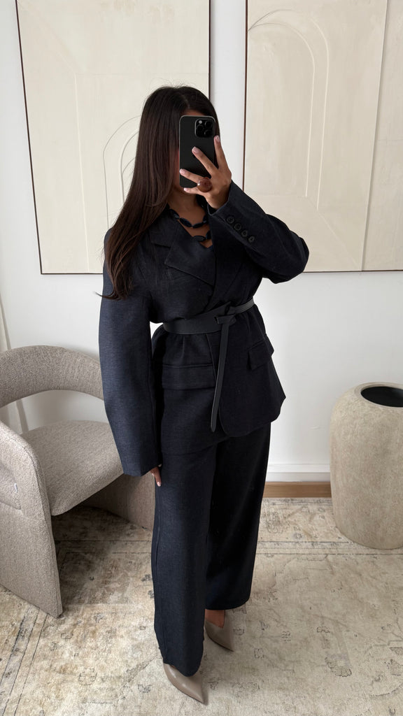 À associer avec le blazer effet jean assorti pour un total look comfy chic, ou à porter avec une chemise fluide ou un pull fin pour un style casual élégant.