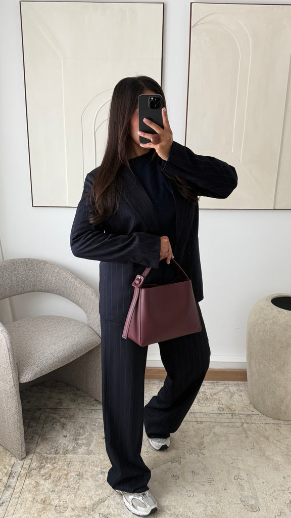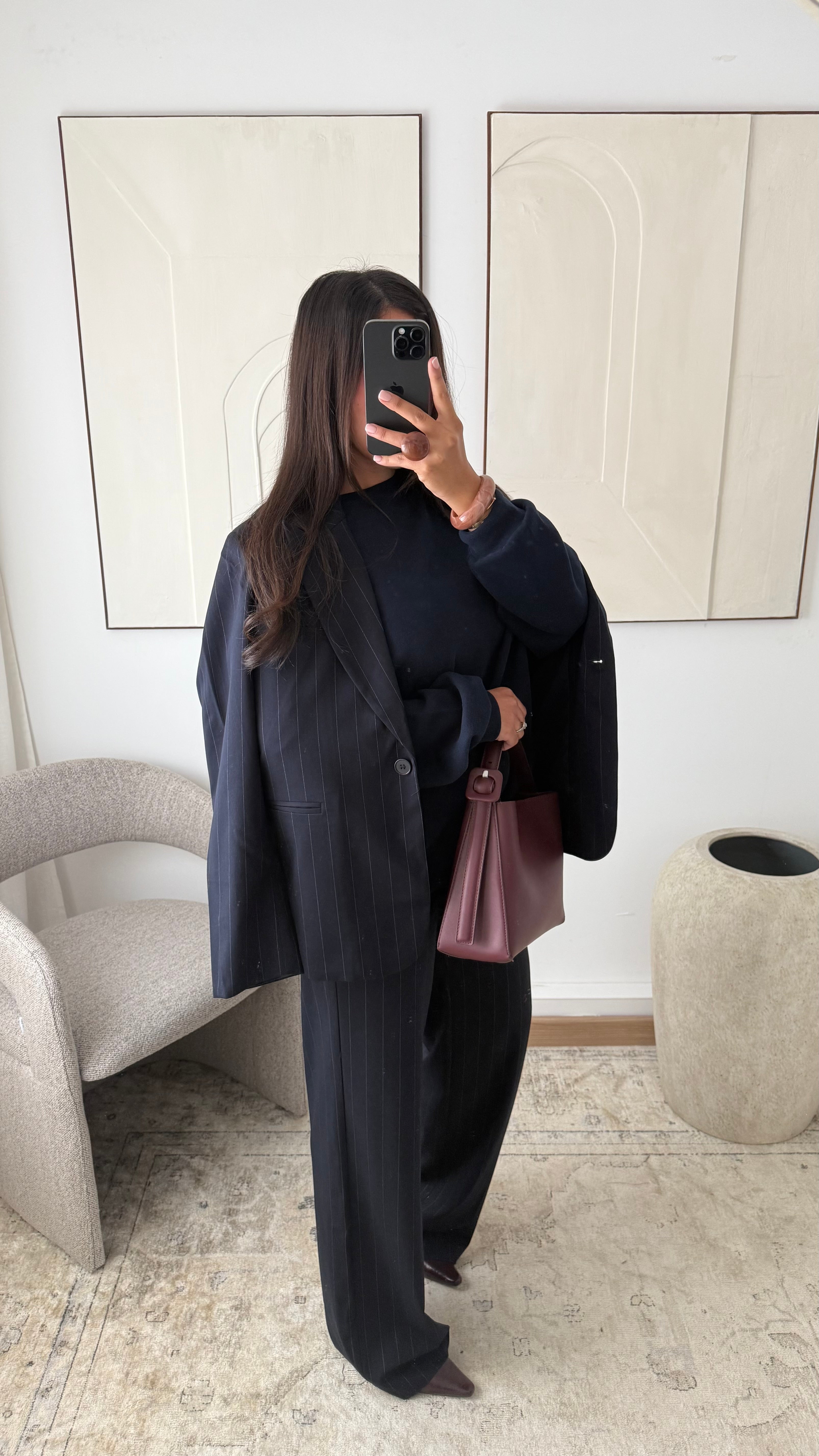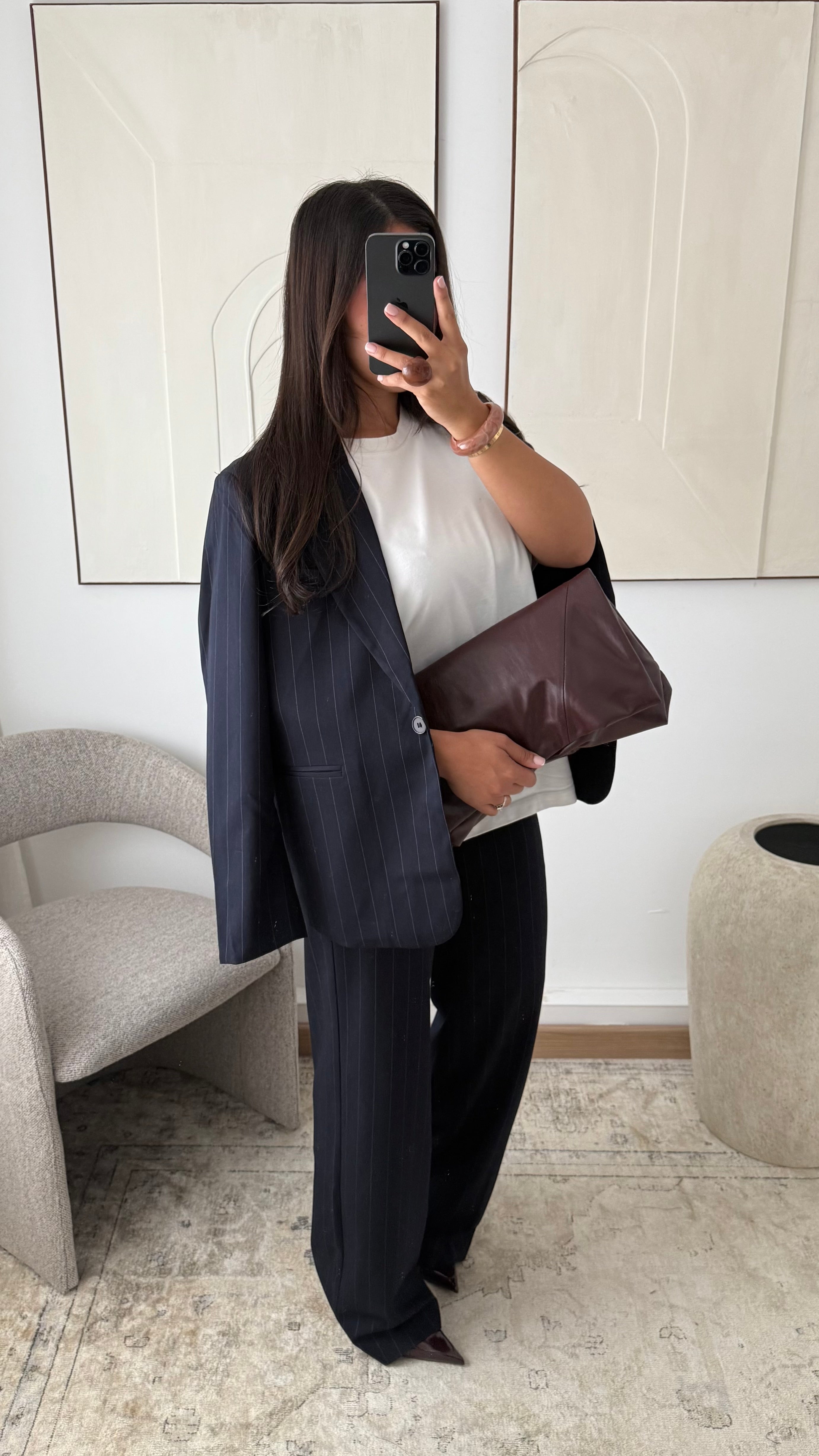 À porter avec le blazer assorti pour un ensemble structuré, ou avec une chemise blanche pour un look contrasté et chic.