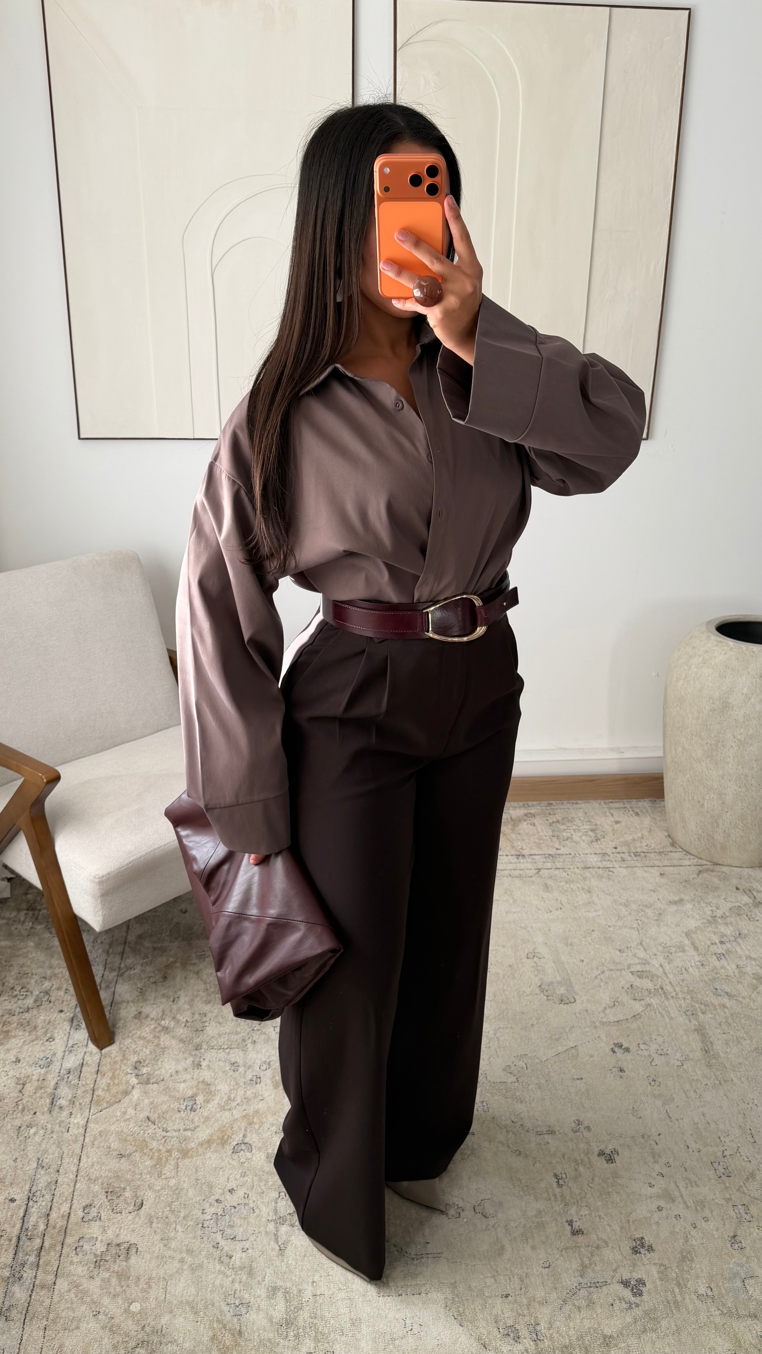 Pantalon palazzo taille haute | Marron chocolat